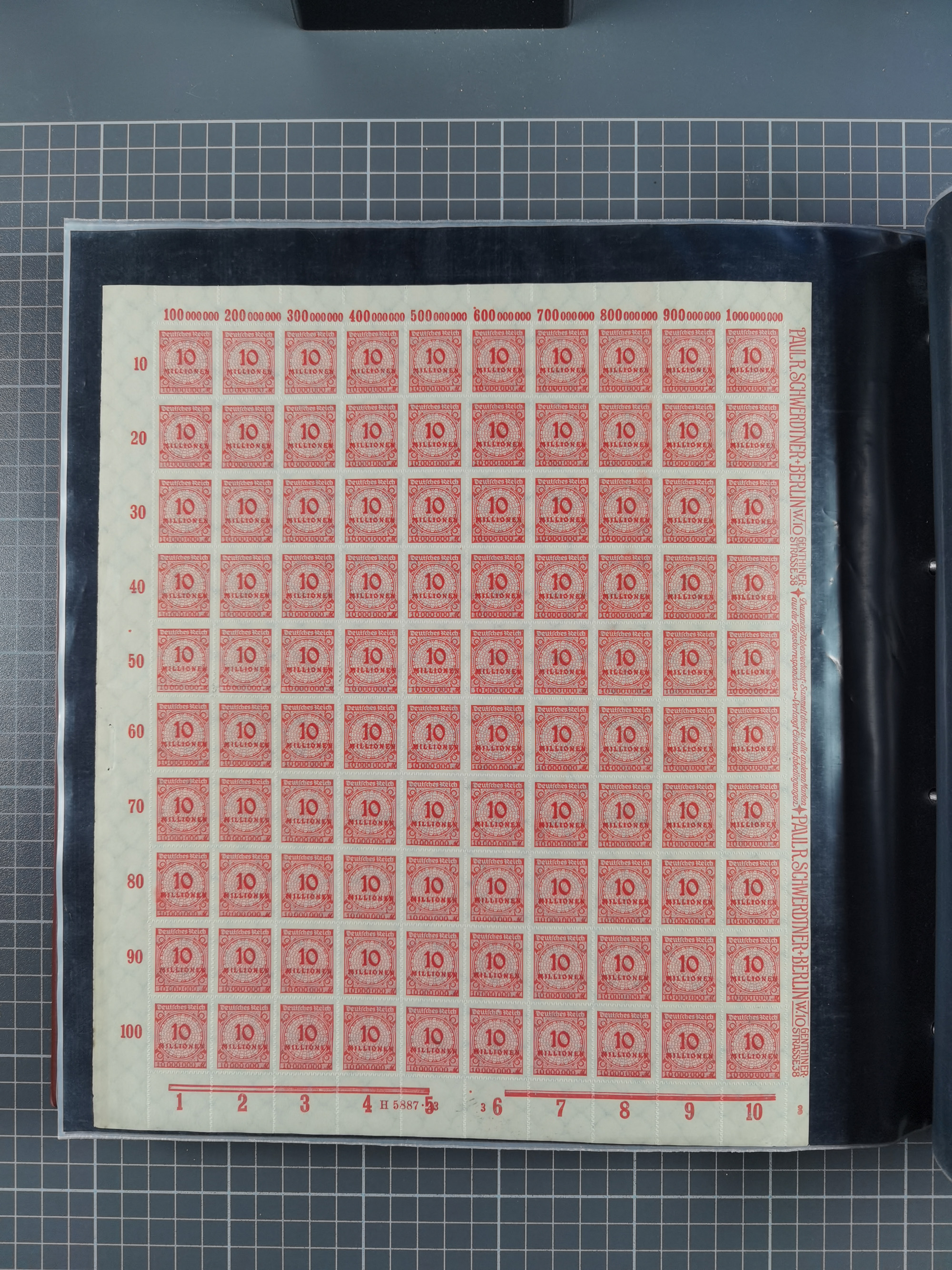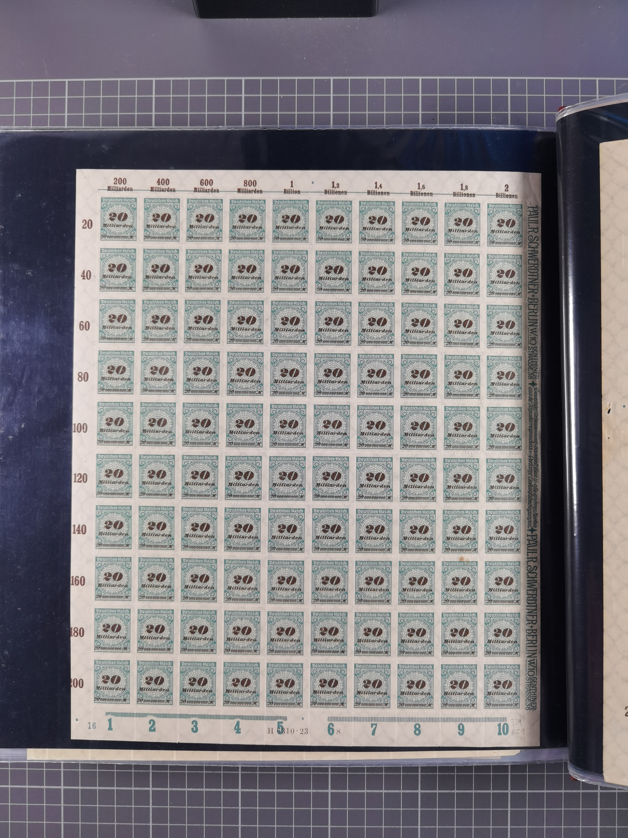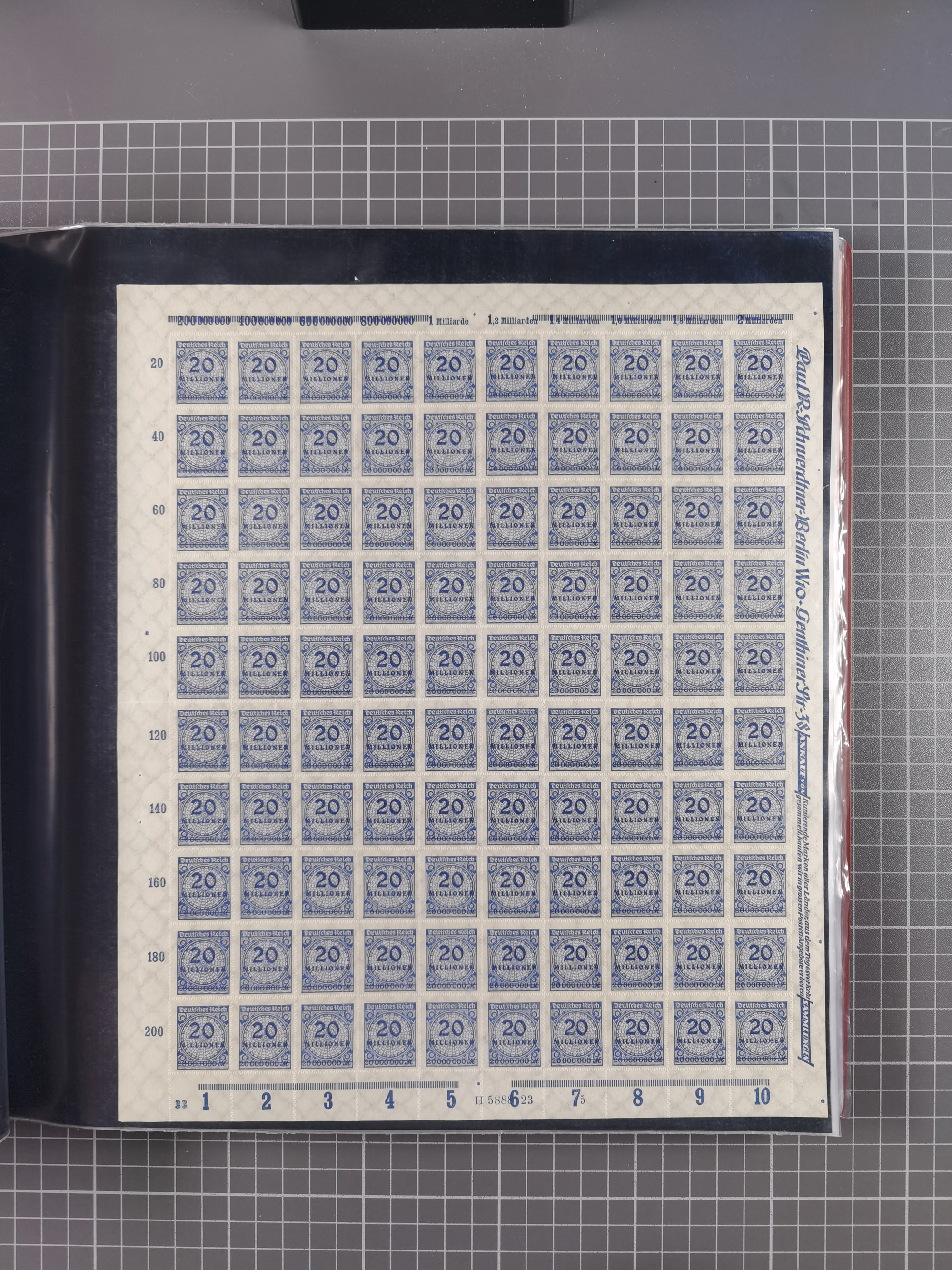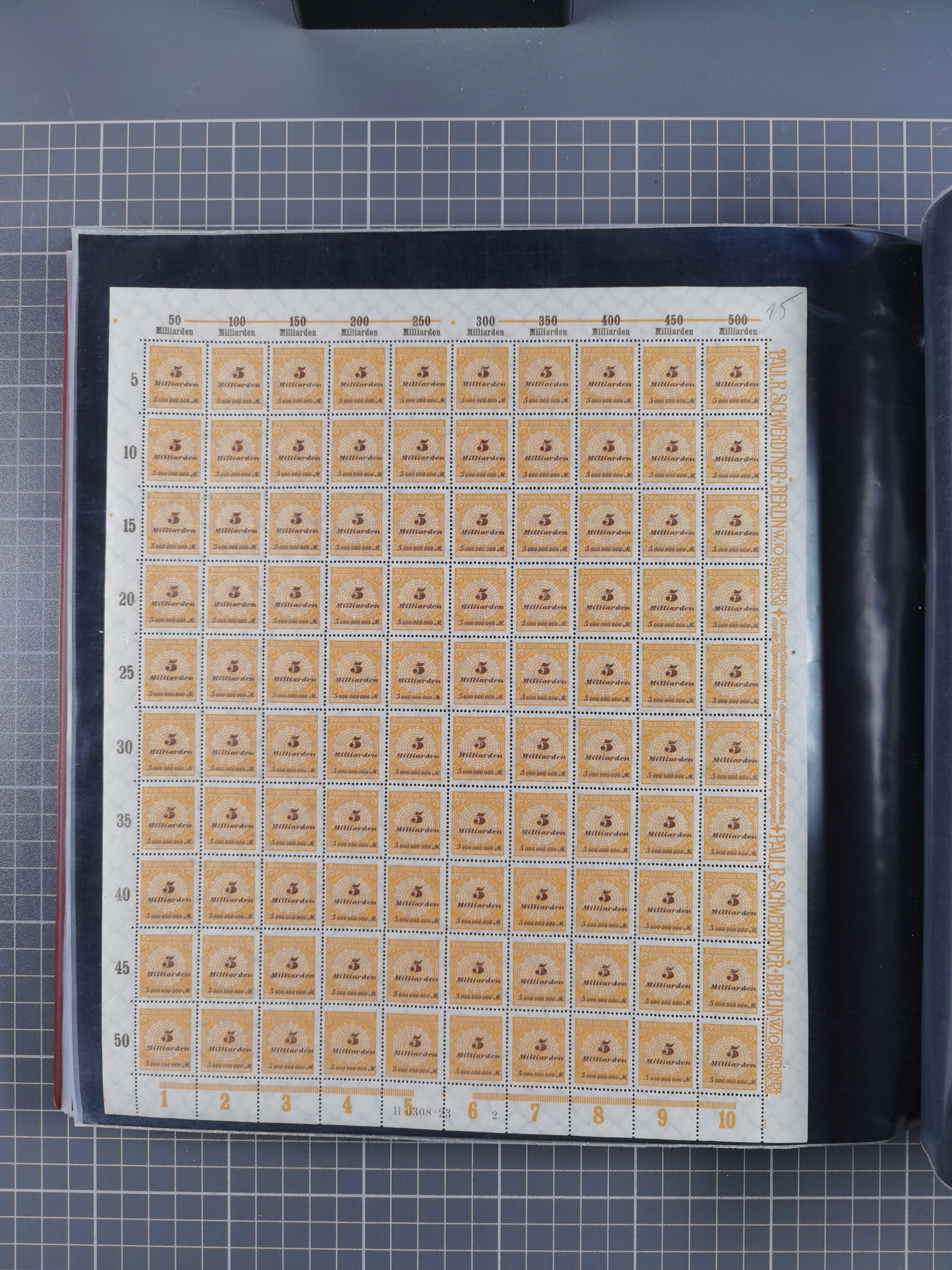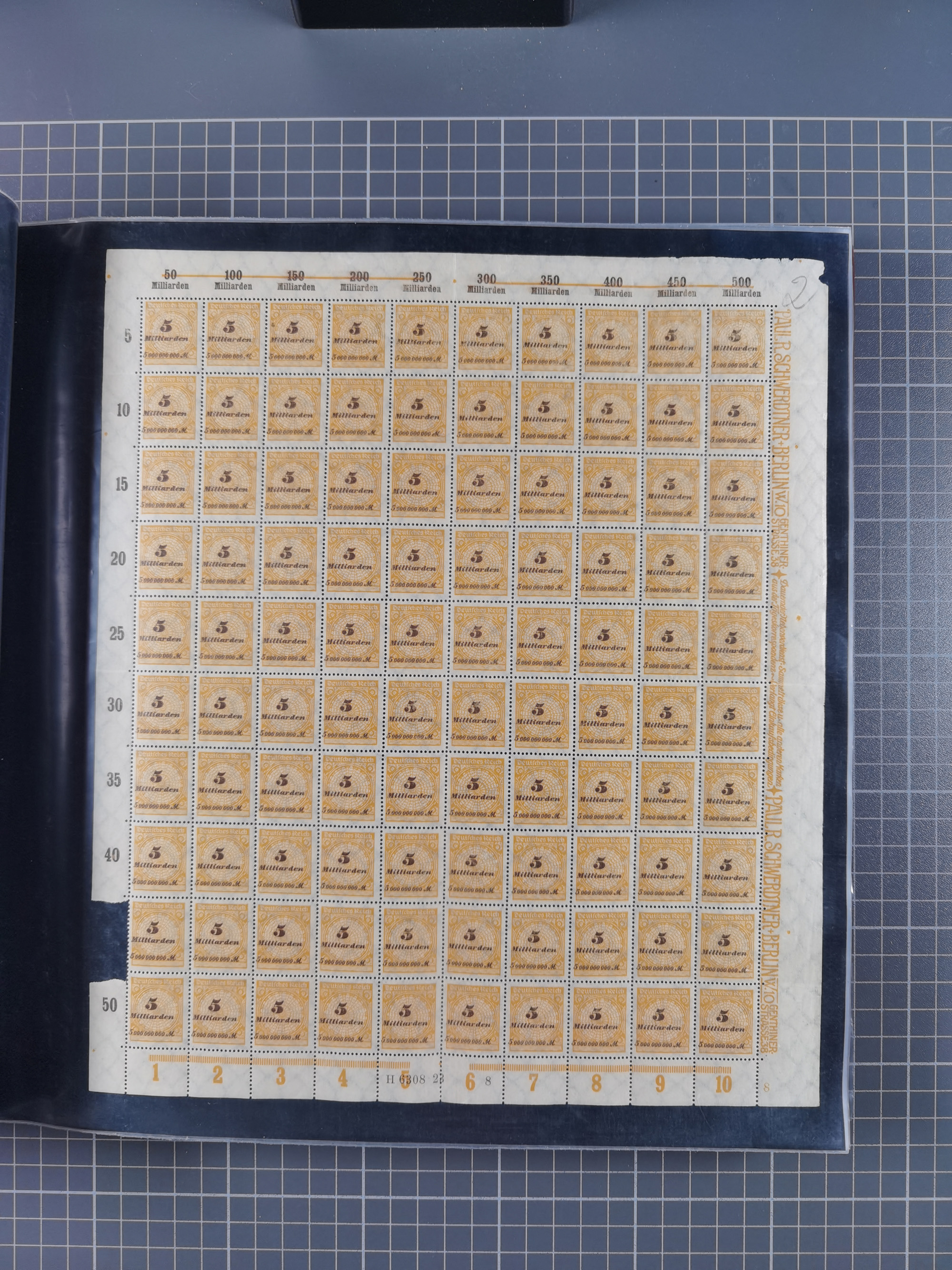 1922/23, meist postfrischer Engrosbestand mit überschlägig 300-400 Bögen, meist in Mengen zwischen 5 und 10 Stück, bis auf wenige ohne Gummi/Haftstellen in guter Erhaltung, in zwei großen Bogenmappen