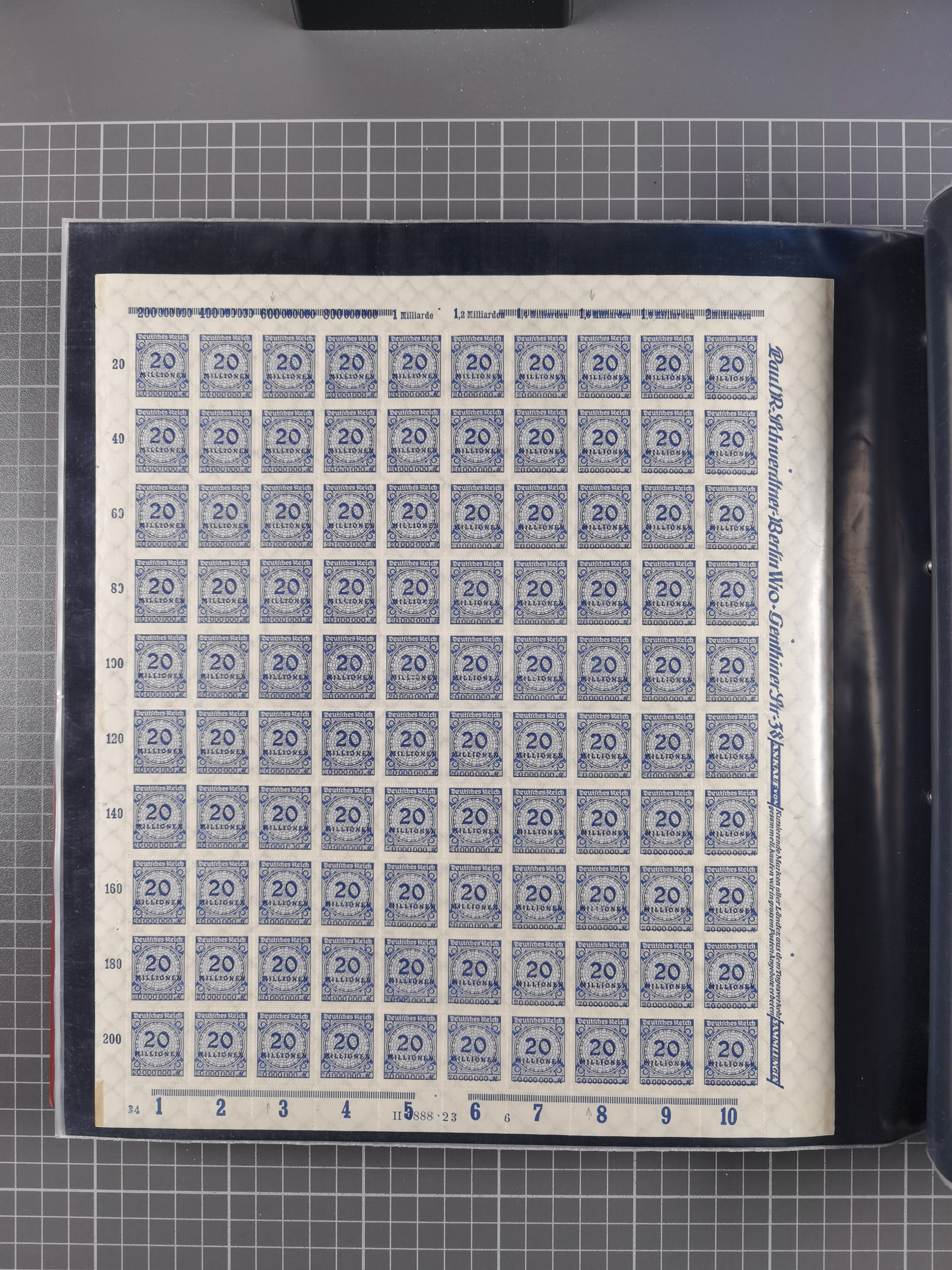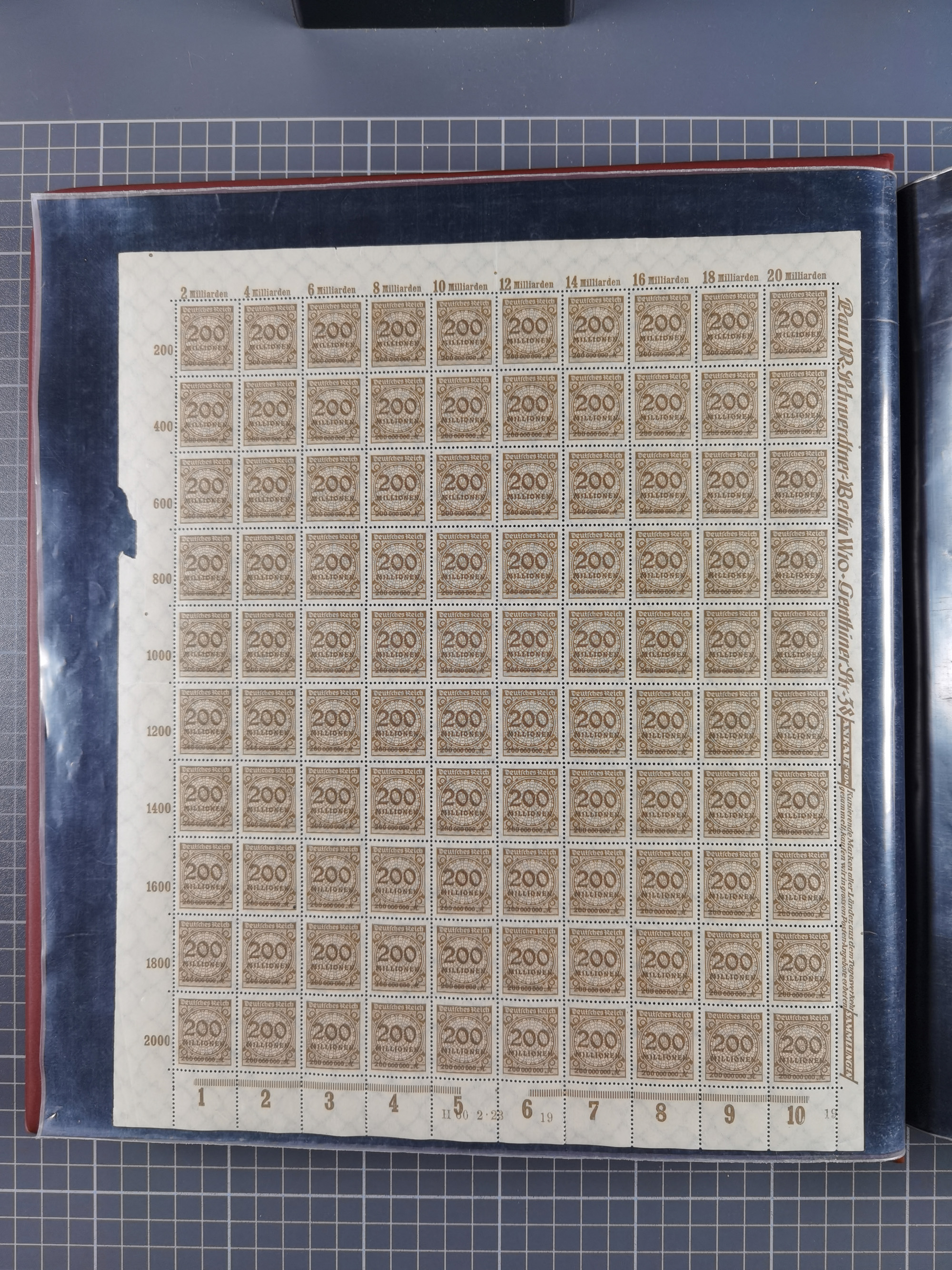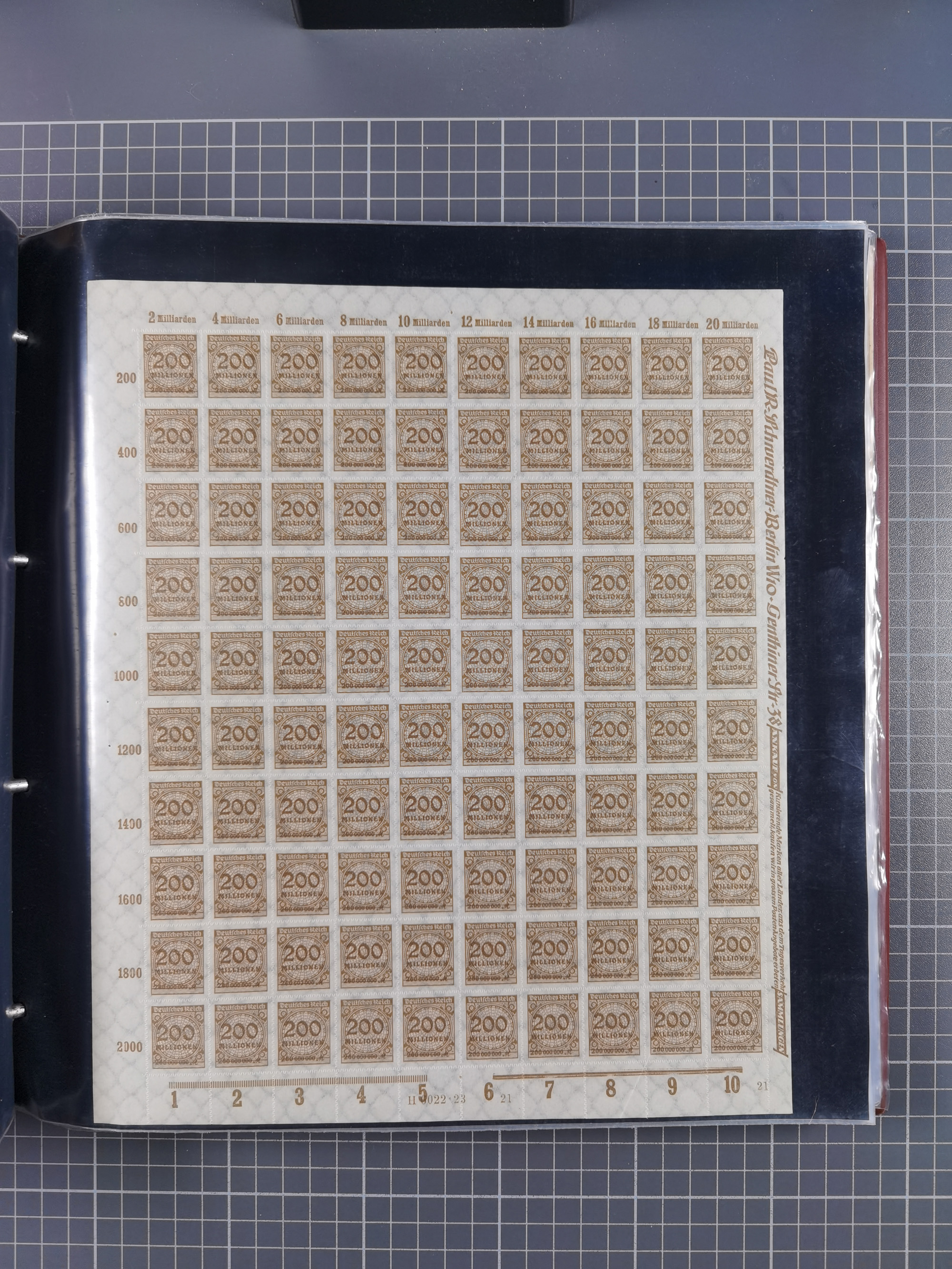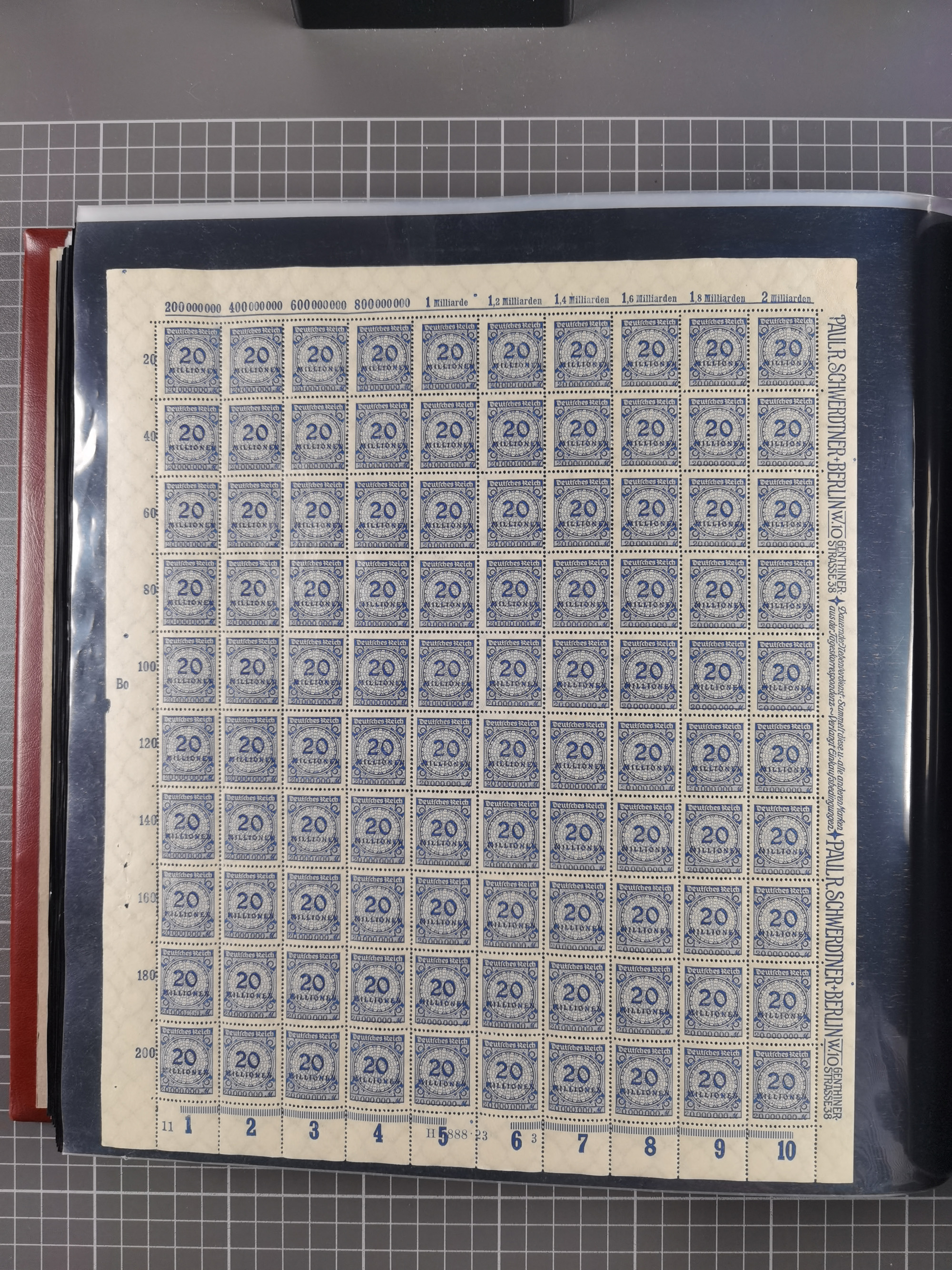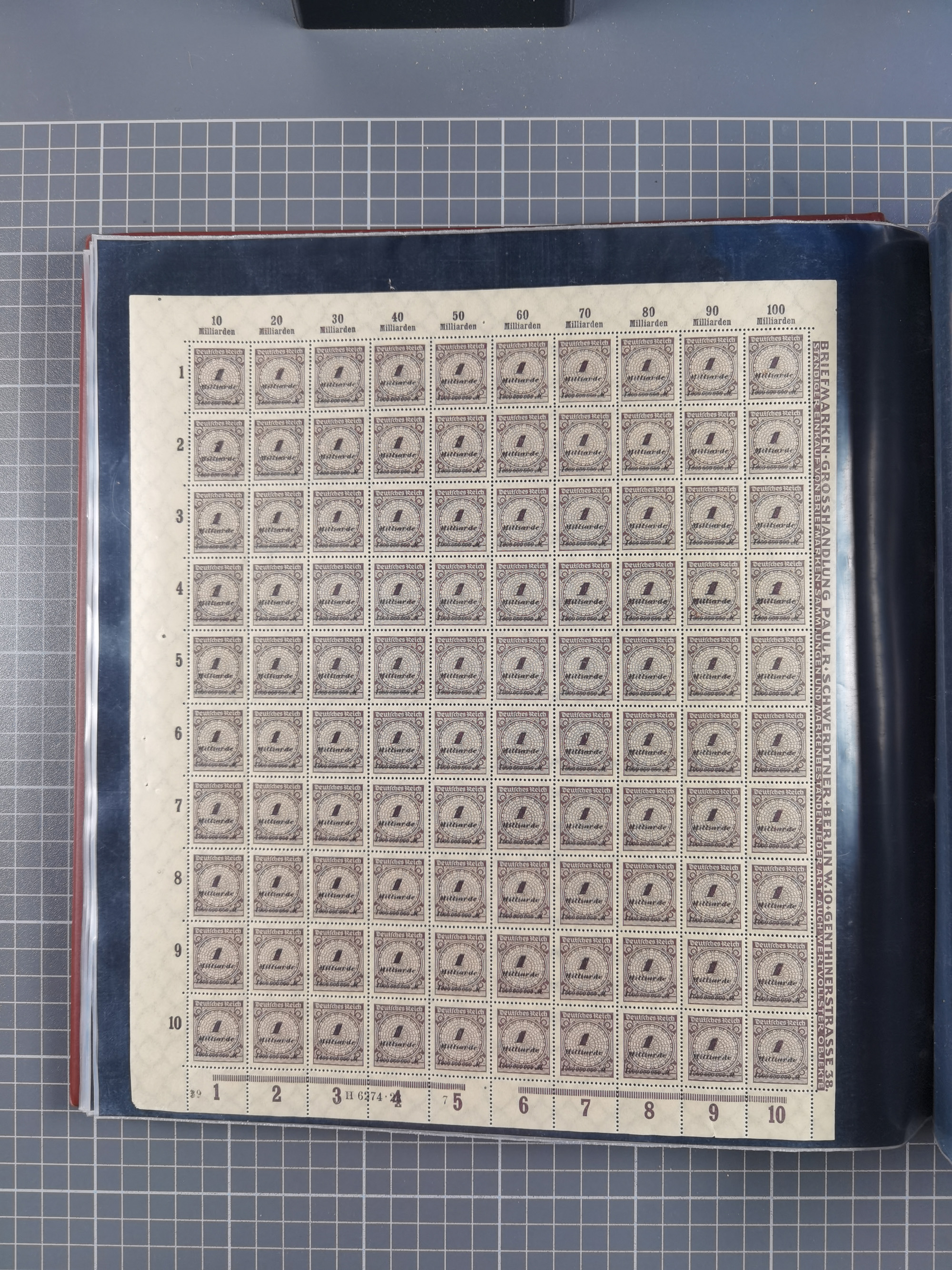 1922/23, meist postfrischer Engrosbestand mit überschlägig 300-400 Bögen, meist in Mengen zwischen 5 und 10 Stück, bis auf wenige ohne Gummi/Haftstellen in guter Erhaltung, in zwei großen Bogenmappen