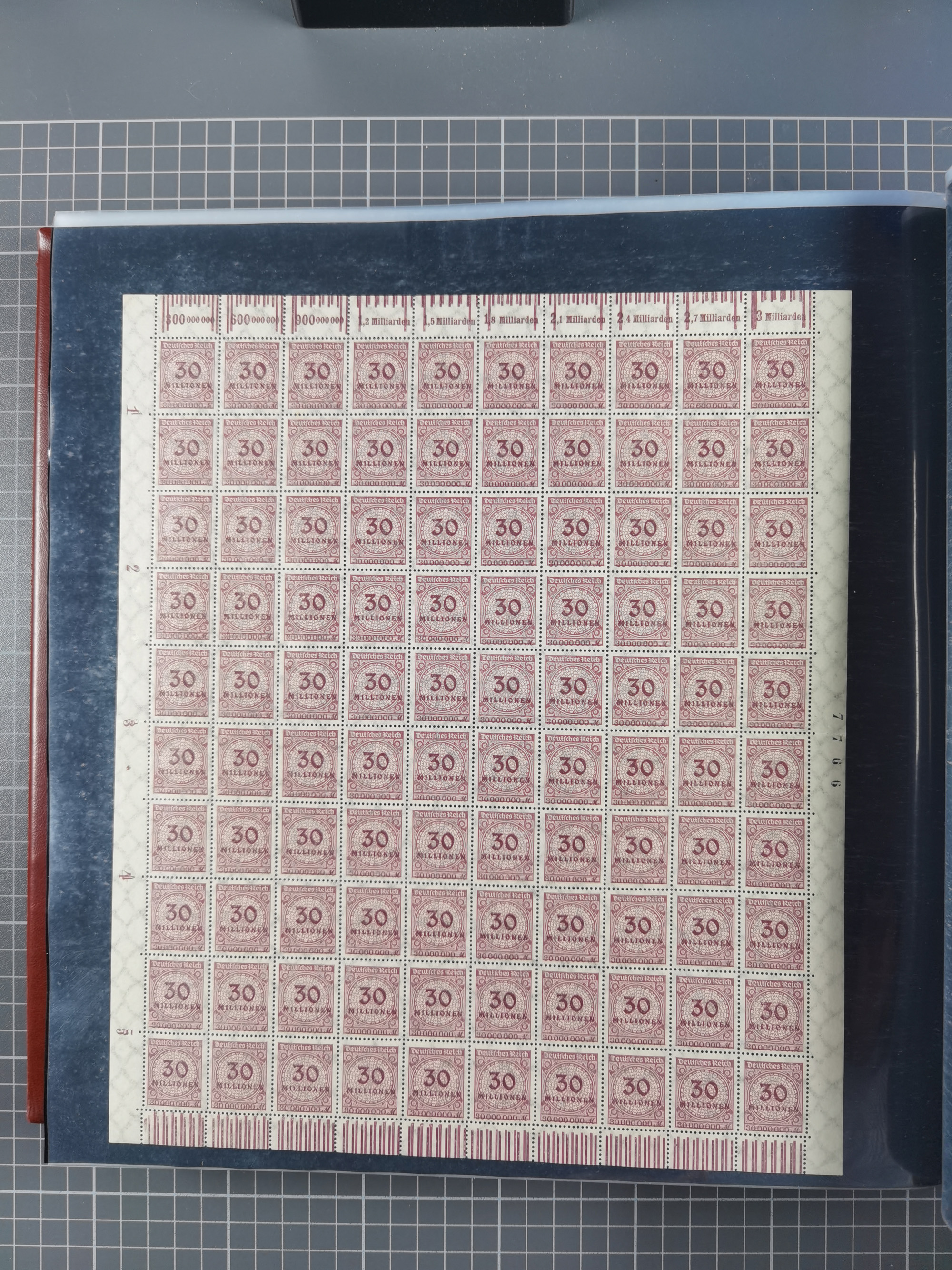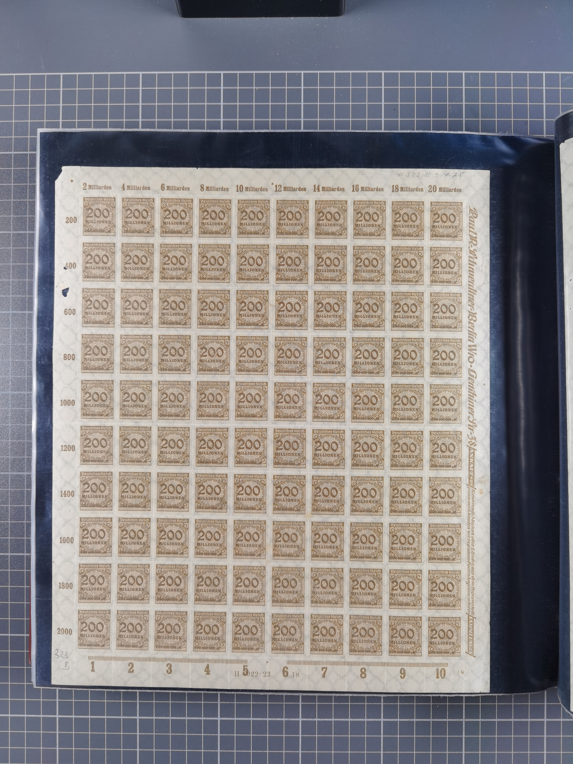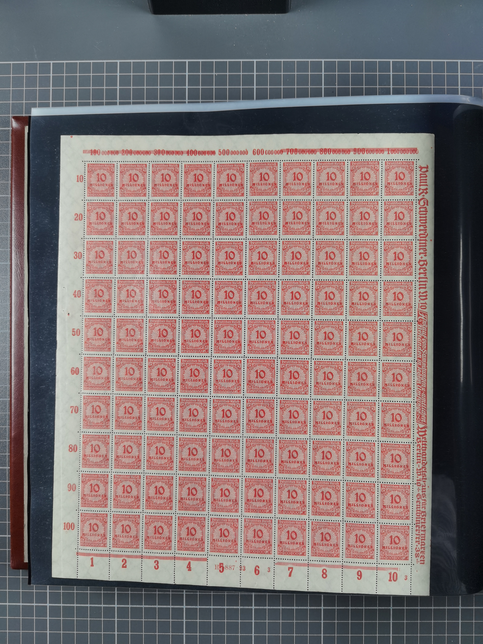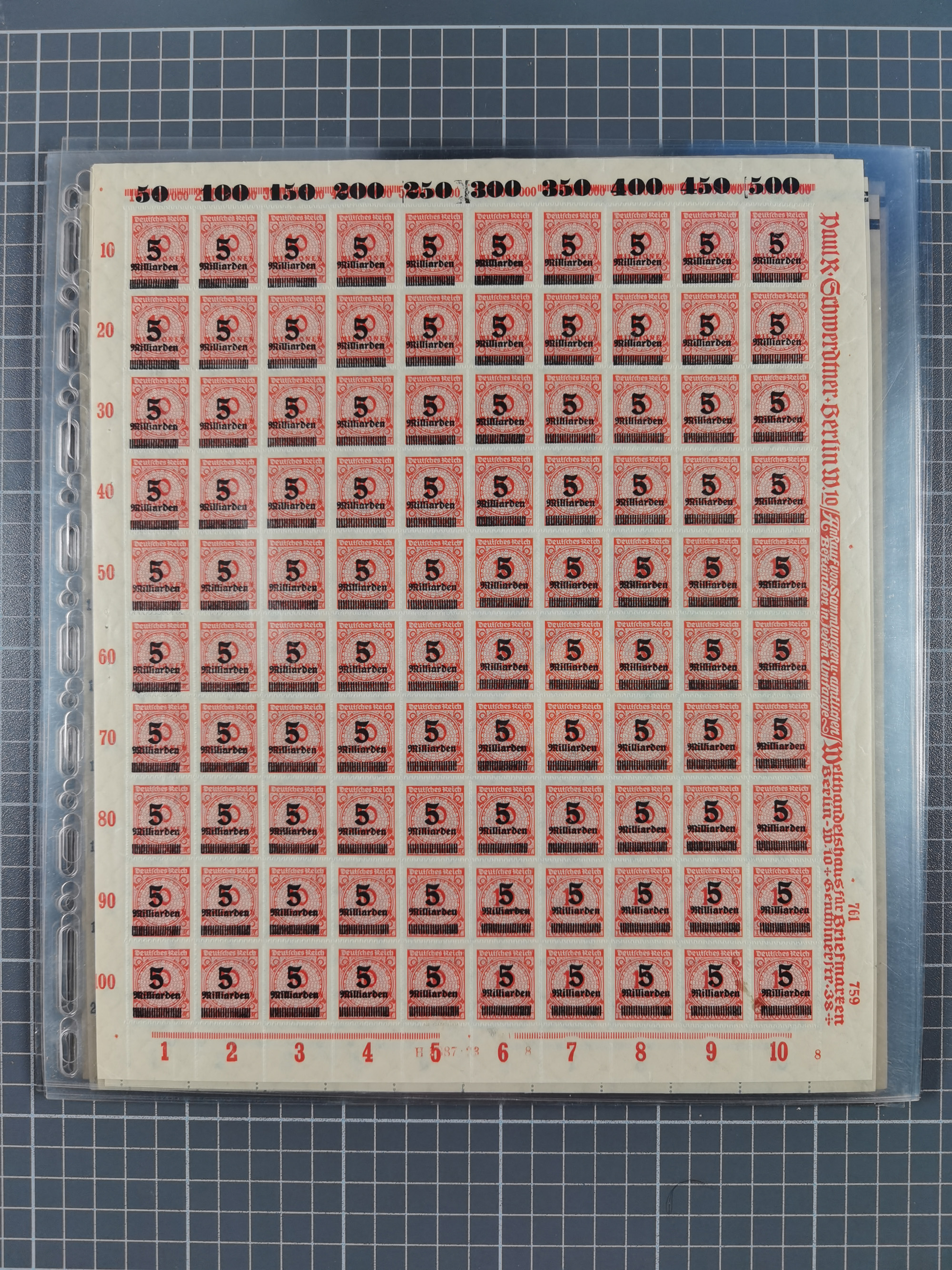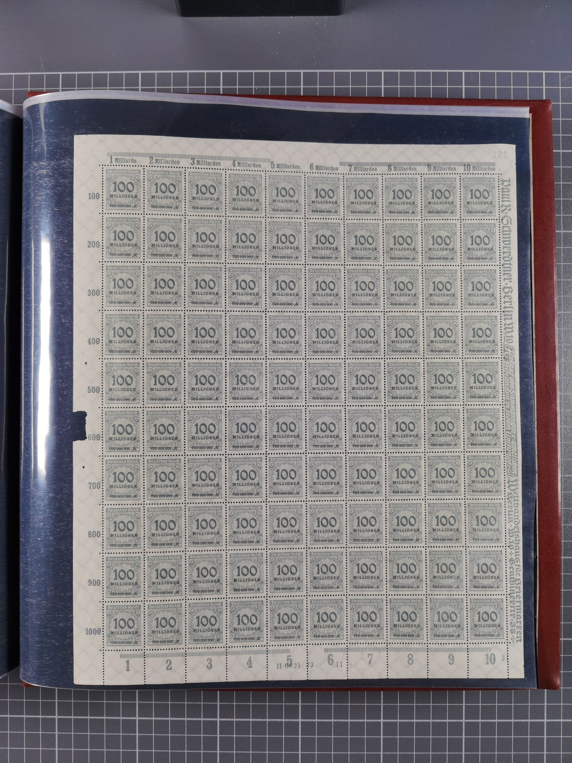 1922/23, meist postfrischer Engrosbestand mit überschlägig 300-400 Bögen, meist in Mengen zwischen 5 und 10 Stück, bis auf wenige ohne Gummi/Haftstellen in guter Erhaltung, in zwei großen Bogenmappen