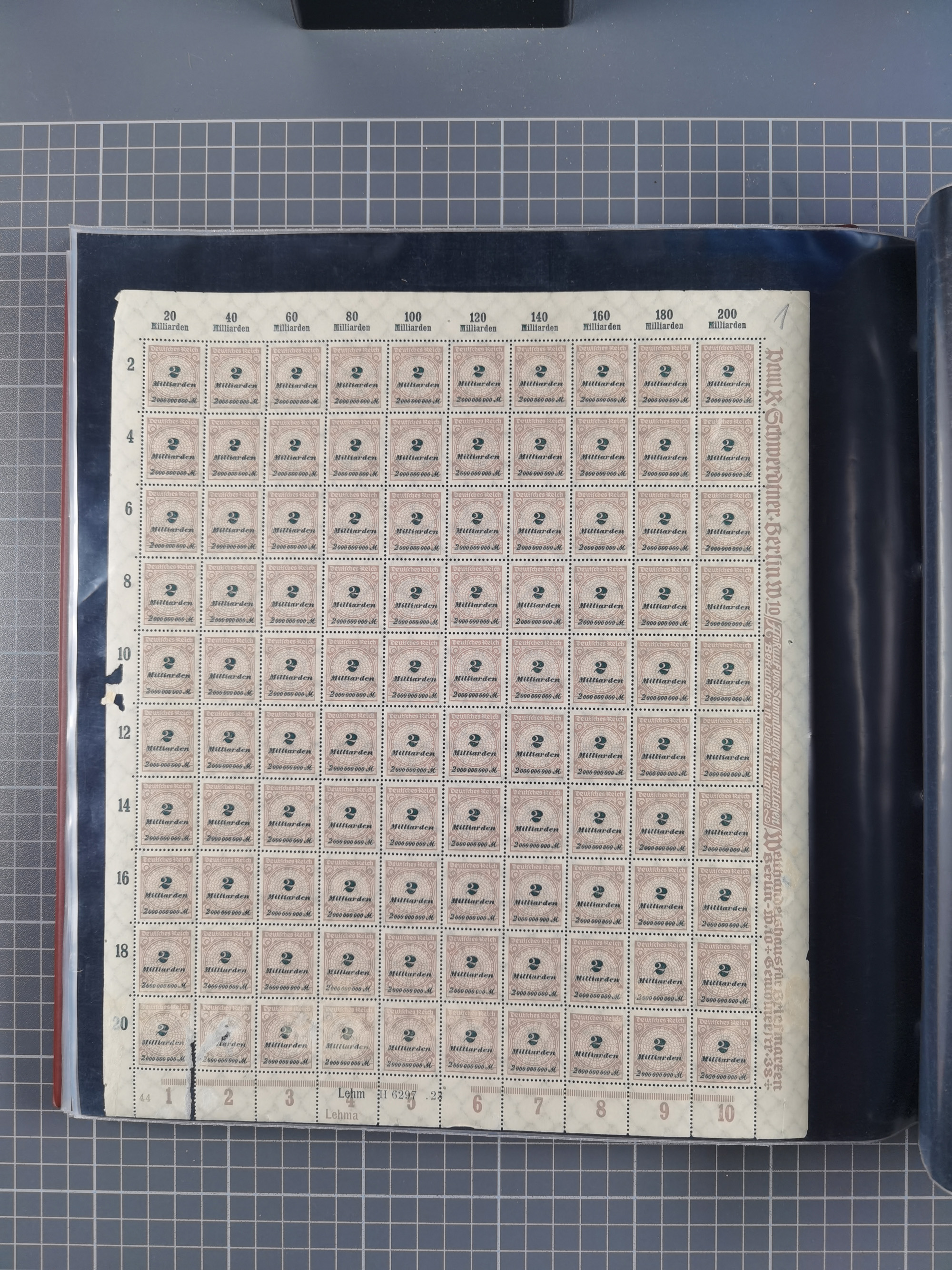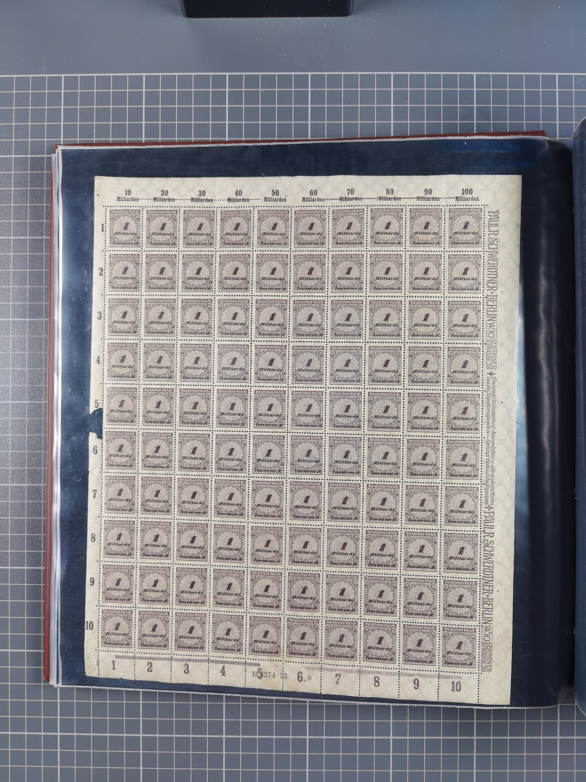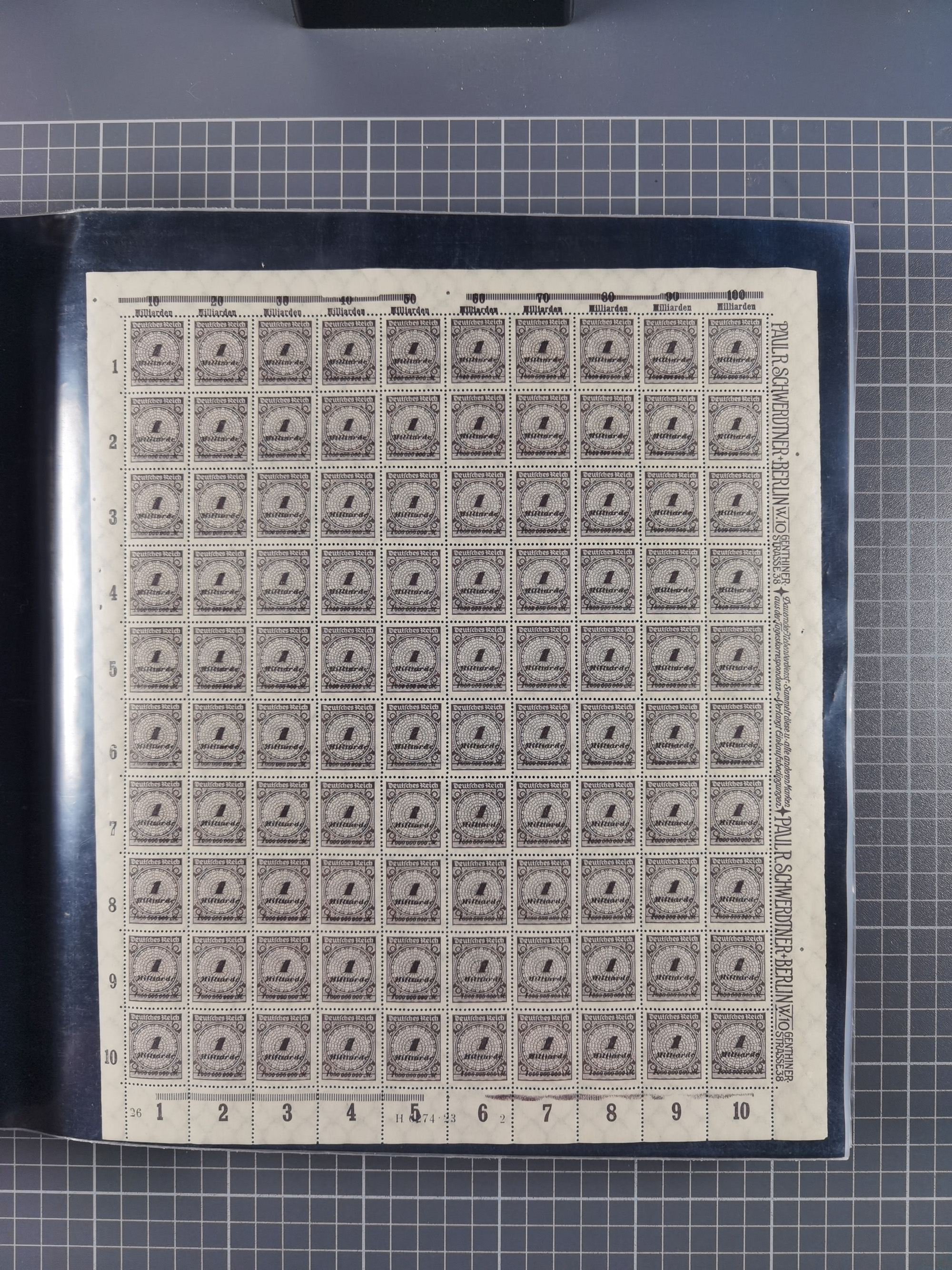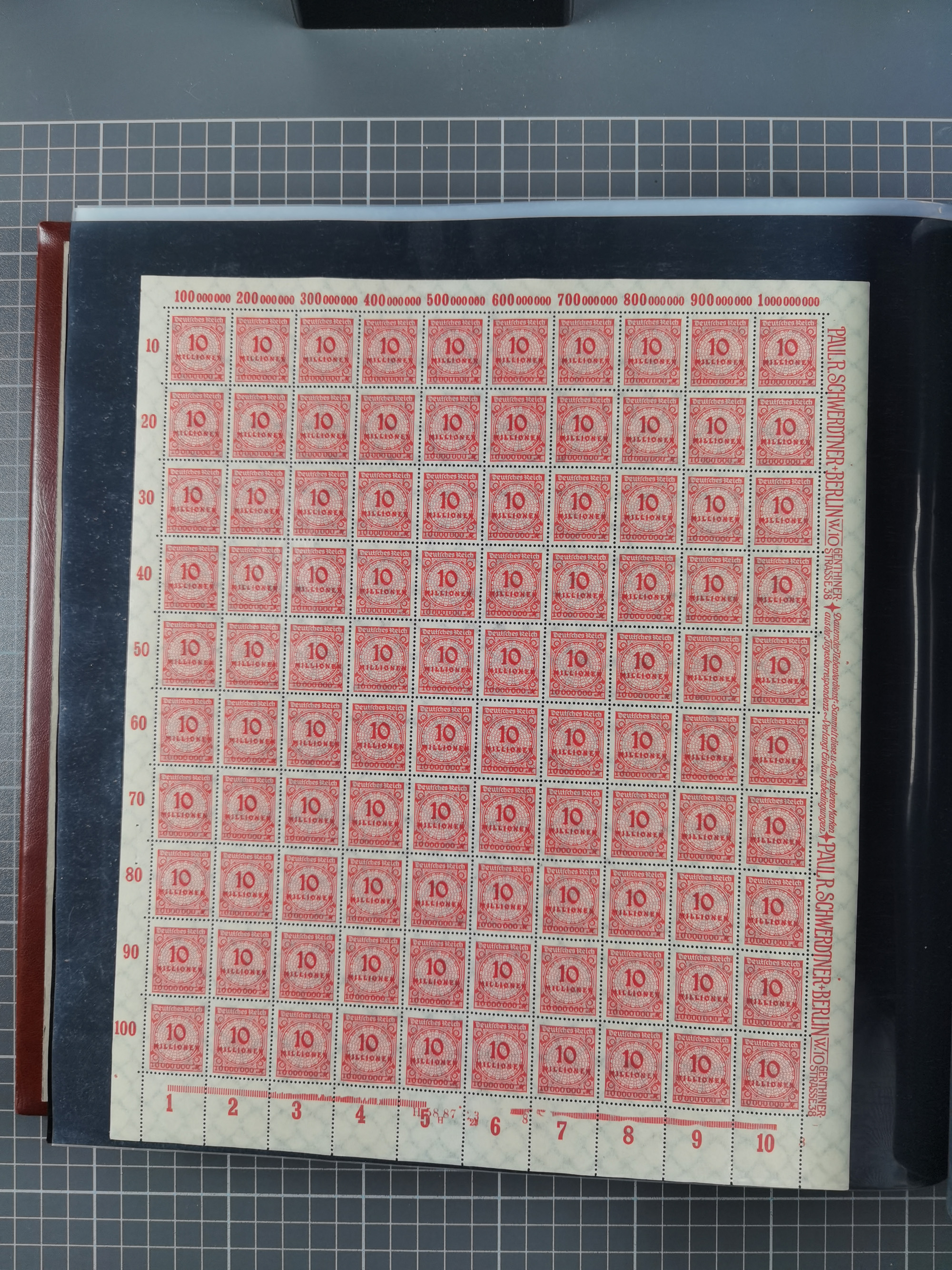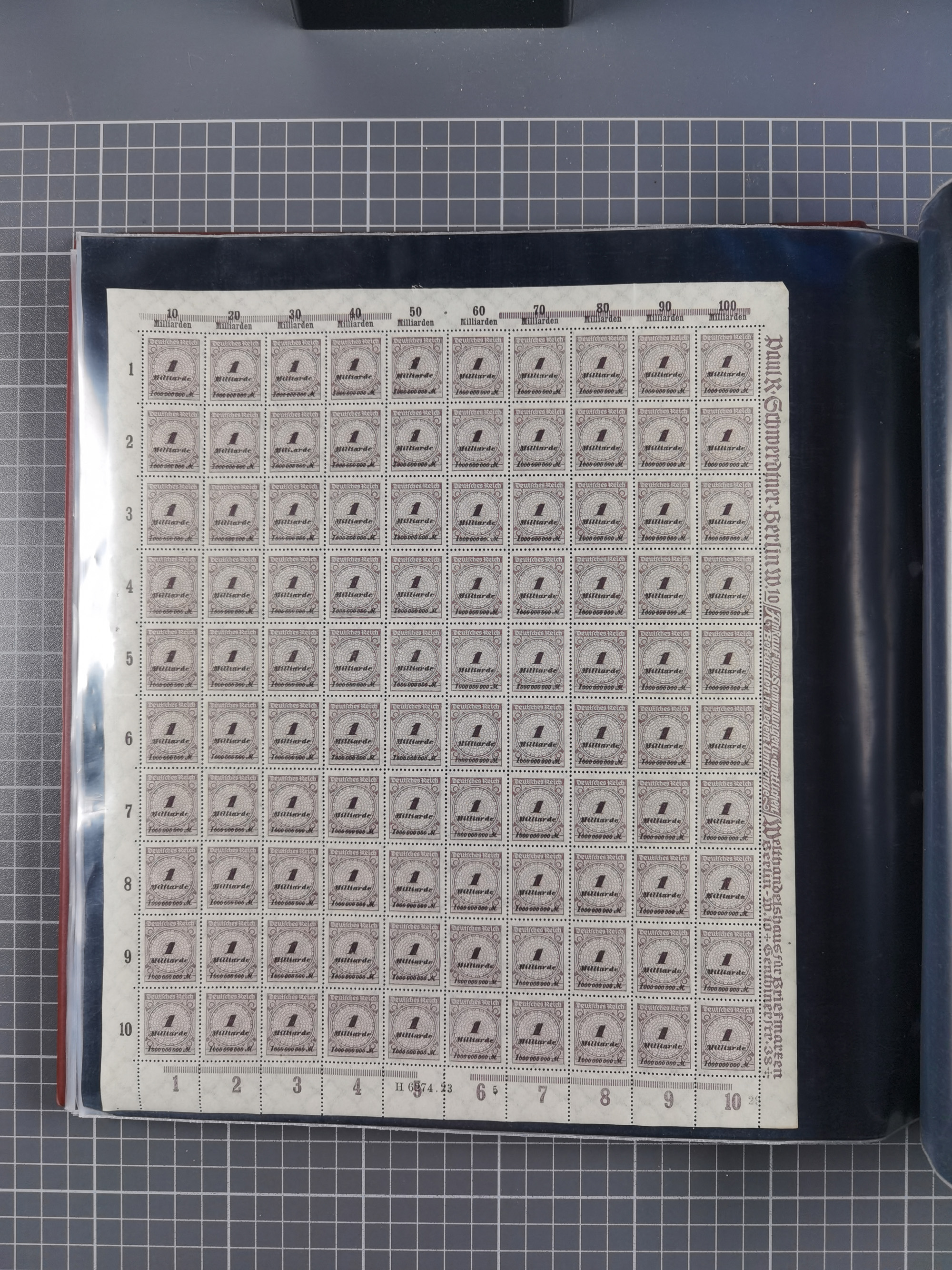 1922/23, meist postfrischer Engrosbestand mit überschlägig 300-400 Bögen, meist in Mengen zwischen 5 und 10 Stück, bis auf wenige ohne Gummi/Haftstellen in guter Erhaltung, in zwei großen Bogenmappen