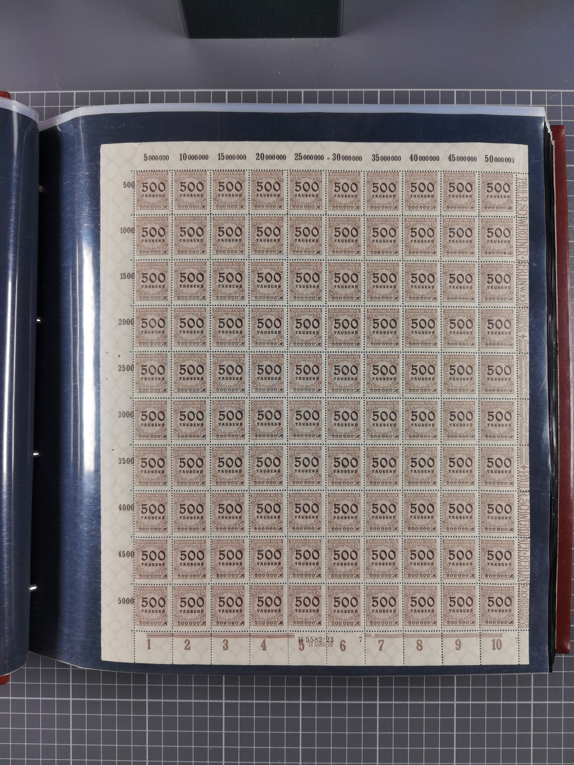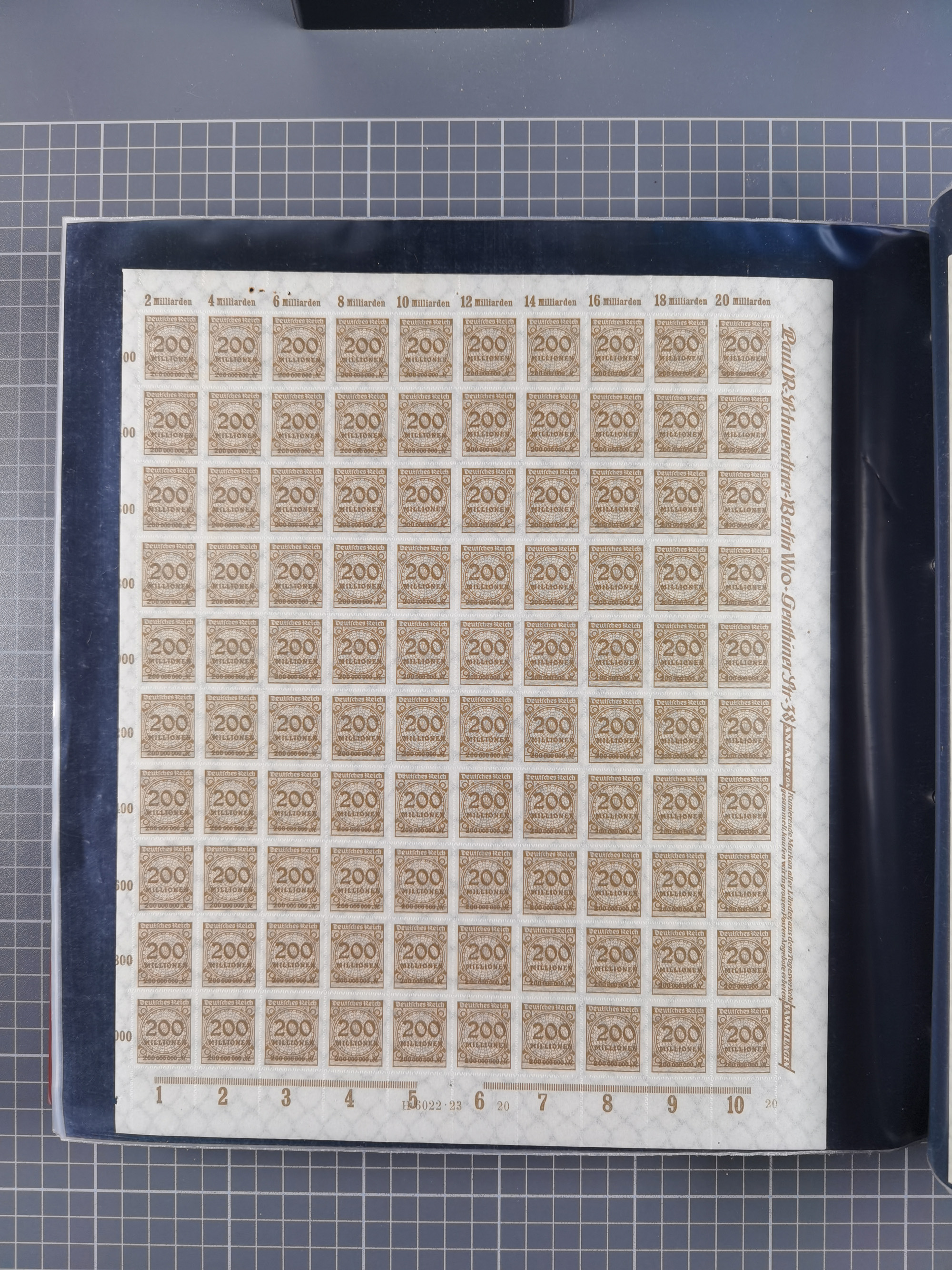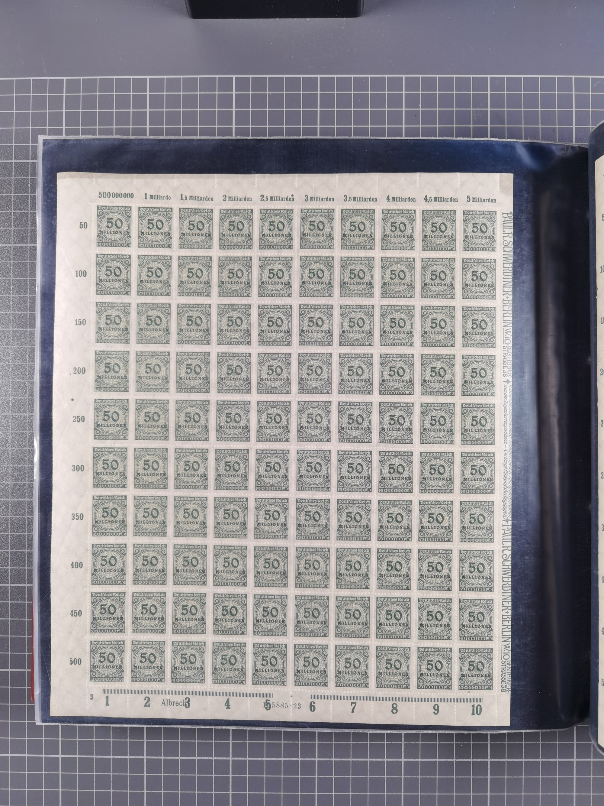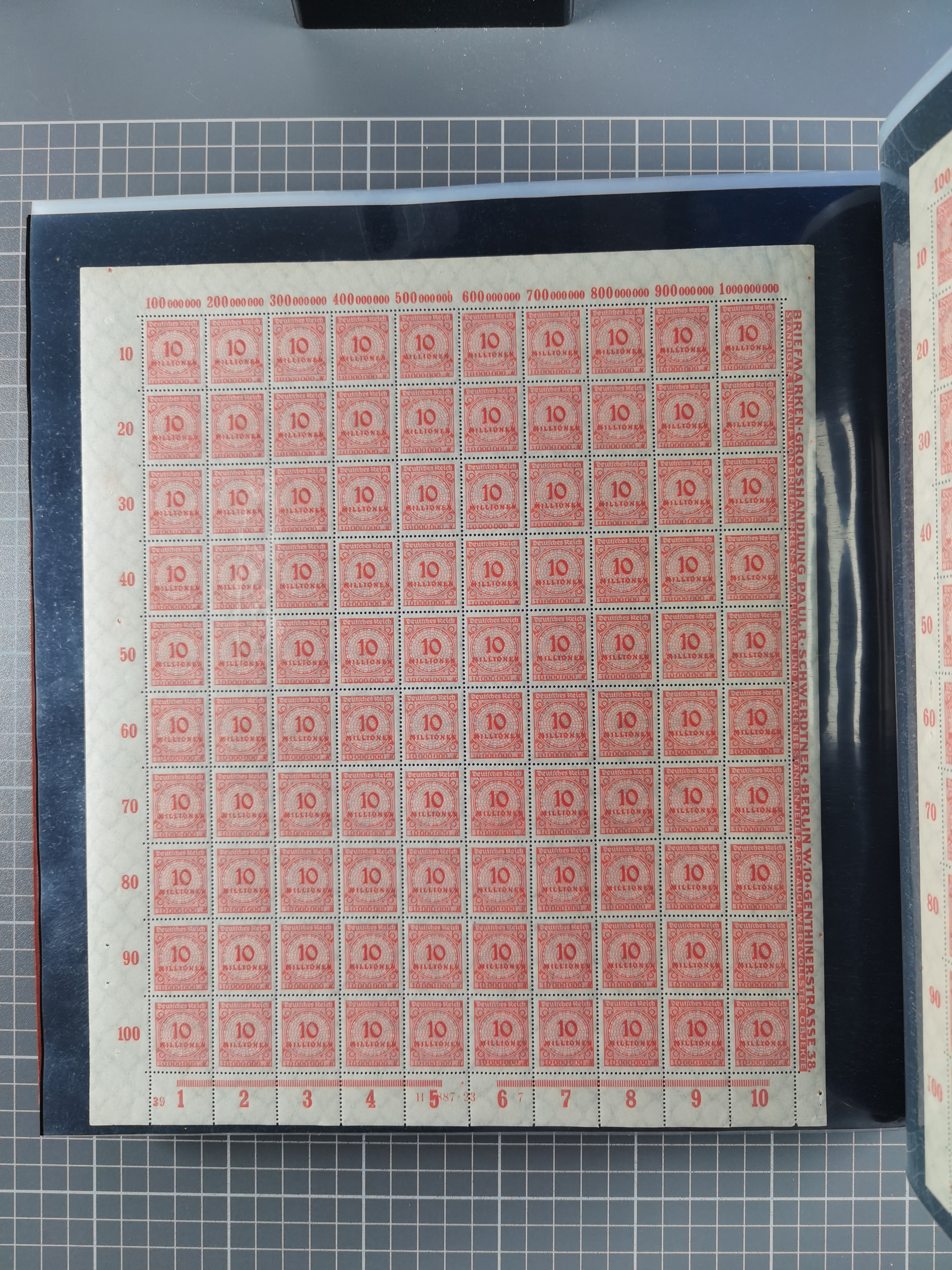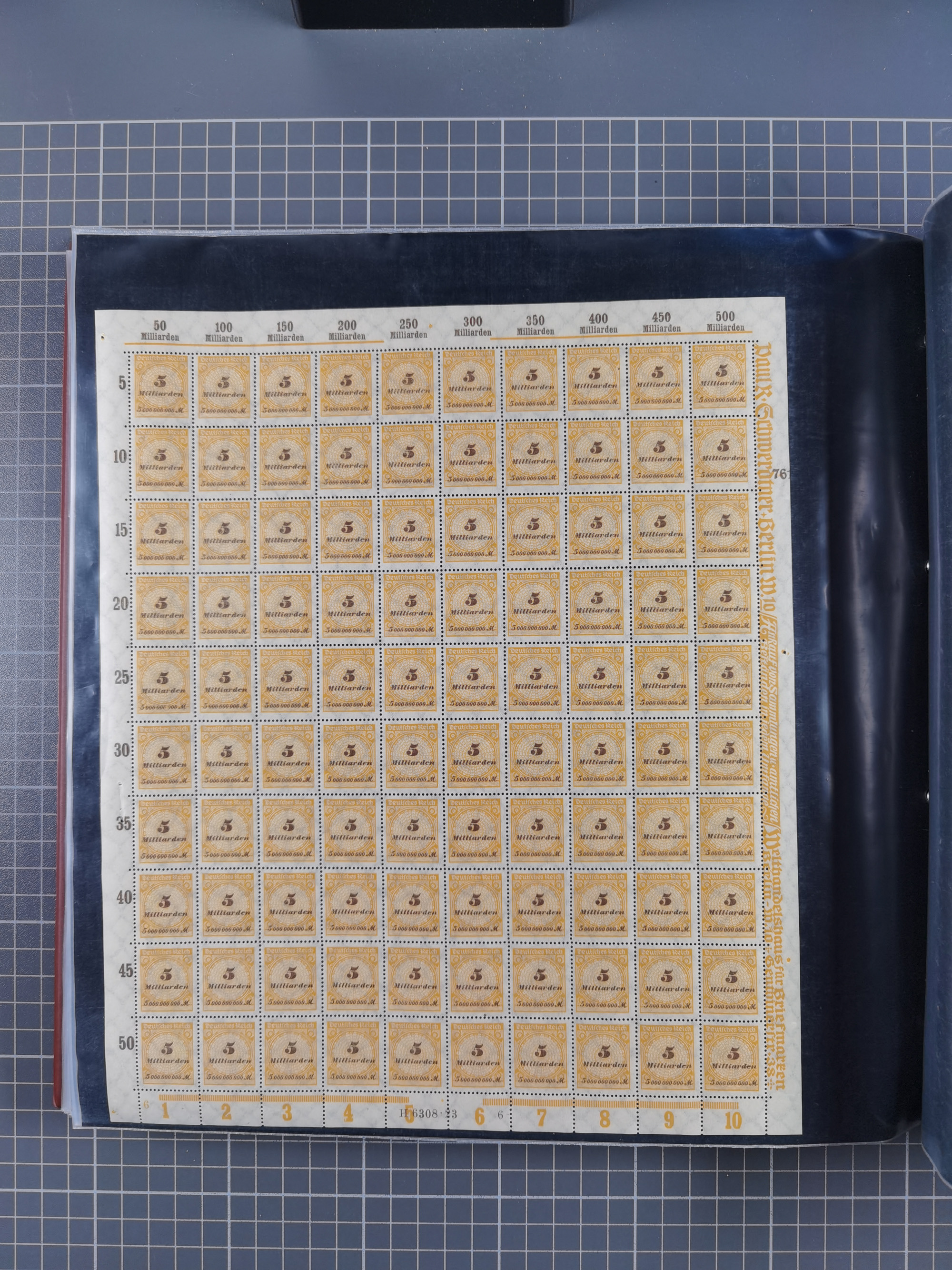 1922/23, meist postfrischer Engrosbestand mit überschlägig 300-400 Bögen, meist in Mengen zwischen 5 und 10 Stück, bis auf wenige ohne Gummi/Haftstellen in guter Erhaltung, in zwei großen Bogenmappen