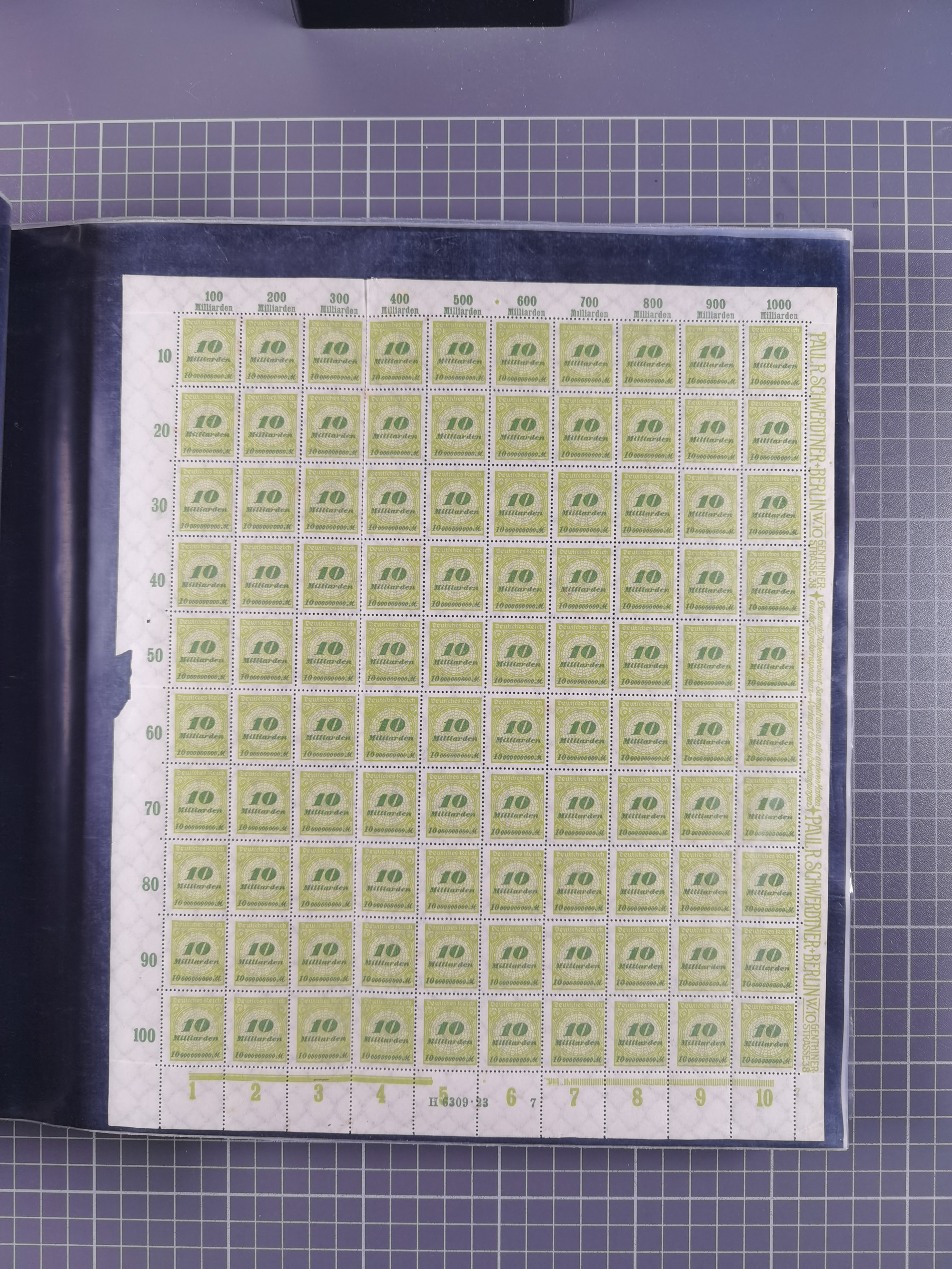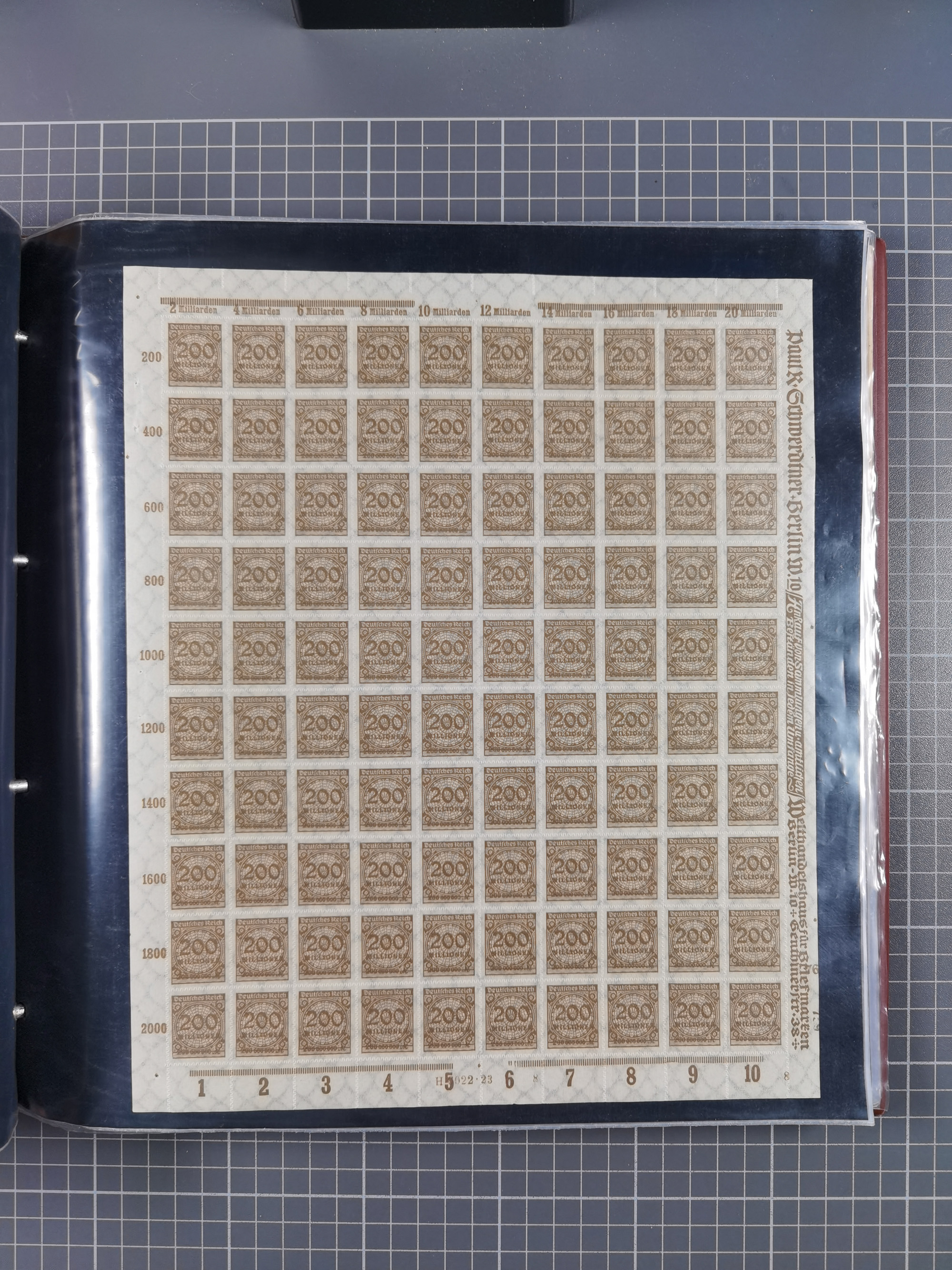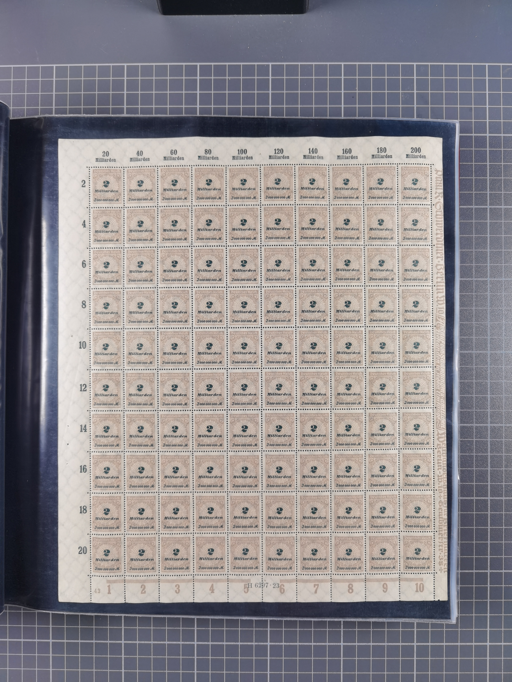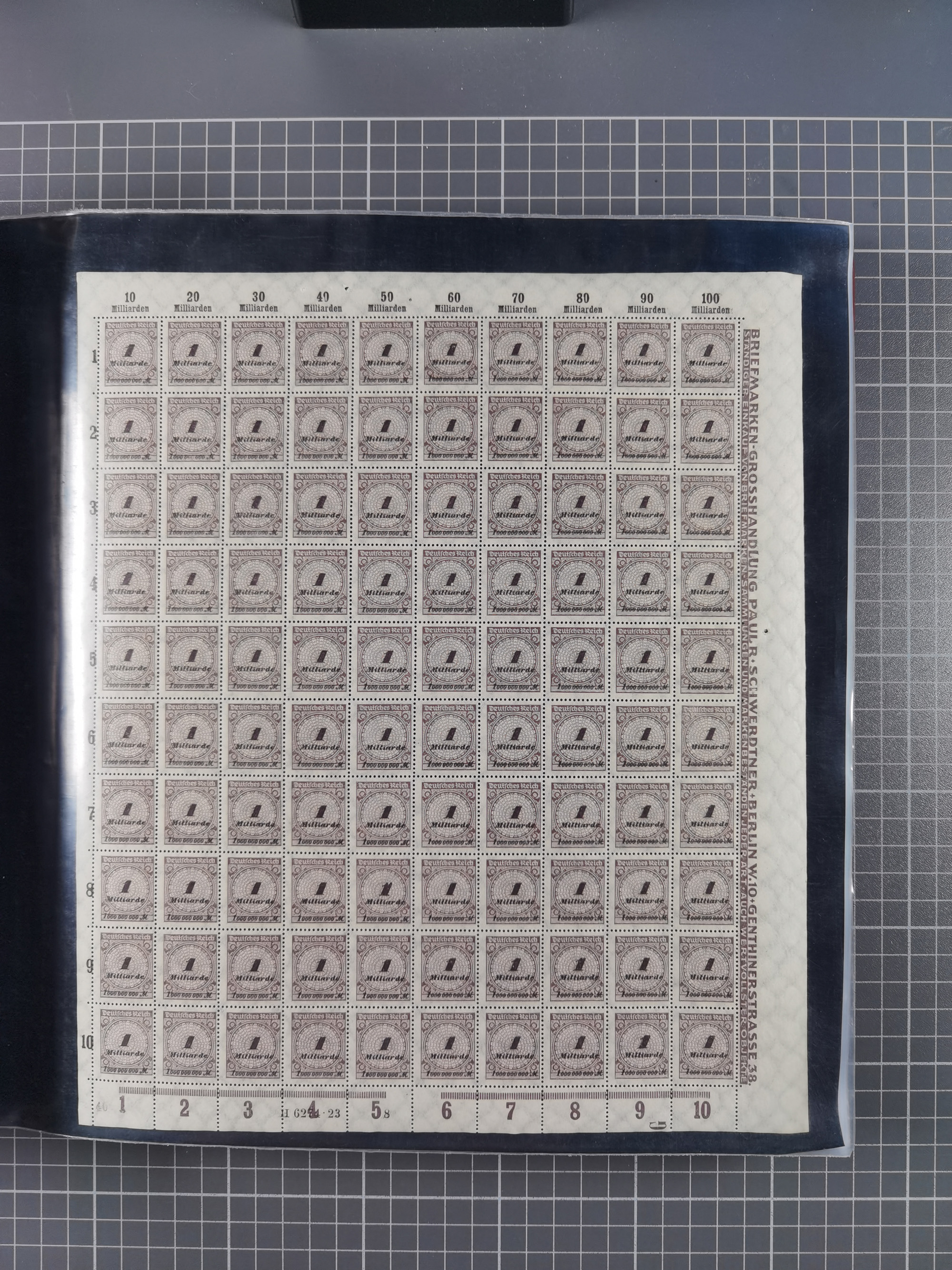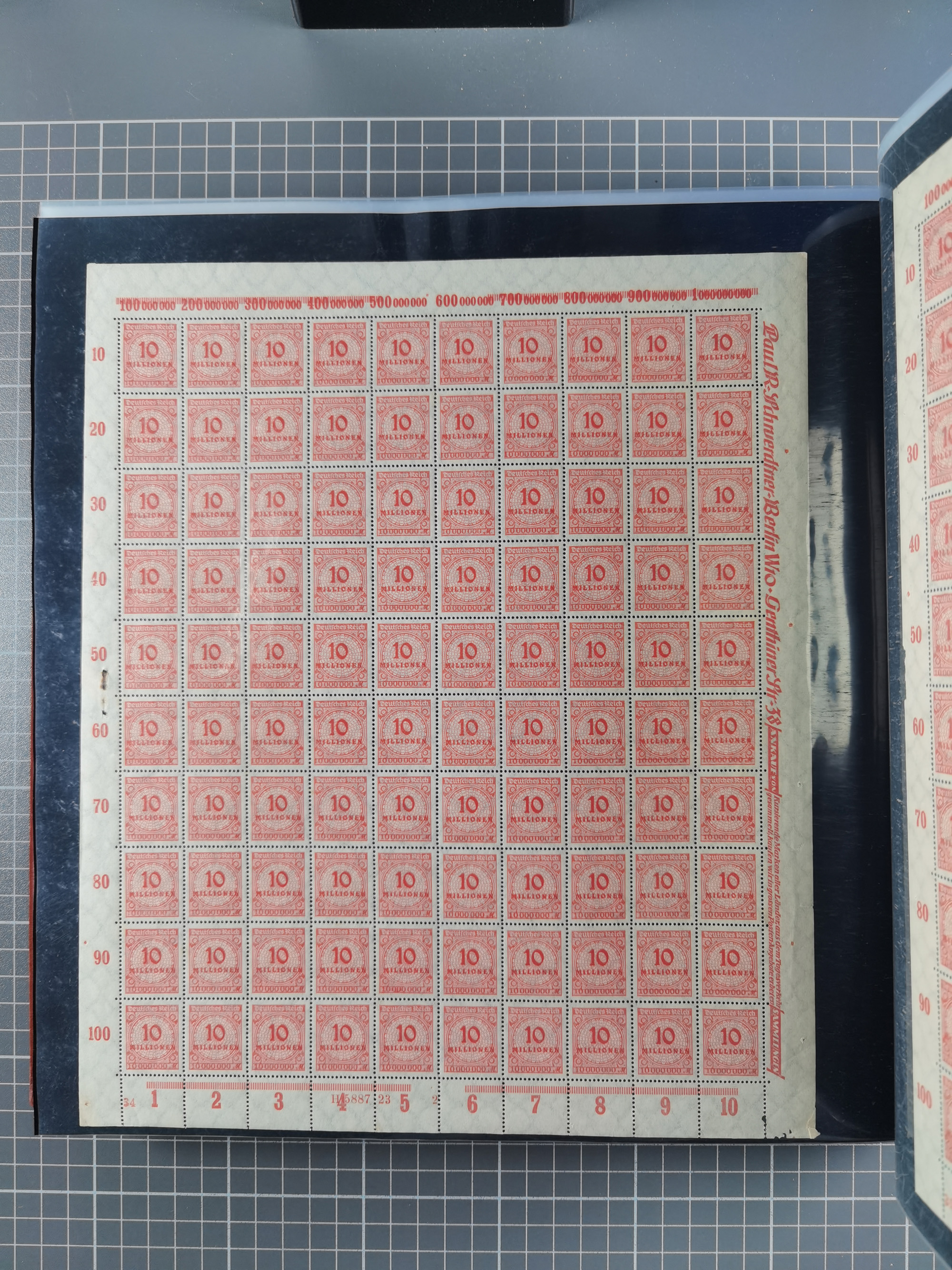 1922/23, meist postfrischer Engrosbestand mit überschlägig 300-400 Bögen, meist in Mengen zwischen 5 und 10 Stück, bis auf wenige ohne Gummi/Haftstellen in guter Erhaltung, in zwei großen Bogenmappen