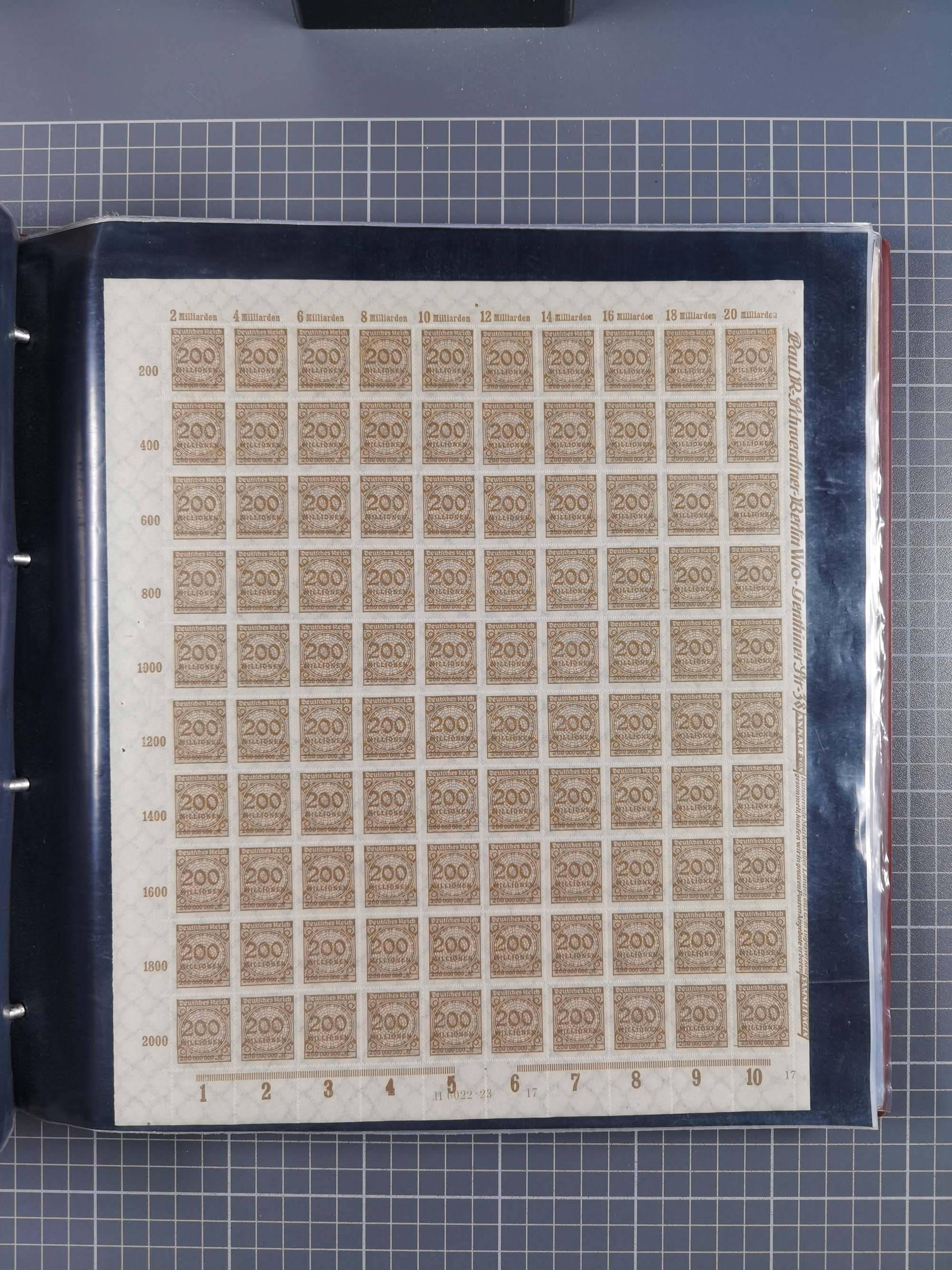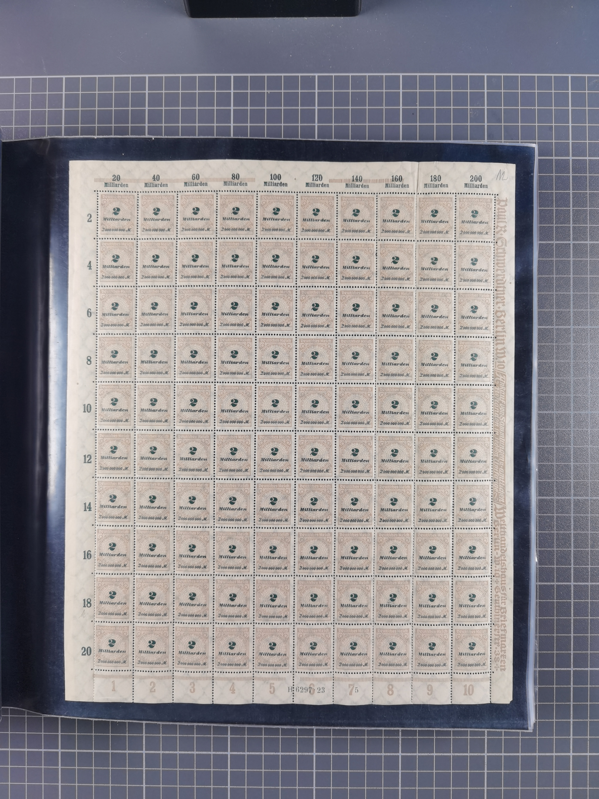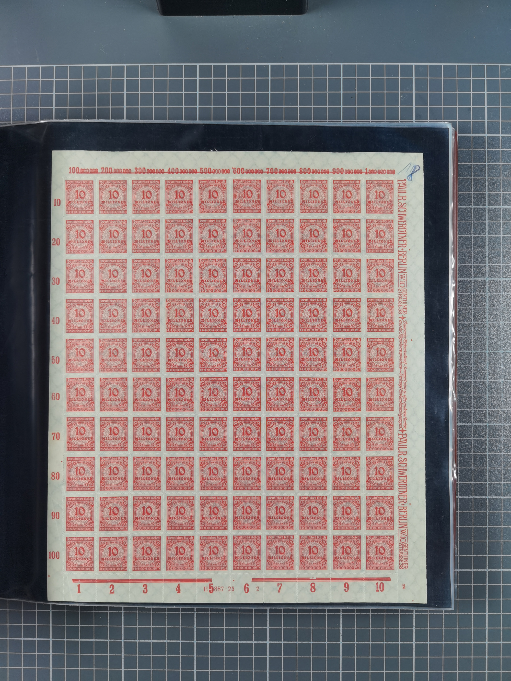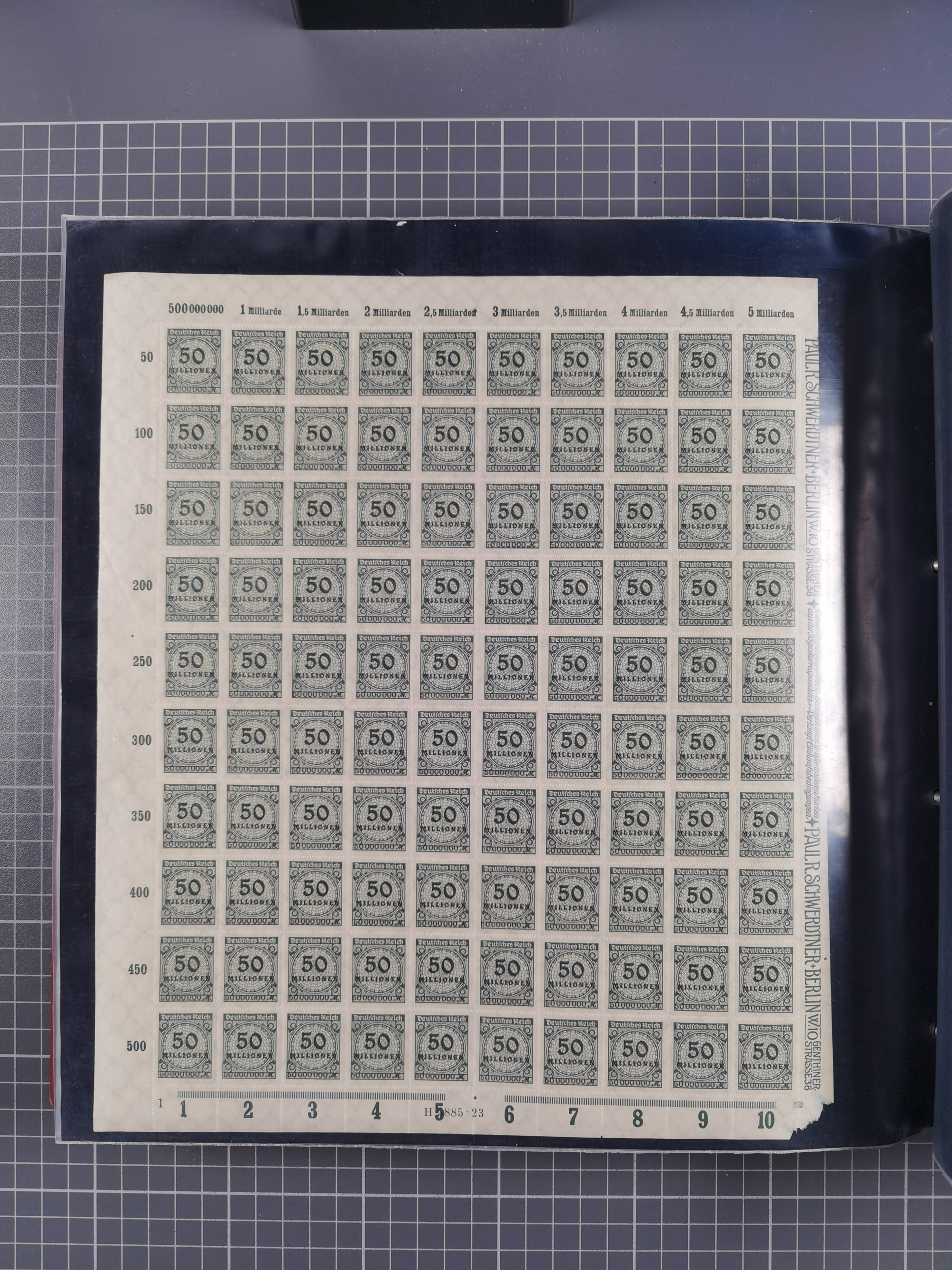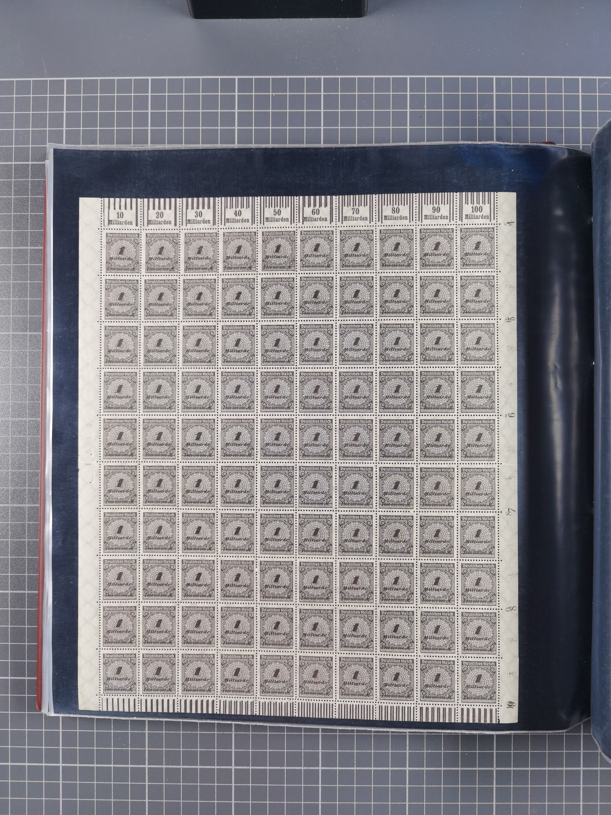1922/23, meist postfrischer Engrosbestand mit überschlägig 300-400 Bögen, meist in Mengen zwischen 5 und 10 Stück, bis auf wenige ohne Gummi/Haftstellen in guter Erhaltung, in zwei großen Bogenmappen