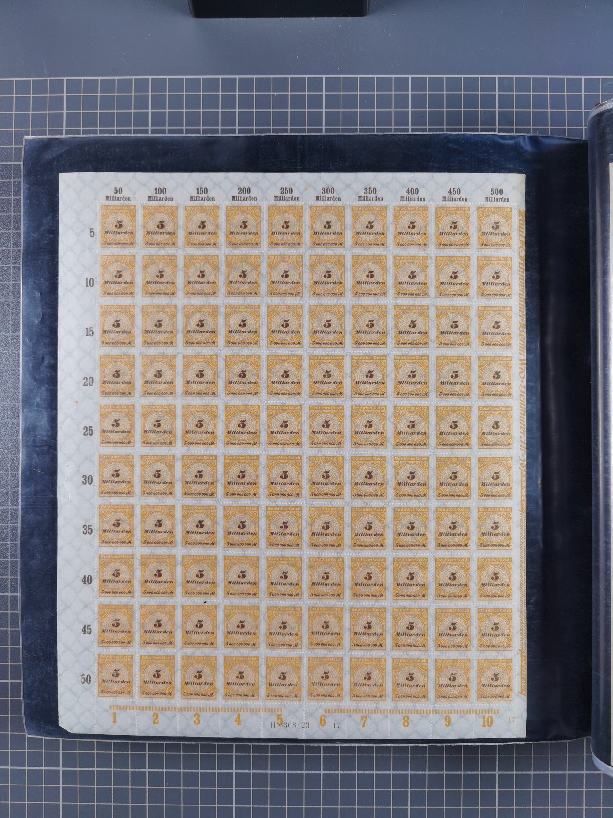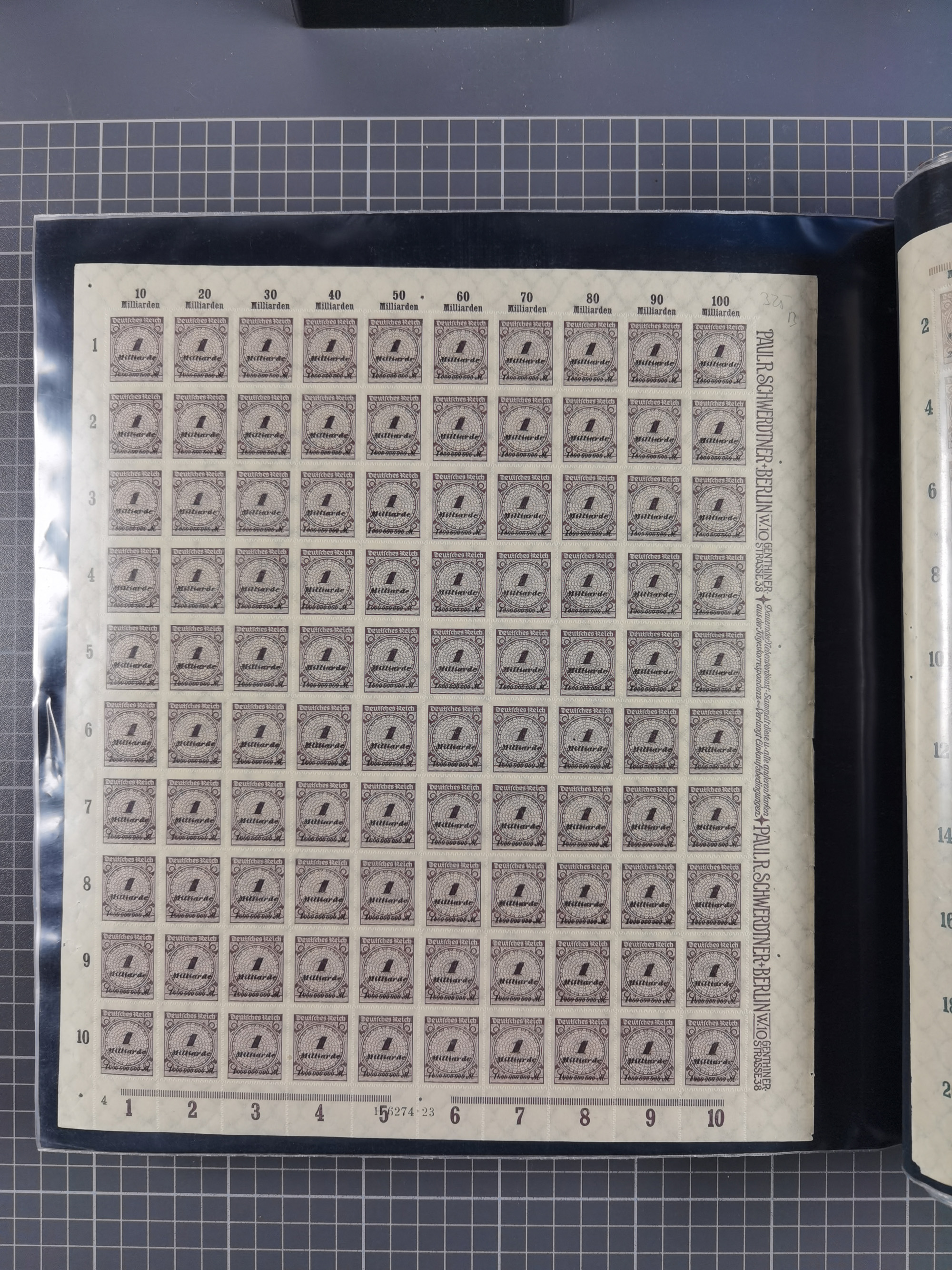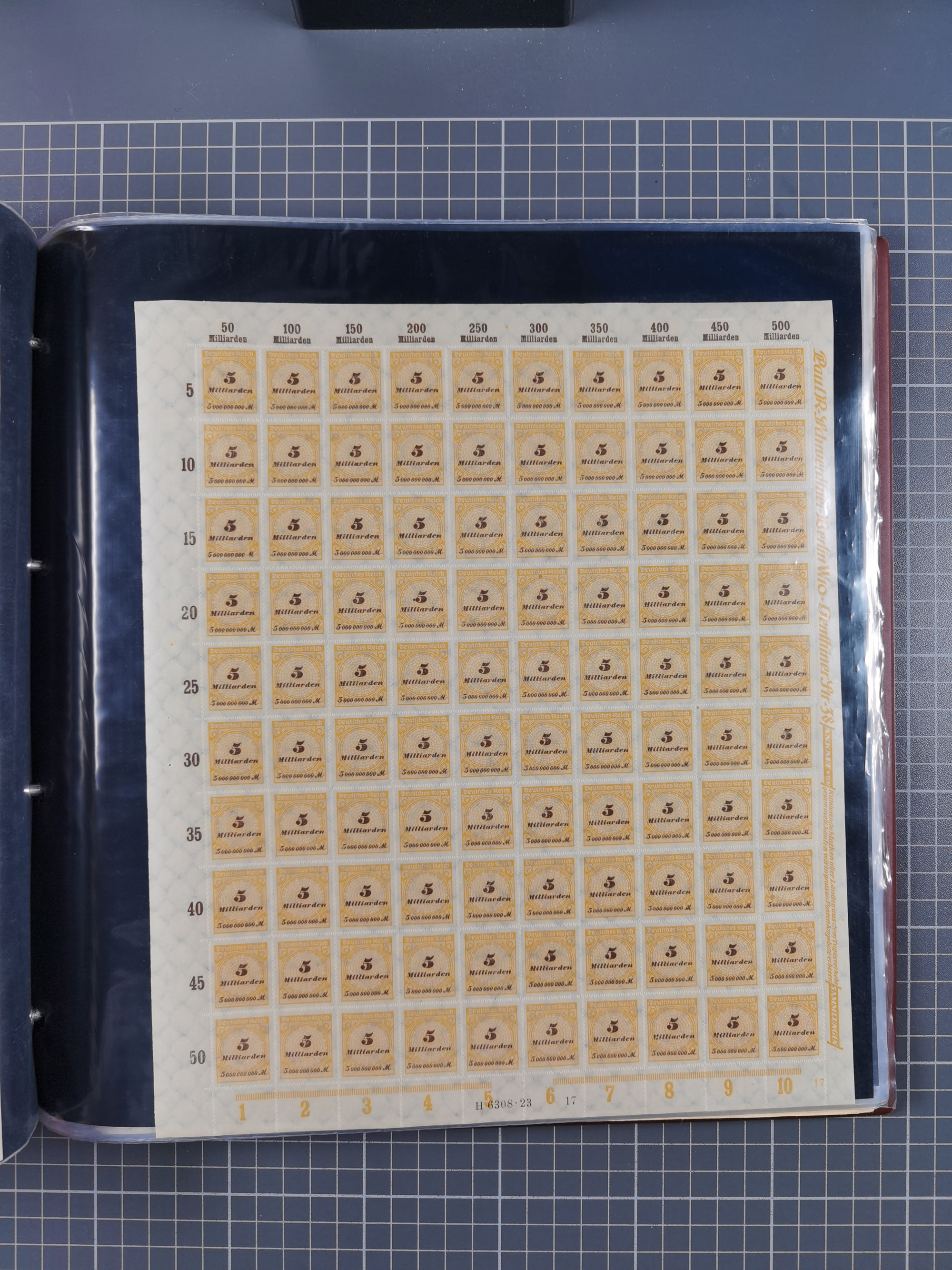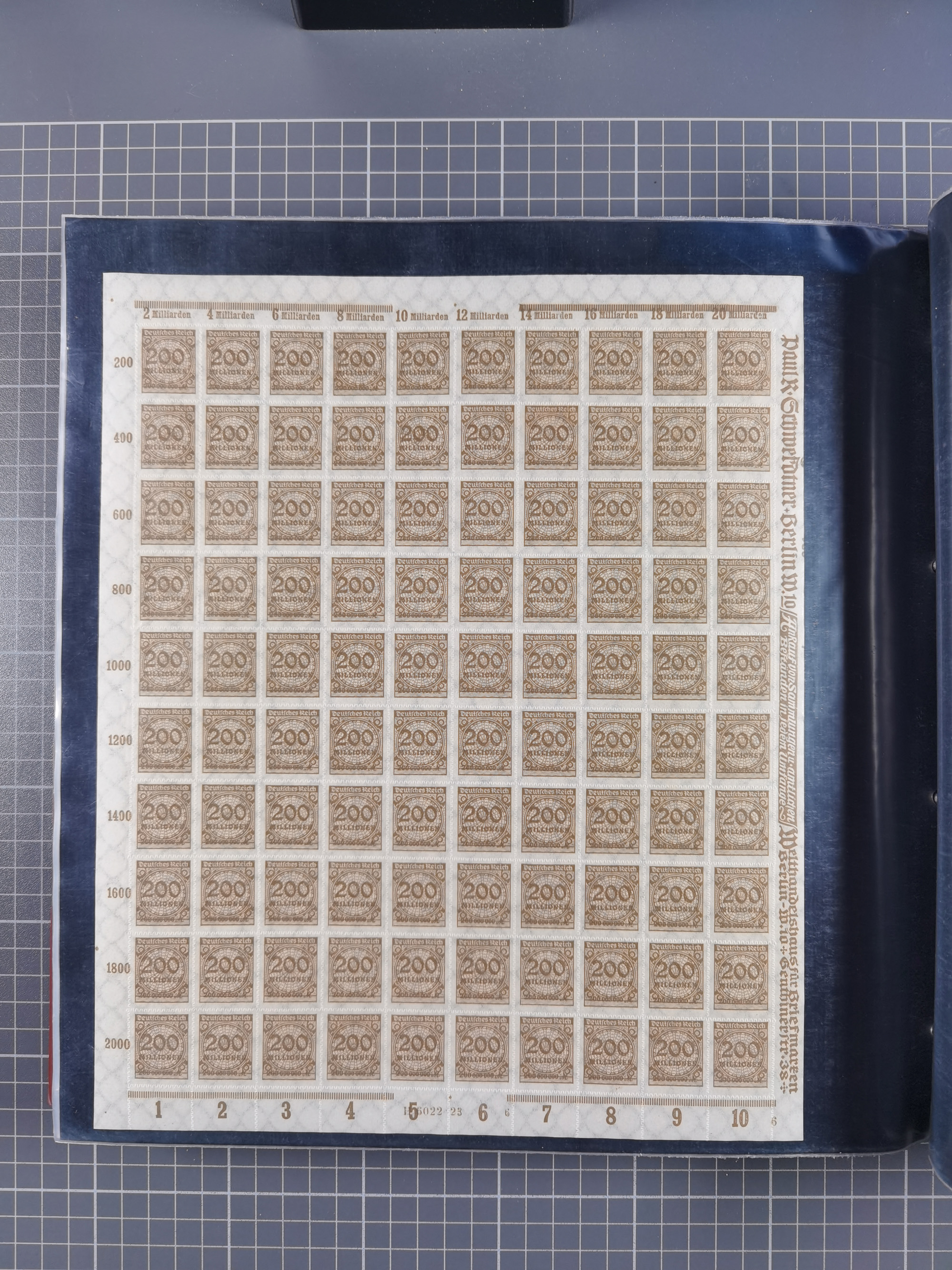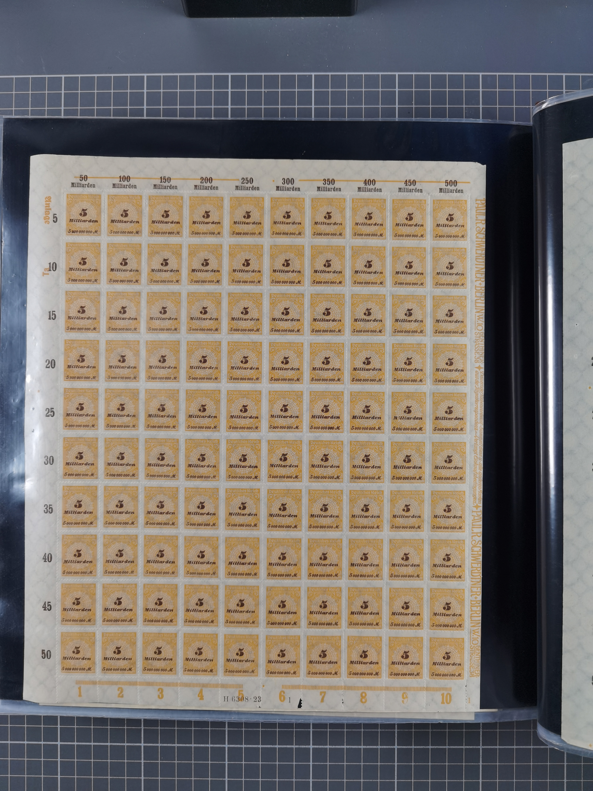 1922/23, meist postfrischer Engrosbestand mit überschlägig 300-400 Bögen, meist in Mengen zwischen 5 und 10 Stück, bis auf wenige ohne Gummi/Haftstellen in guter Erhaltung, in zwei großen Bogenmappen