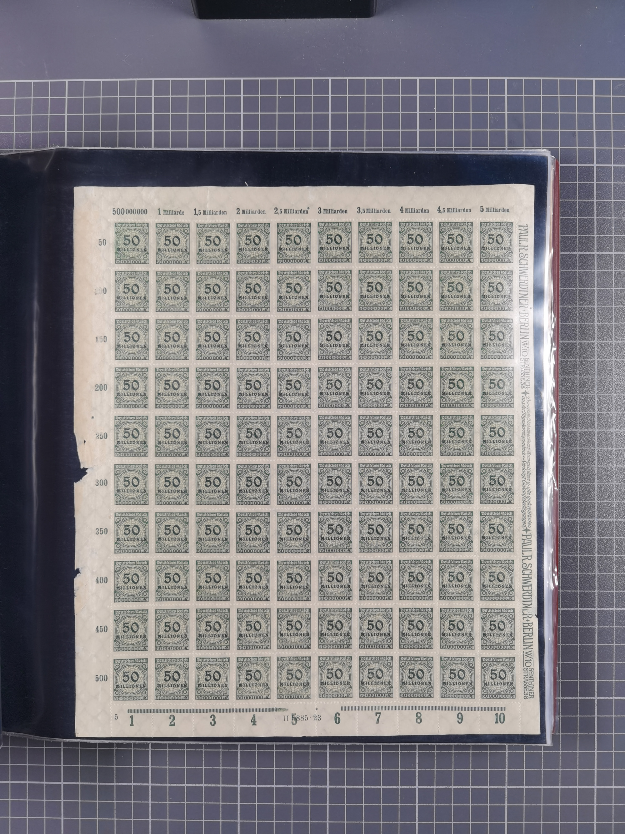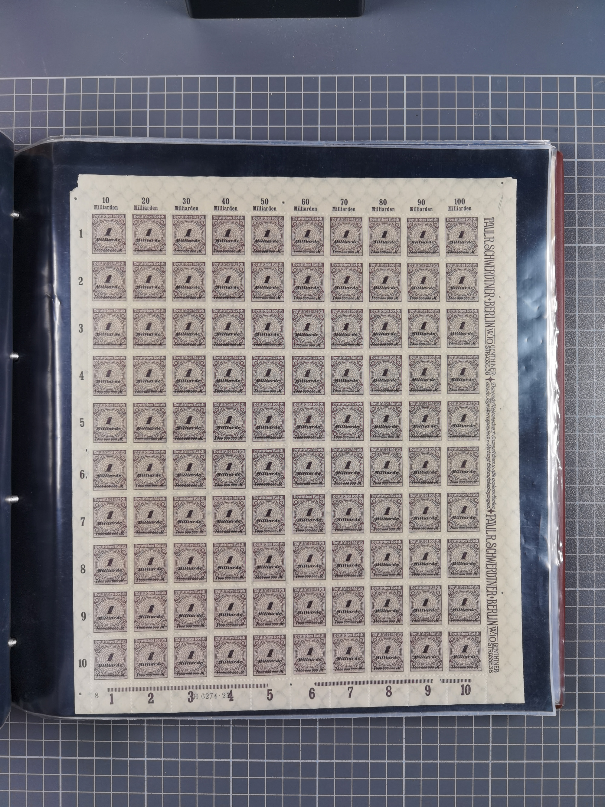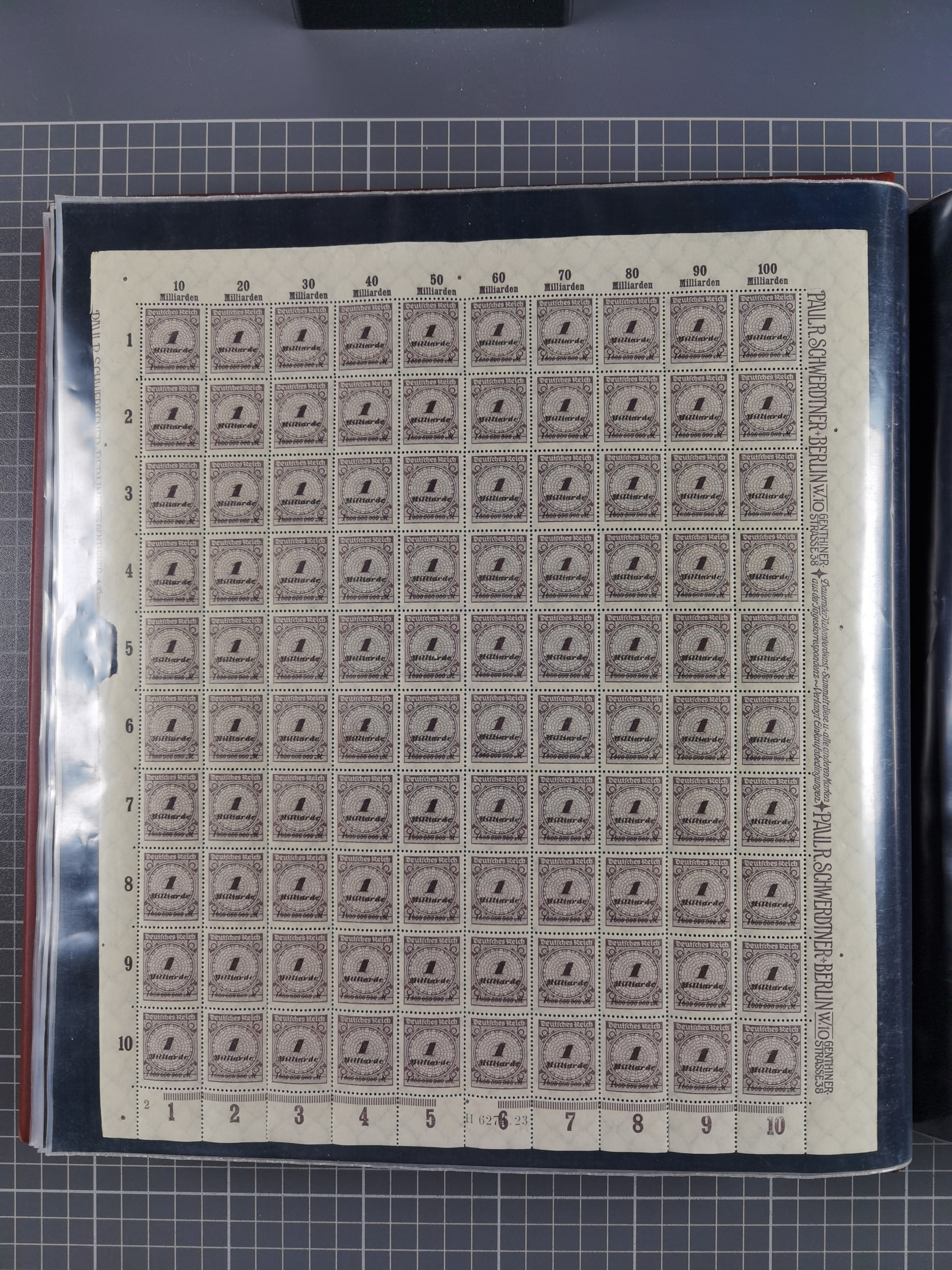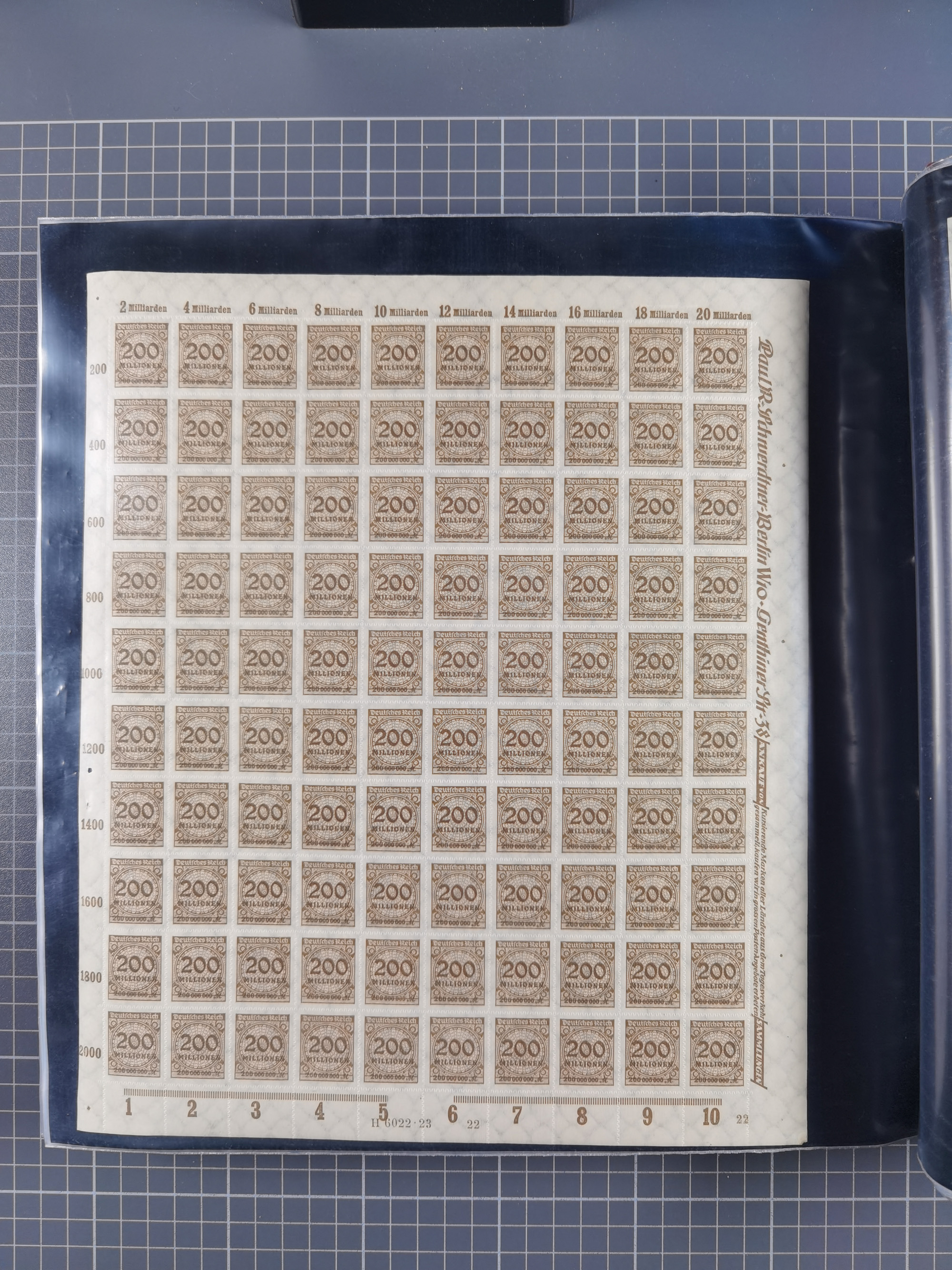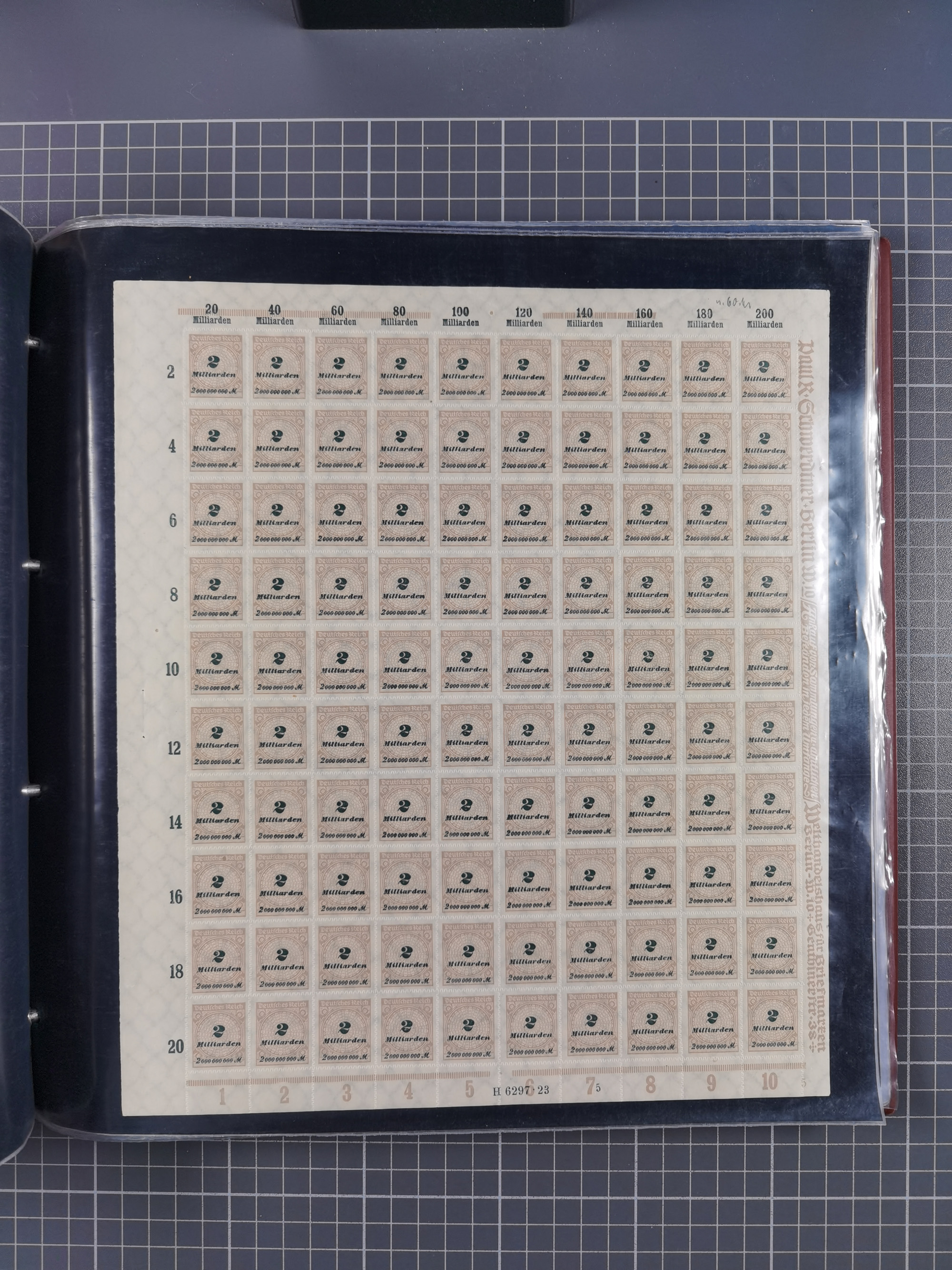 1922/23, meist postfrischer Engrosbestand mit überschlägig 300-400 Bögen, meist in Mengen zwischen 5 und 10 Stück, bis auf wenige ohne Gummi/Haftstellen in guter Erhaltung, in zwei großen Bogenmappen