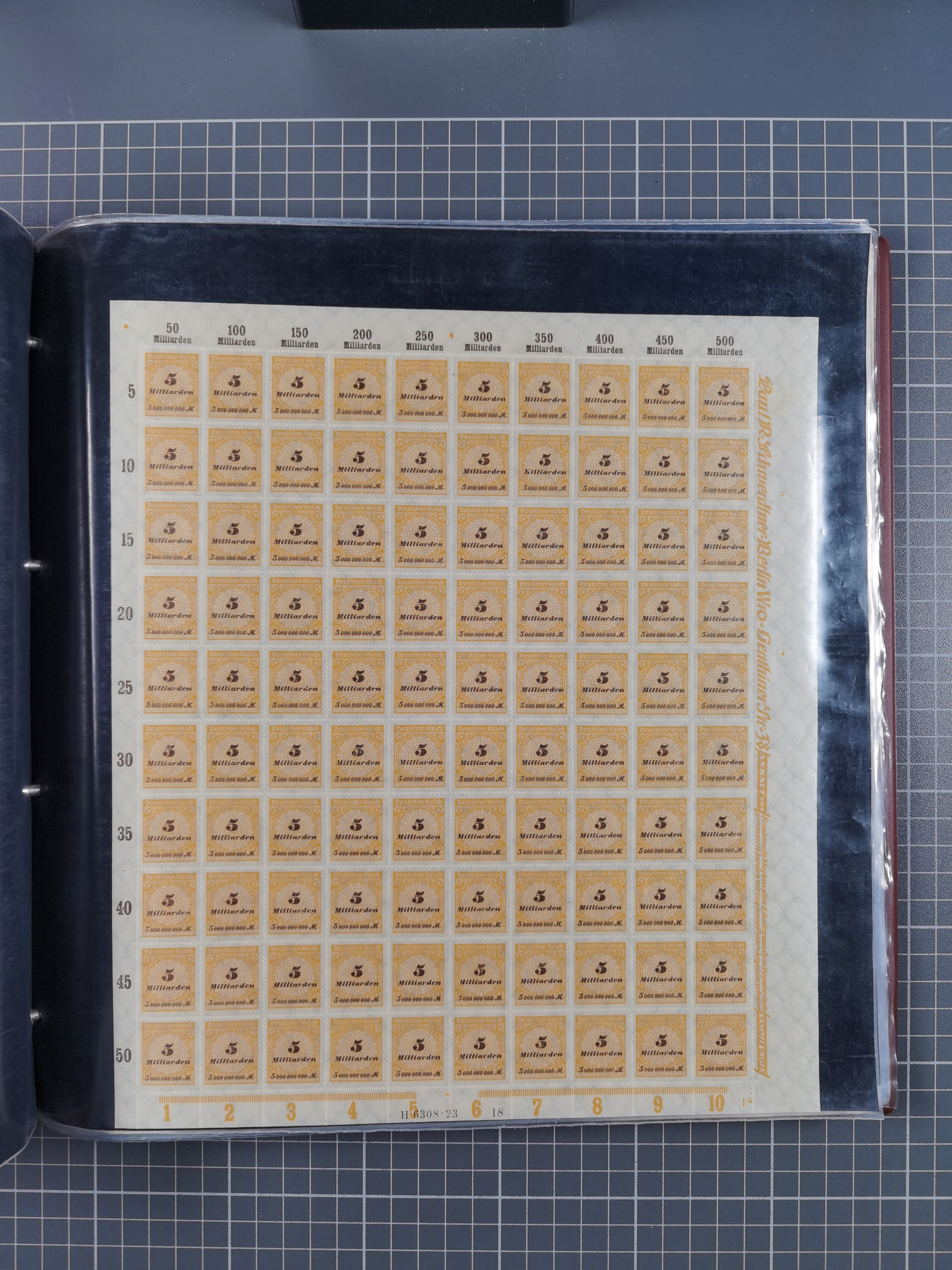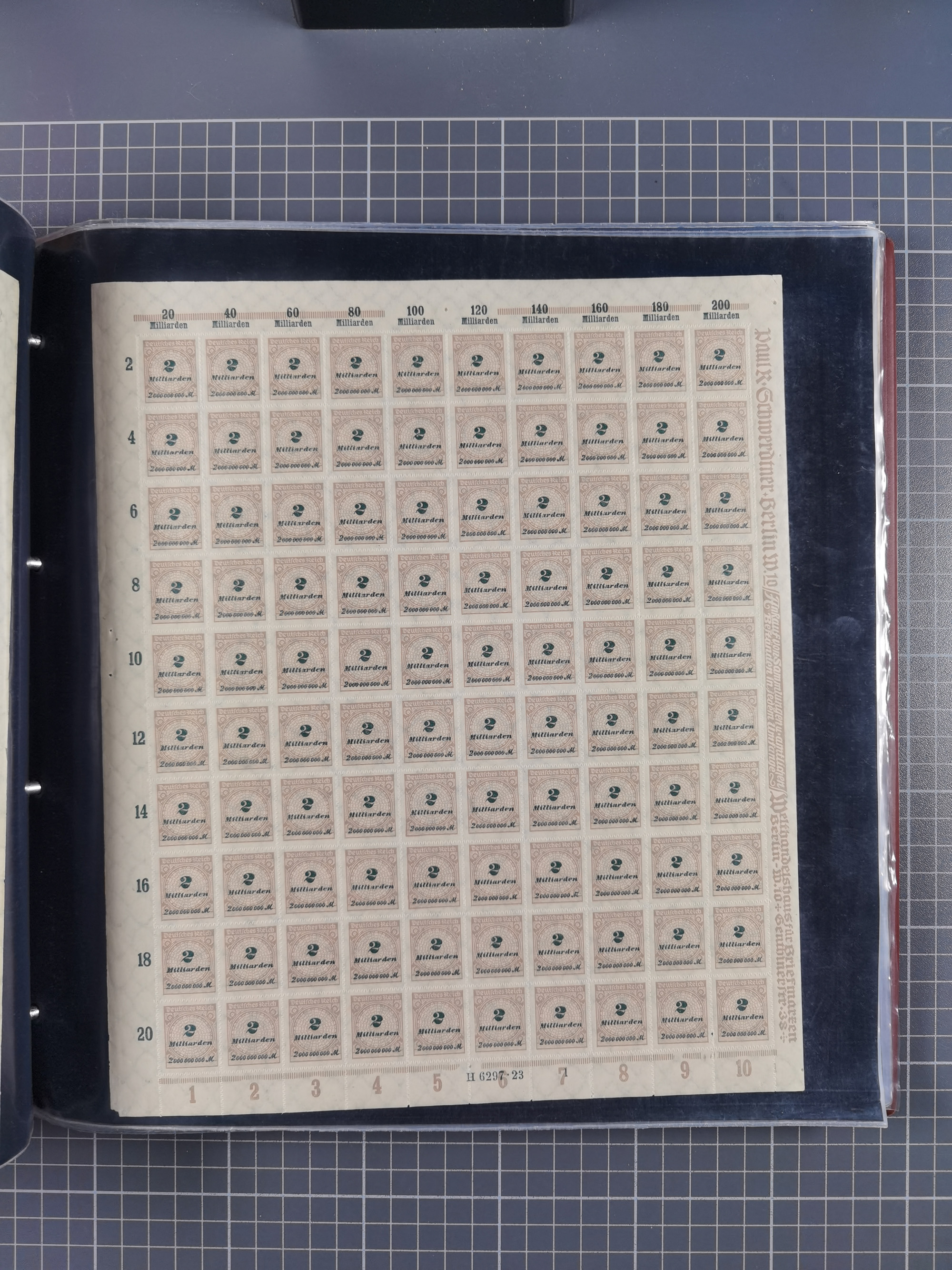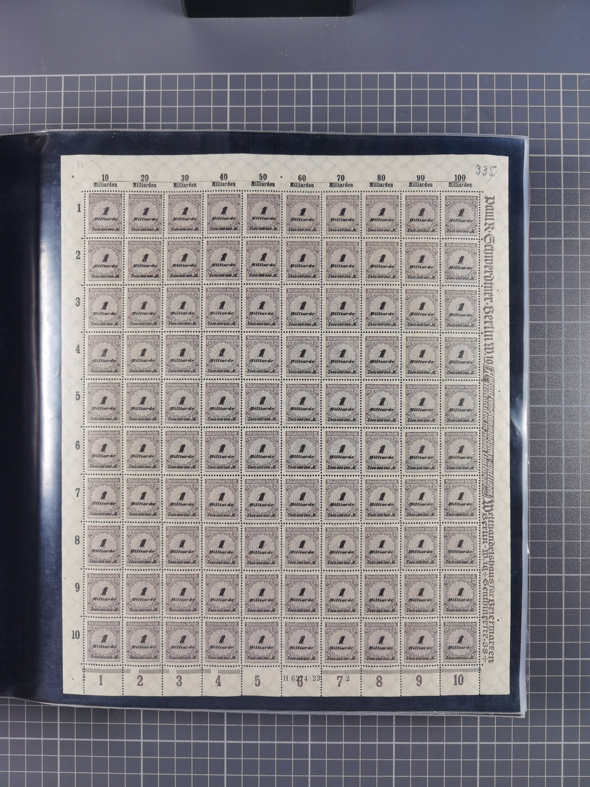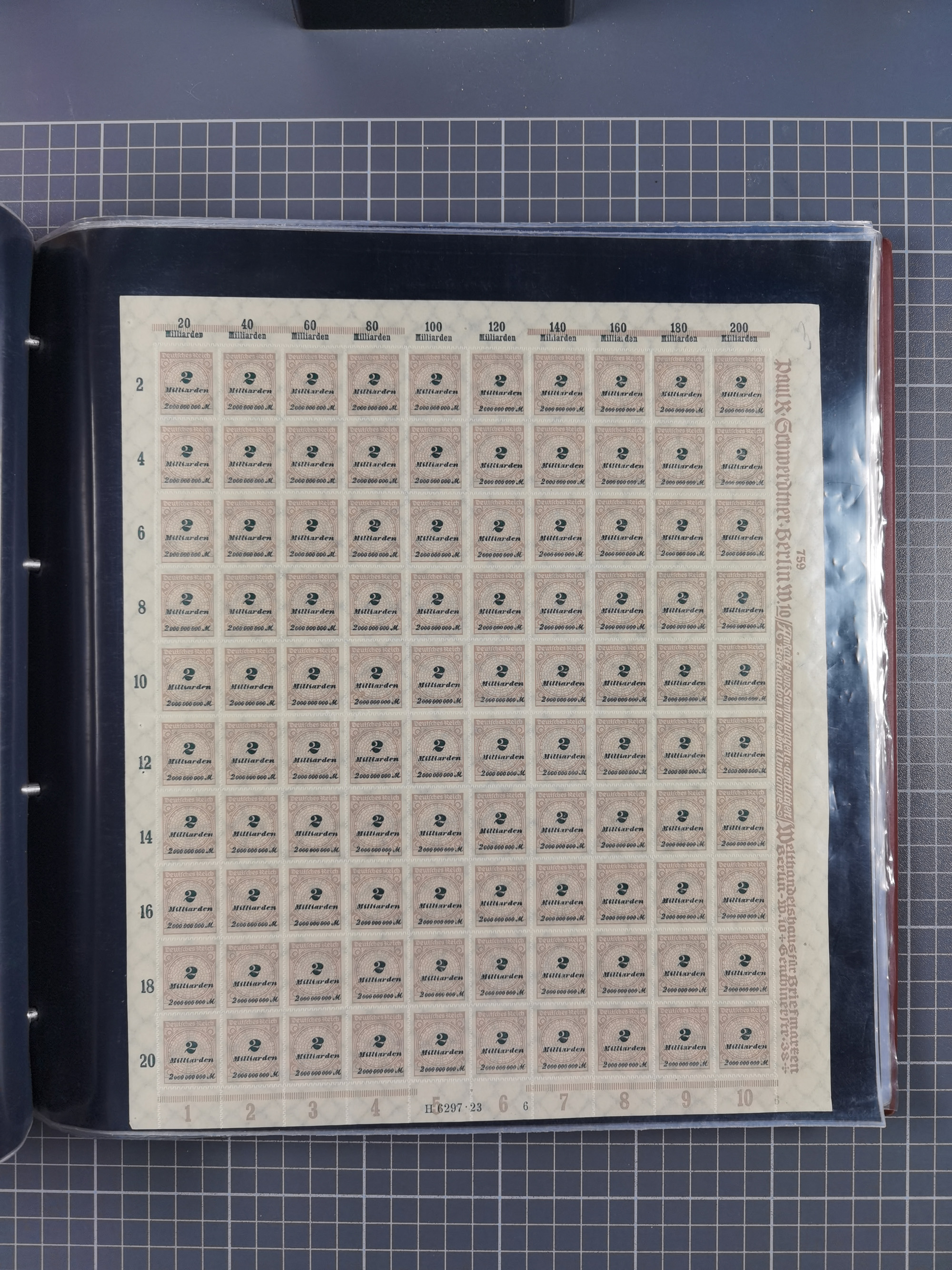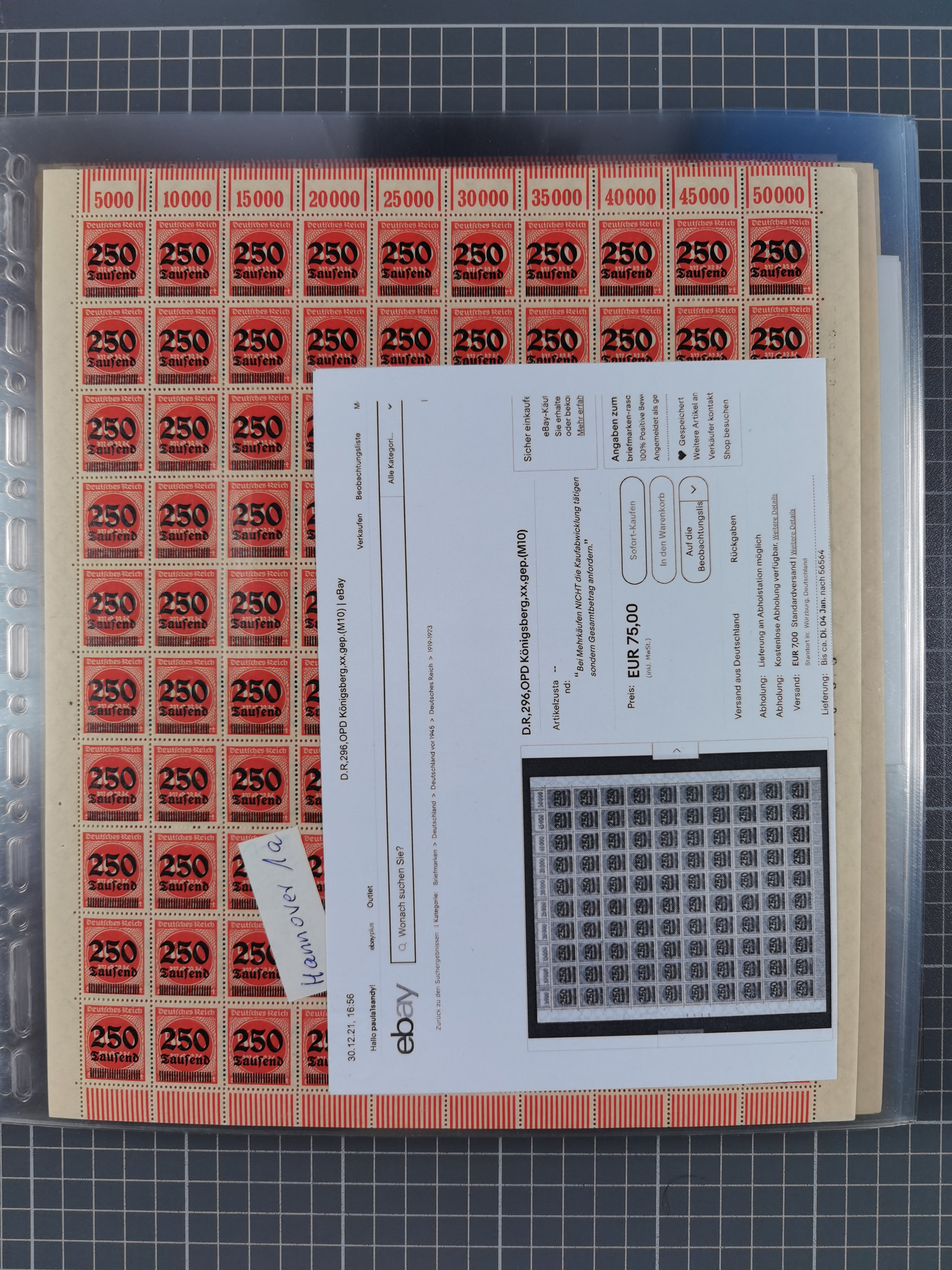1922/23, meist postfrischer Engrosbestand mit überschlägig 300-400 Bögen, meist in Mengen zwischen 5 und 10 Stück, bis auf wenige ohne Gummi/Haftstellen in guter Erhaltung, in zwei großen Bogenmappen