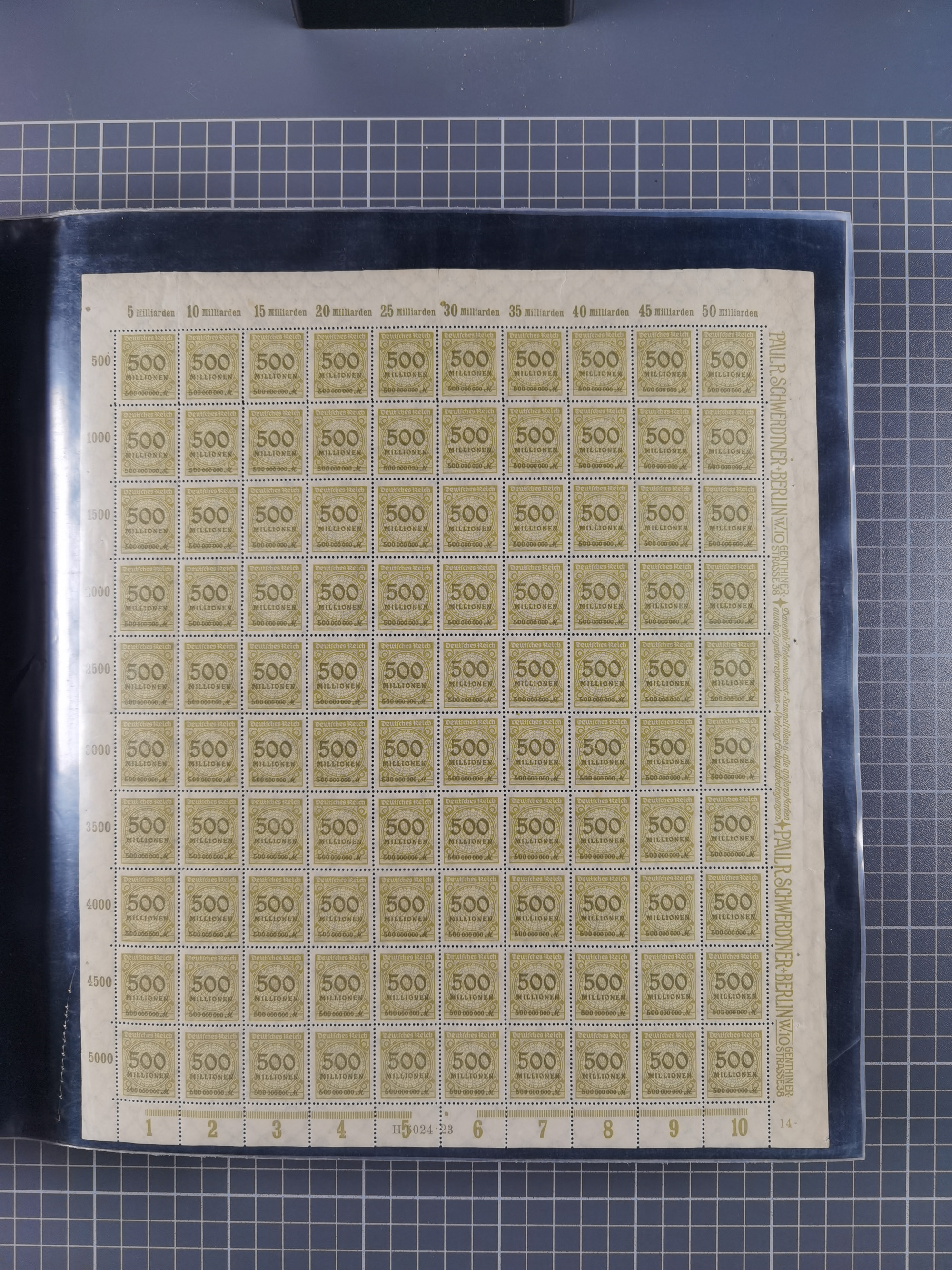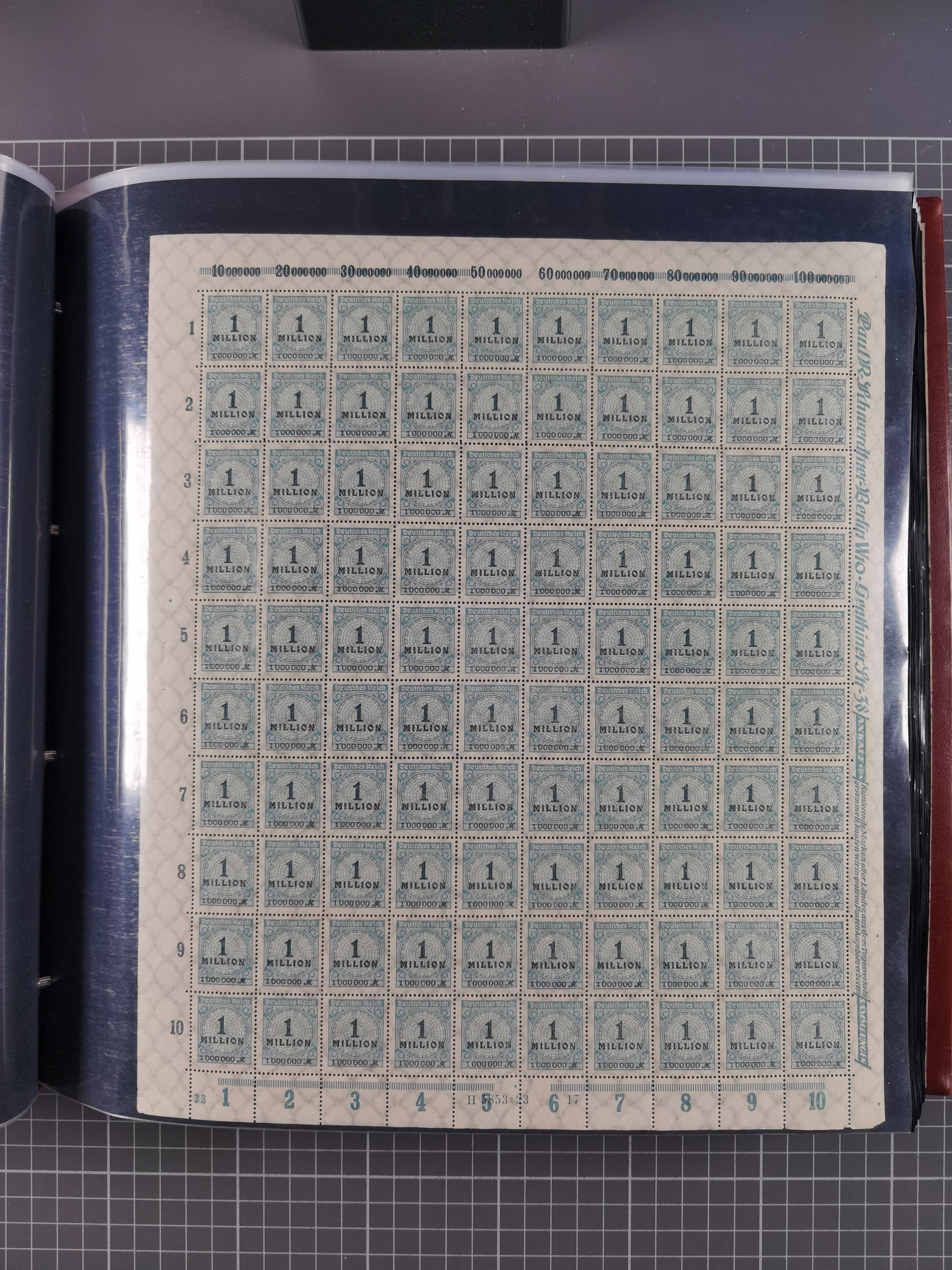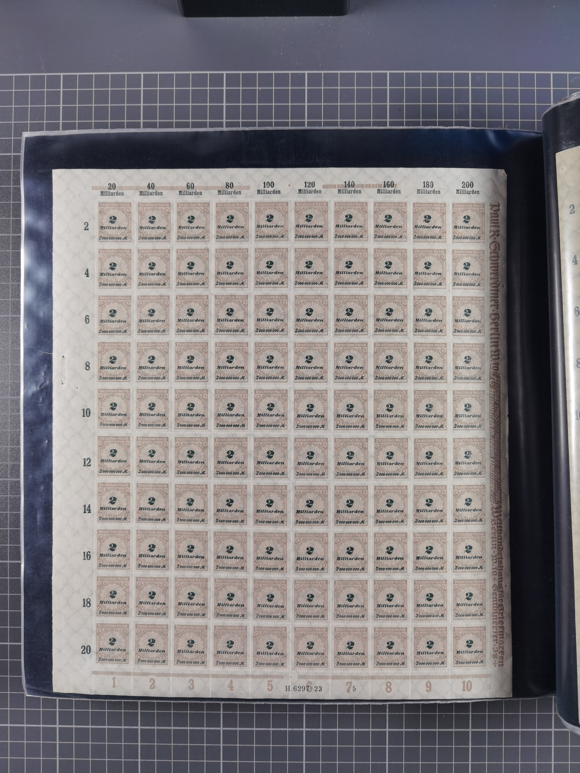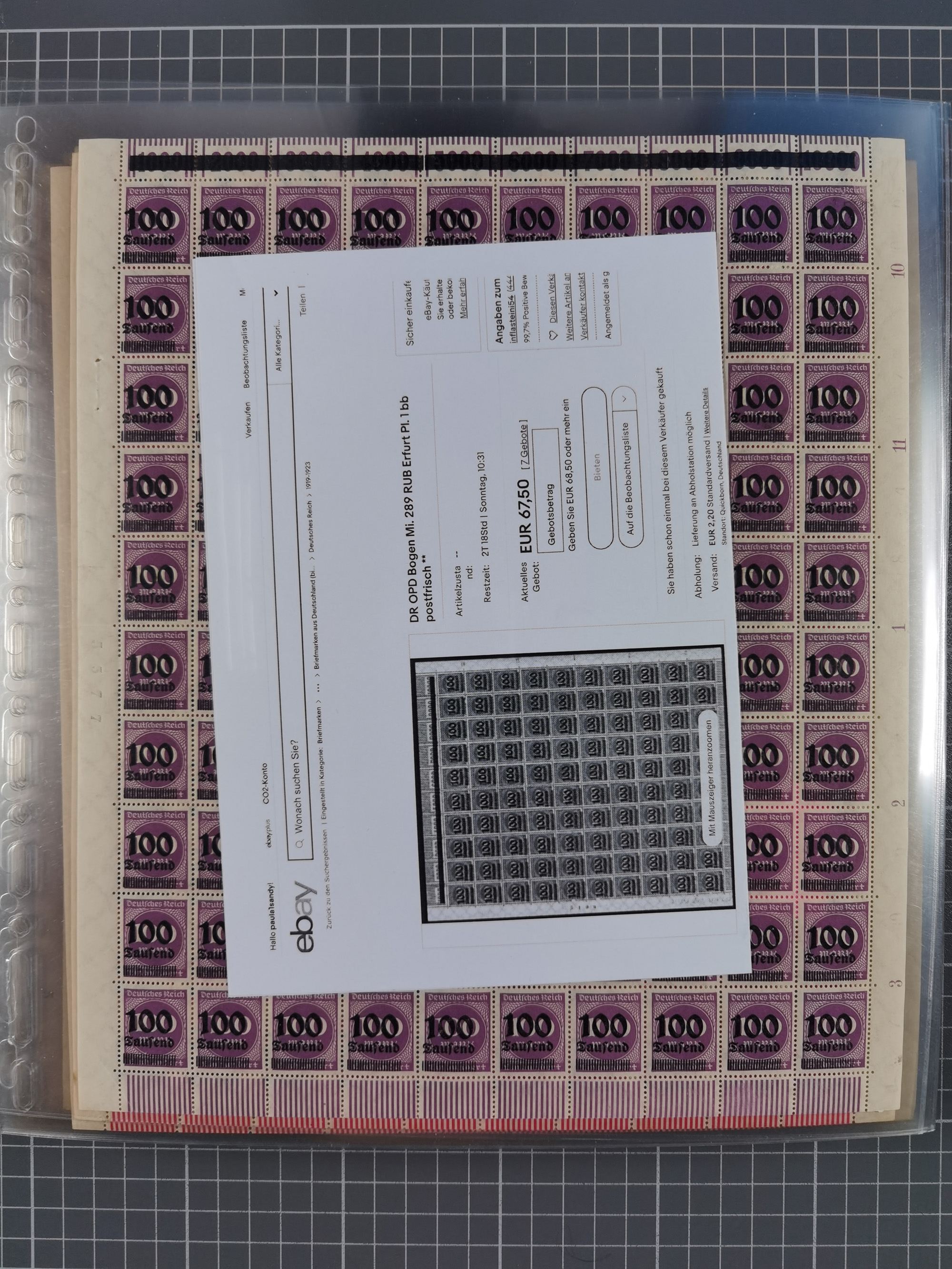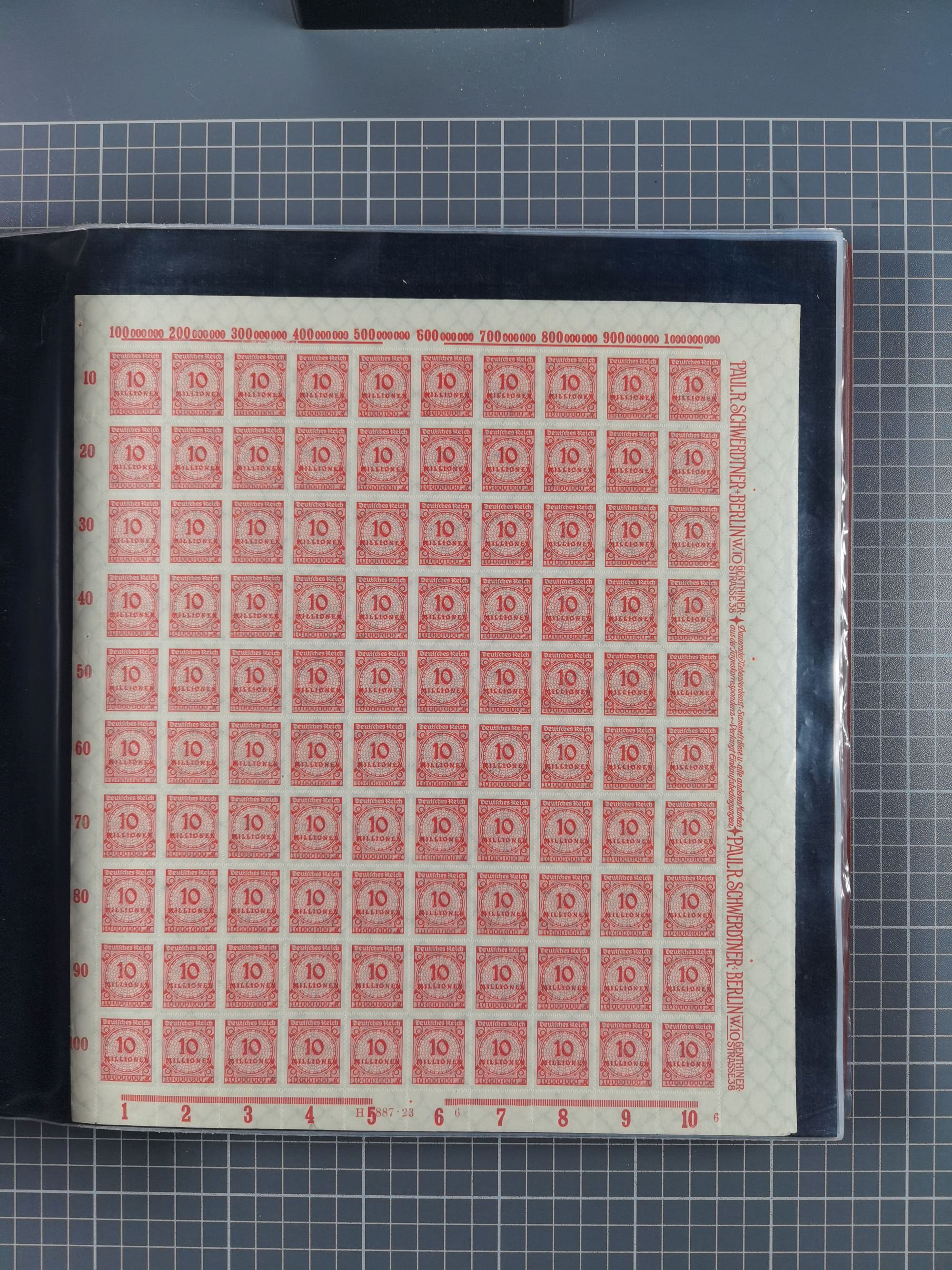 1922/23, meist postfrischer Engrosbestand mit überschlägig 300-400 Bögen, meist in Mengen zwischen 5 und 10 Stück, bis auf wenige ohne Gummi/Haftstellen in guter Erhaltung, in zwei großen Bogenmappen