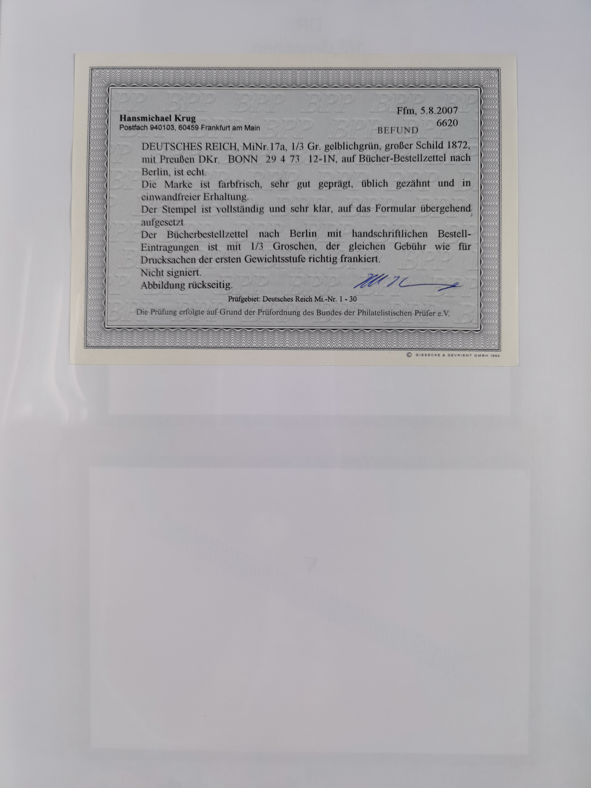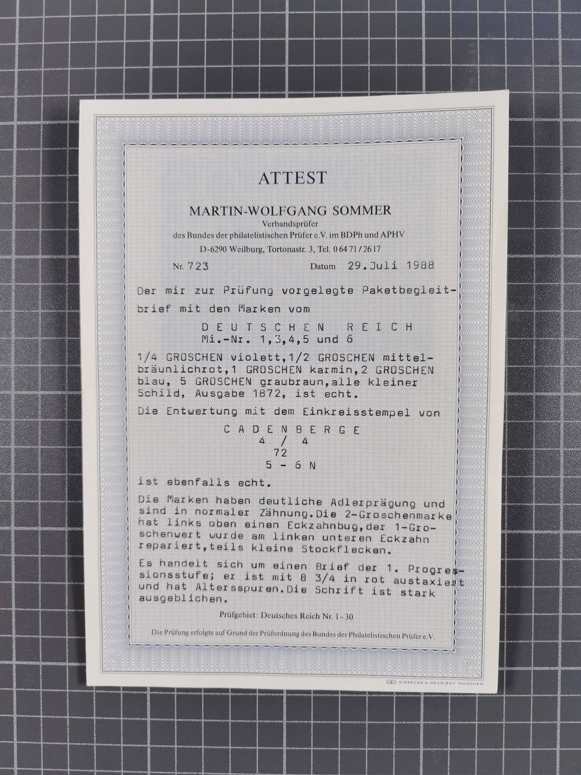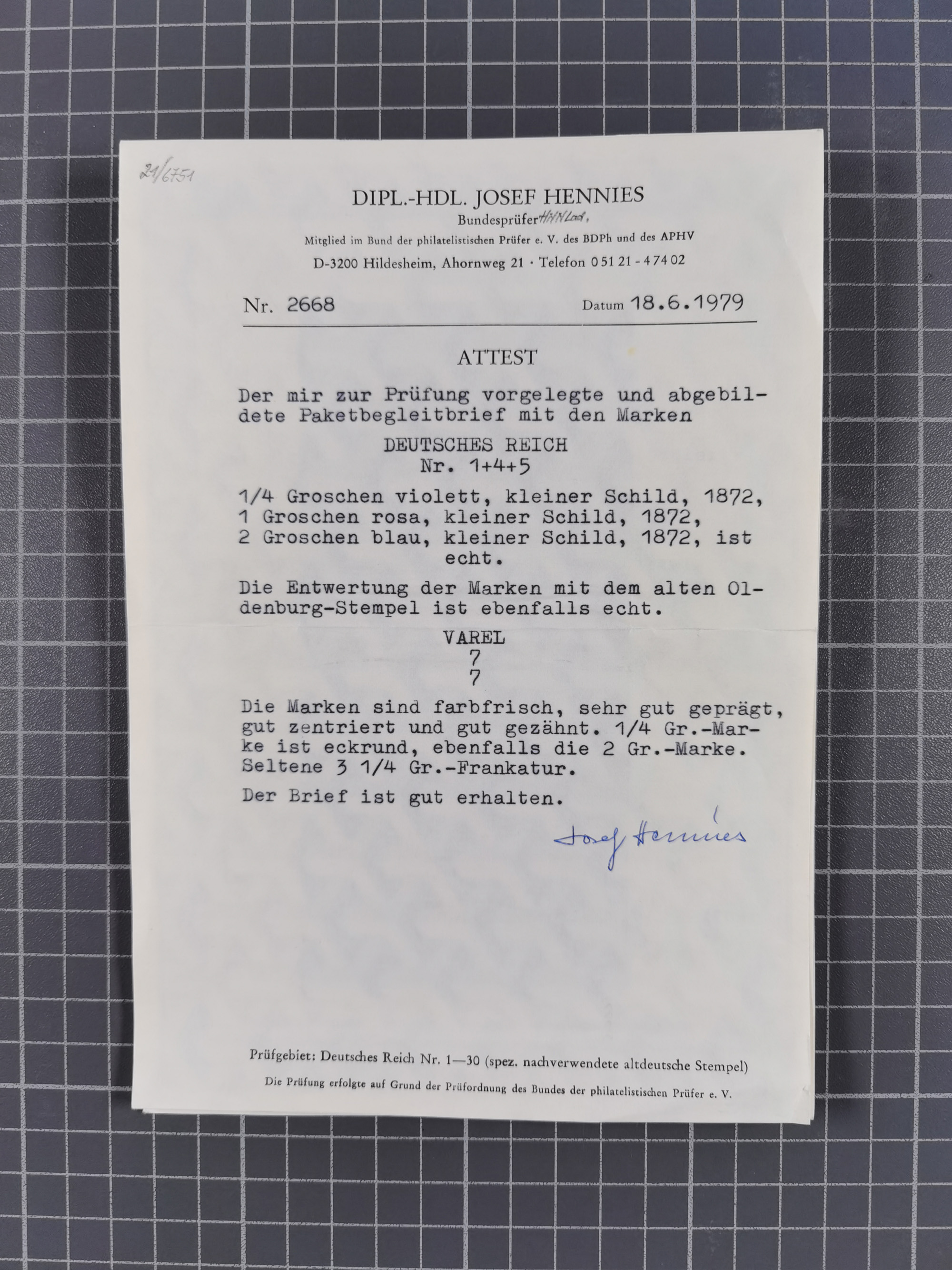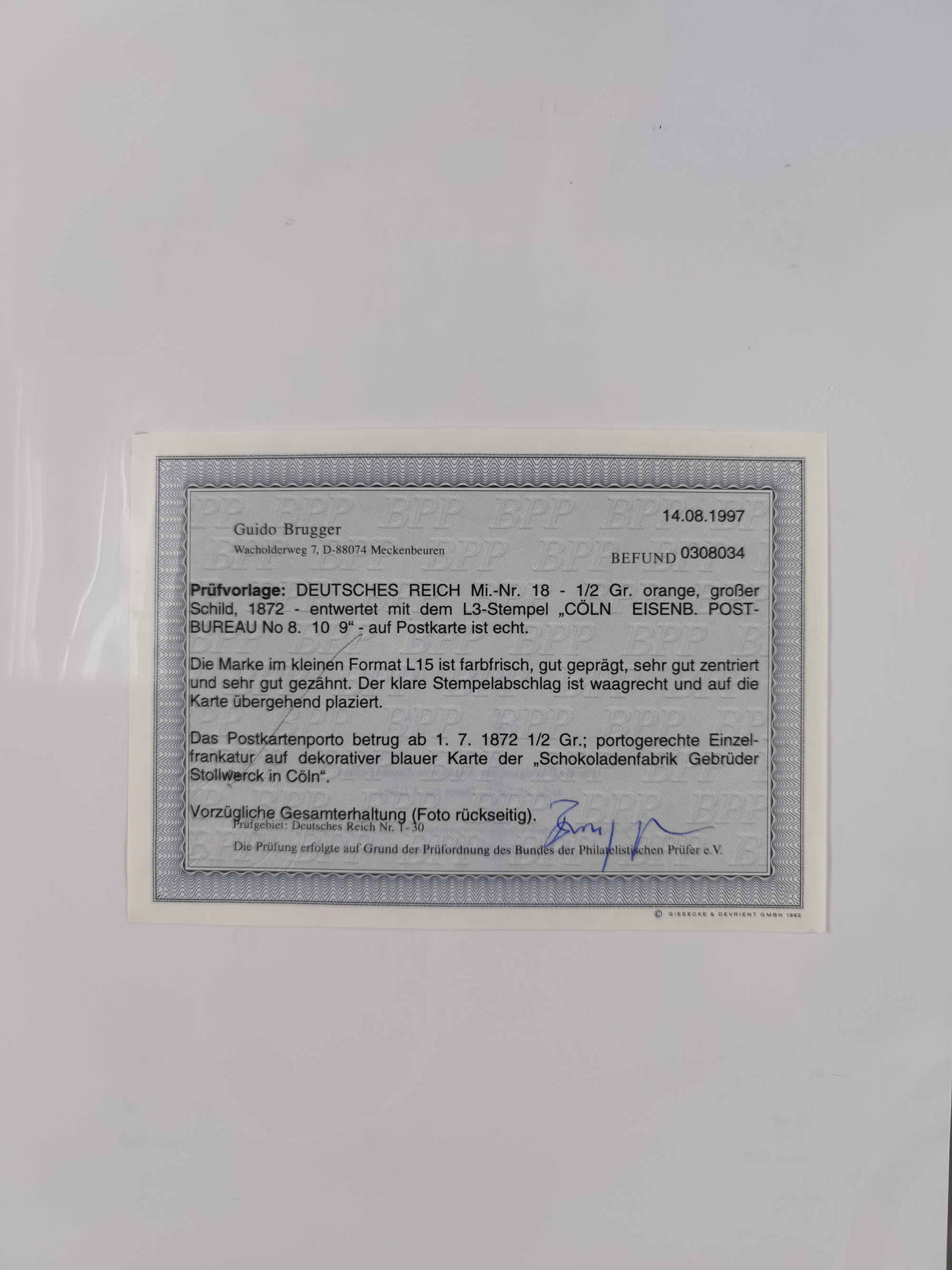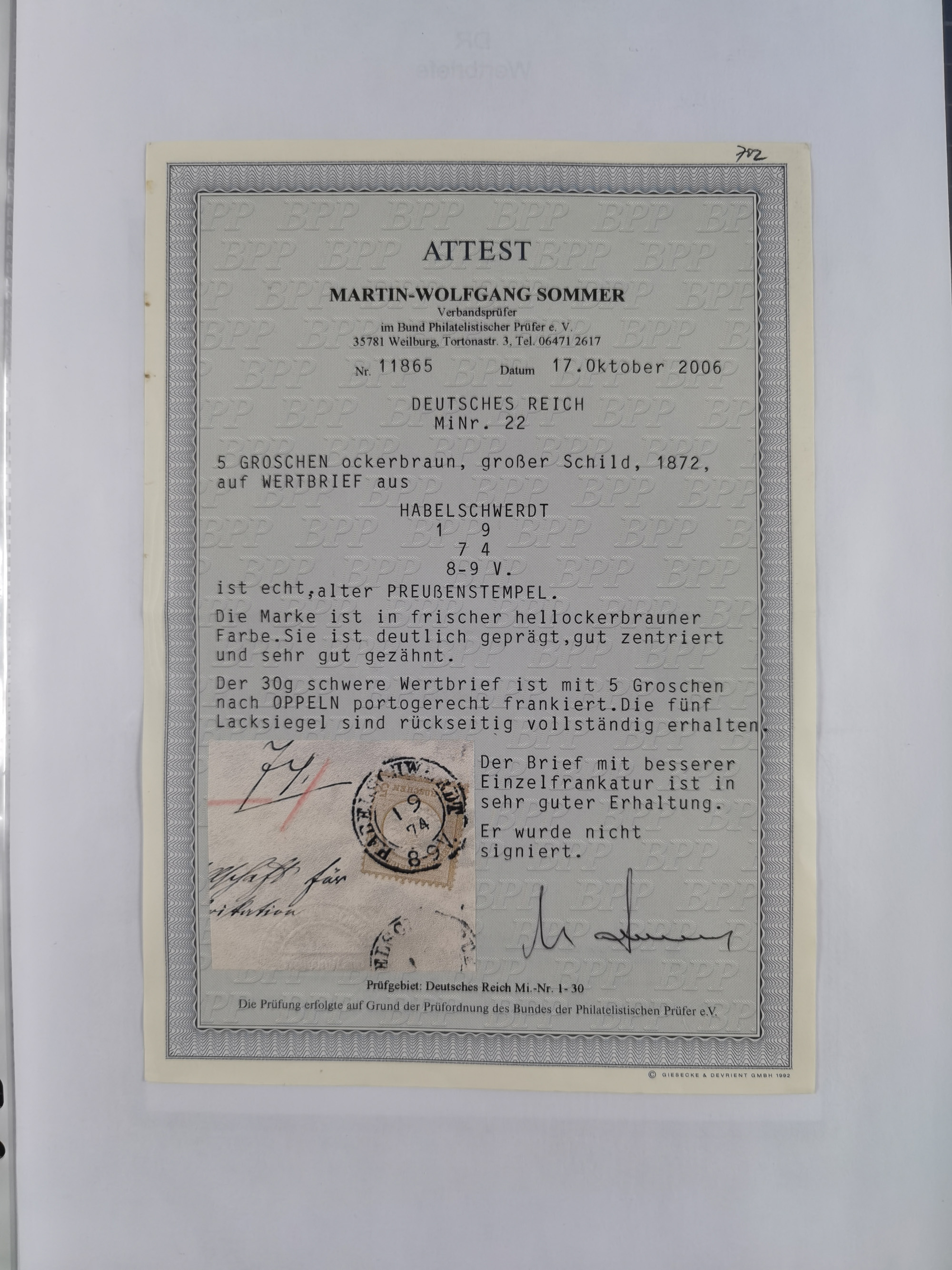 1872/75, Groschenbezirk, rund 60 Briefe und Ganzsachen, dabei viele interessante Belege, u.a. 1 (3) auf Drucksache nach Amsterdam, Express-Soldaten Brief, Orts-R-Brief von Berlin, Mi. 6 EF auf R-Brief nach Frankreich, 16 EF (2), 16 +18 auf Auslandsdrucksache, 16 (3) auf Auslandsdrucksache, 17 b auf Letzttag-Brief, 18 +19 auf eingeschriebenem Ortsbrief von Dresden, 19 mit bayerischem Stempel, 19 + 20 auf R-Brief in den Grenzrayon, etc. etc. Ein sehr interessantes Objekt, Alles signiert BPP bzw. 27 Atteste und 30 Befunde.