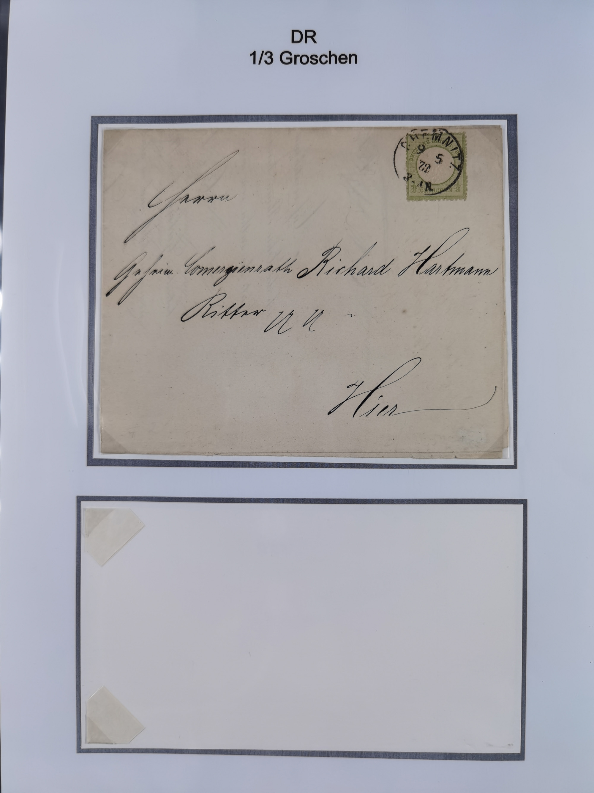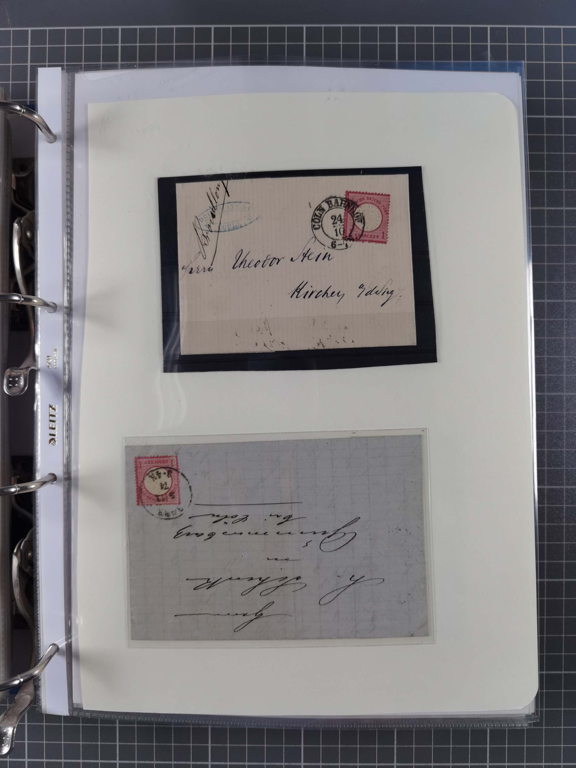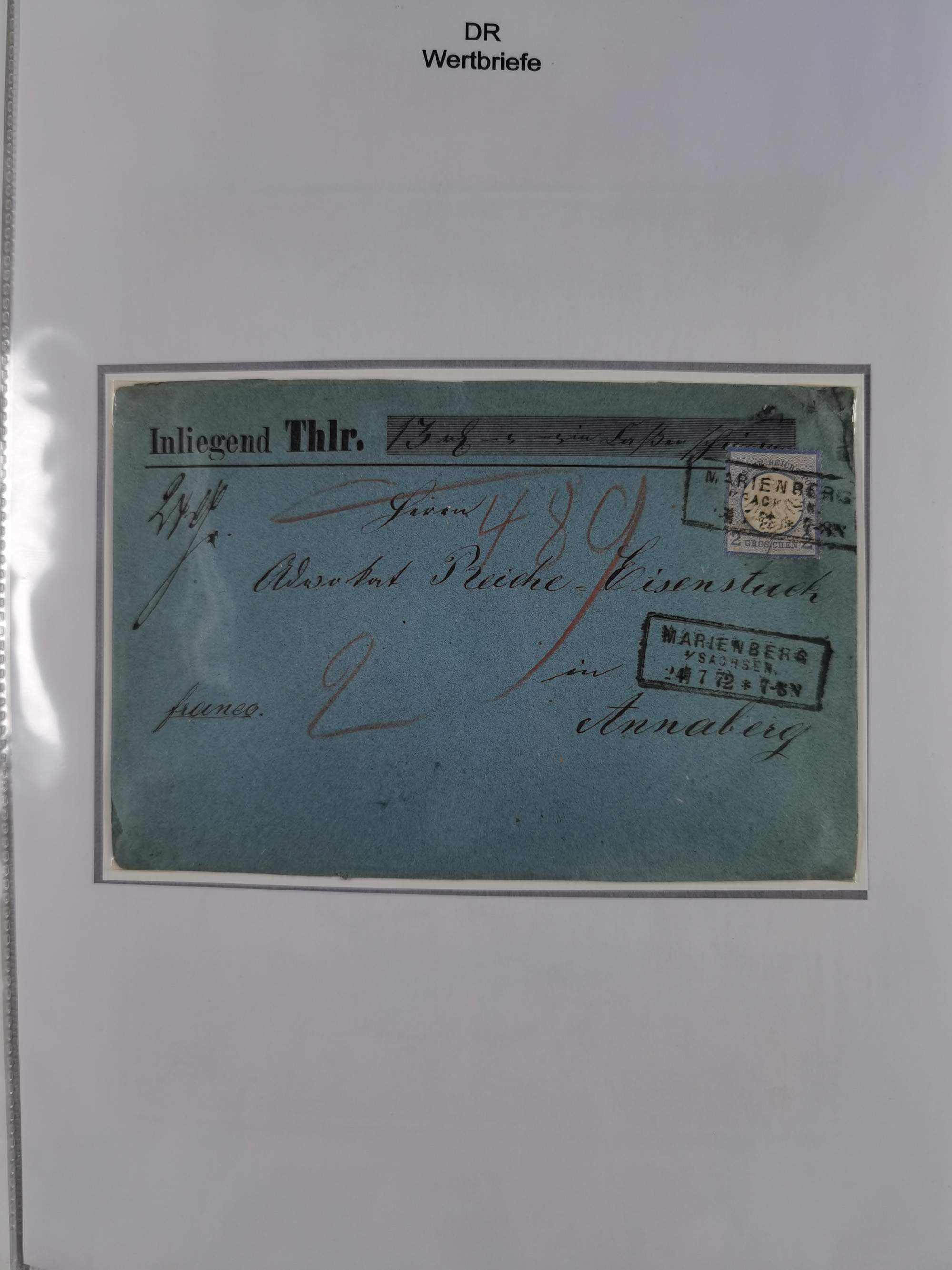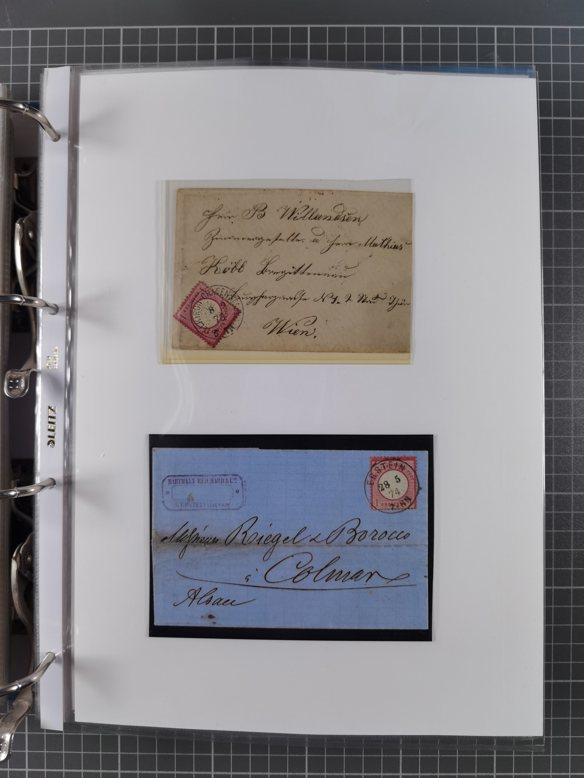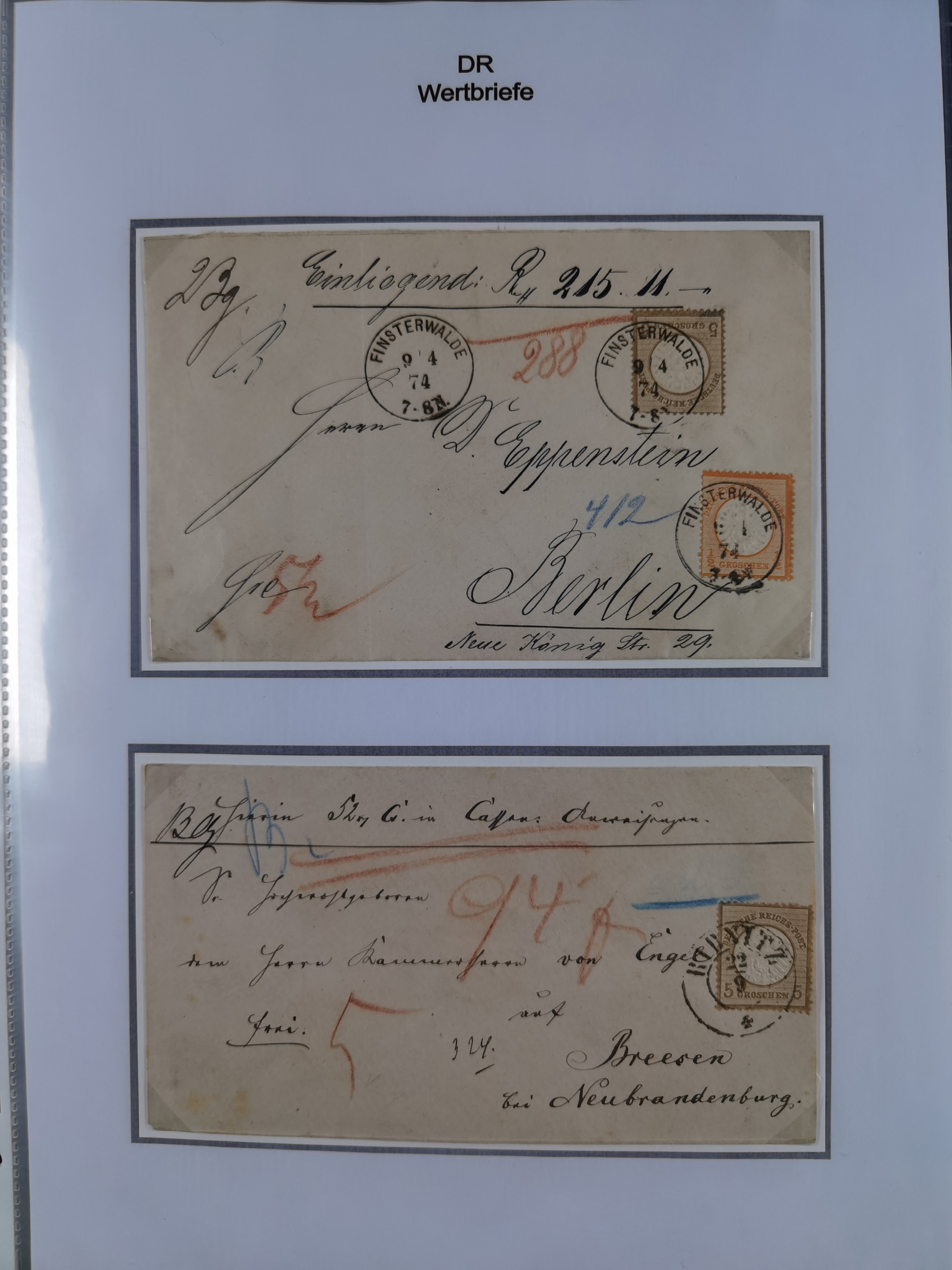 1872/74, Sammlung “Wertbriefe” mit 31 frankierten und zwei unfrankierten Wertbriefen. Dabei GSU mit Zufrankaturen, bessere Einzelfrankaturen, zwei Mehrfachfrankaturen Mi.-Nr. 29 und hohe Frankaturen bis 15½ Groschen. Meist in guter Erhaltung, sauber auf Albenblättern