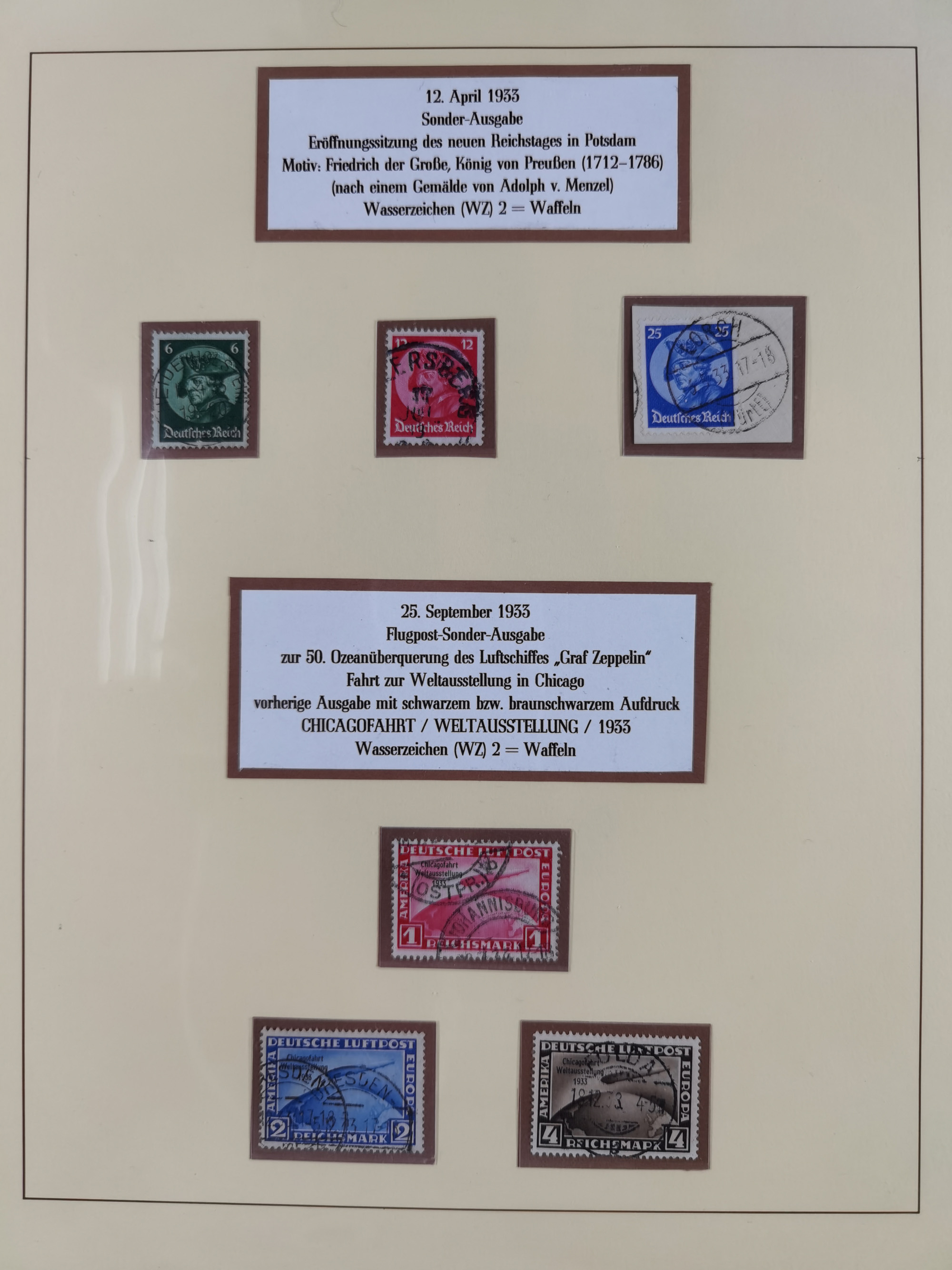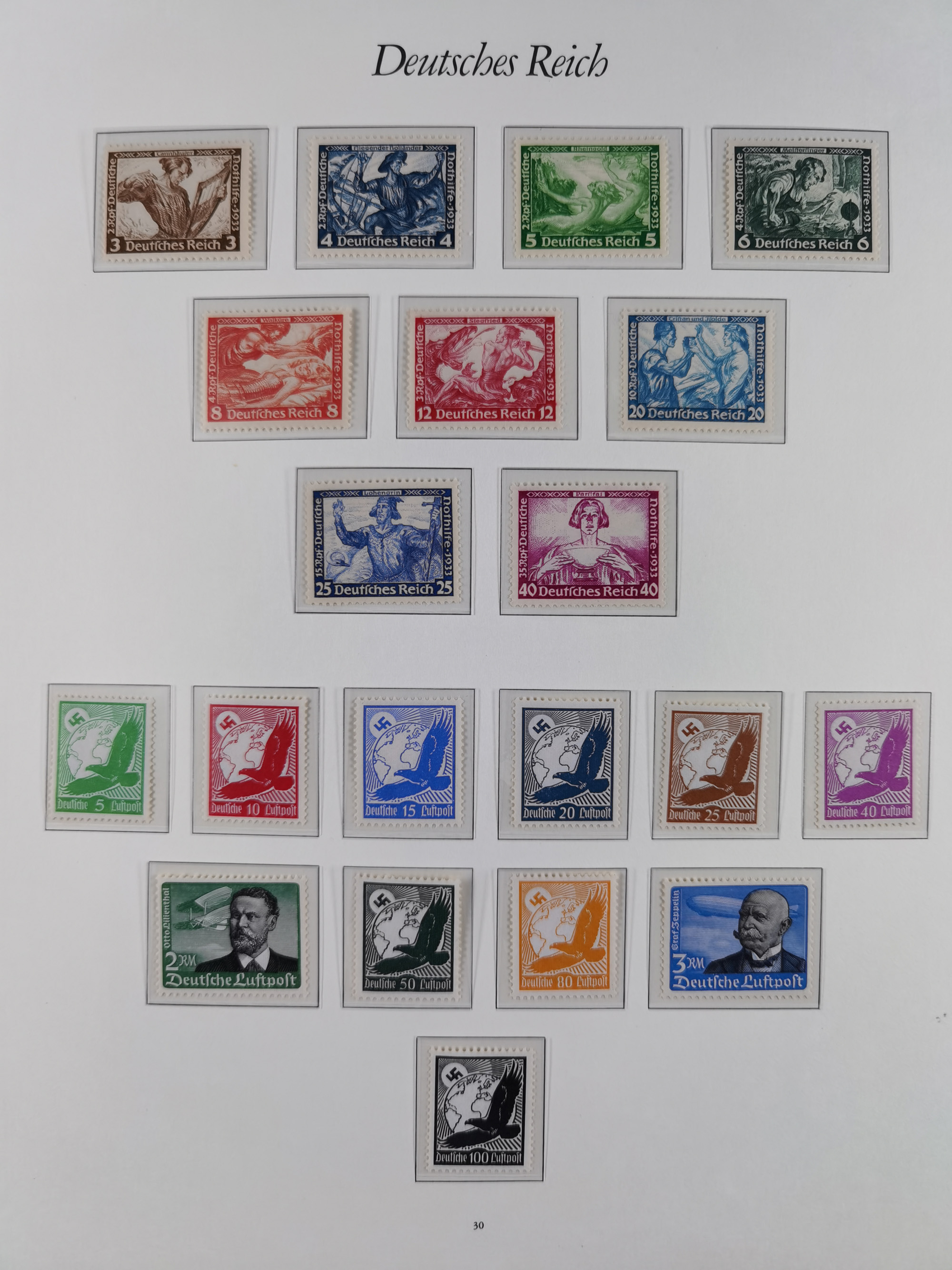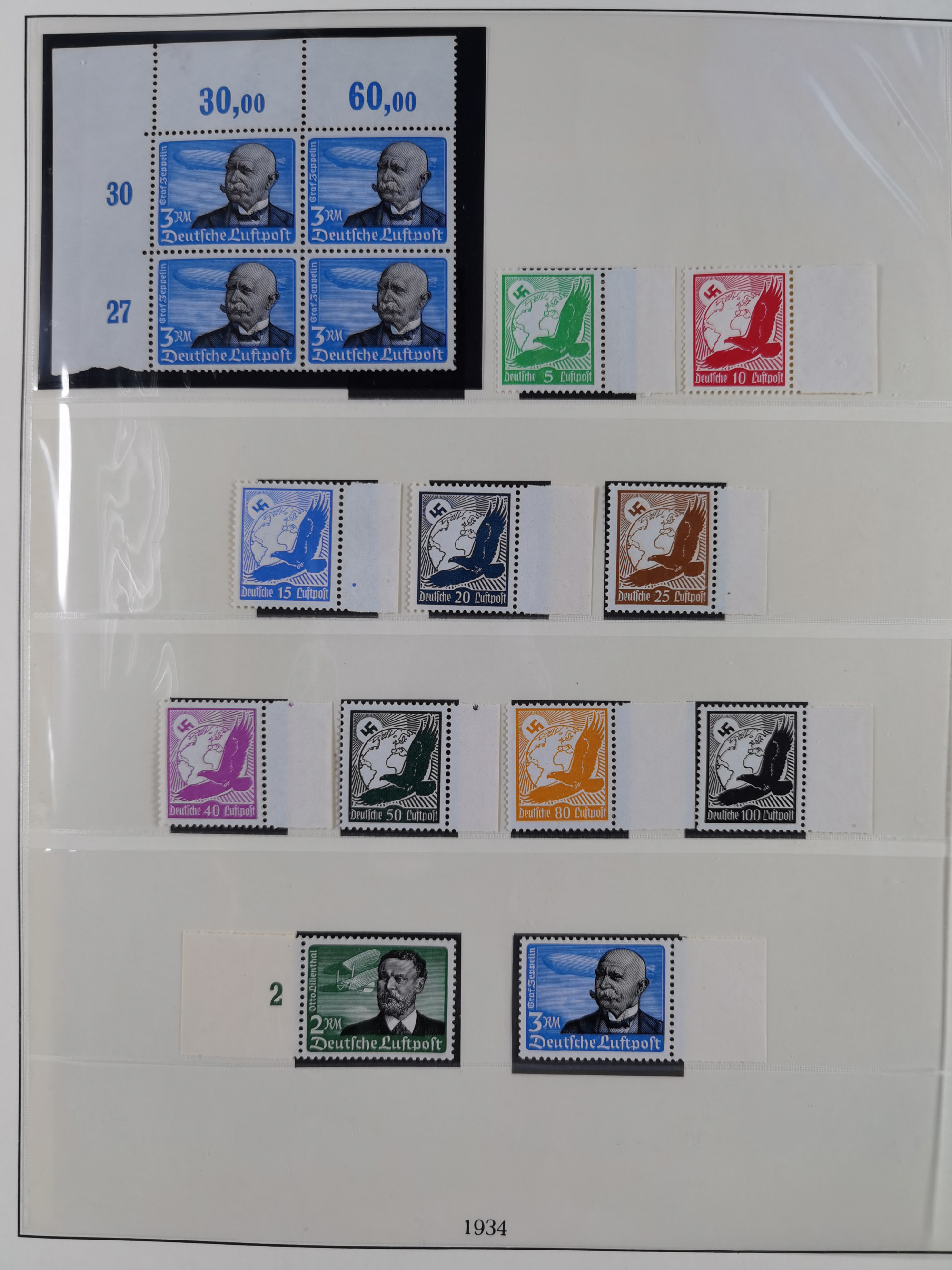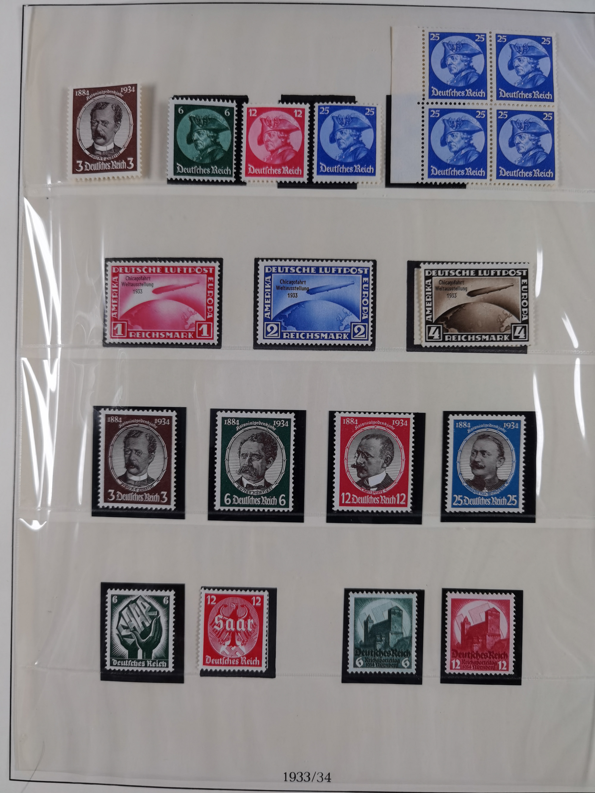 1933/45, in den Hauptnummern bis auf Block 1-3 komplette, meist postfrische und teils ungebrauchte Sammlung inkl. Dienstmarken, dabei Chicagofahrt ungebraucht, Mi.-Nr. 482-95 postfrisch, Bl. 4-11, dabei Bl. 5-6 sign. Schlegel BPP, gute Erhaltung, im Vordruckalbum