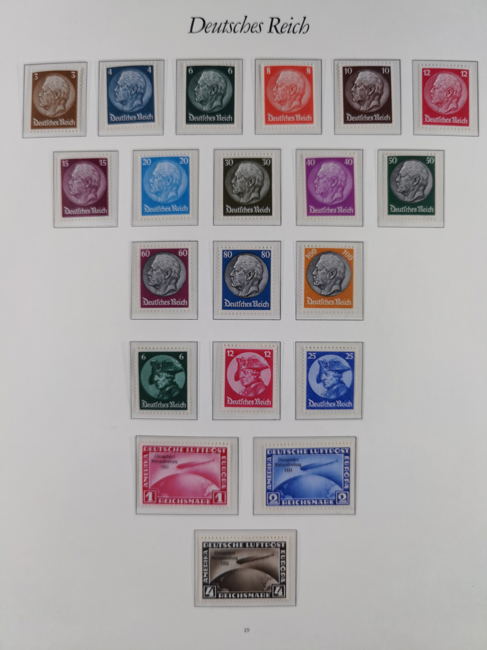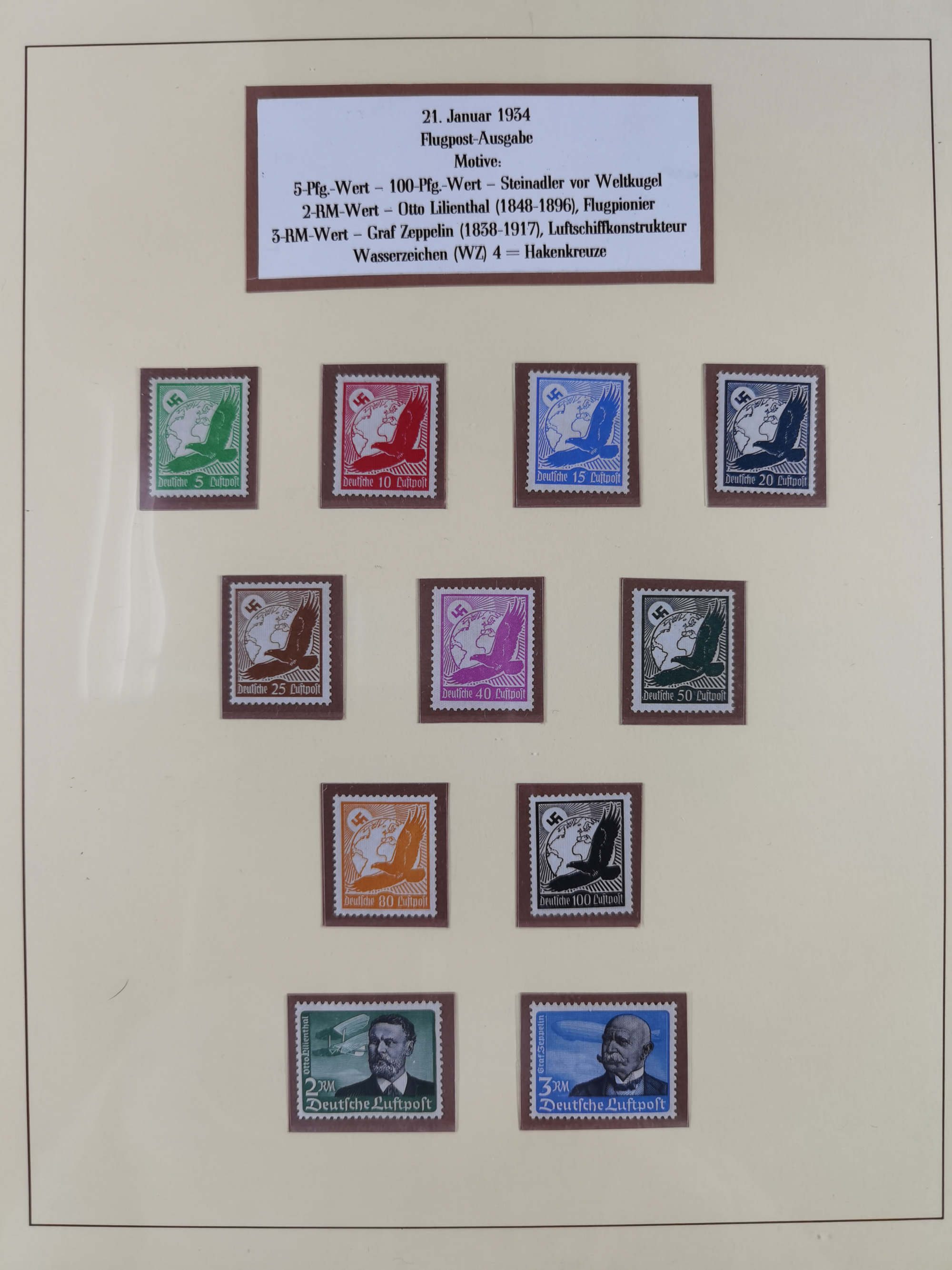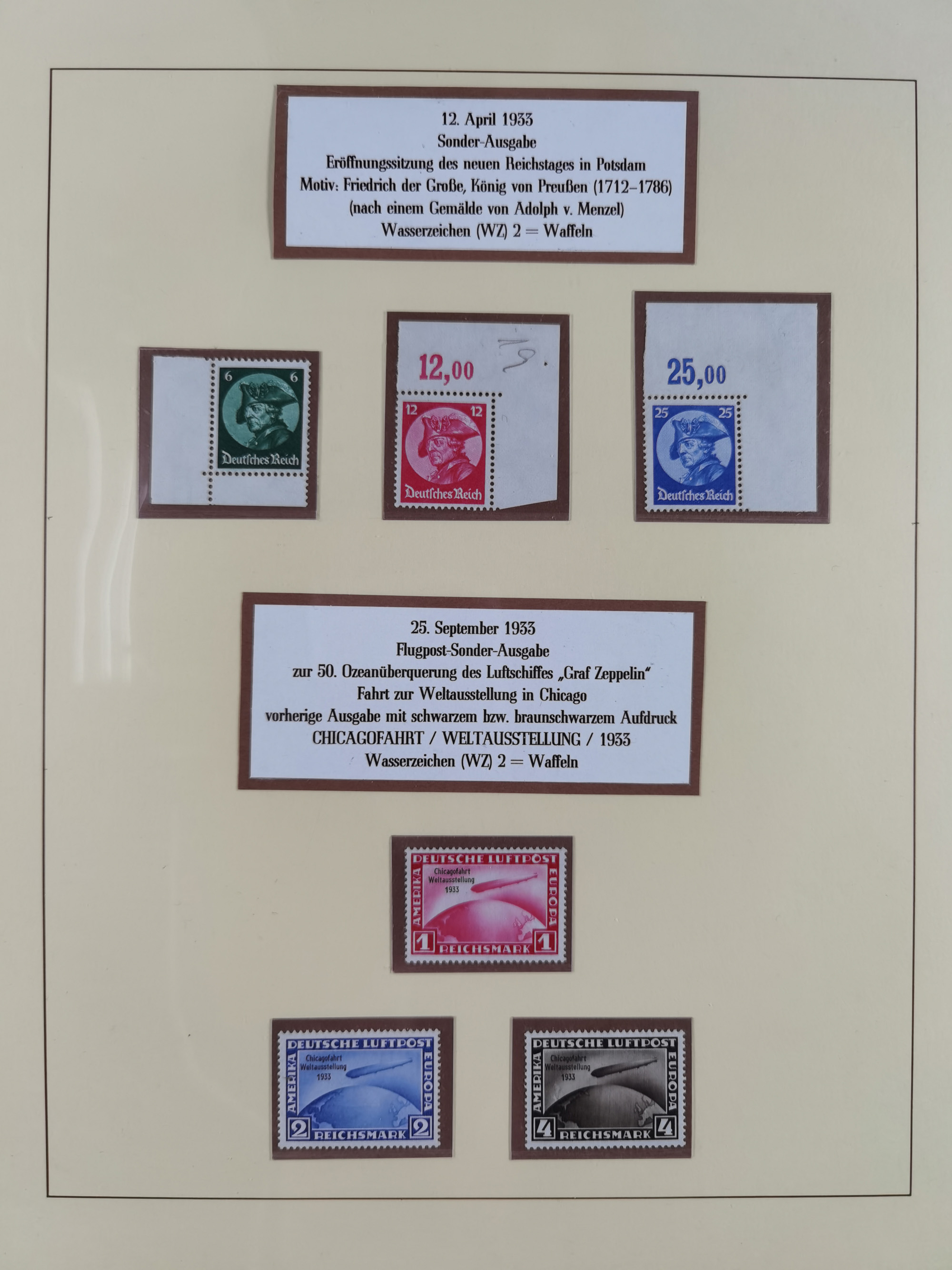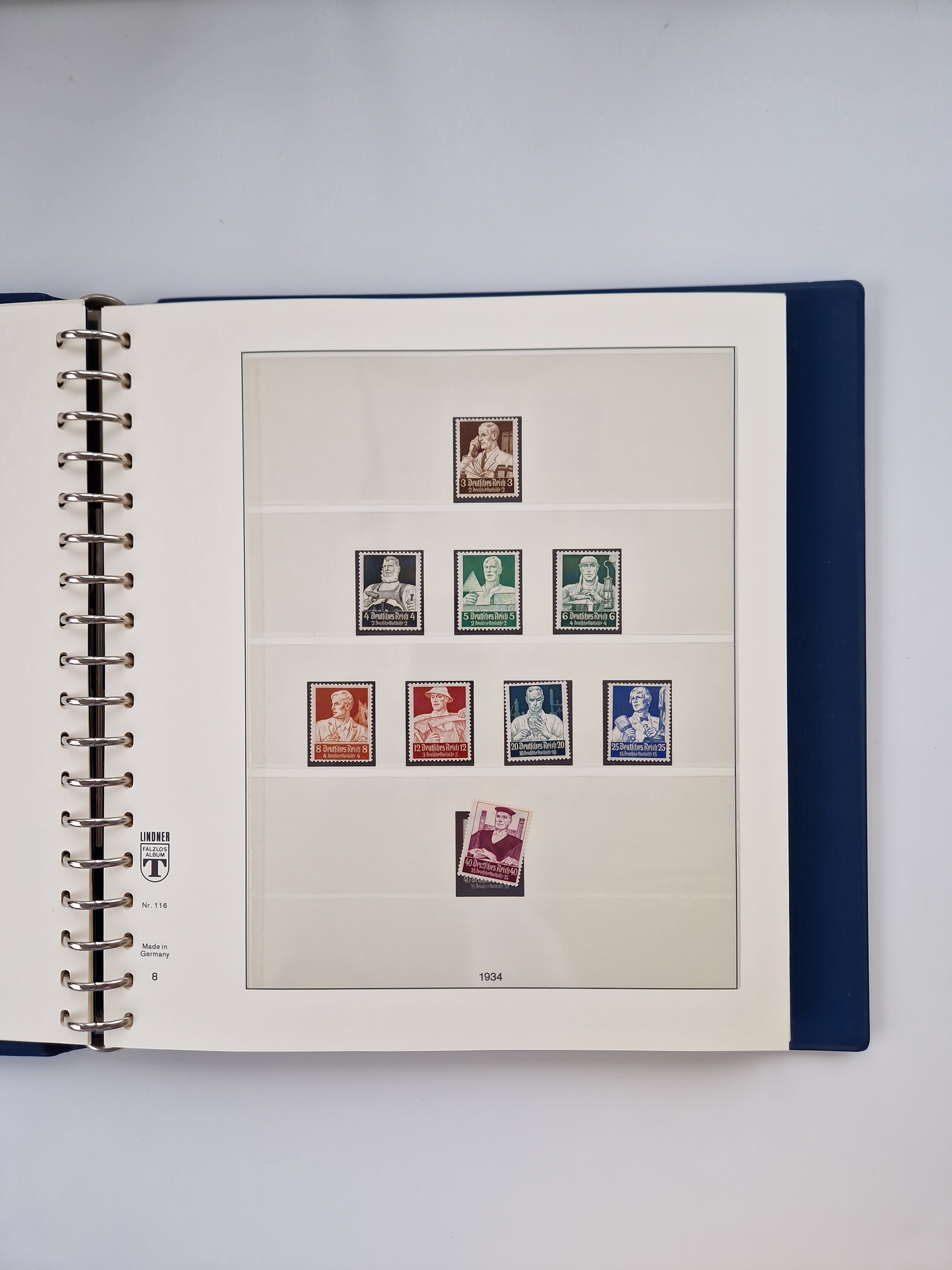 1933/45, in den Hauptnummern bis auf Block 1-3 komplette, meist postfrische und teils ungebrauchte Sammlung inkl. Dienstmarken, dabei Chicagofahrt ungebraucht, Mi.-Nr. 482-95 postfrisch, Bl. 4-11, dabei Bl. 5-6 sign. Schlegel BPP, gute Erhaltung, im Vordruckalbum