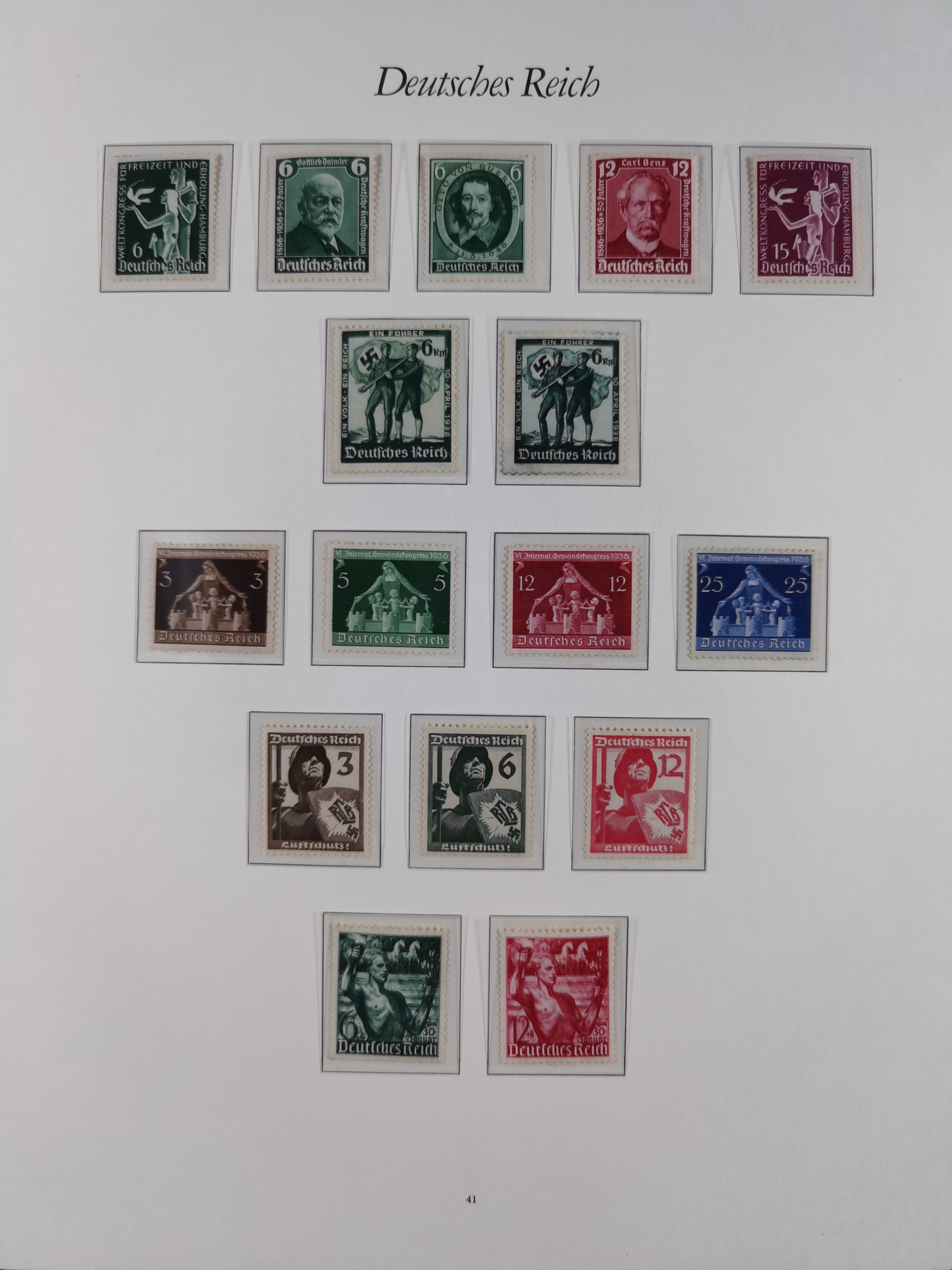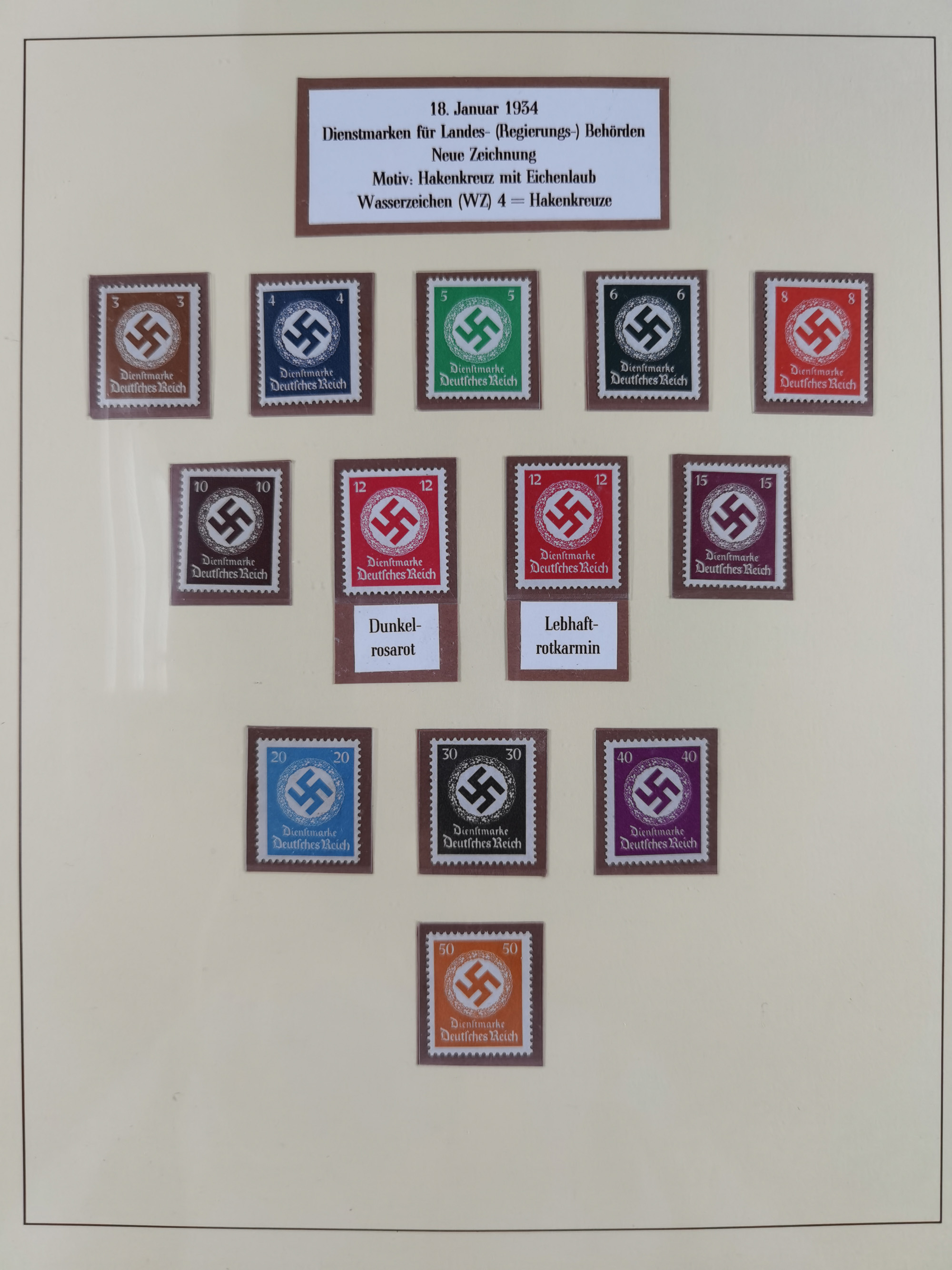 1933/45, umfangreiche postfrische und ungebrauchte Sammlung, inkl. Dienstmarken und Feldpost, mit einigen Einheiten und Dubletten, bessere Werte mit u.a. Mi.-Nr. 479-481 postfrisch (zweimal), 482-495, 499-507 und 529-539 postfrisch/ungebraucht, etc., teils signiert, meist in sehr schöner Gesamterhaltung, sauber im Falzlos-Album