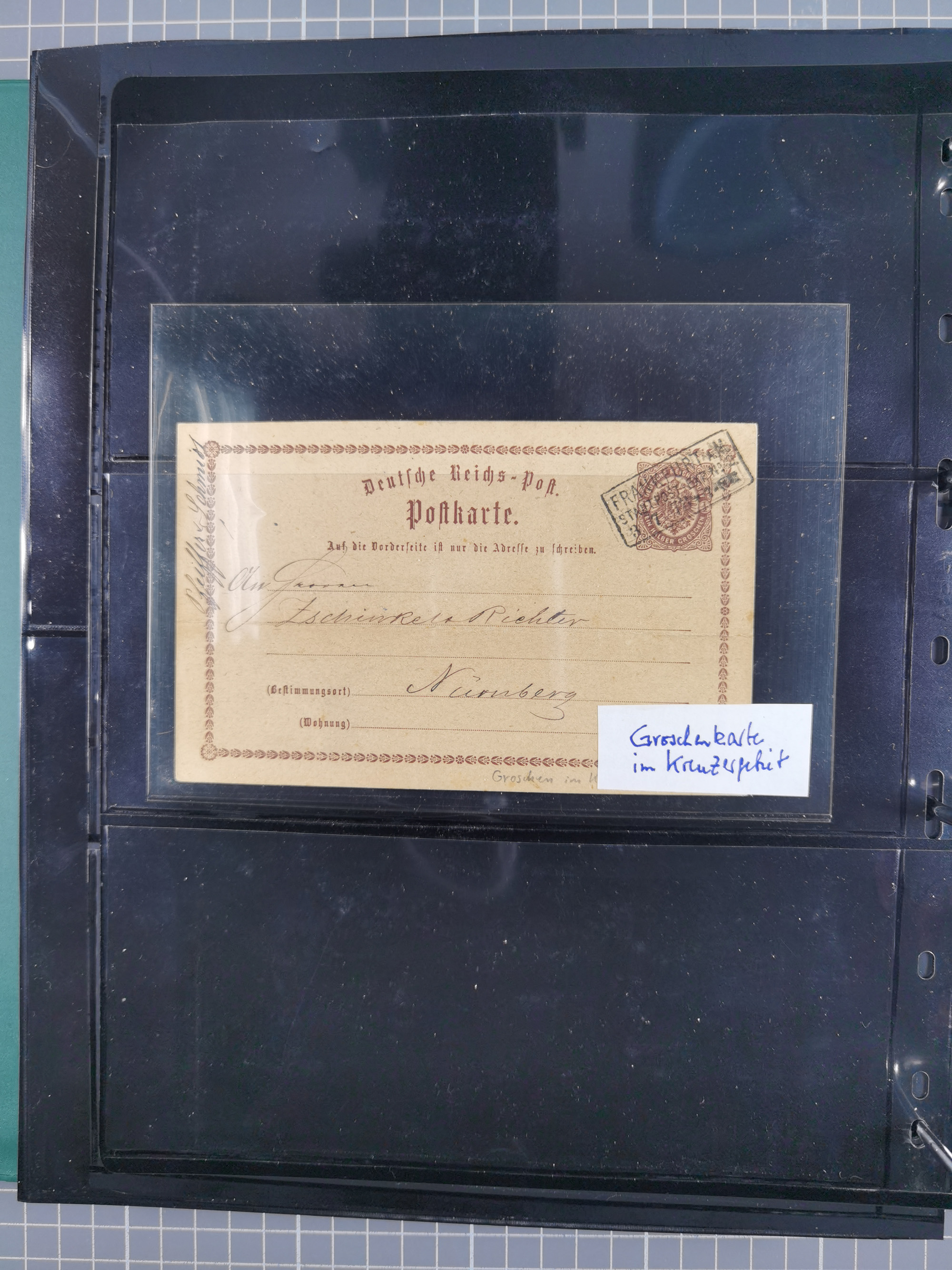 1872/74, 24 Ganzsachenkarten und Umschläge mit Zufrankaturen, interessanten Stempeln und Verwendungen. Dabei u.a. P2 fremdverwendet in Berlin (FB Sommer BPP), P1 mit Zufrankatur Mi.-Nr. 21a als Paketbegleit-Karte, P1 fremdverwendet in Mainz, 3 Kr. GSU mit fehlerhafter Zufrankatur als Express-Brief und 1 Gr. GSU mit fehlerhafter Zufrankatur als Paketbegleitbrief (Vierfarben-Frankatur!). Dazu noch drei ungebrauchte Umschläge, meist in guter Erhaltung, ex Untermann