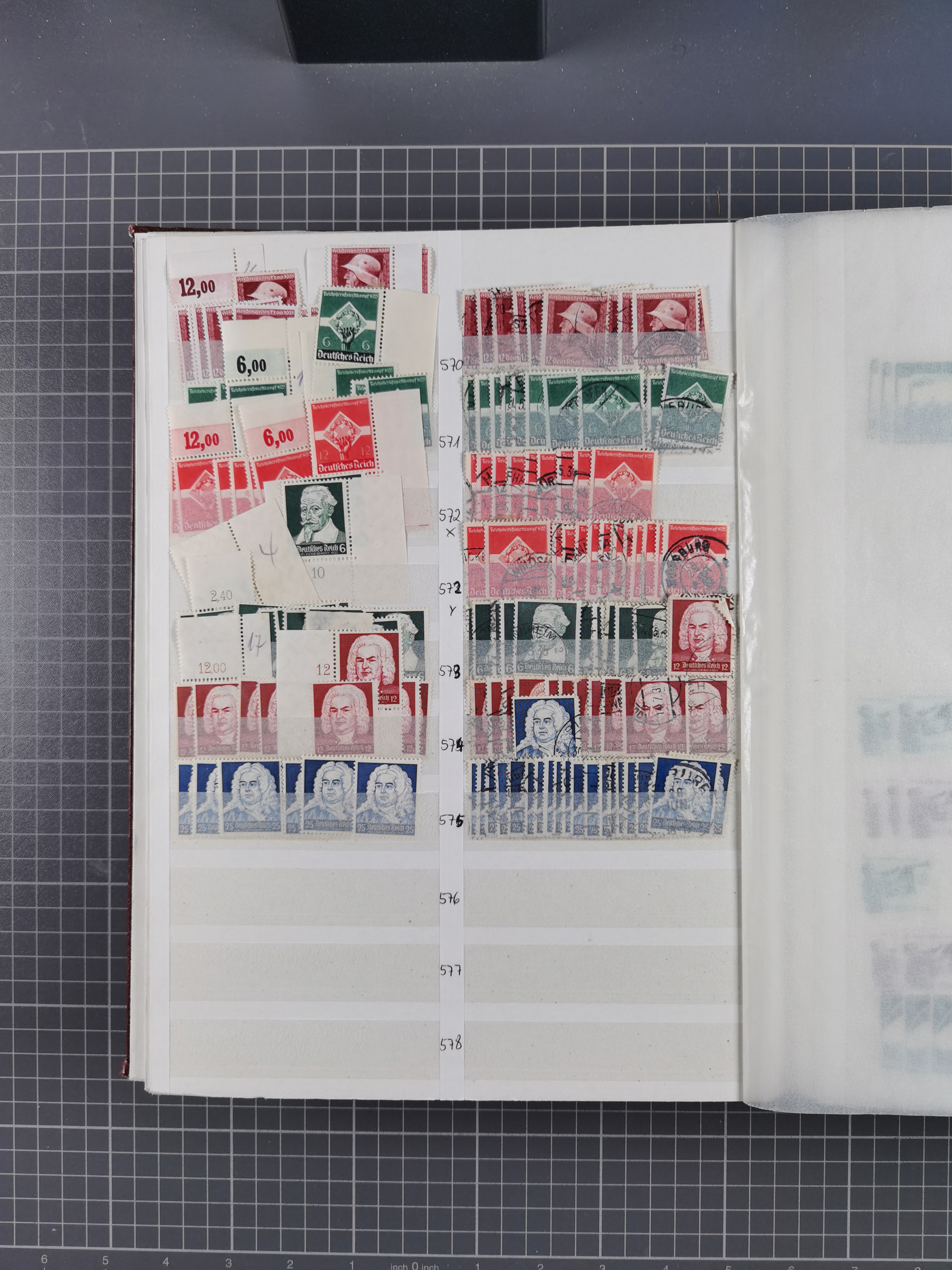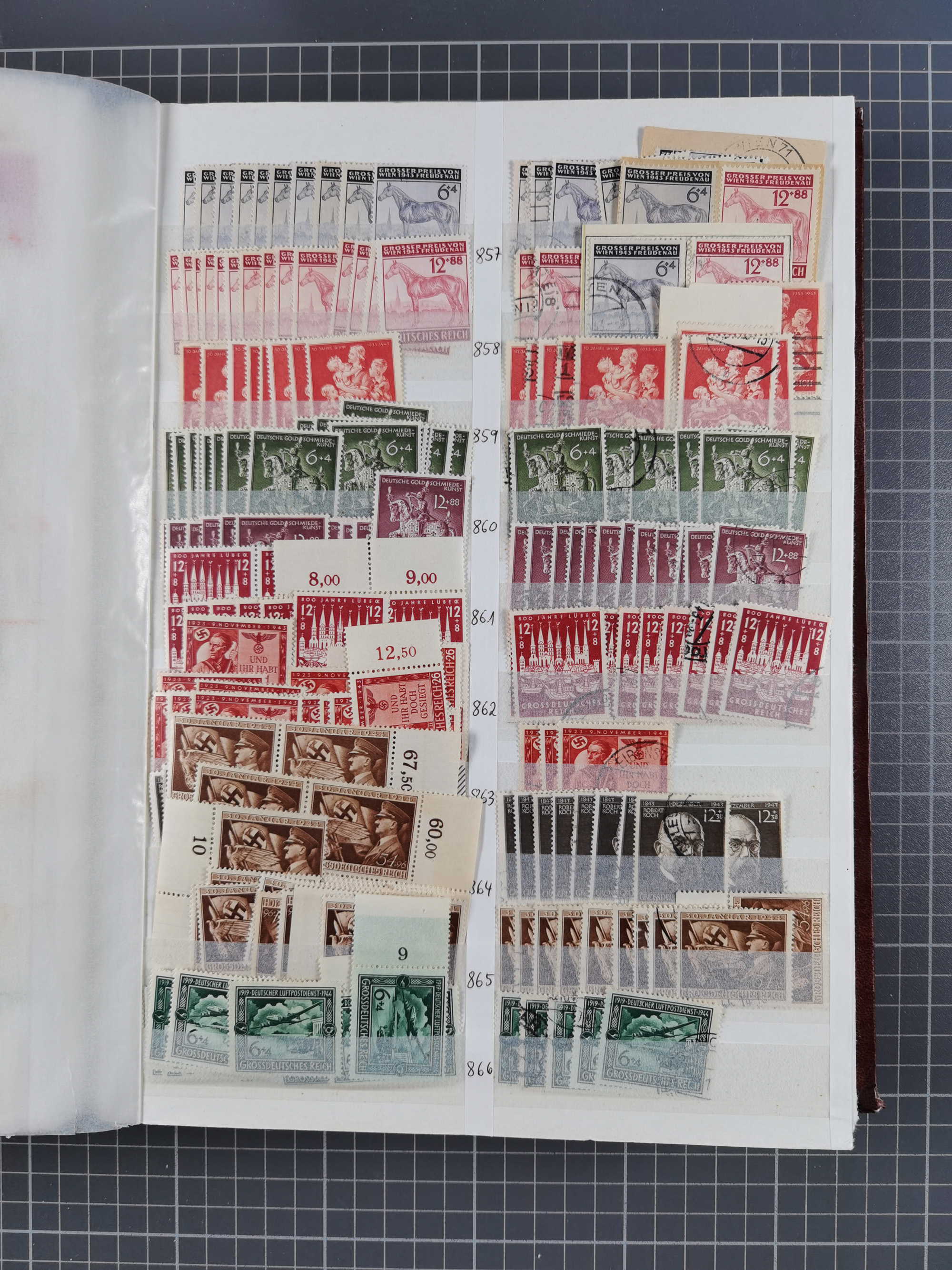 1933/45, Lagerbuch mit ungebrauchten/postfrischen und gestempelten Marken in Mengen bis ca. 10x pro Sorte/Erhaltung. Dabei ab ca. 1936 mit viel postfrischem Material, zum Teil auch in größeren Mengen