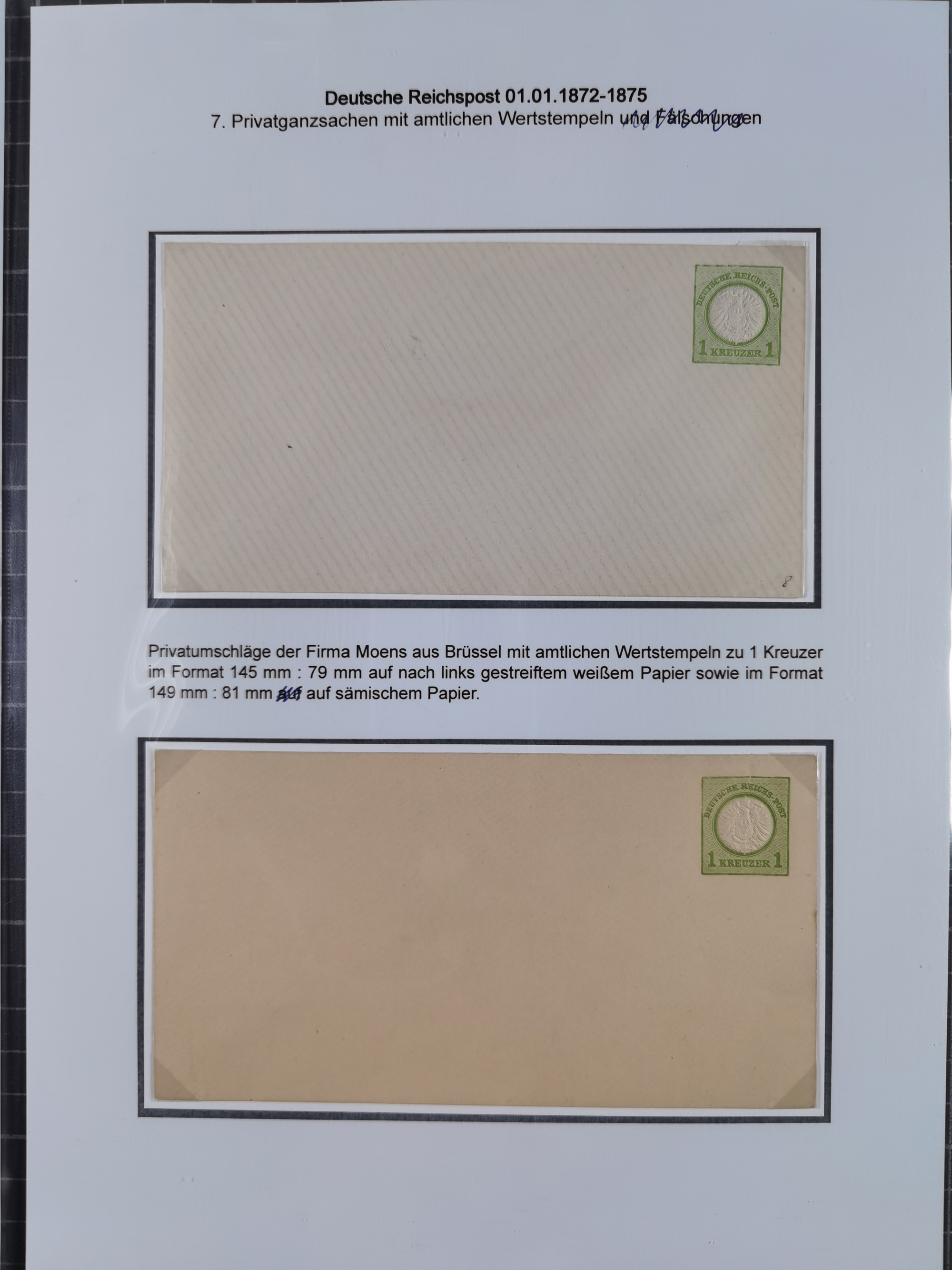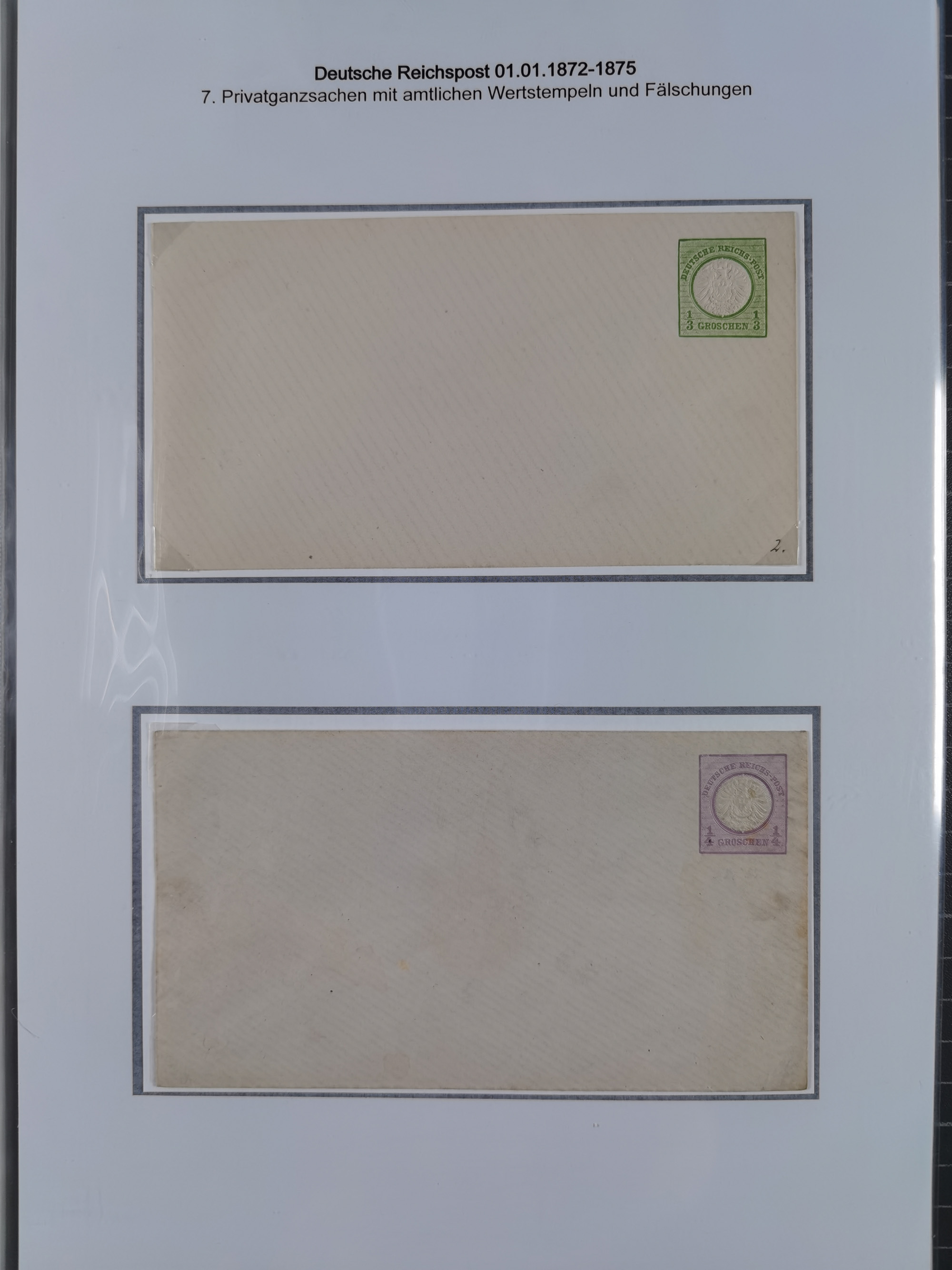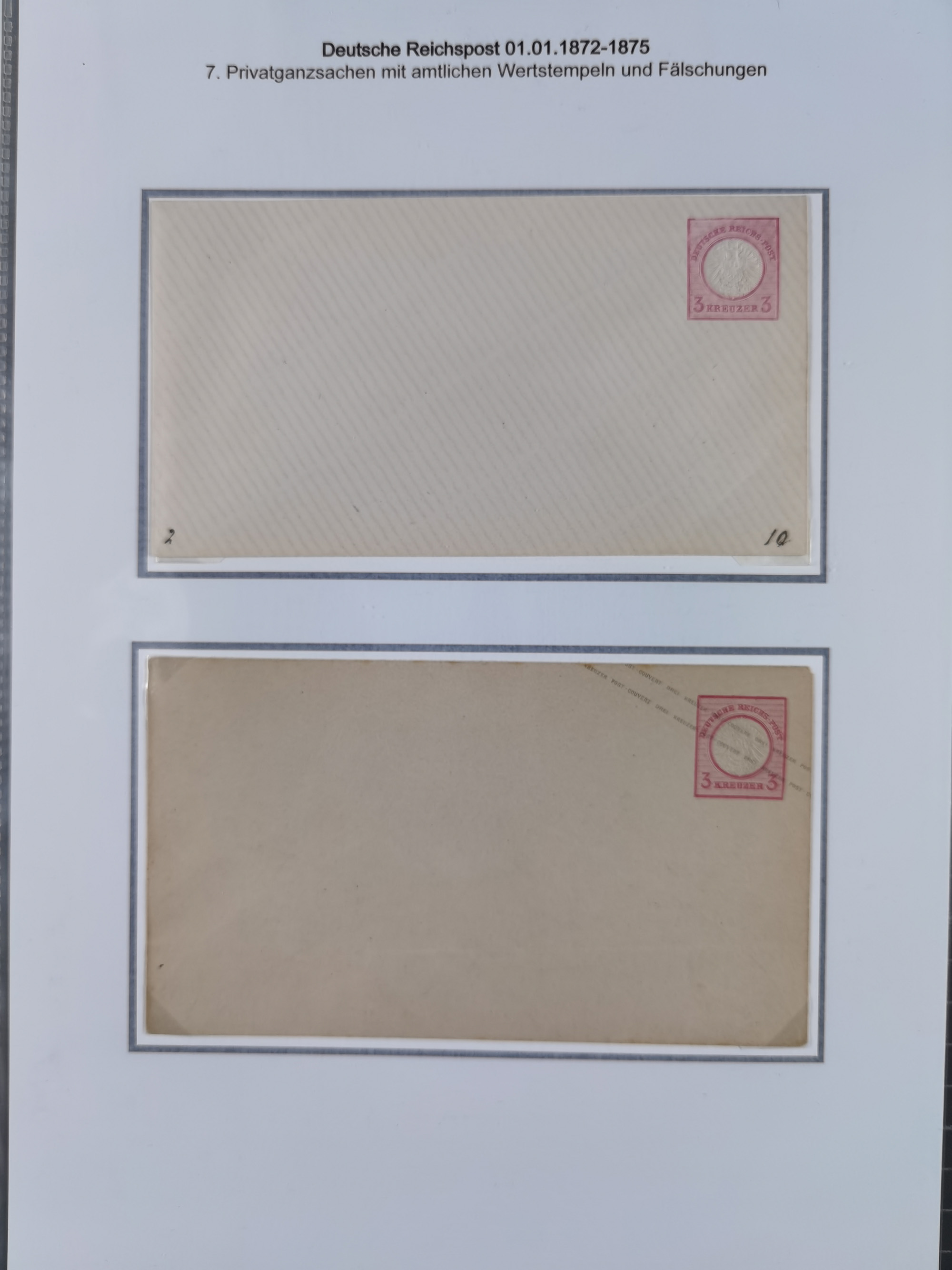 1872/75, Sammlung “Privat-Ganzsachenumschläge” mit 25 Umschlägen. Dabei u.a. jeweils 1 Umschlag mit Wertstempel 2½ und 5 Groschen, vier mit Wertstempel 2 Kreuzer und einmal mit Wertstempel 3 Kreuzer, ungebraucht, ein Umschlag mit Fotoattest Sommer BPP, in guter Erhaltung, ex Untermann