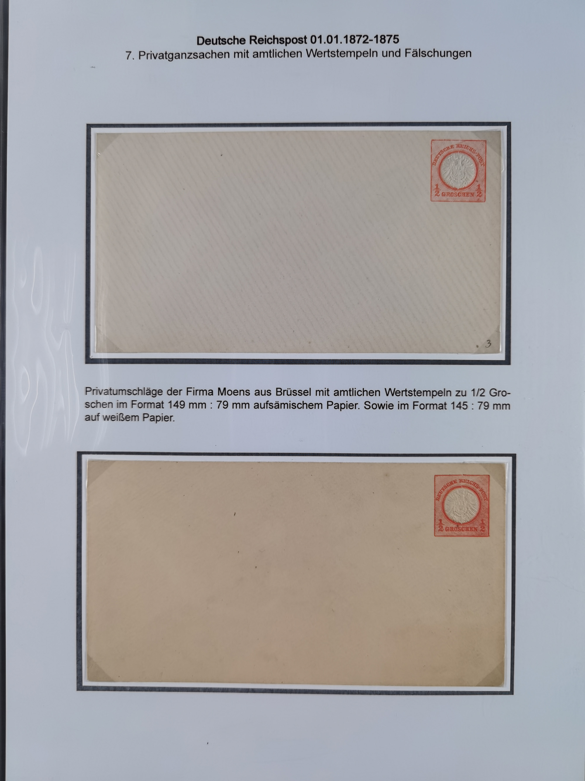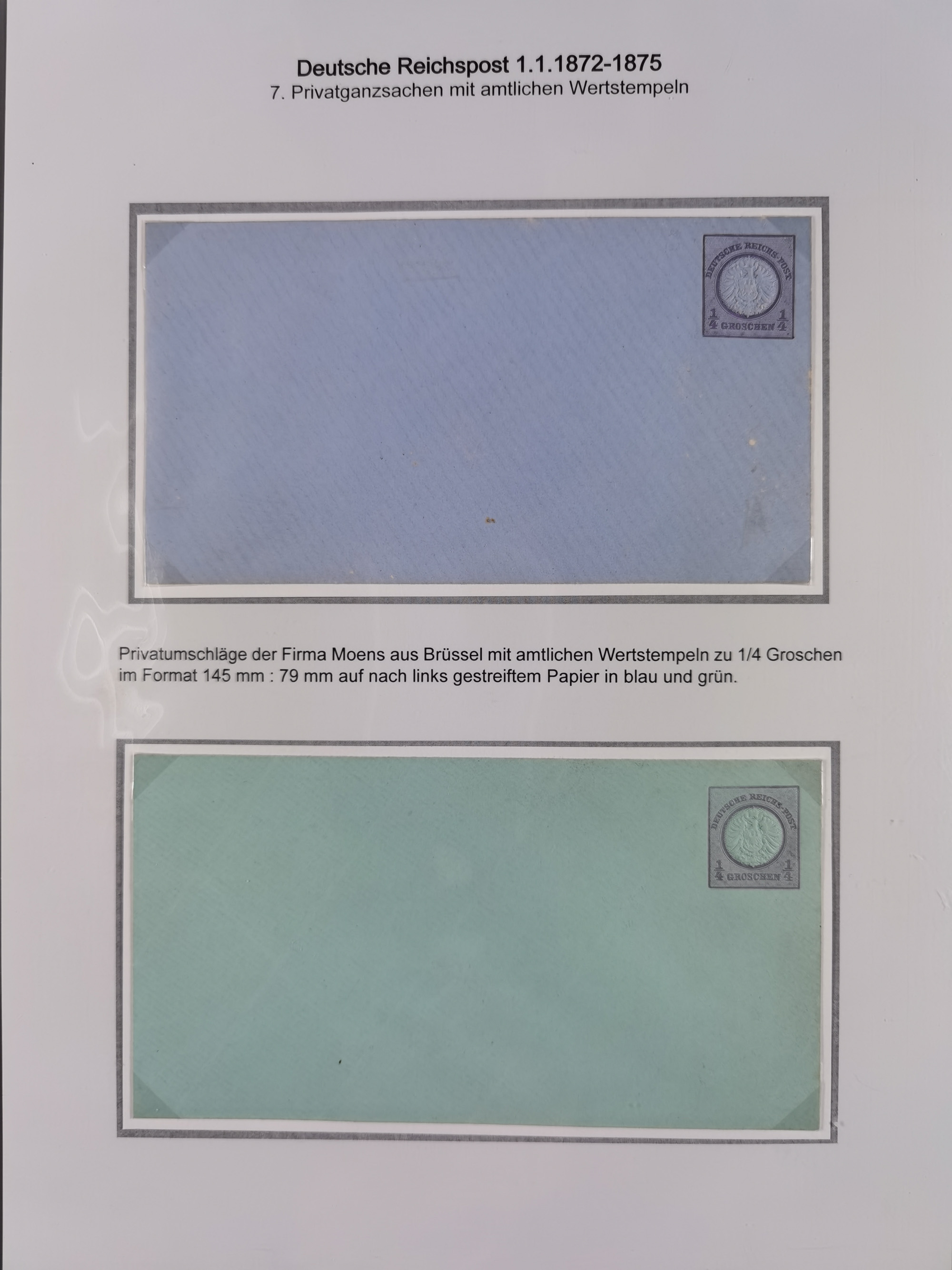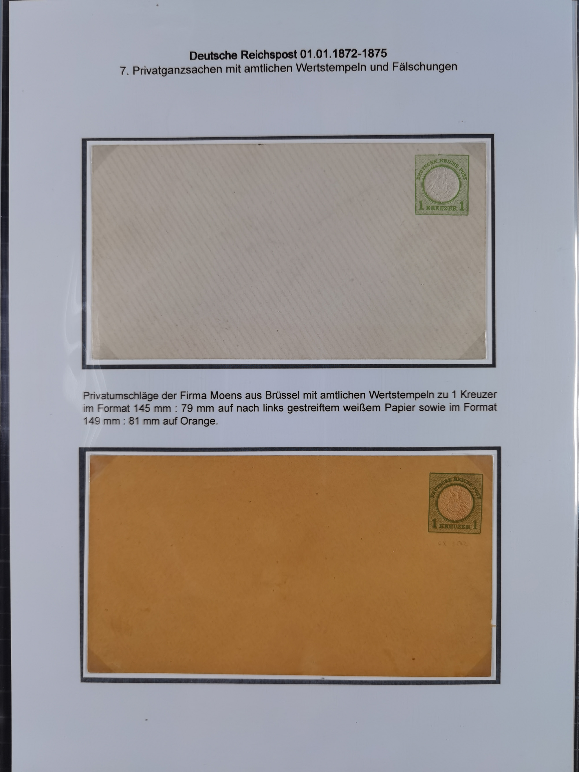 1872/75, Sammlung “Privat-Ganzsachenumschläge” mit 25 Umschlägen. Dabei u.a. jeweils 1 Umschlag mit Wertstempel 2½ und 5 Groschen, vier mit Wertstempel 2 Kreuzer und einmal mit Wertstempel 3 Kreuzer, ungebraucht, ein Umschlag mit Fotoattest Sommer BPP, in guter Erhaltung, ex Untermann
