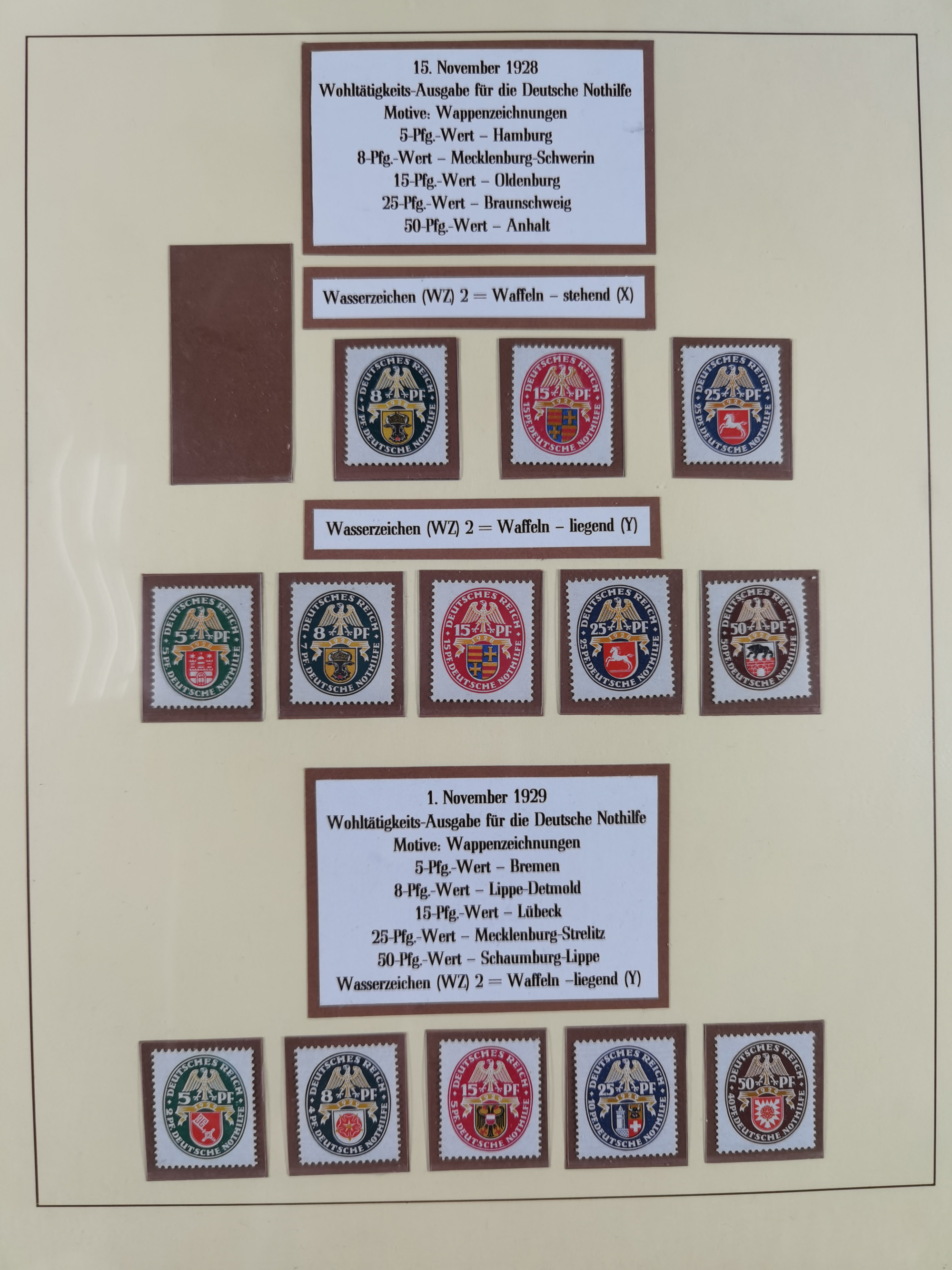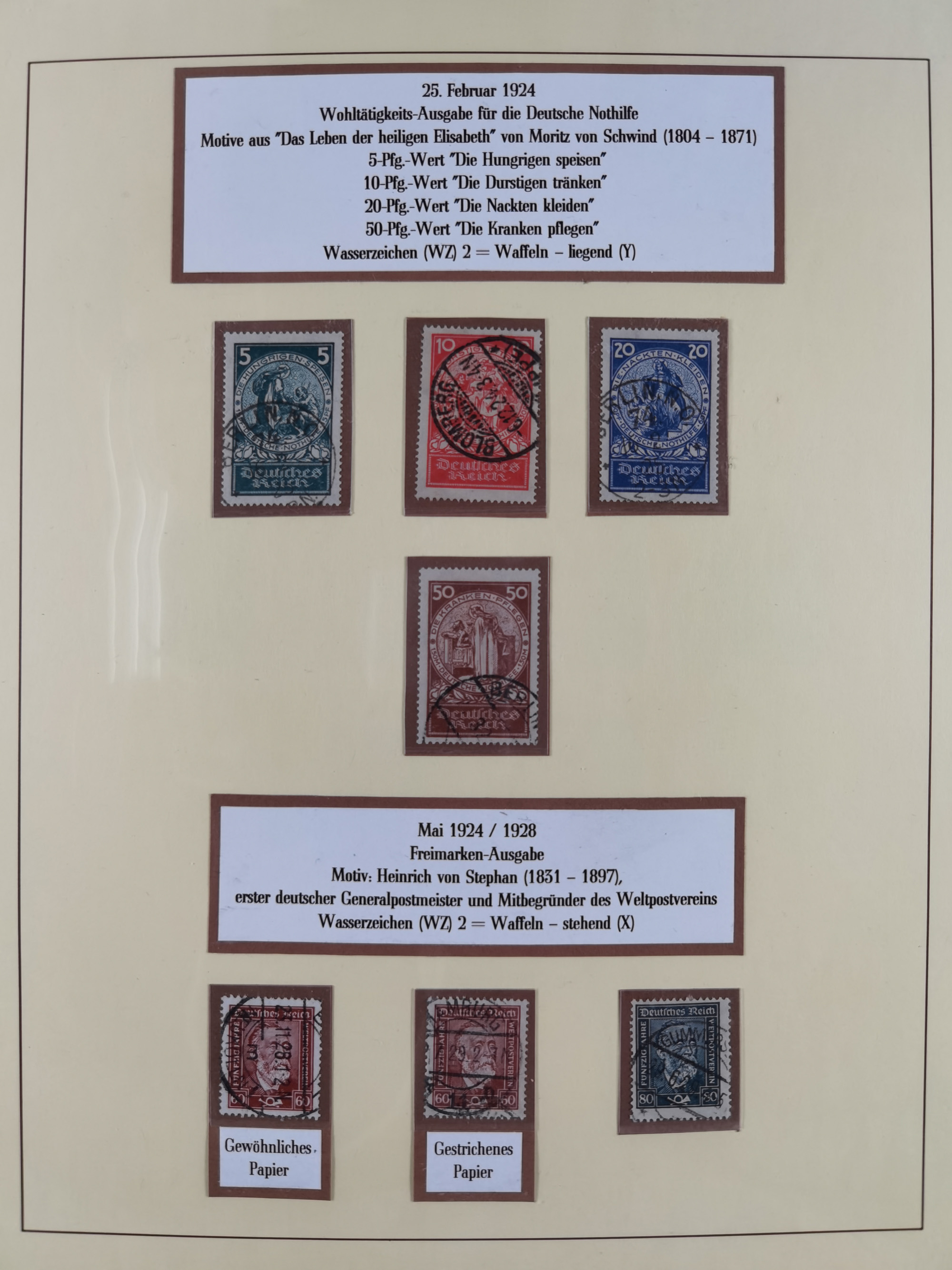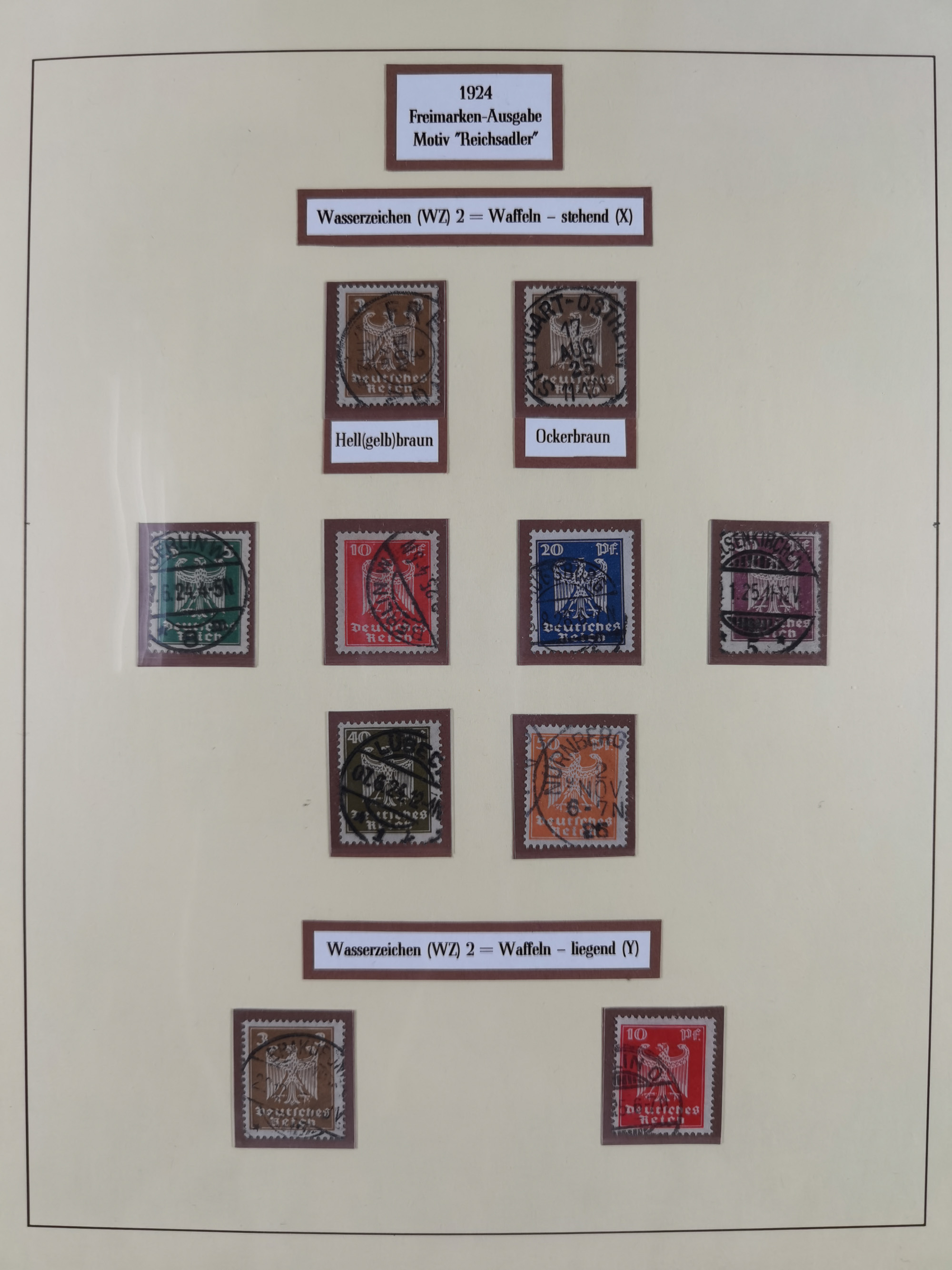 1923/45, in den Hauptnummern überkomplette, meist postfrische Sammlung inkl. Dienstmarken mit einigen Besonderheiten inkl. Wasserzeichen-Varianten. Dabei u.a. Mi.-Nr. 346Y (FA D. Schlegel BPP), Randstück Mi.-Nr. 355Y (FA Schlegel BPP), Mi.-Nr. 398X mit Gummifehler (FB D. Schlegel BPP), Mi.-Nr. 438-39Y mit Oberrand (FA Schlegel BPP), Mi.-Nr. 456-58 (FA D. Schlegel BPP), Mi.-Nr.496-98 (FA D. Schlegel BPP), Block2 ungebraucht und Oberrandstück Mi.-Nr. D126Y (FA Schlegel BPP). Fast durchgehend in guter Erhaltung mit nur wenigen ungebrauchten Marken/Sätzen, sauber auf selbst gestalteten Albenblättern in drei Alben