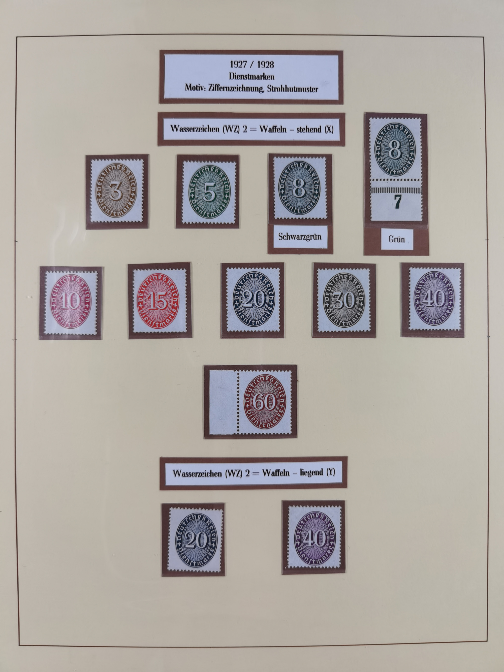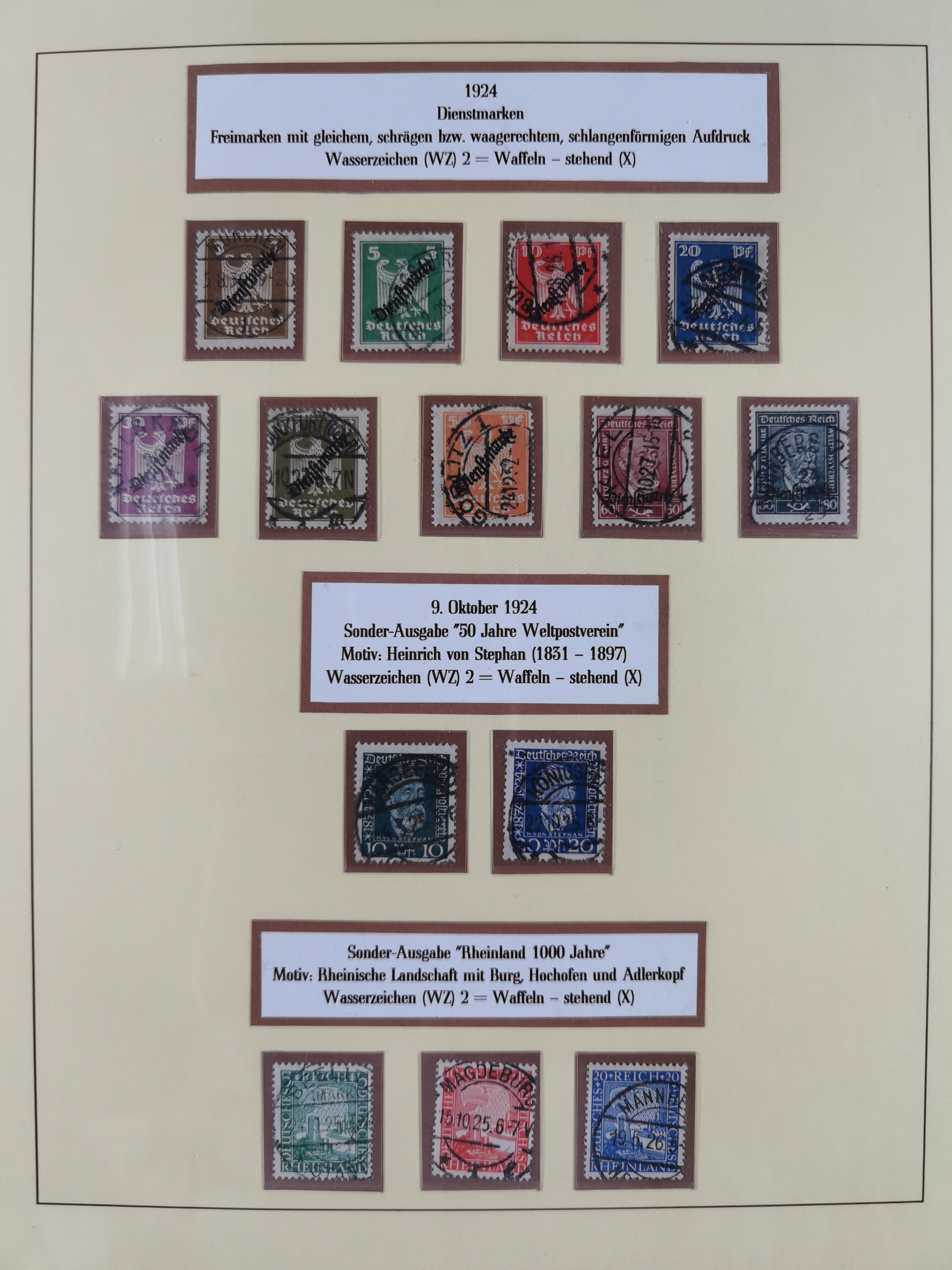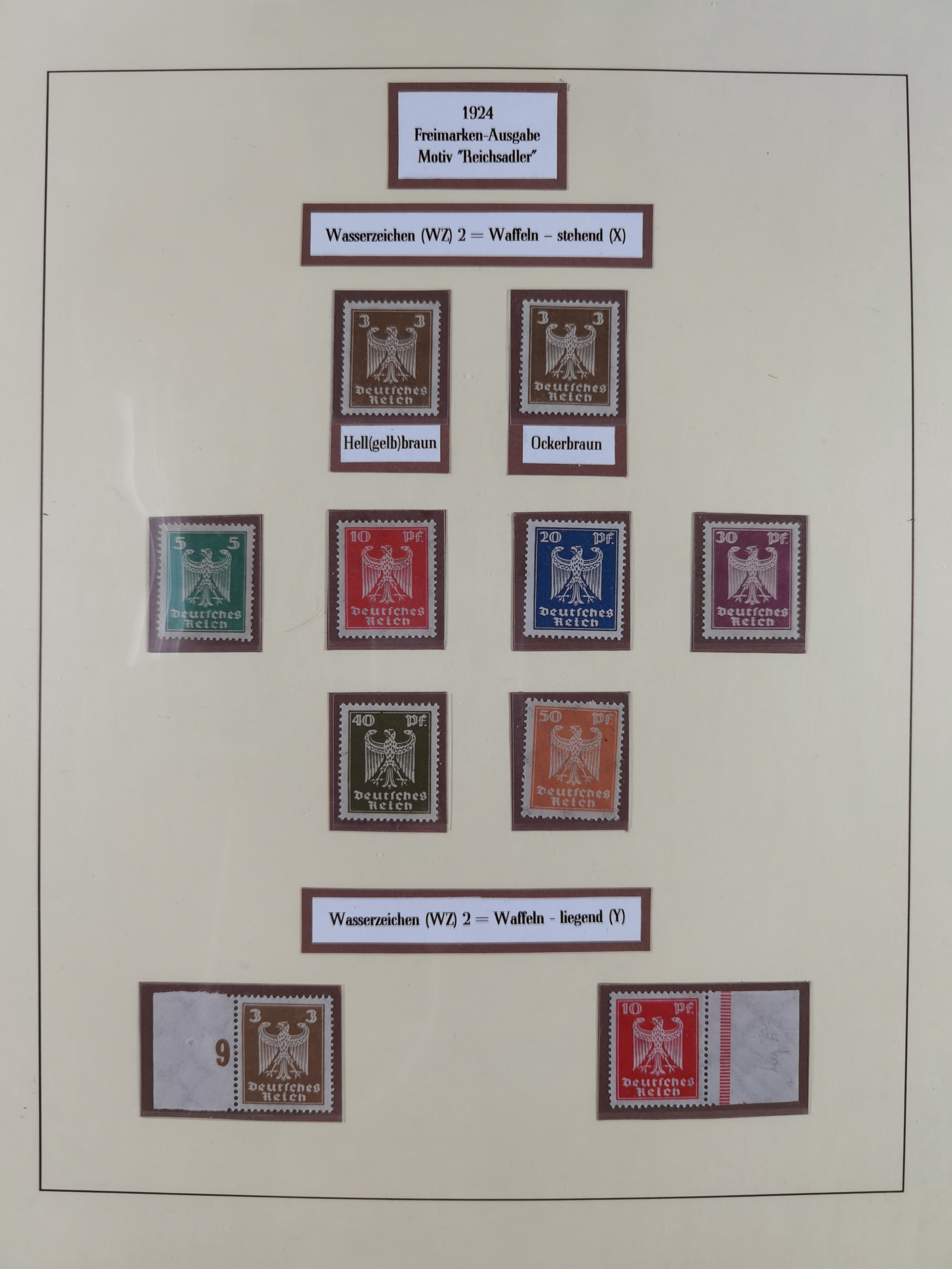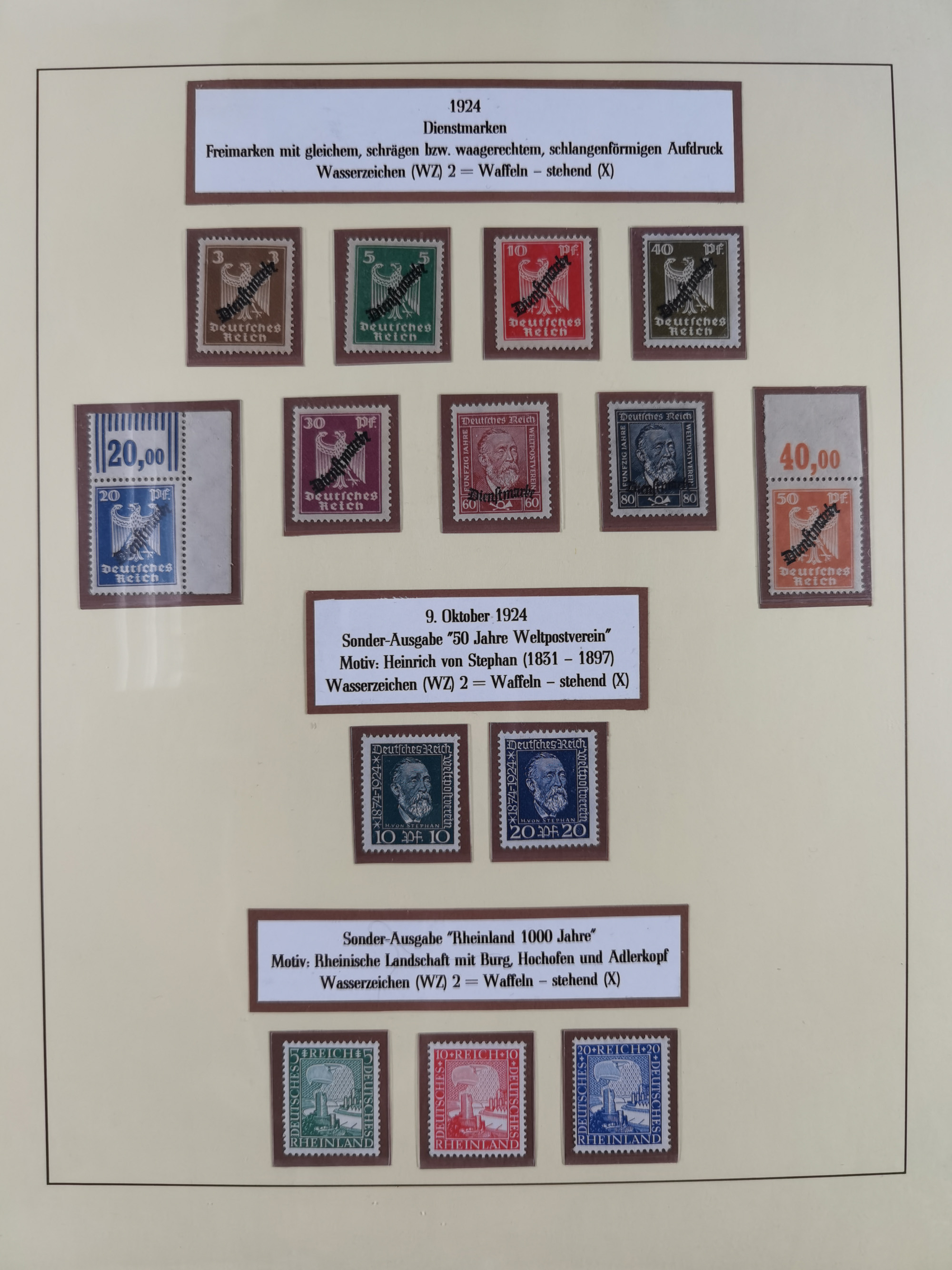 1923/45, in den Hauptnummern überkomplette, meist postfrische Sammlung inkl. Dienstmarken mit einigen Besonderheiten inkl. Wasserzeichen-Varianten. Dabei u.a. Mi.-Nr. 346Y (FA D. Schlegel BPP), Randstück Mi.-Nr. 355Y (FA Schlegel BPP), Mi.-Nr. 398X mit Gummifehler (FB D. Schlegel BPP), Mi.-Nr. 438-39Y mit Oberrand (FA Schlegel BPP), Mi.-Nr. 456-58 (FA D. Schlegel BPP), Mi.-Nr.496-98 (FA D. Schlegel BPP), Block2 ungebraucht und Oberrandstück Mi.-Nr. D126Y (FA Schlegel BPP). Fast durchgehend in guter Erhaltung mit nur wenigen ungebrauchten Marken/Sätzen, sauber auf selbst gestalteten Albenblättern in drei Alben
