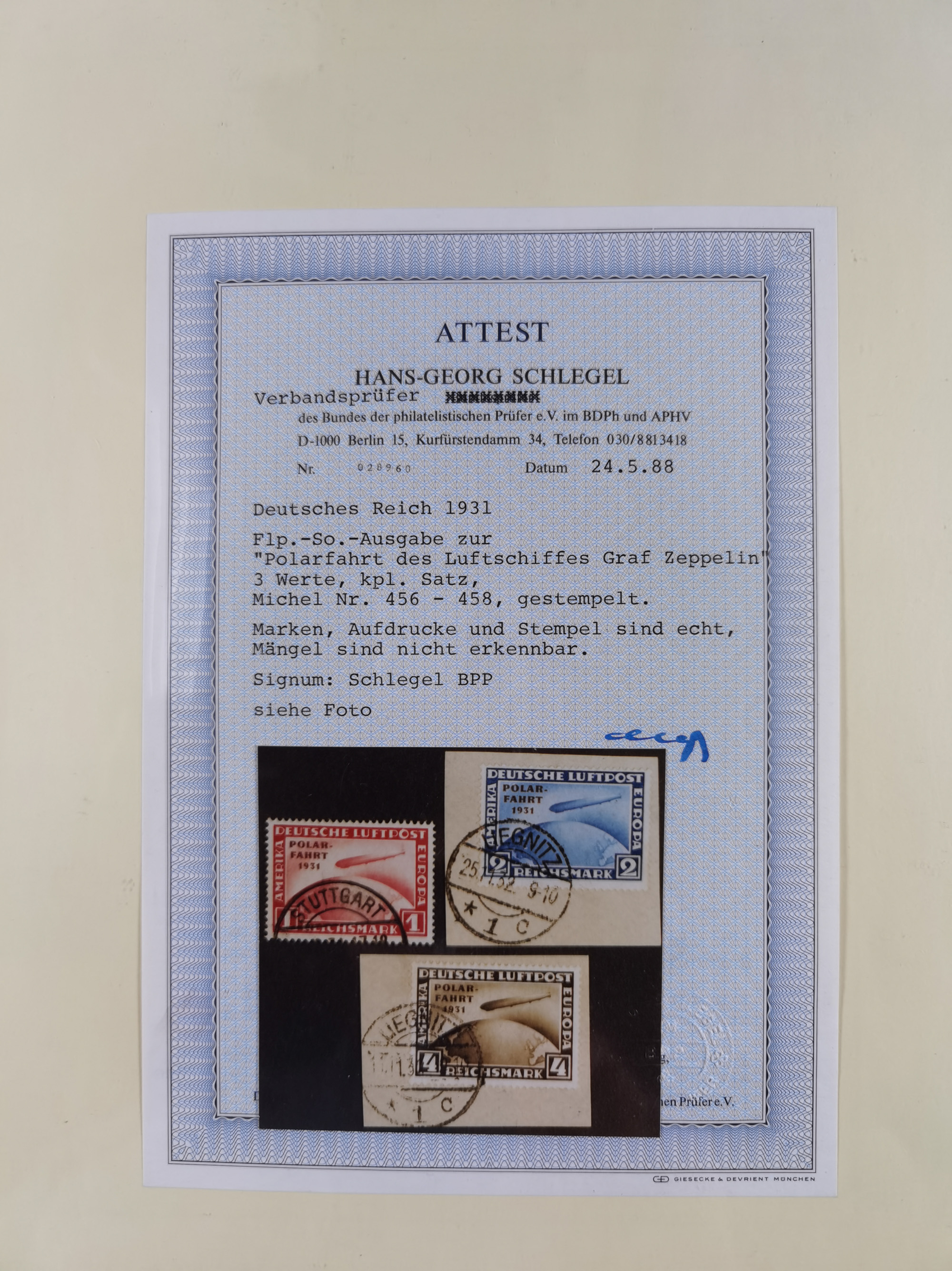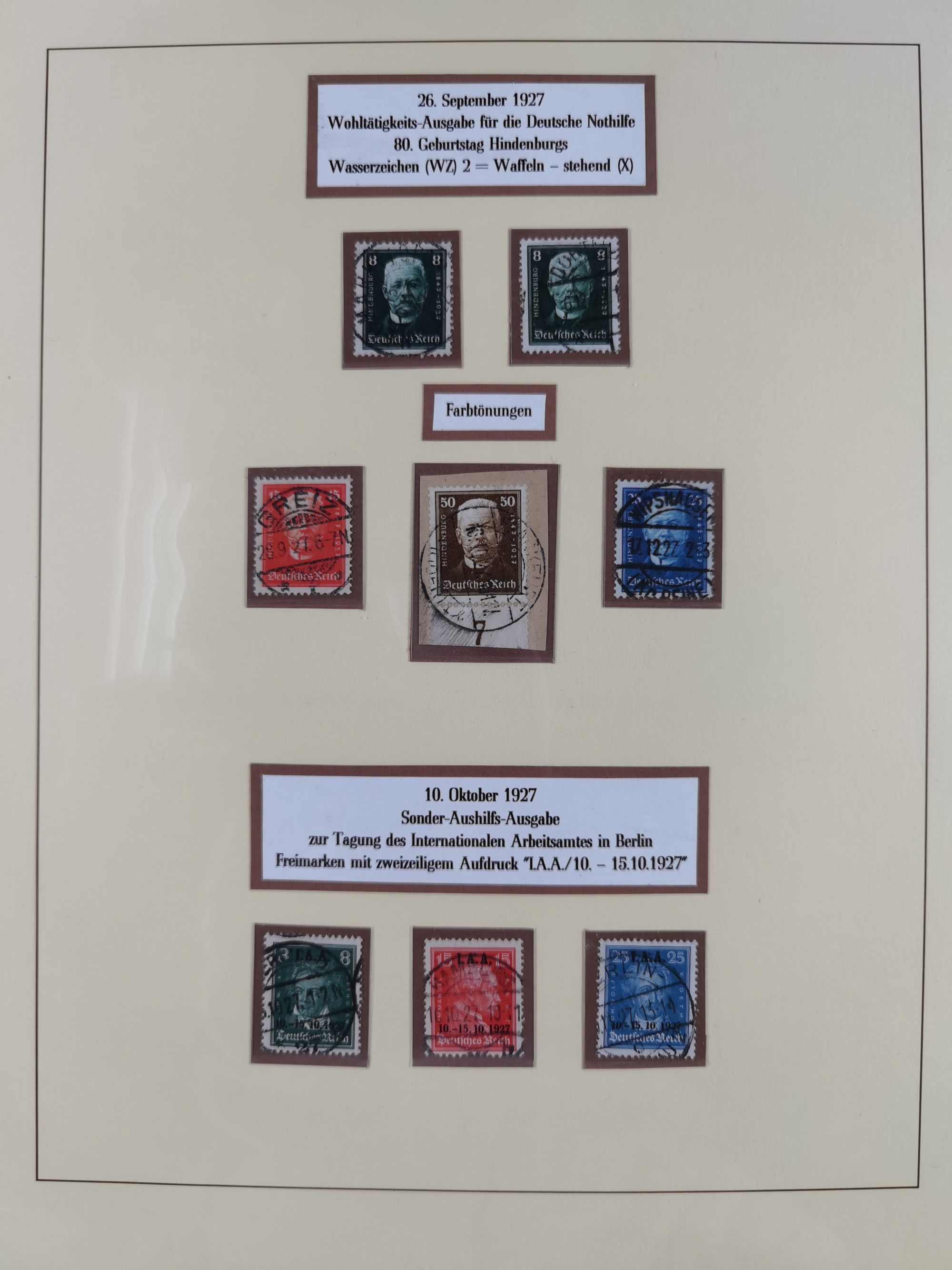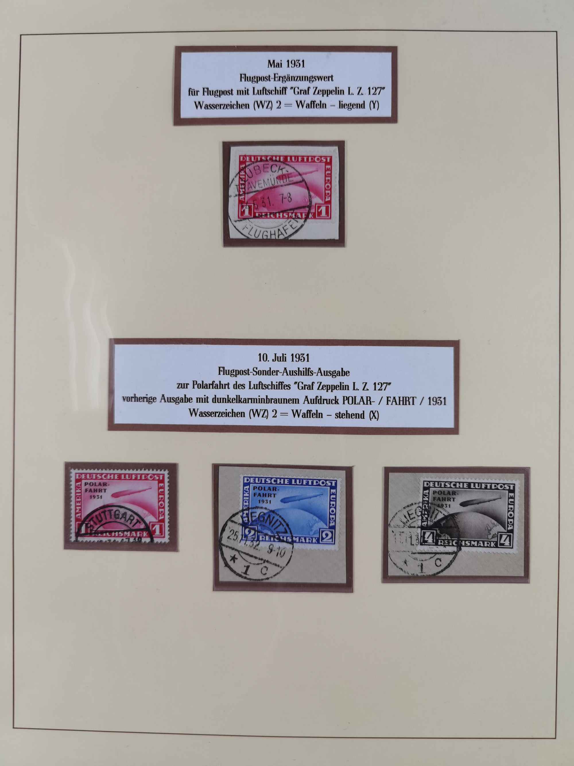 1923/45, umfangreiche, in den Hauptnummern überkomplette gestempelte Sammlung inkl. Dienstmarken mit einigen Besonderheiten. Dabei u.a. Mi.-Nr. 346Y (FB D. Schlegel BPP), Mi.-Nr. 398-99X (FA Oechsner BPP bzw. D. Schlegel BPP), Südamerika mit beiden Wassezeichen-Varianten kpl., Block 1 mit seltenem Sonderstempel “IPOSTA D. WINTERMÄRCHEN” (FA Schlegel BPP), Polarfahrt (FA Schlegel BPP), um wenige Milimeter verkleinerter Block 2 (FA D. Schlegel BPP) und Mi.-Nr. 508-11 (FA D. Schlegel BPP). Durchgehend mit ausgesucht schönen Entwertungen und vielen Briefstücken, sauber auf selbst gestalteten Albenblättern in drei Alben
