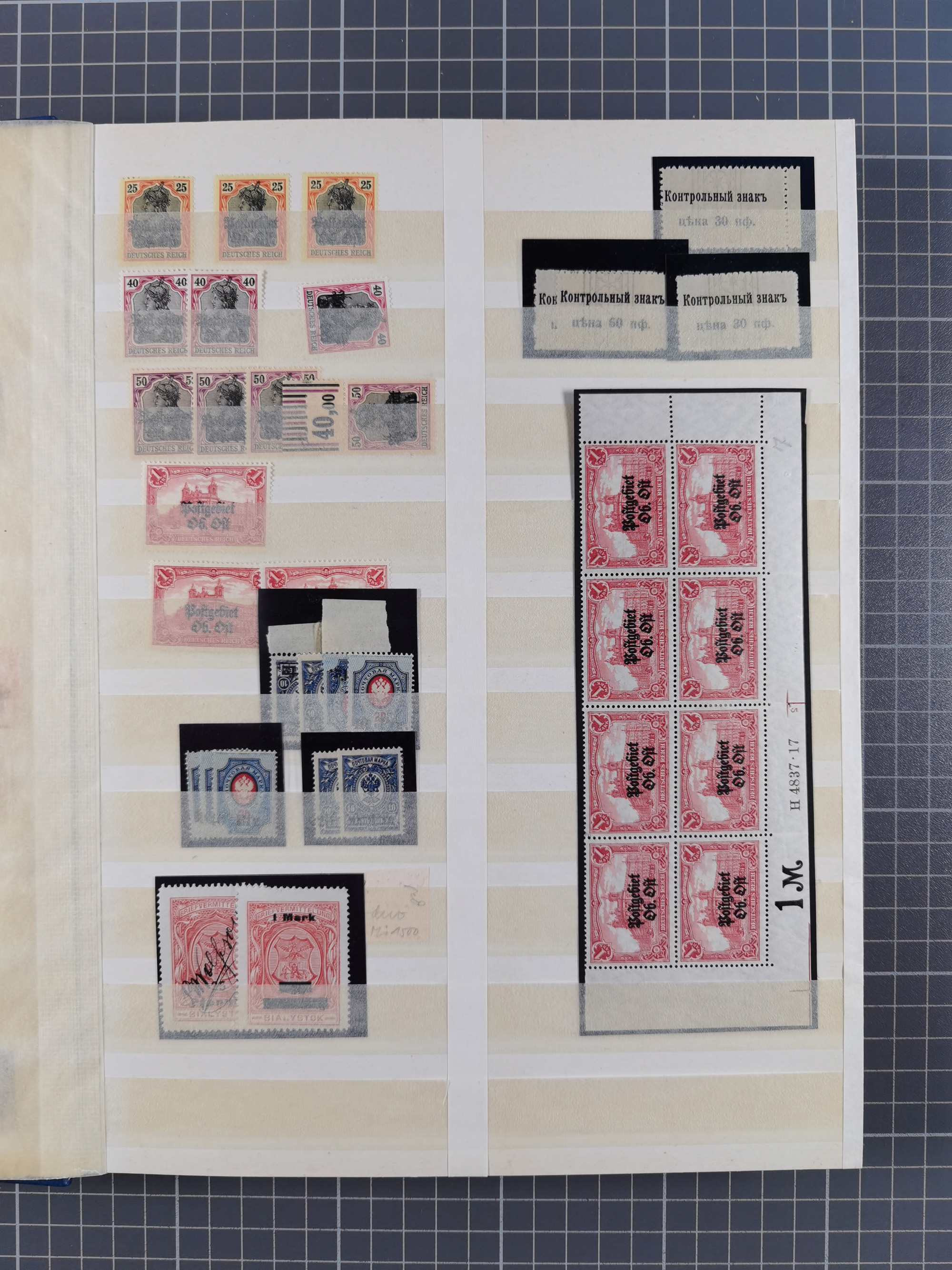 1914/18, in den Hauptnummern überkomplette, meist gestempelte und teils postfrische/ungebrauchte Sammlung inkl. Dorpat, dabei u.a. Ober-Ost Mi.-Nr. 1 und 12A/B sowie Dorpat Mi.-Nr. 1a und 2 je im 4er-Block postfrisch, 1b ungebraucht (FB Wasels BPP), 1a und 2 je 9 Stk. gestempelt oder als Briefstück, etc., vieles mit guten Signaturen, gute Erhaltung, auf Vordruckseiten