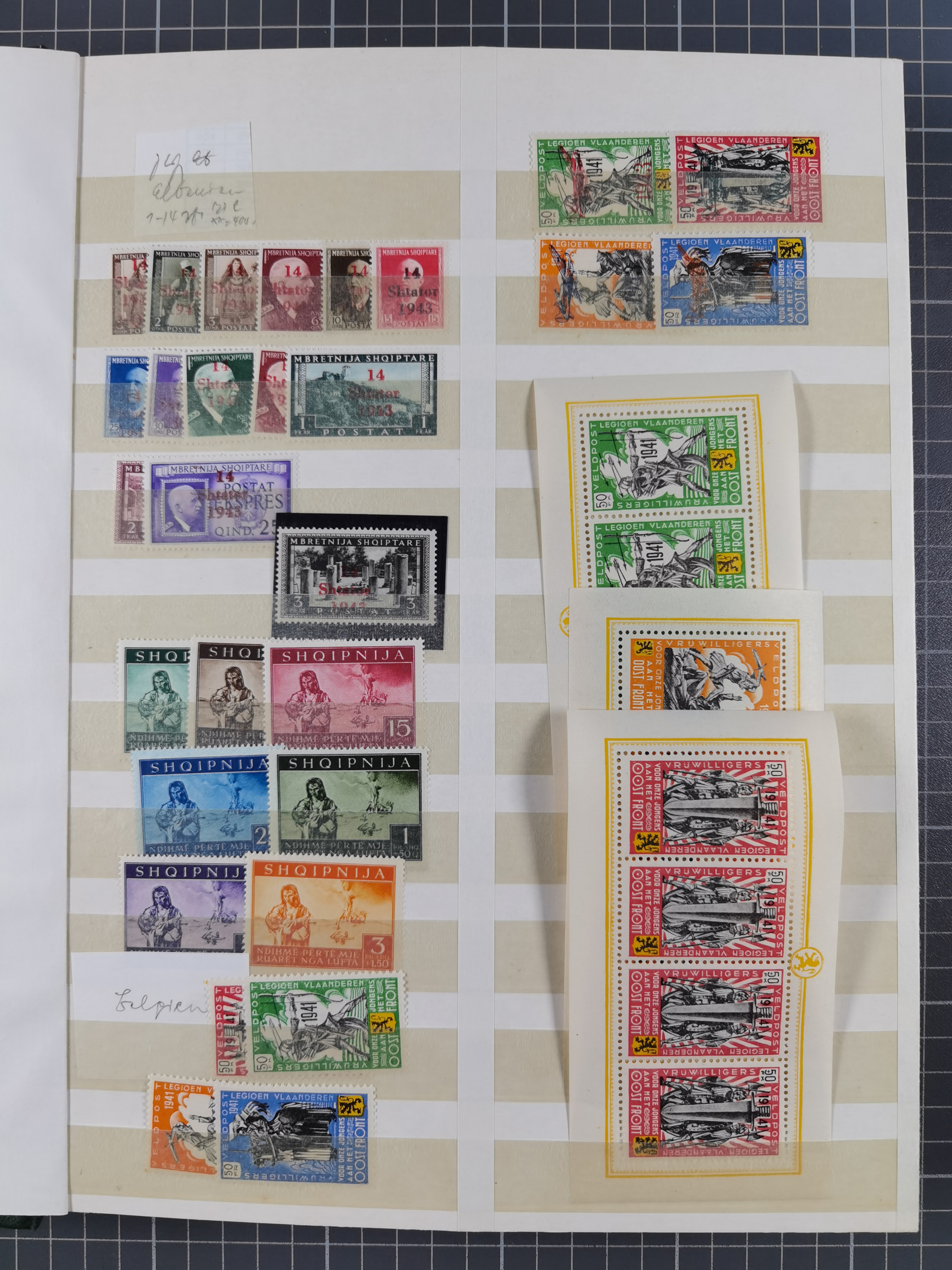 1939/45, postfrische und winzig ungebrauchte/gestempelte Sammlung mit vielen kompletten Gebieten, dabei Böhmen und Mähren mit Zulassungsmarke vielen Zwischenstegpaaren, teils mit Pl.-Nr. und Plattensternen, Estland, Flämische Legion IX-XIV Klb., XX A, Frankreich inkl. Legion mit Eisbärblock kpl. und teils mit Zierfeldern, Azadhind kpl. mit VIIBa-c, Generalgouvernement mit Klb. 4U, Kanalinseln, Kotor 7-10, Laibach kpl. mit 19b postfrisch (KB Brunel), Lettland, Litauen, Luxemburg mit GS-Karten, Mazedonien, Montenegro 1-9, 10-13 sign. Krischke, 20-28 sign. Ercegovic, 29-35, Serbien kpl. inkl. Bogen Mi.-Nr. 62/65II, 83/85 sowie 94/98 und ZS-Paaren, Ukraine, Zante, Zara, etc., gute Erhaltung
