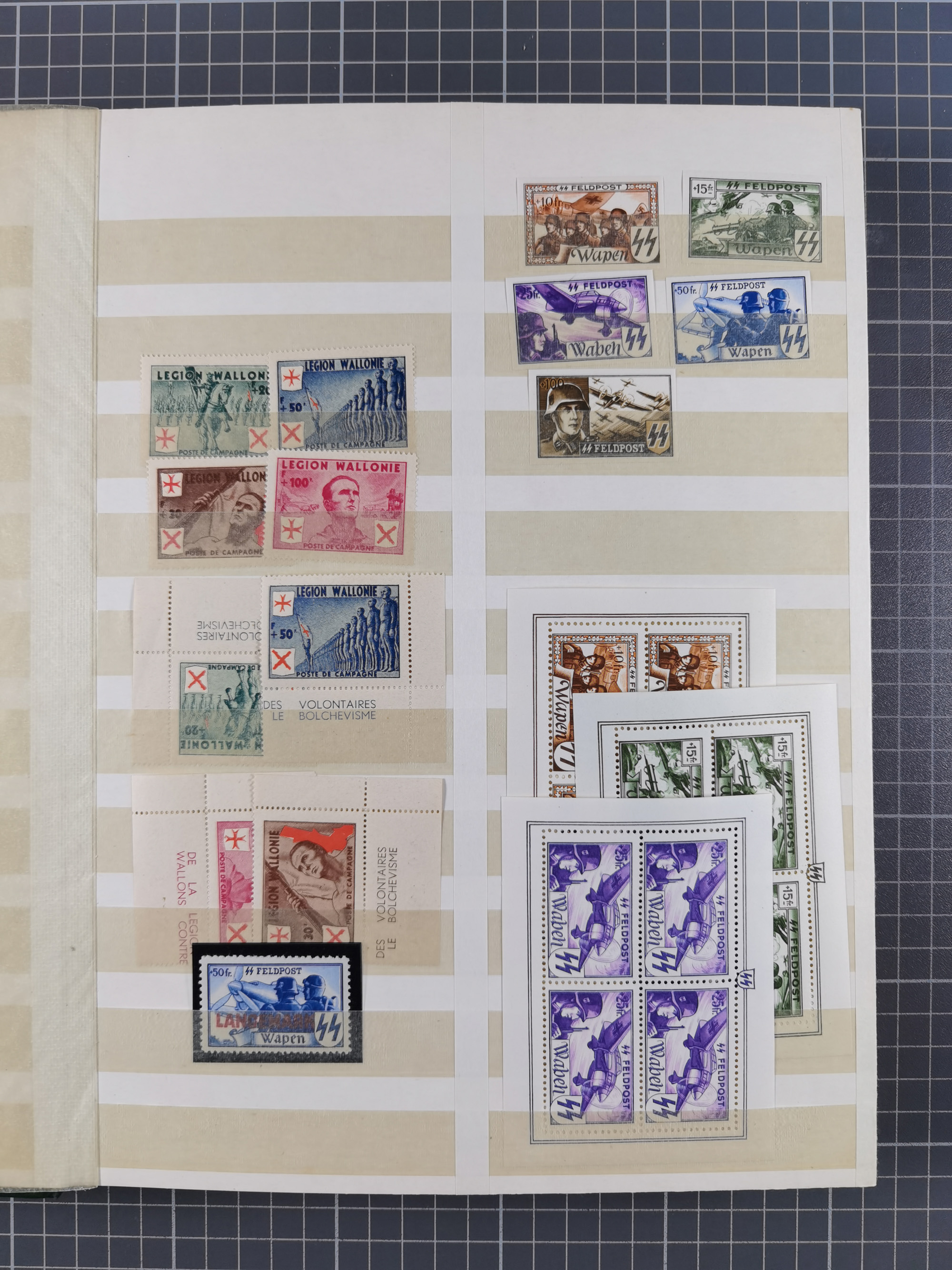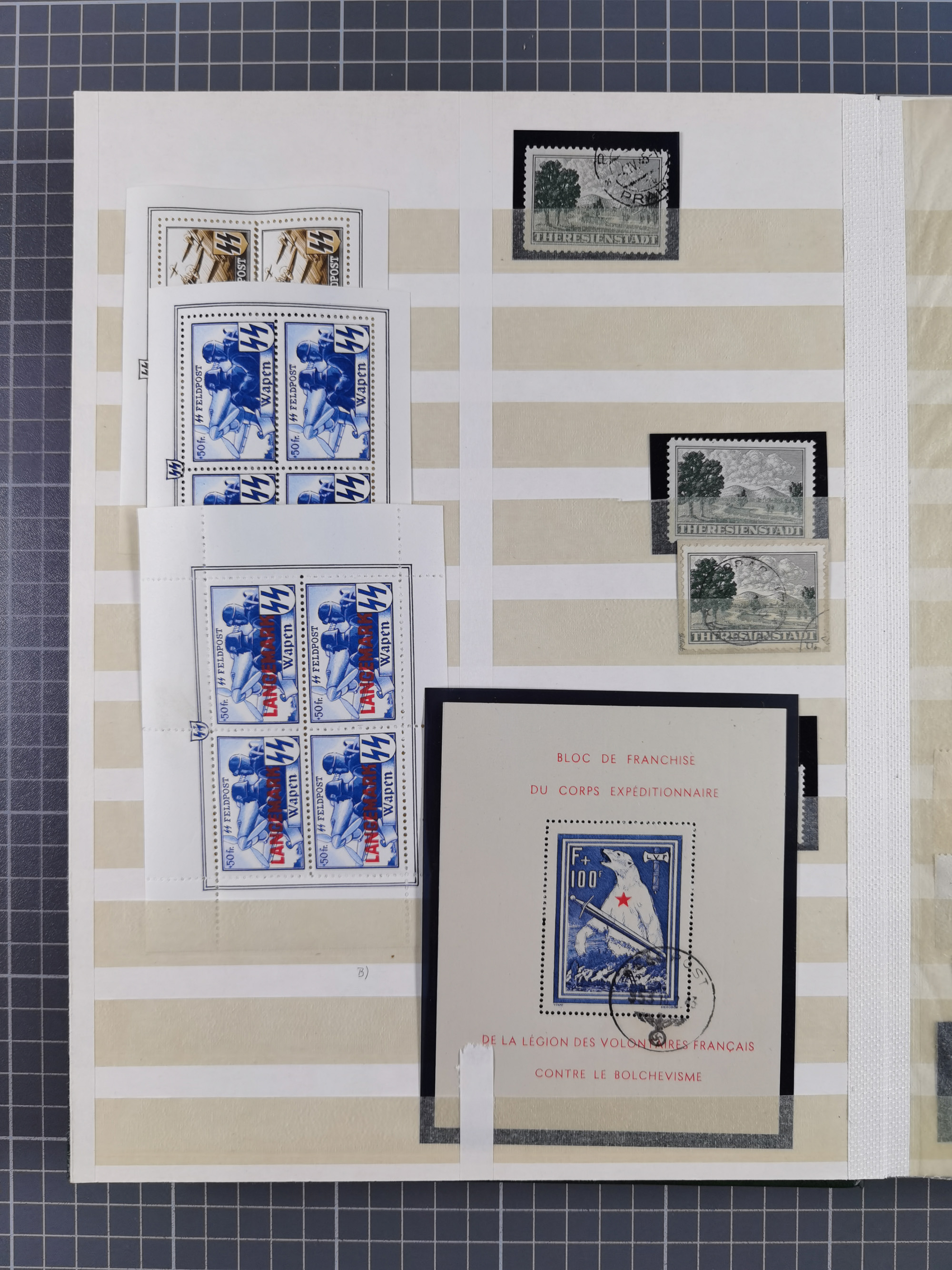 1939/44 (ca.), postfrische, ungebrauchte und gestempelte Partie im Steckbuch, dabei u. A. Theresienstadt (3), GG I-III, Belgische Legion IX-XXA in Kleinbogen, Vilnius, Azad Hind mit allen 3 Rupien-Werten, etc.