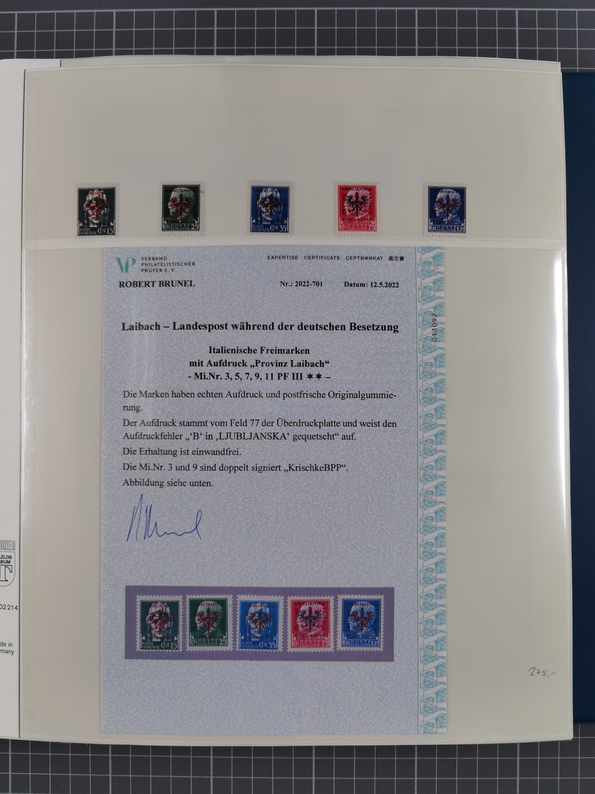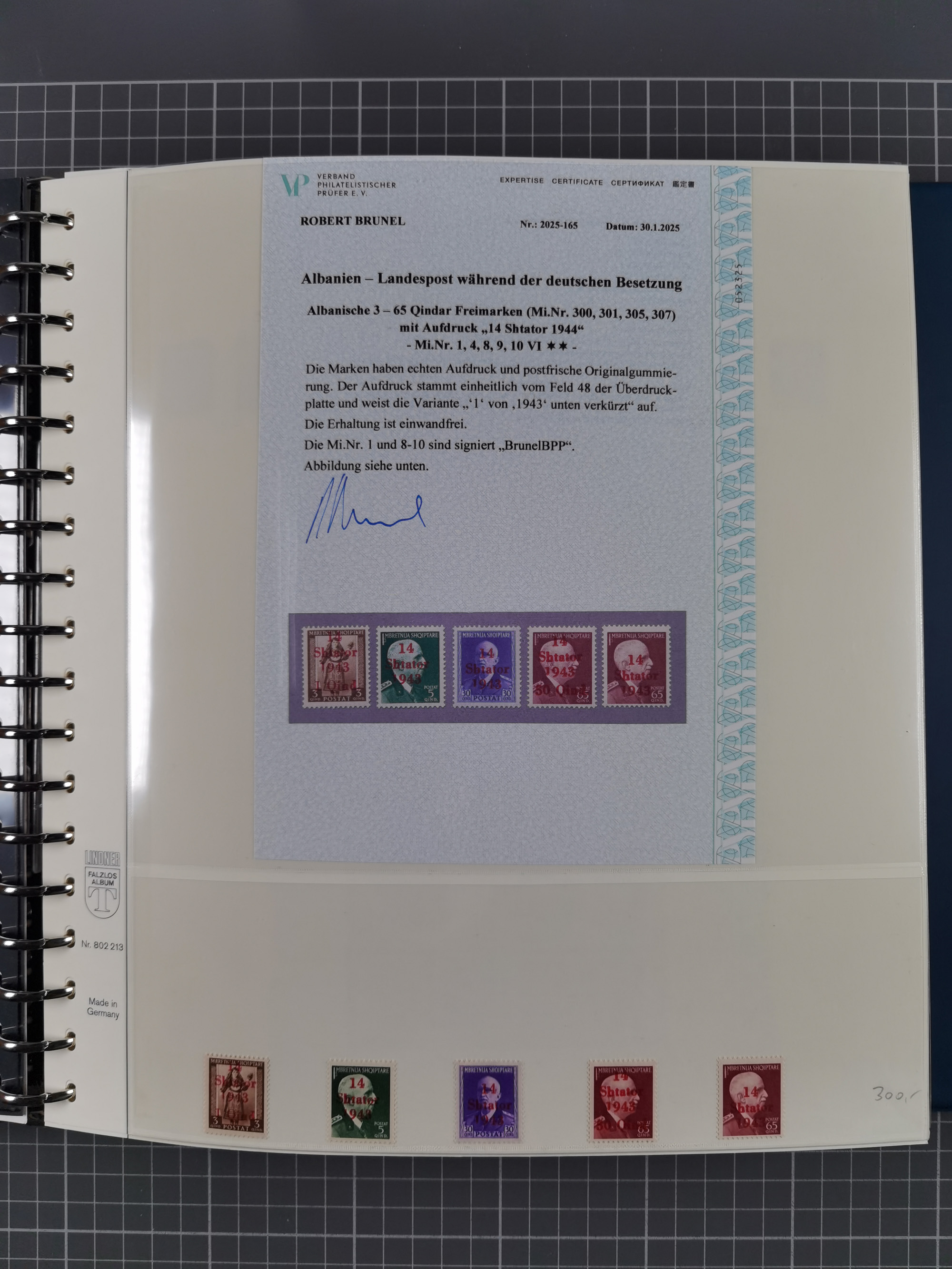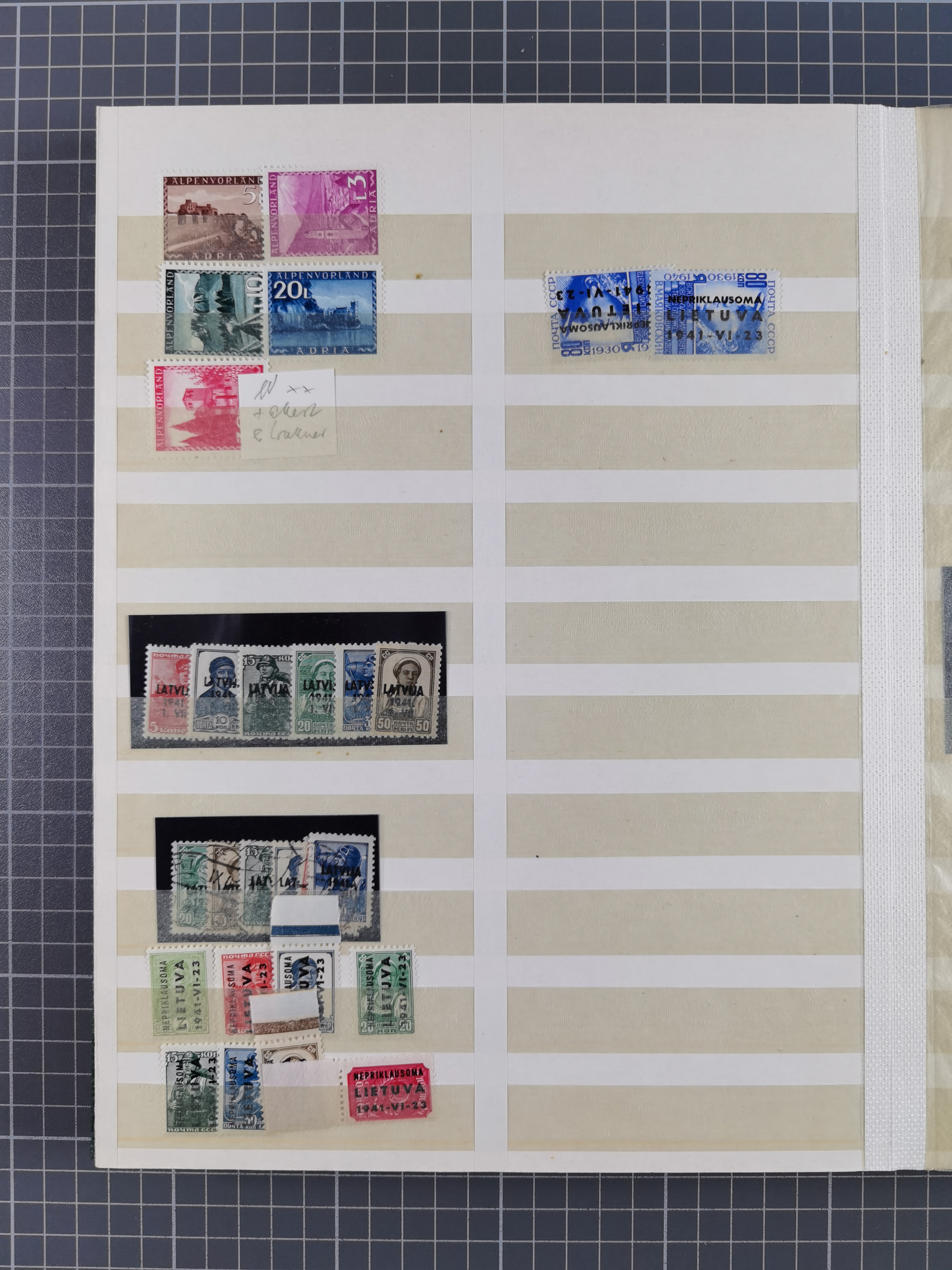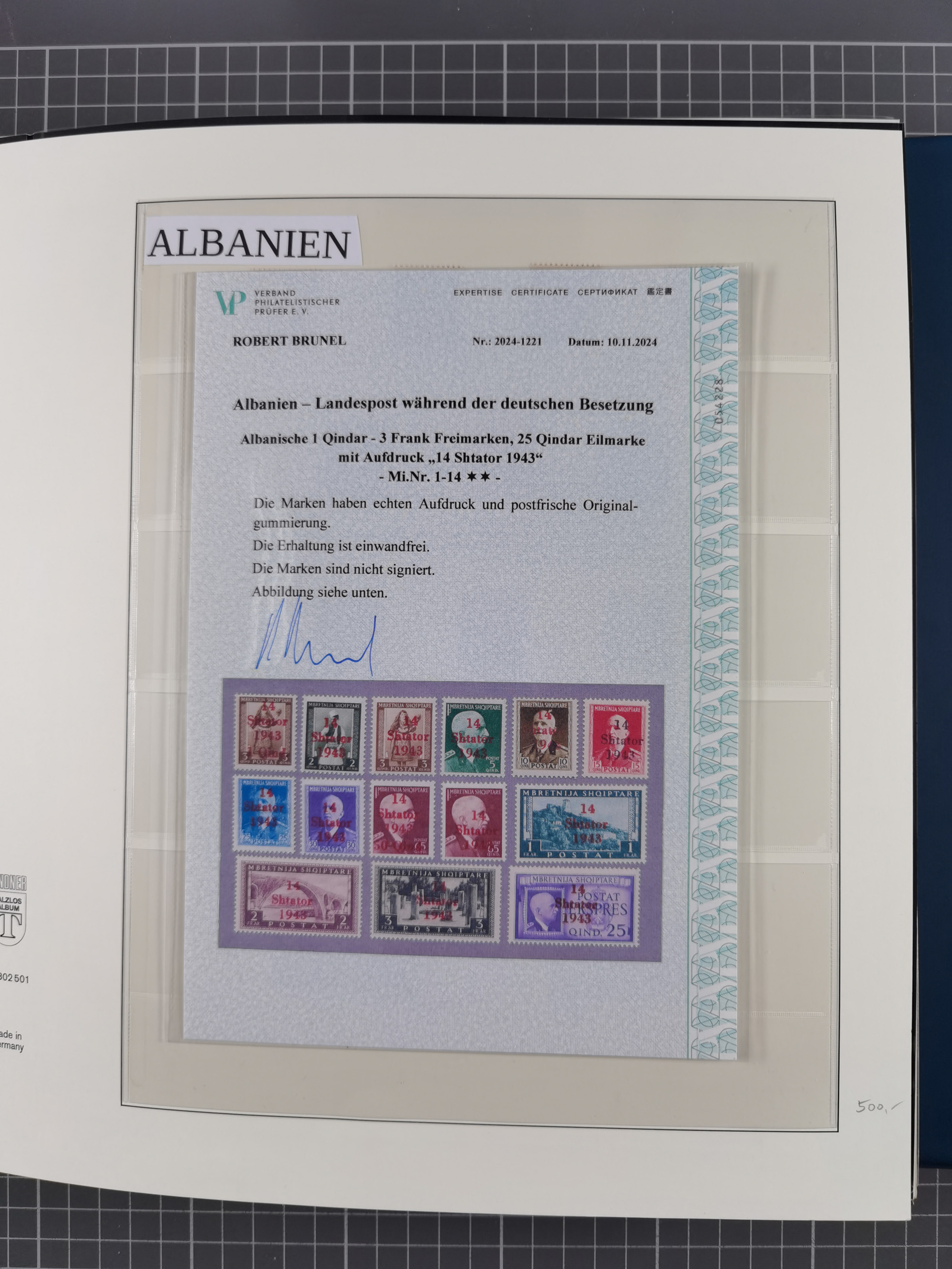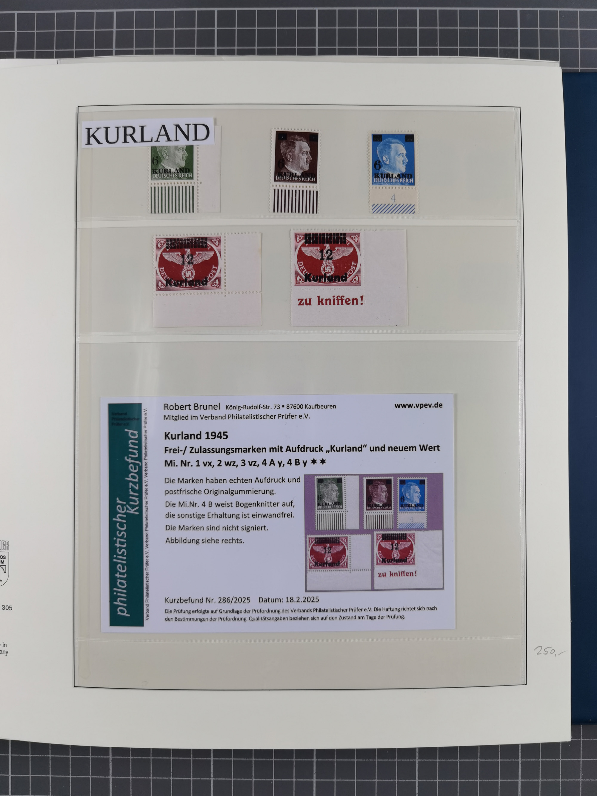 Albanien bis Zara, postfrische Sammlung im Lindner-Falzlos-Album mit Albanien komplett, mit diversen Abarten und einem Bogen Michel-Nr. 12, Elsaß, Saint-Nazaire 1 und 2, dabei Mi.-Nr. im Bogen, etwas Kanalinseln, Kotor komplett, Kurland komplett, Laibach komplett und mit Abarten sowie nicht ausgegebene IB-VI B im senkrechten, ungezähnten Streifen, Probedrucke der Portomarken 1 P, 5 P, 8 P, Litauen, Lokalausgabe Rokiskis, jeweils drei Sätze in schwarz und rot in den Typen I, II und III, Mazedonien mit Besonderheiten, Pleskau mit einigen Abarten, Serbien komplett, Zante sowie schöner Teil Zara u.a. mit 7, 12, 15, 25, 37 und 38 und Portomarken, Flämische Legion und Frankreich II-X, alles in sauberer Erhaltung mit zahlreichen Befunden oder Attesten