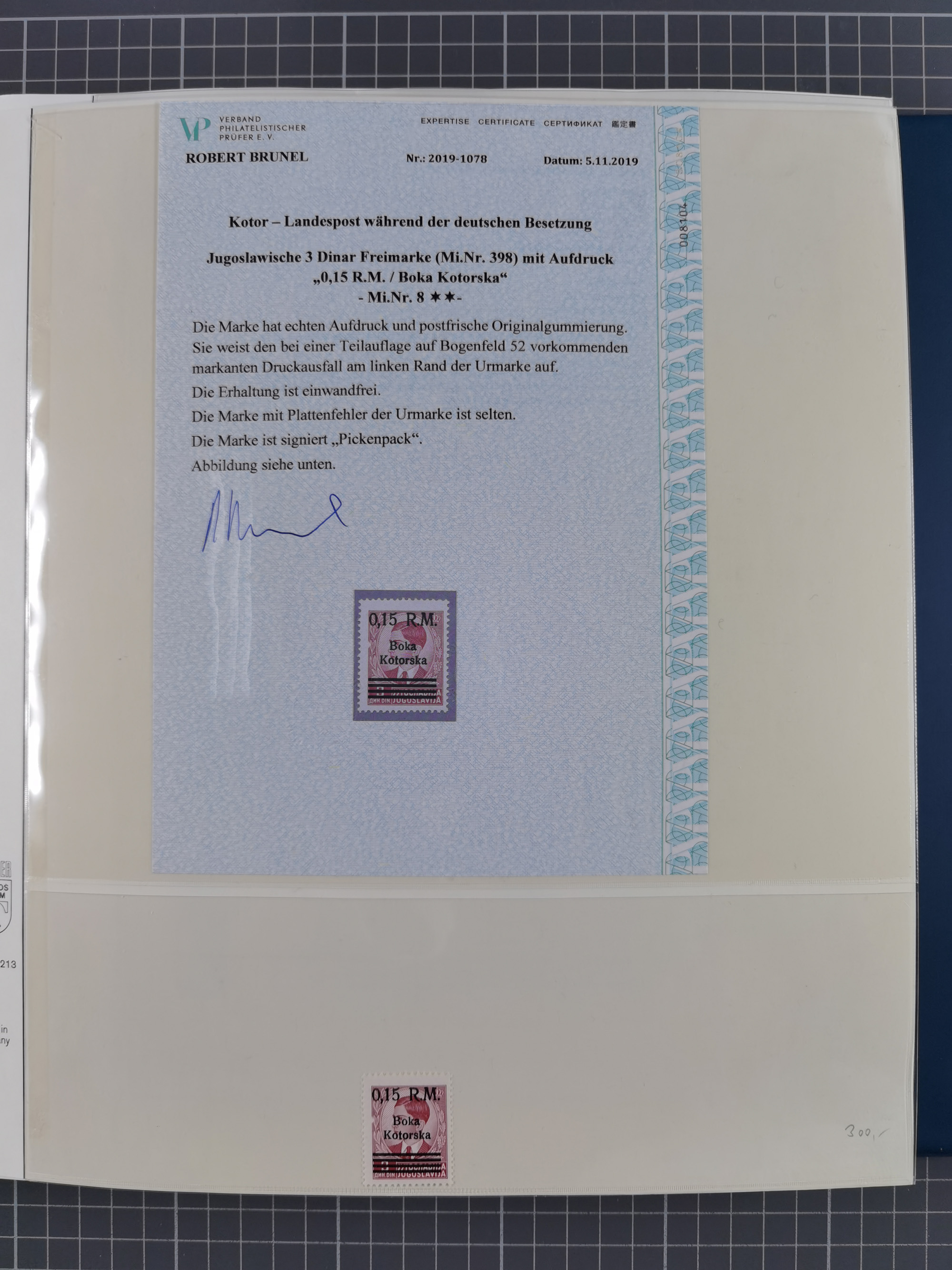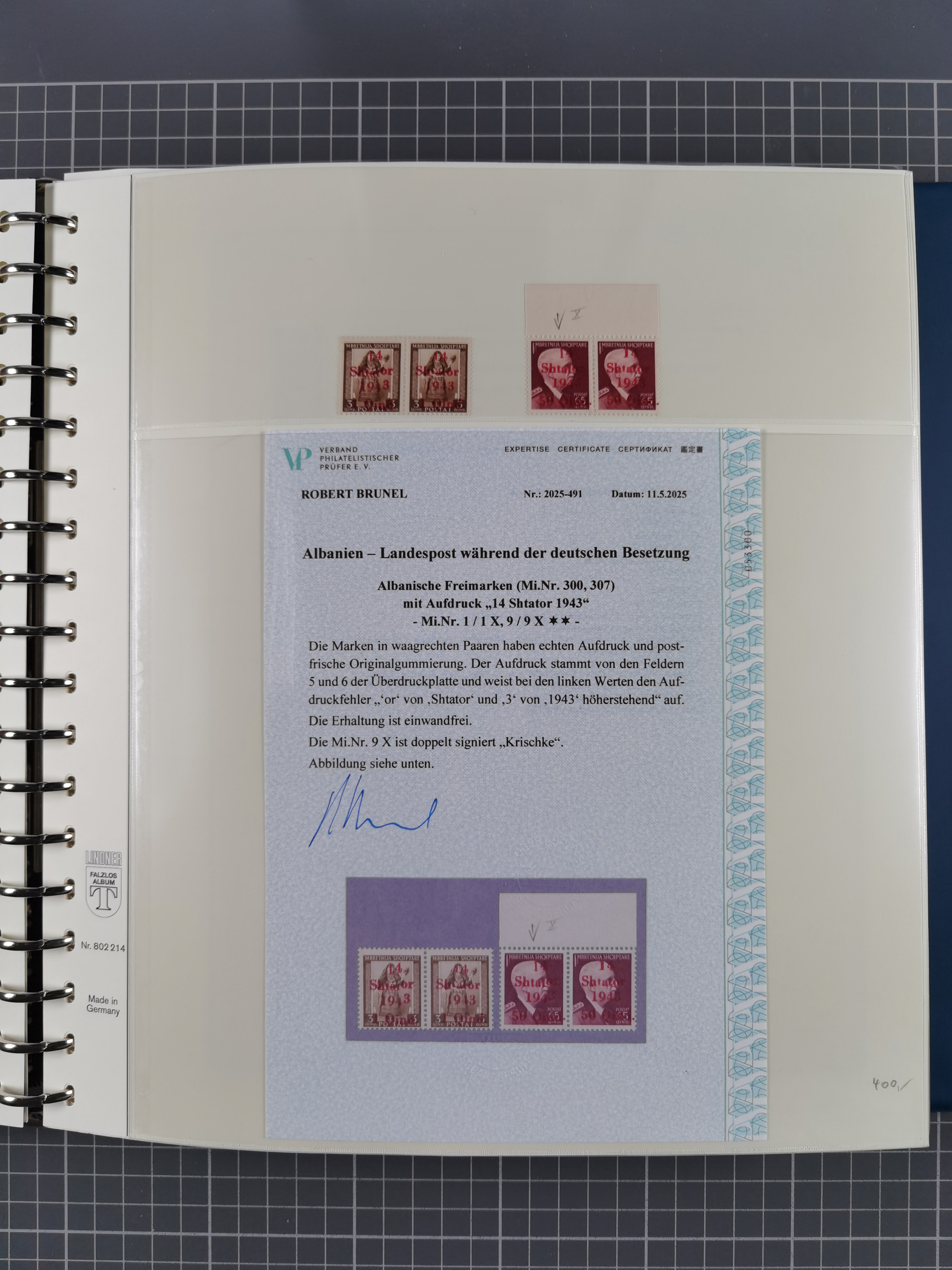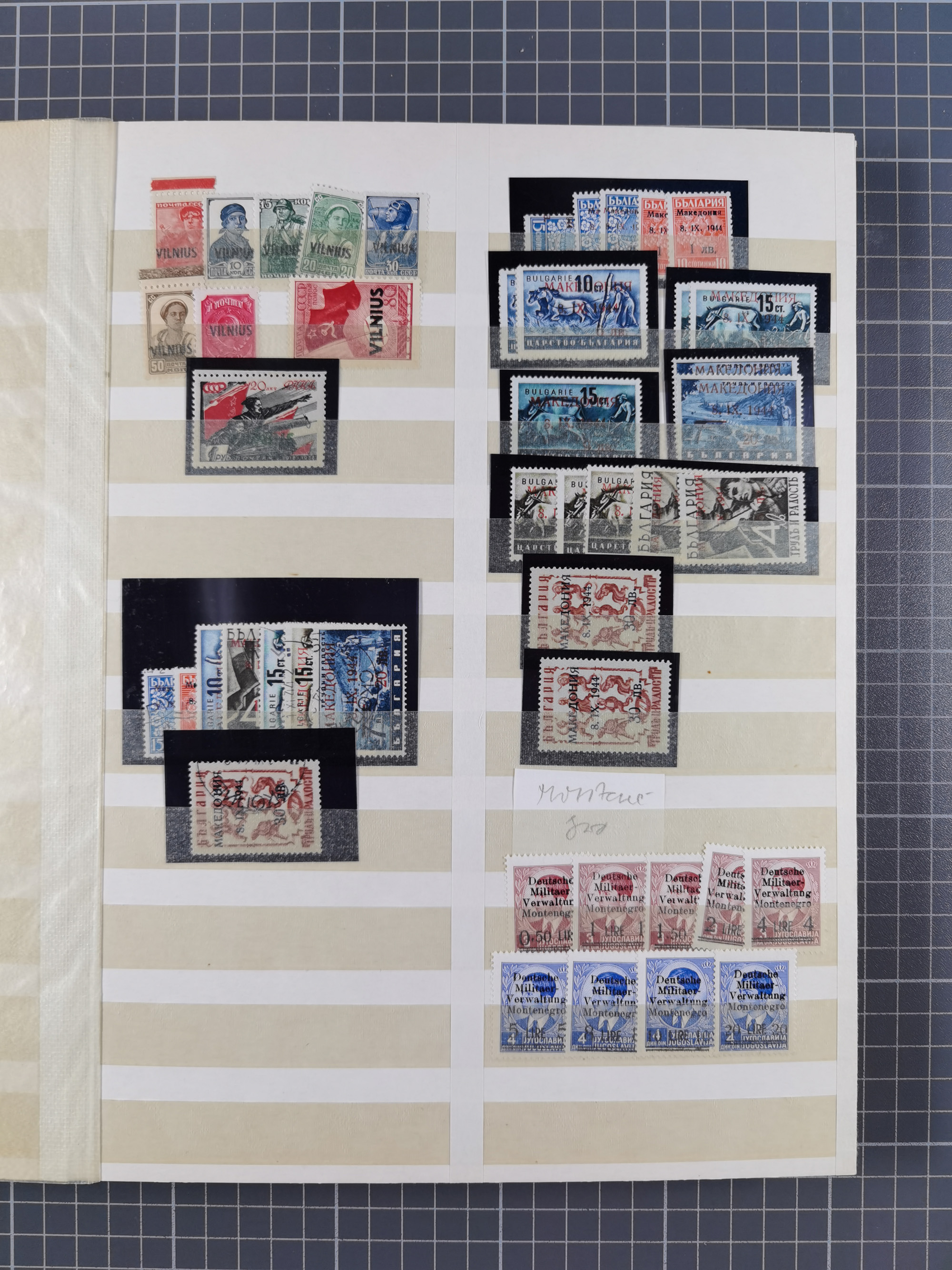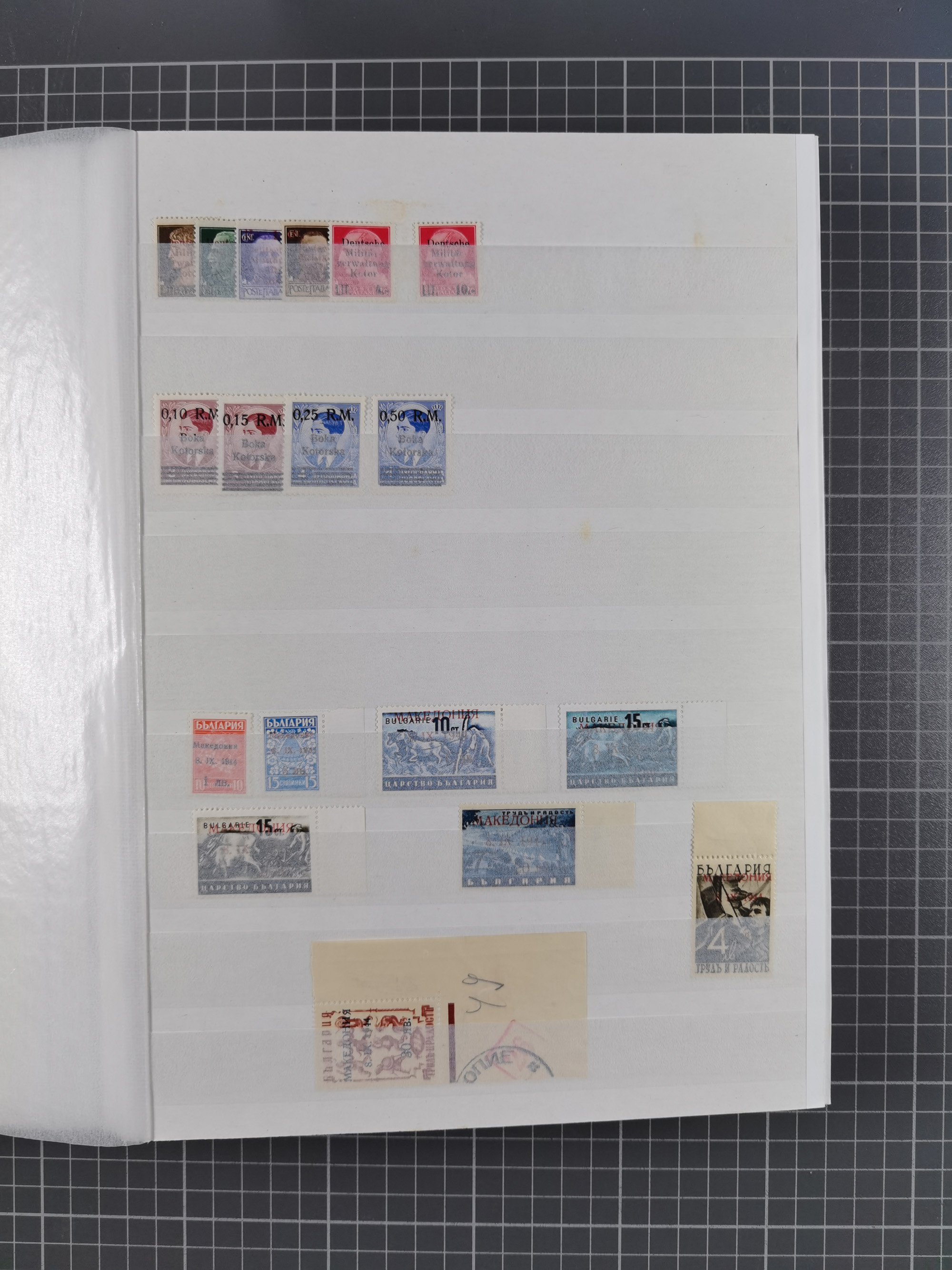 1944, umfangreiche, meist postfrische und gestempelte Sammlung mit vielen Einheiten, gestempelten Bogenteilen, Aufdruck-Abarten, Plattenfehlern und weiteren Besonderheiten, dabei u.a. Mi.-Nr. 1ZW zweimal mit Unterrand mit Bogennummer postfrisch (sign. Hristov BPP mit FA), 1VF postfrisch, 1 DD postfrisch (signiert), 2 FII im waagerechten Paar postfrisch (FA Dr. El Majdoub BPP), 2FV postfrisch (FA Dr. El Majdoub BPP), 2KII postfrisch, 2 DKII postfrisch (FA Dr. El Majdoub BPP (2025), 3 FII postfrisch, 4KW im Viererblock mit Normalmarken postfrisch (signiert), 5 KW im Paar mit Normalmarke postfrisch (FA Dr. El Majdoub BPP), 6FVIII postfrisch mit Unterrand, 8VIII im Paar mit Normalmarke gestempelt (FA Dr. El Majdoub BPP) und Mi.-Nr. 8KI in einer Einheit mit fünf weiteren Marken (mit Falzen auf Zerifikat Karaivanoff (1955) geklebt). Dazu Umschlag mit weiteren losen Marken und vielen Einheiten/Bogenteilen. Ein außergewöhnliches und empfehlenswertes Objekt
