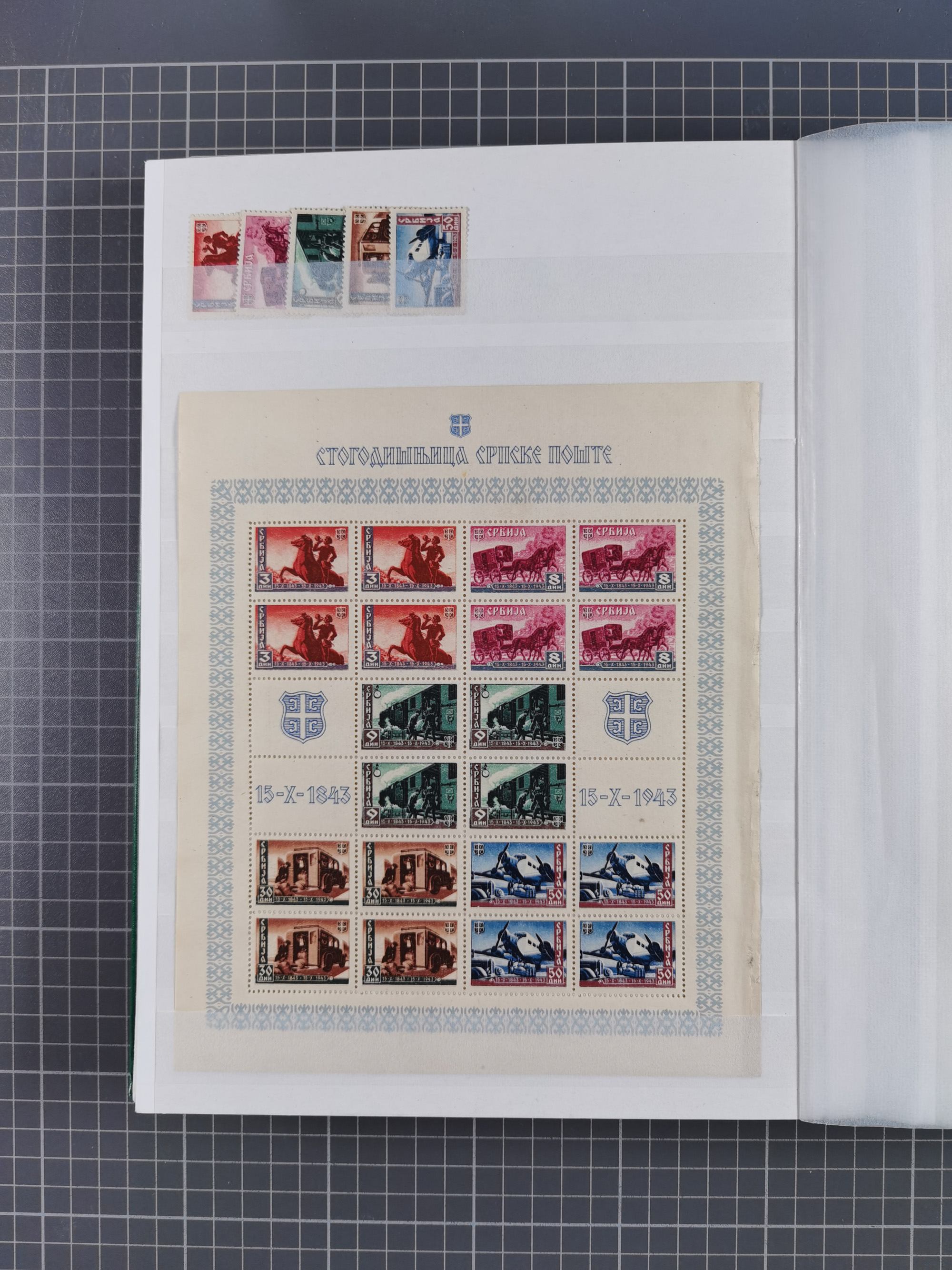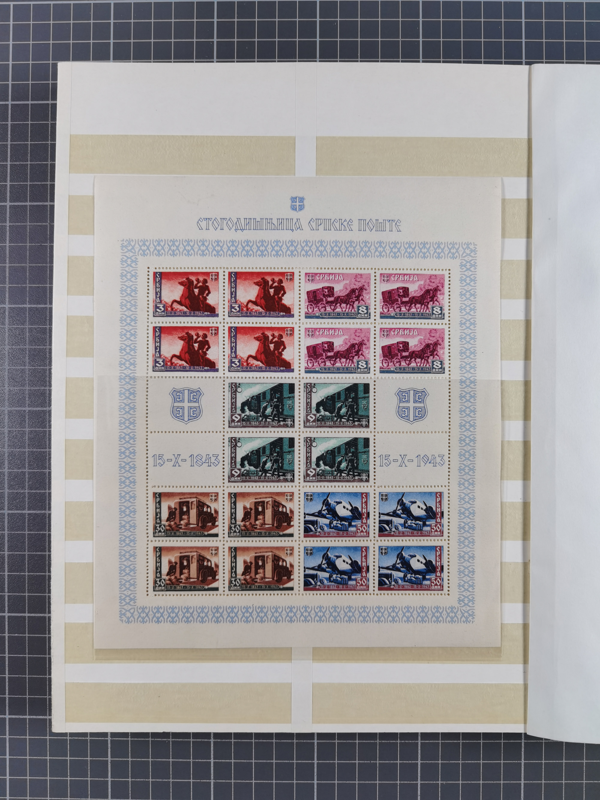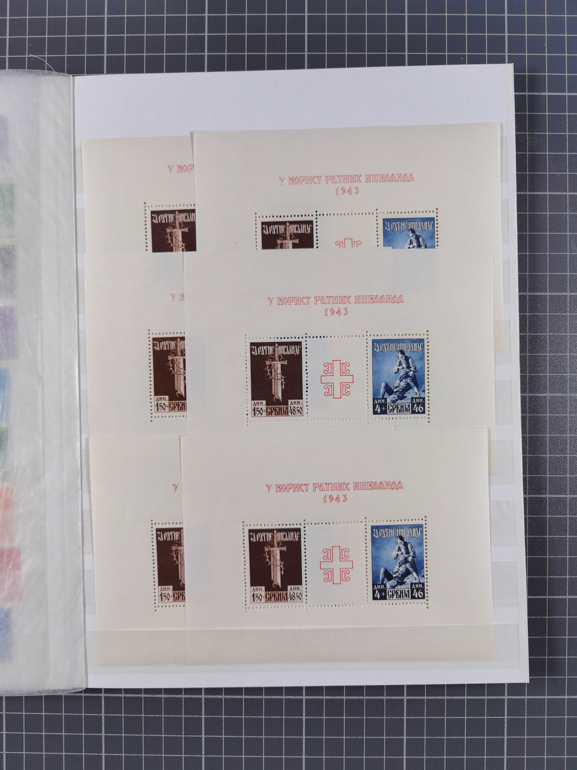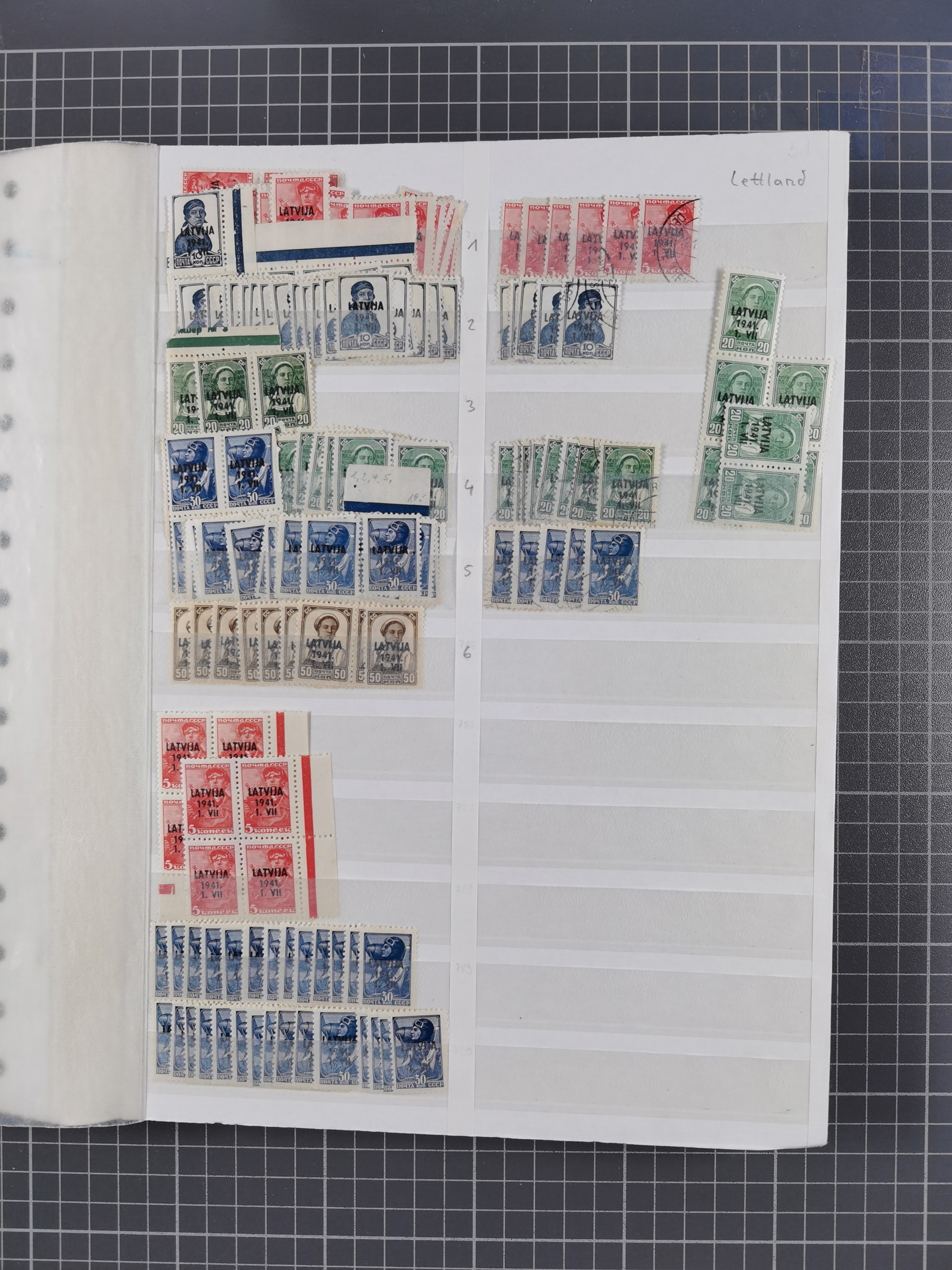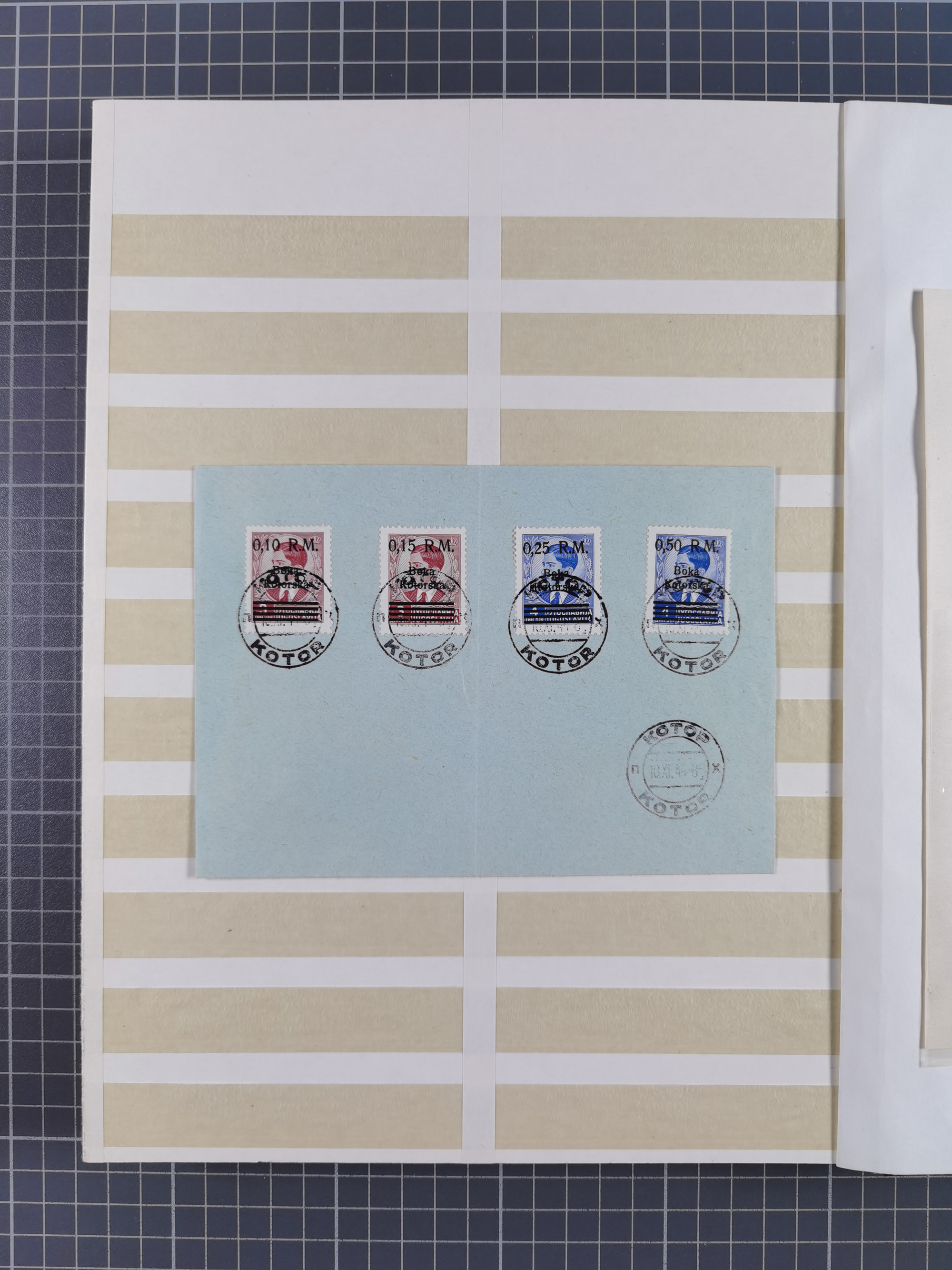 1943, Fälschungssammlung, postfrisch sowie auf Blanko-Umschlägen, dabei 19 mal Mi.-Nr. 21-22 und 28,32 je auf Blanko-Umschlag mit falschem Stempel, die falsch gestempelten Werte oft mit echten Aufdrucken, sauber auf insgesamt 31 großen Steckkarten, dabei einige alte Diena Atteste