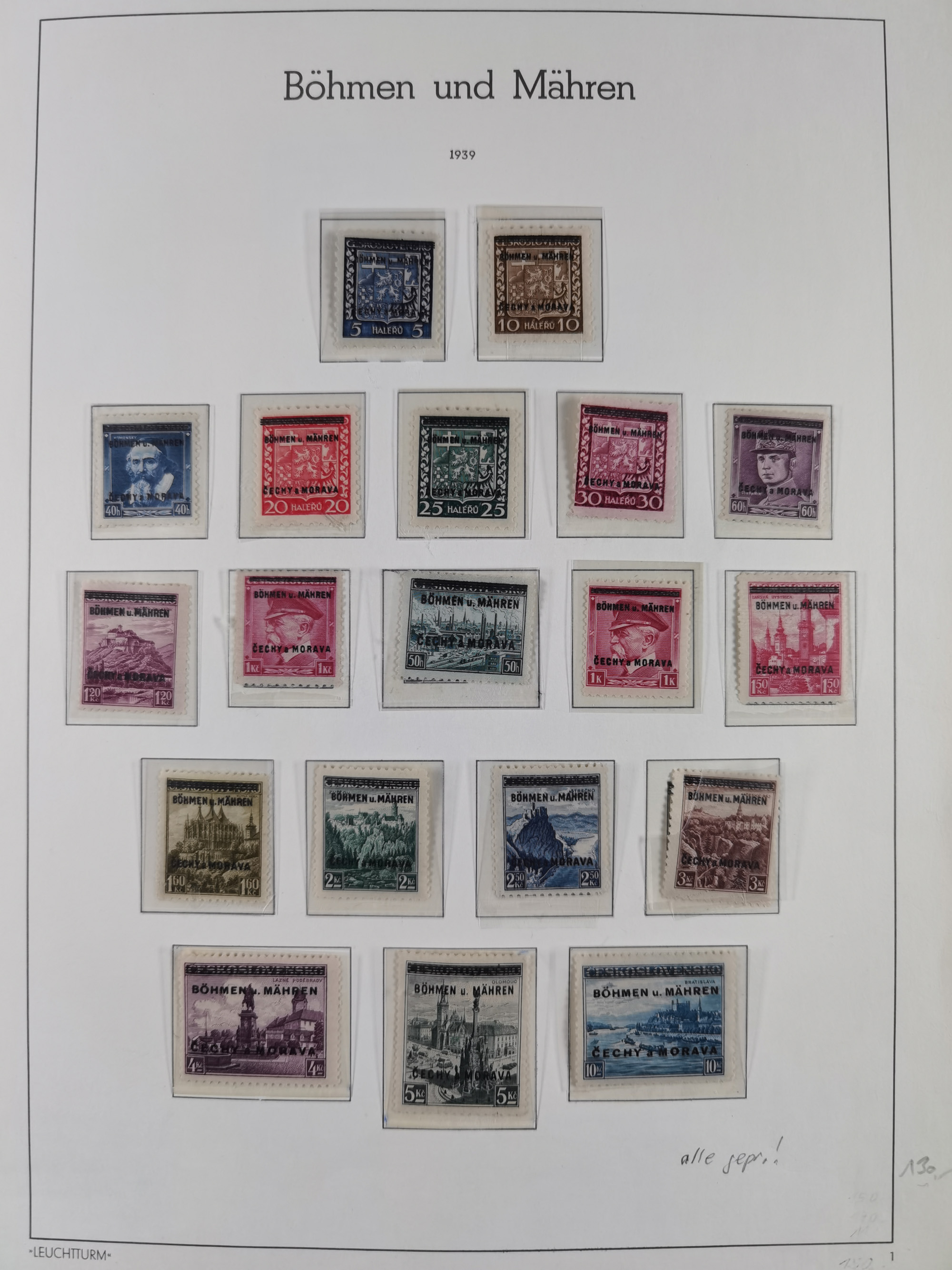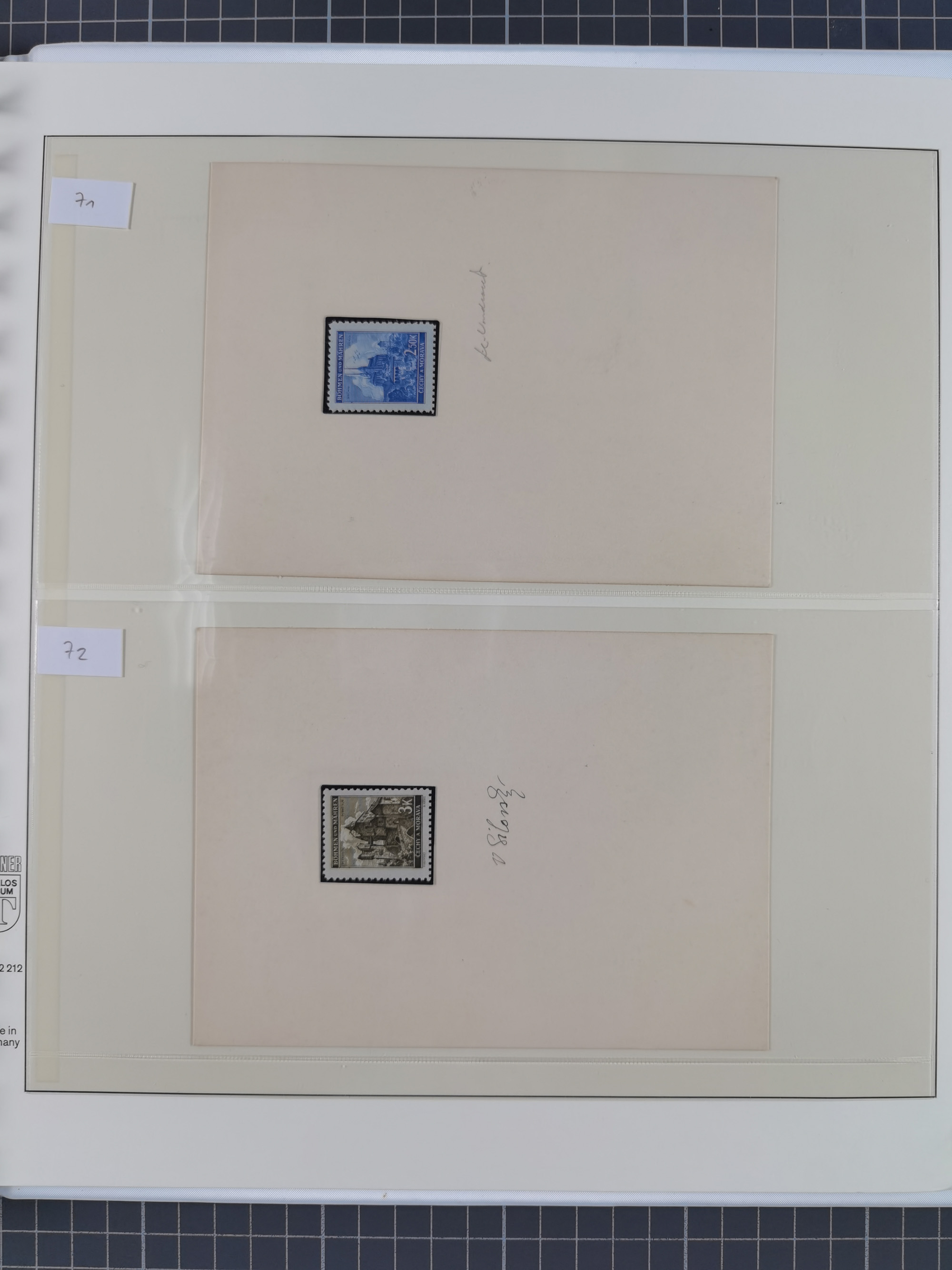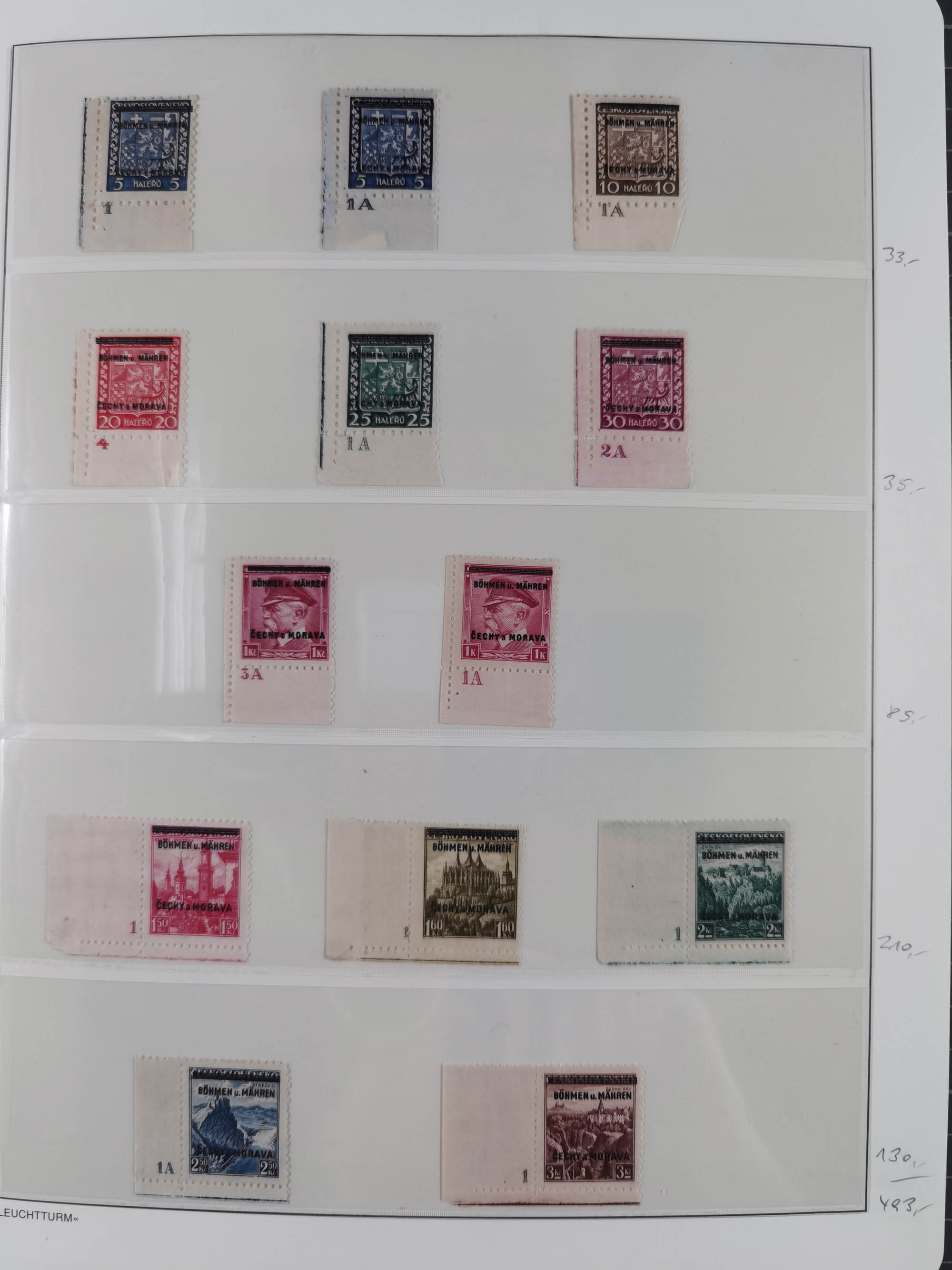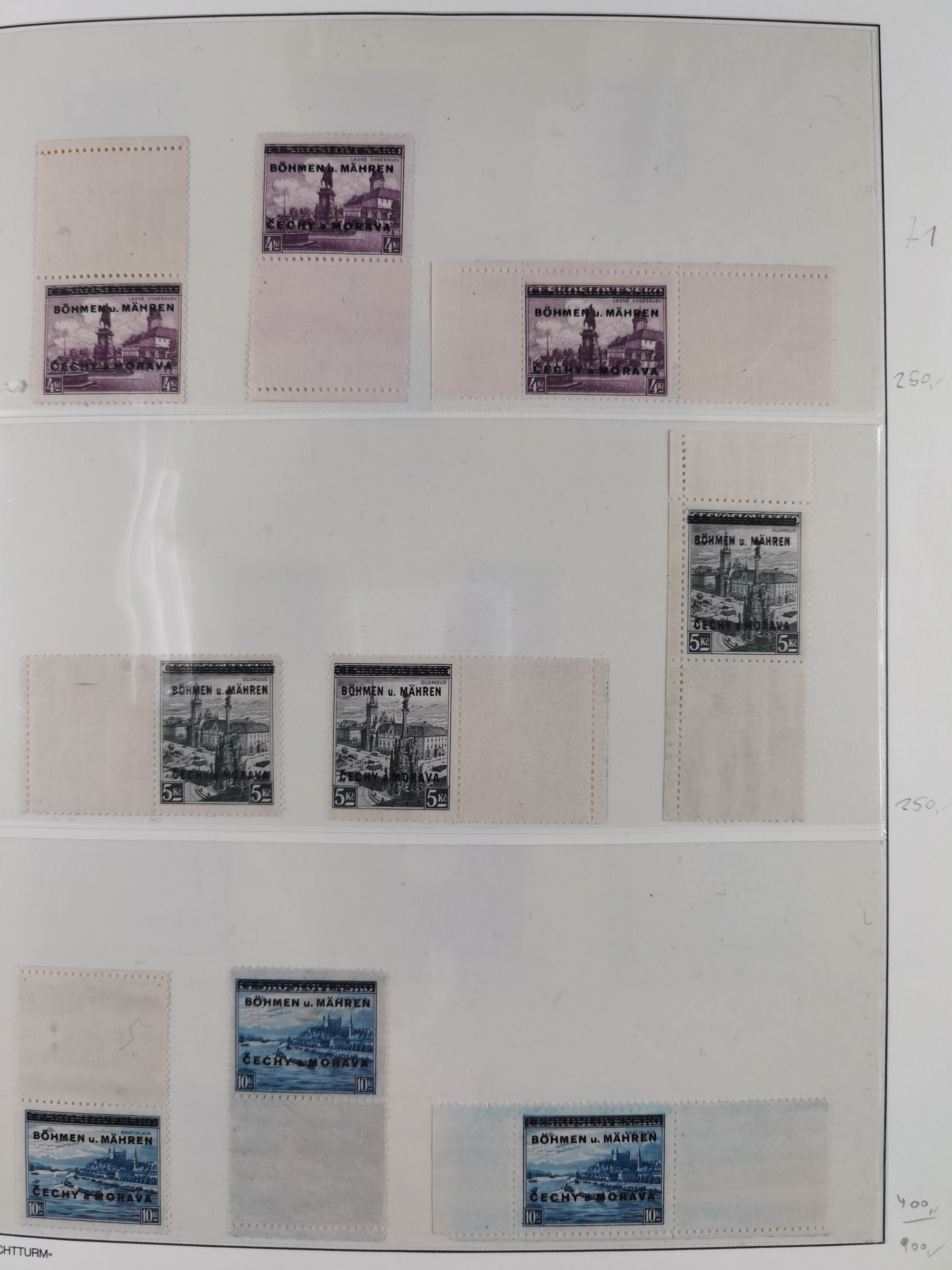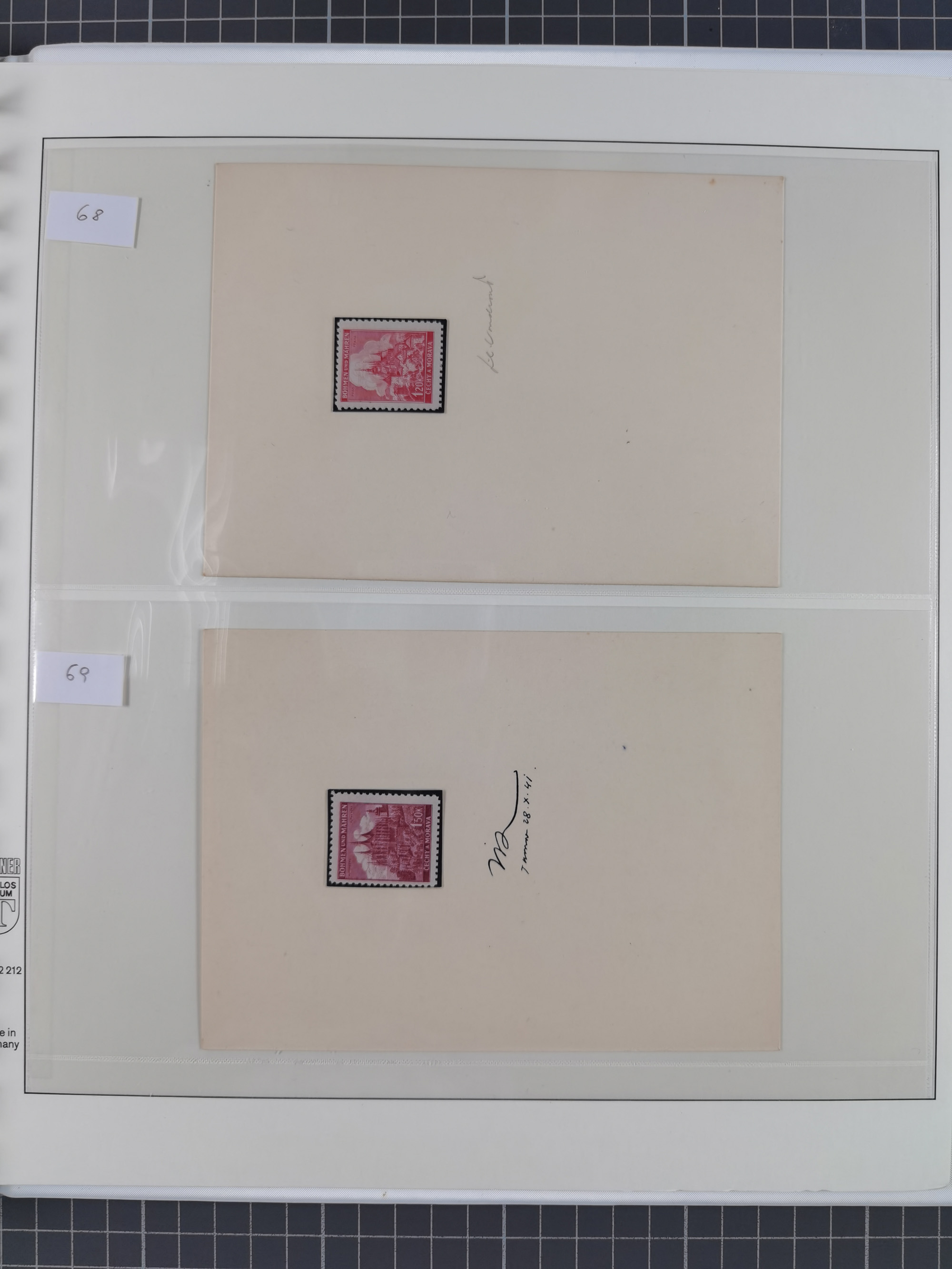 1939/45, interessante Partie, weißer Kärtchen mit Original-Unterschrift des Entwerfers wie Prof. Alois Schaumann, Karel Vik, Bohumil Heinz, Jan Vondrous, Vladimir Silovsky, Prof. Josef Sejpka, Jan Goldschmied und Alfred Erhardt, die Marken meist postfrisch, insgesamt 36 Stück, sehr interessant