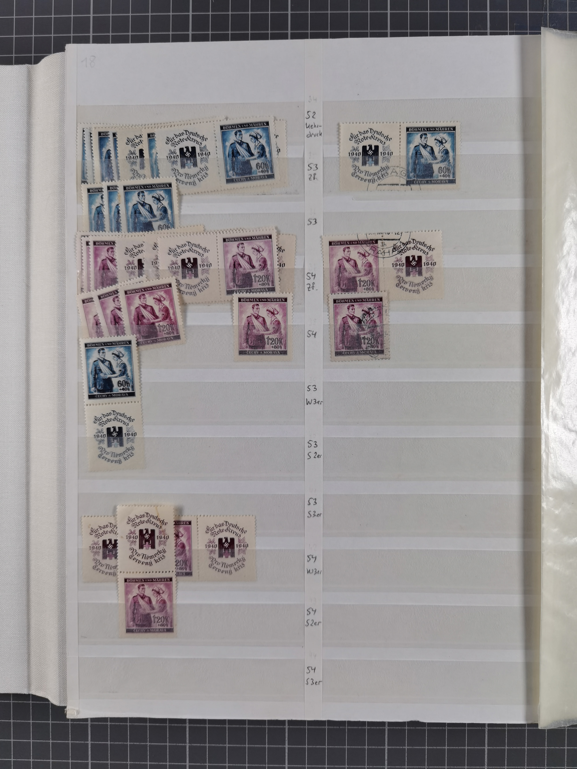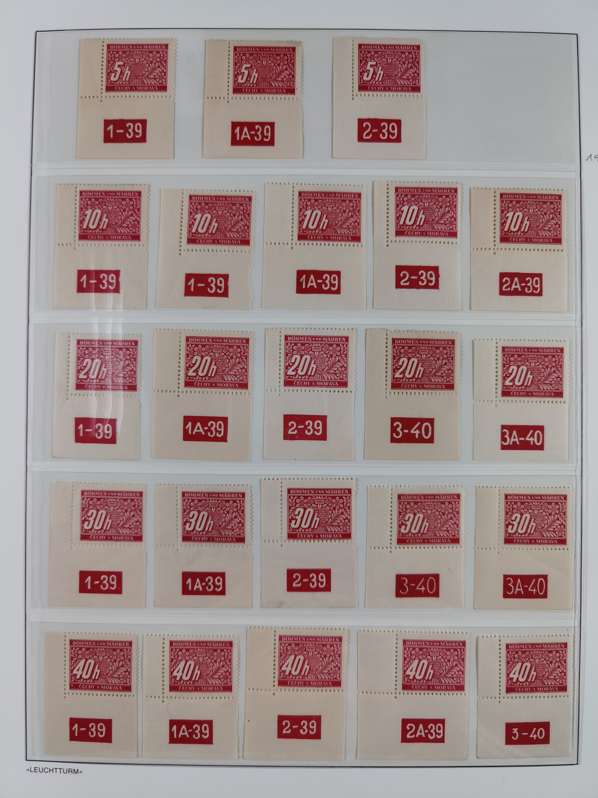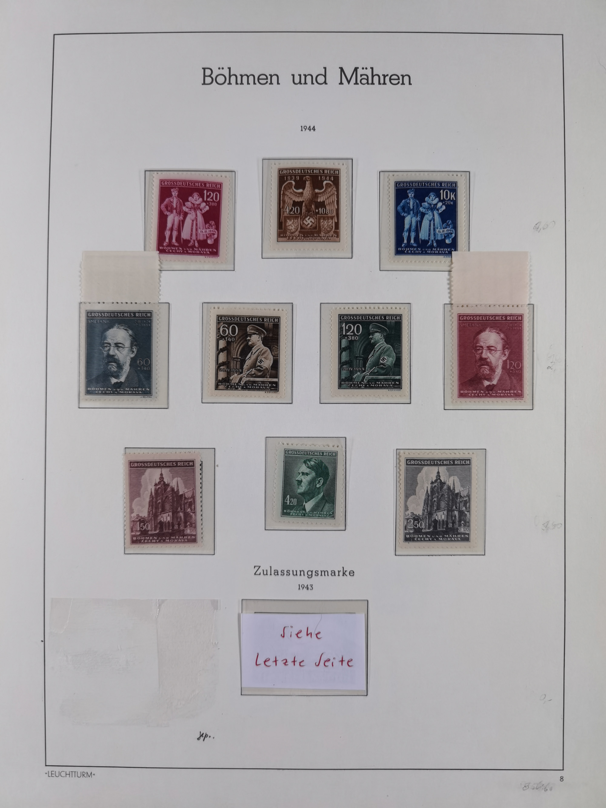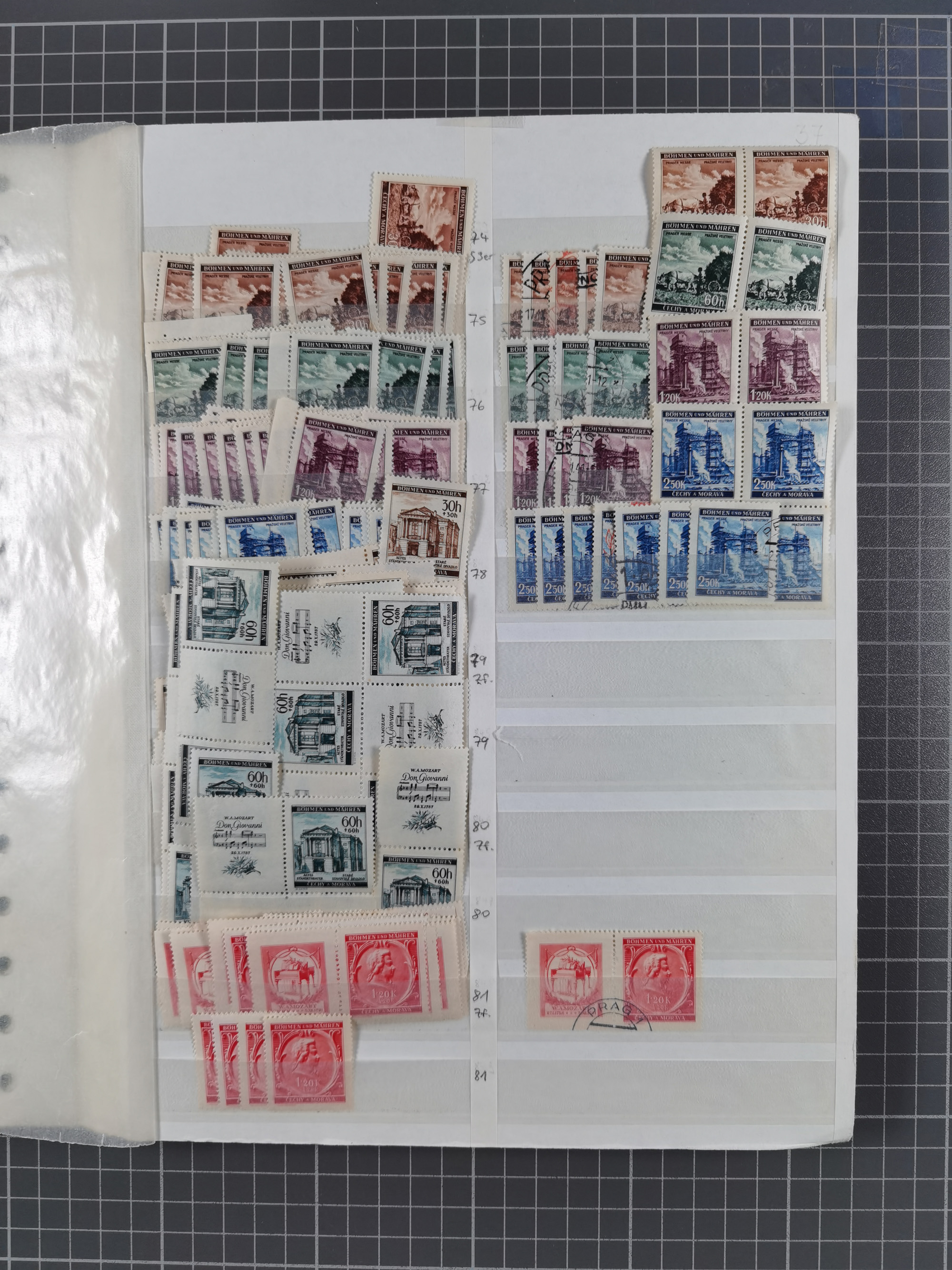 1939/45, interessante Partie, weißer Kärtchen mit Original-Unterschrift des Entwerfers wie Prof. Alois Schaumann, Karel Vik, Bohumil Heinz, Jan Vondrous, Vladimir Silovsky, Prof. Josef Sejpka, Jan Goldschmied und Alfred Erhardt, die Marken meist postfrisch, insgesamt 36 Stück, sehr interessant
