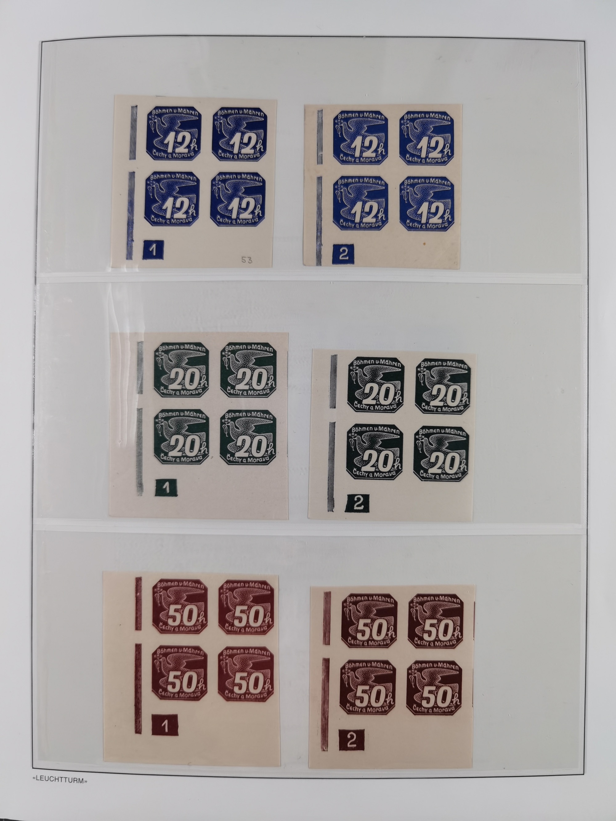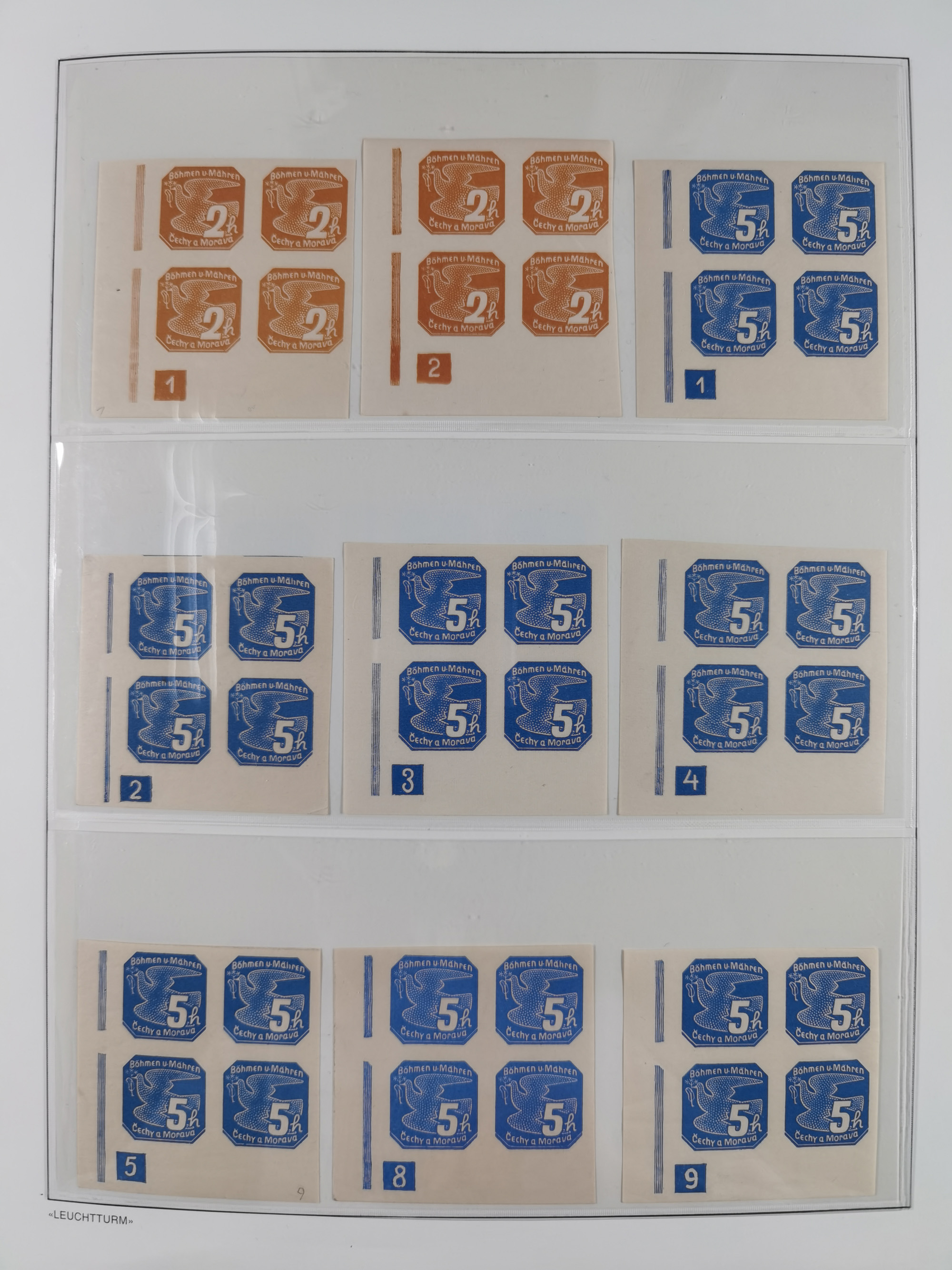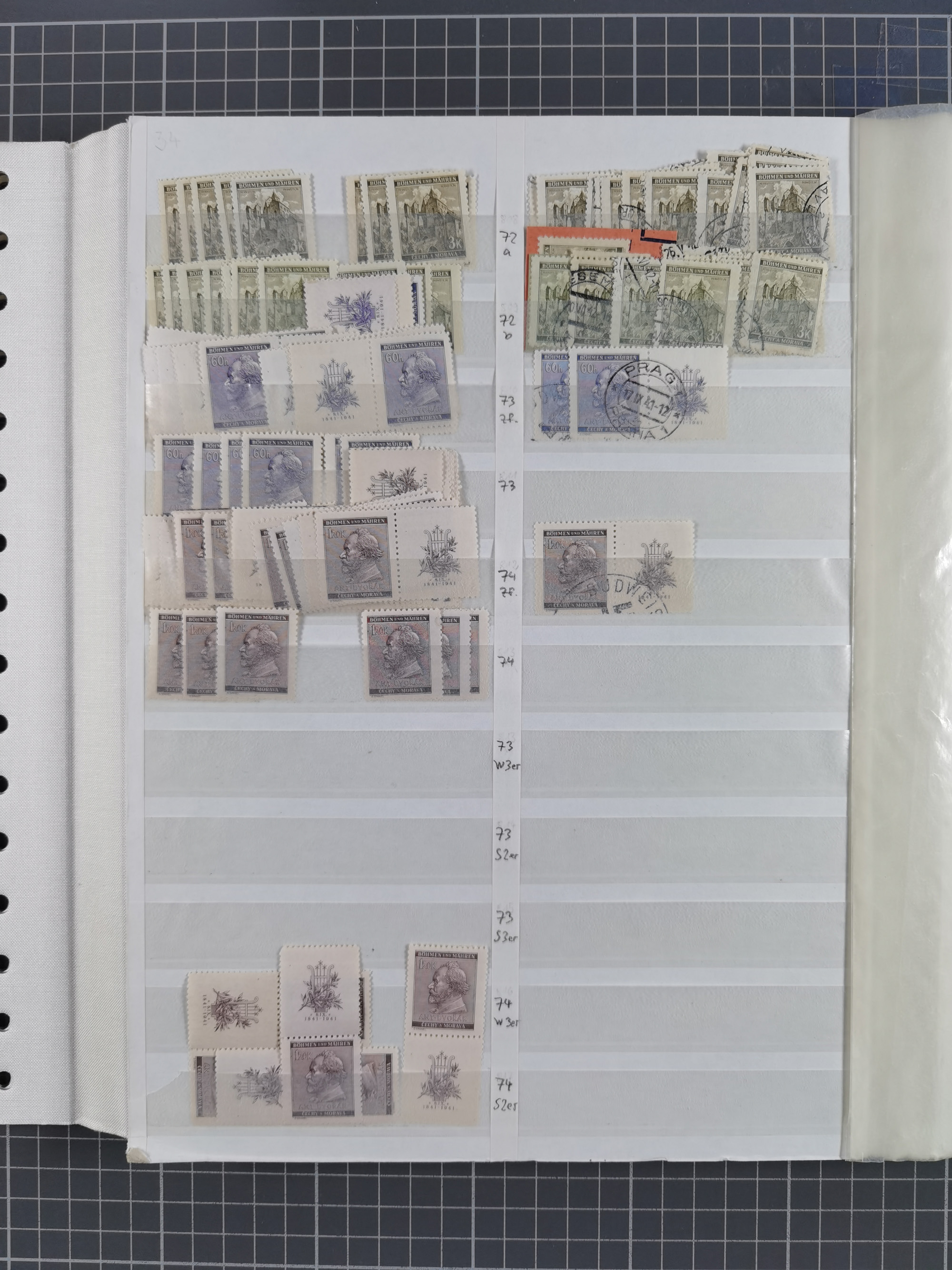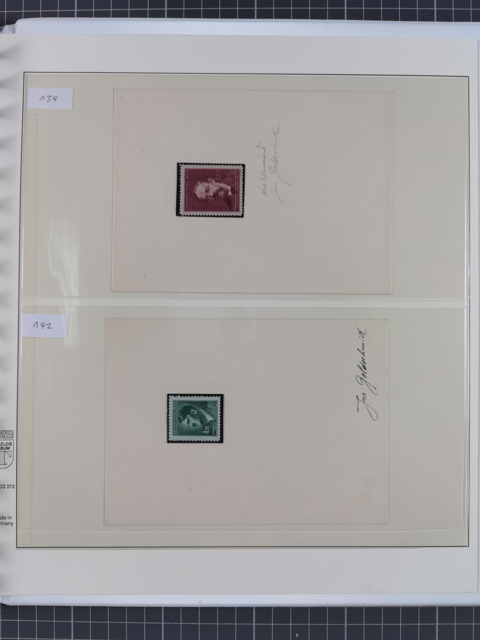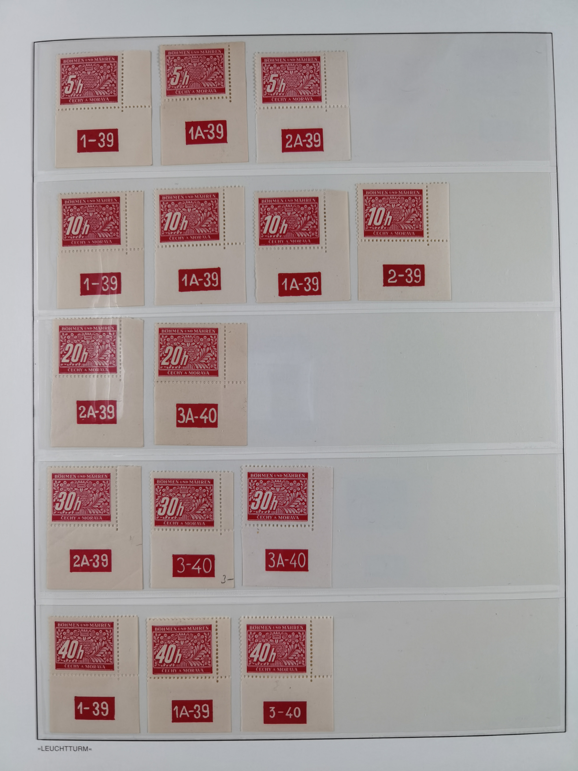 1939/45, interessante Partie, weißer Kärtchen mit Original-Unterschrift des Entwerfers wie Prof. Alois Schaumann, Karel Vik, Bohumil Heinz, Jan Vondrous, Vladimir Silovsky, Prof. Josef Sejpka, Jan Goldschmied und Alfred Erhardt, die Marken meist postfrisch, insgesamt 36 Stück, sehr interessant