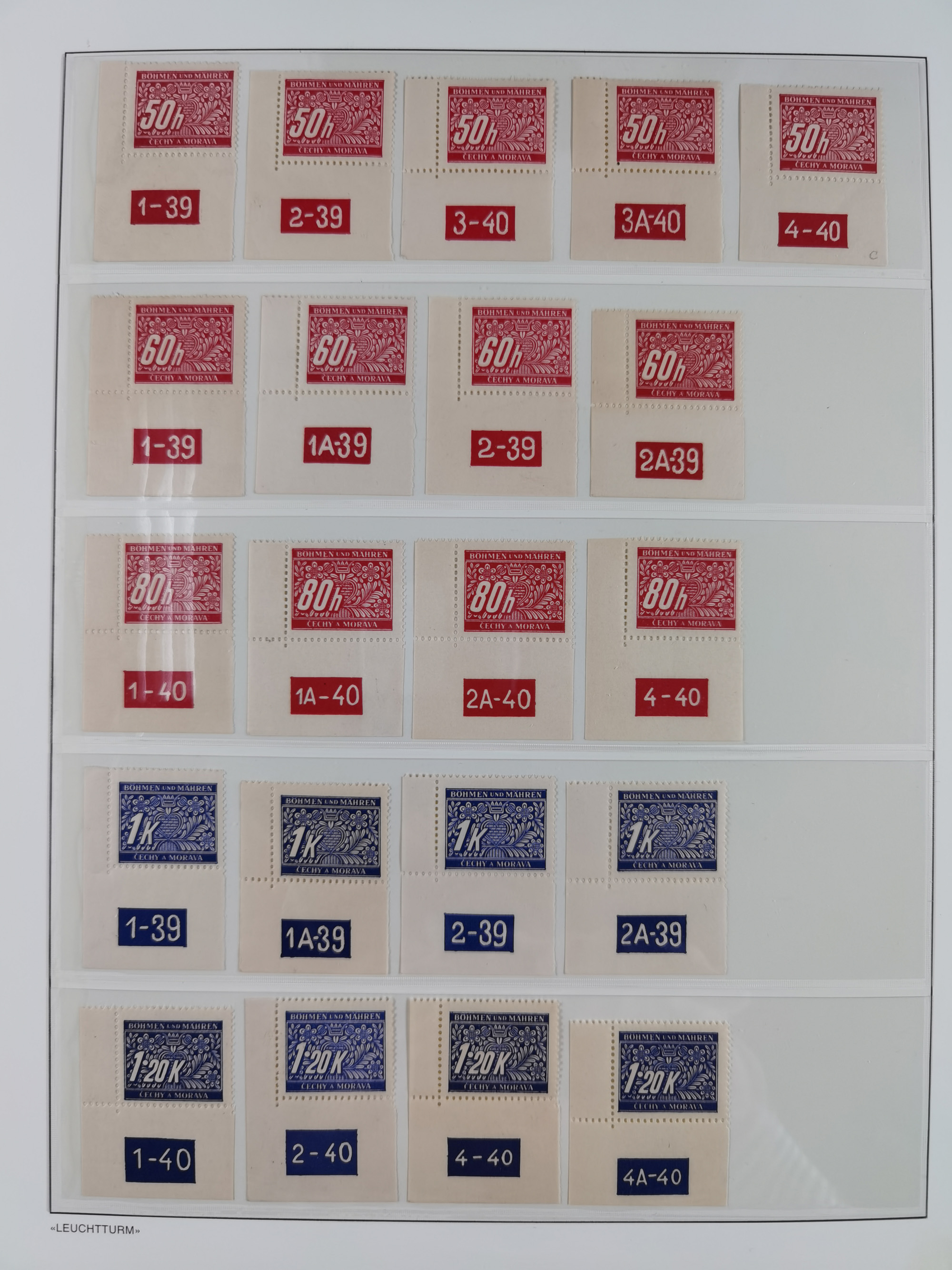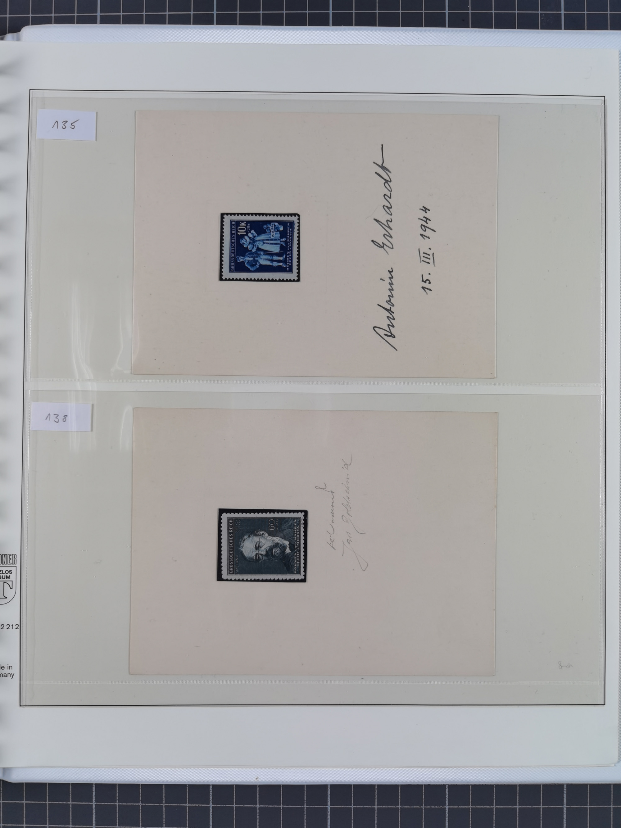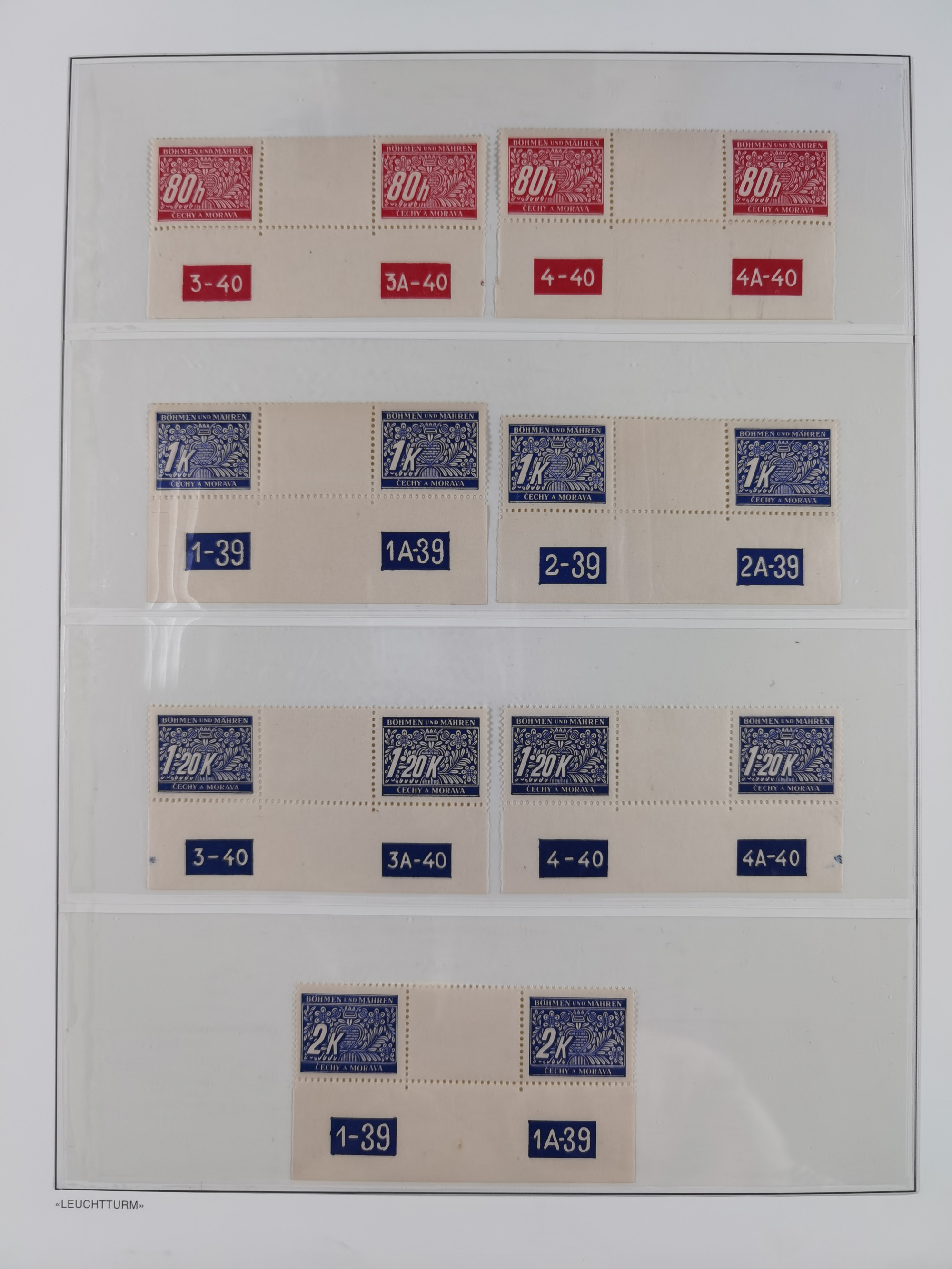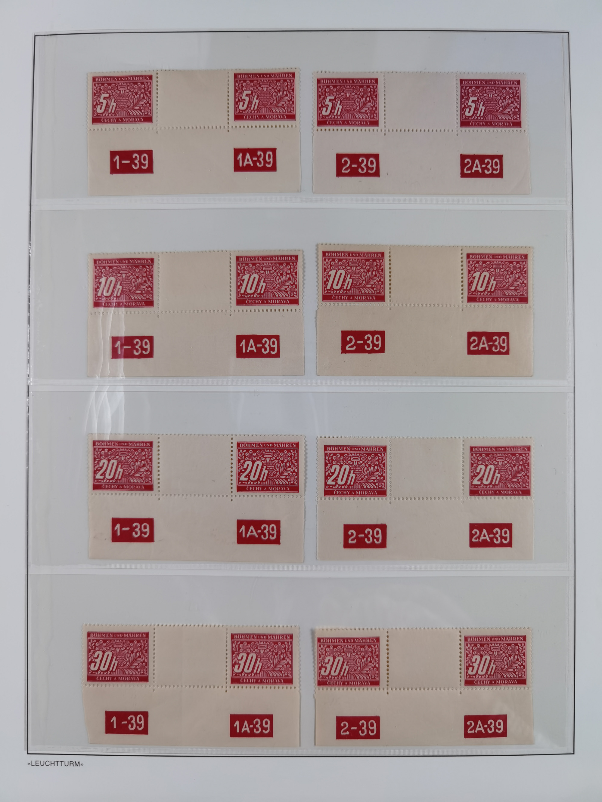 1939/45, interessante Partie, weißer Kärtchen mit Original-Unterschrift des Entwerfers wie Prof. Alois Schaumann, Karel Vik, Bohumil Heinz, Jan Vondrous, Vladimir Silovsky, Prof. Josef Sejpka, Jan Goldschmied und Alfred Erhardt, die Marken meist postfrisch, insgesamt 36 Stück, sehr interessant
