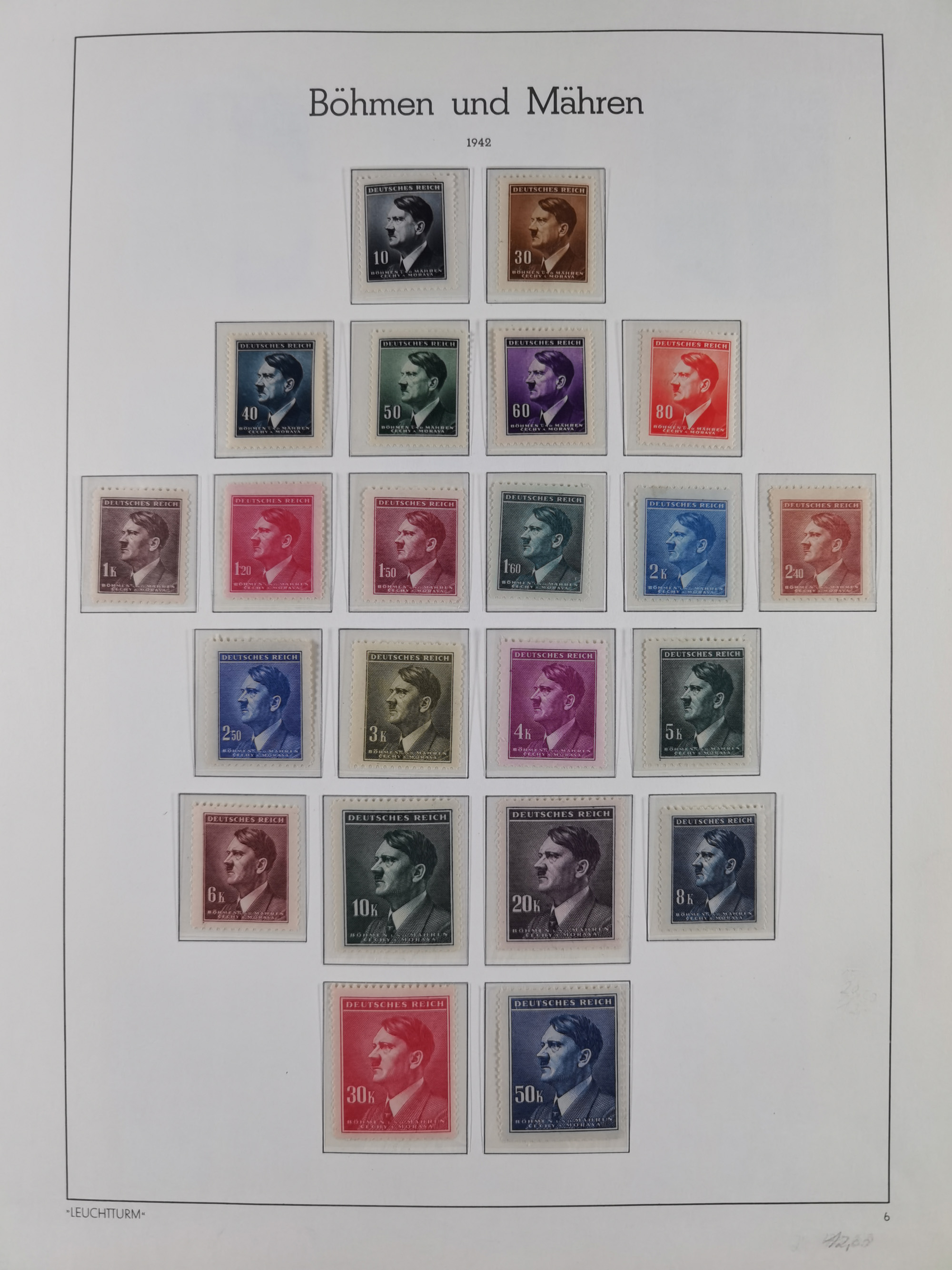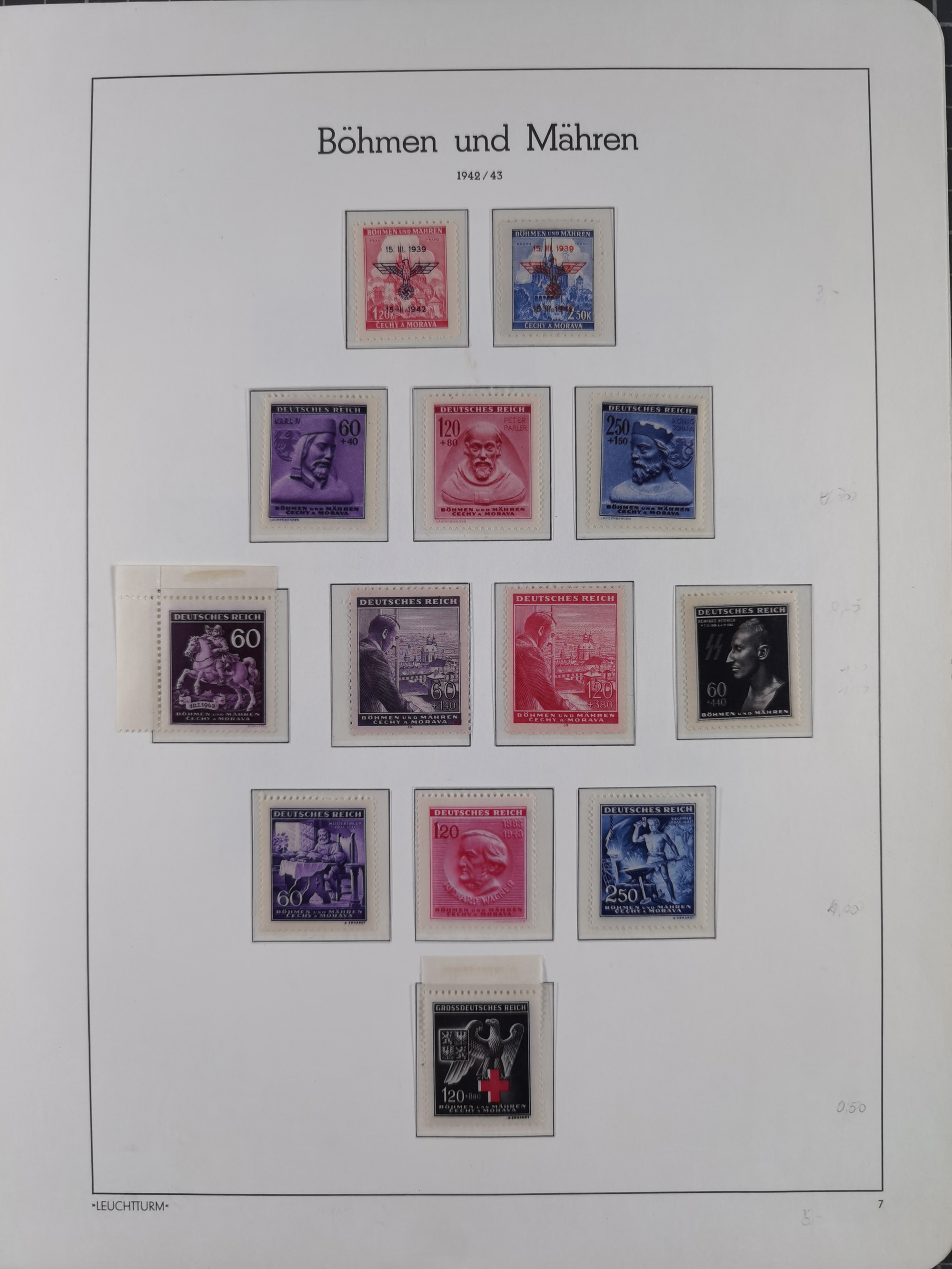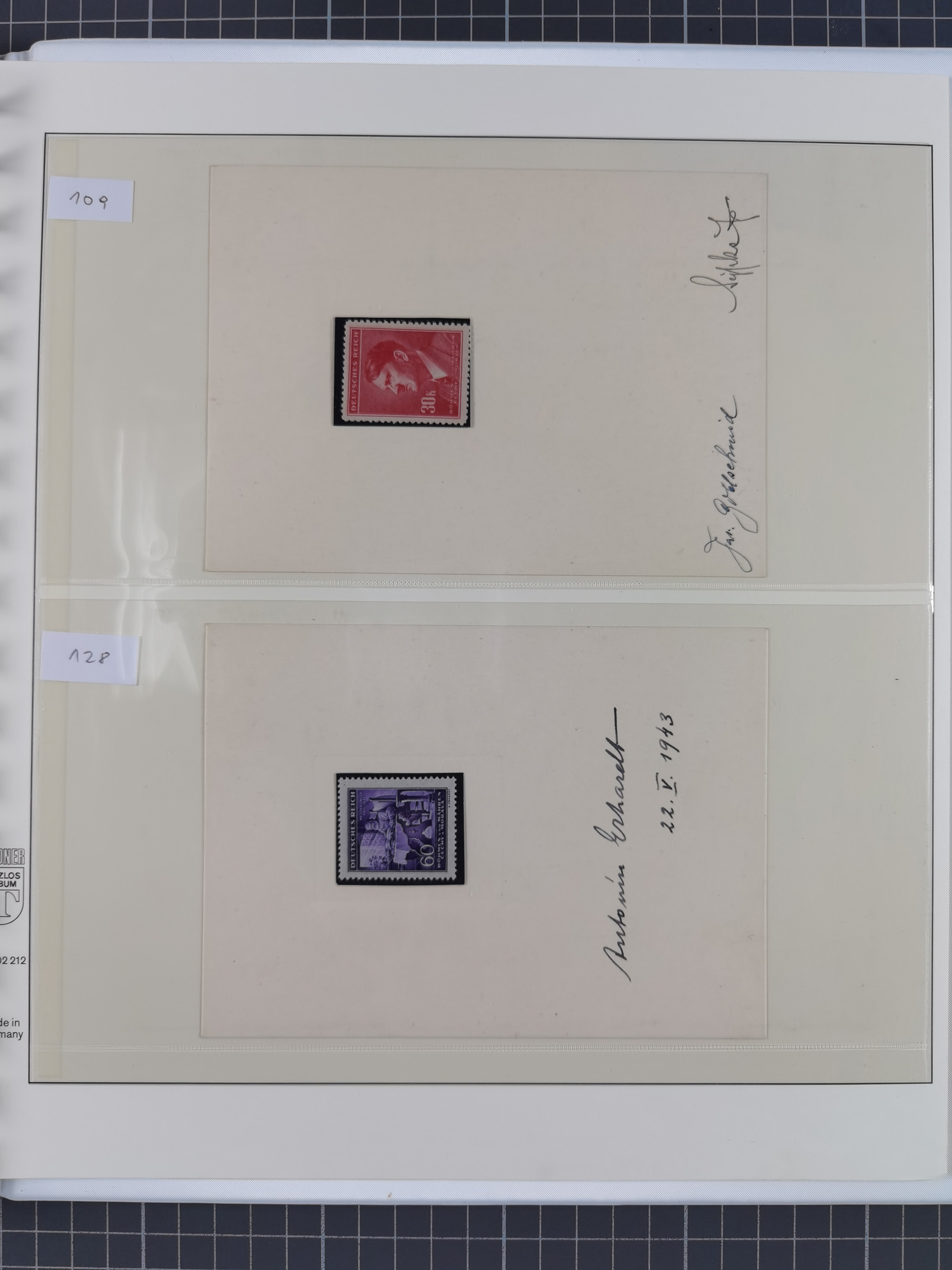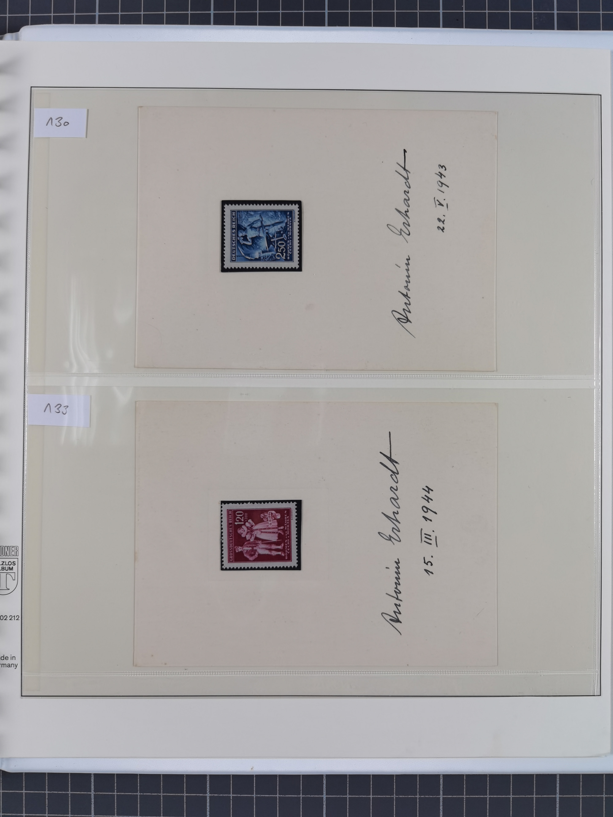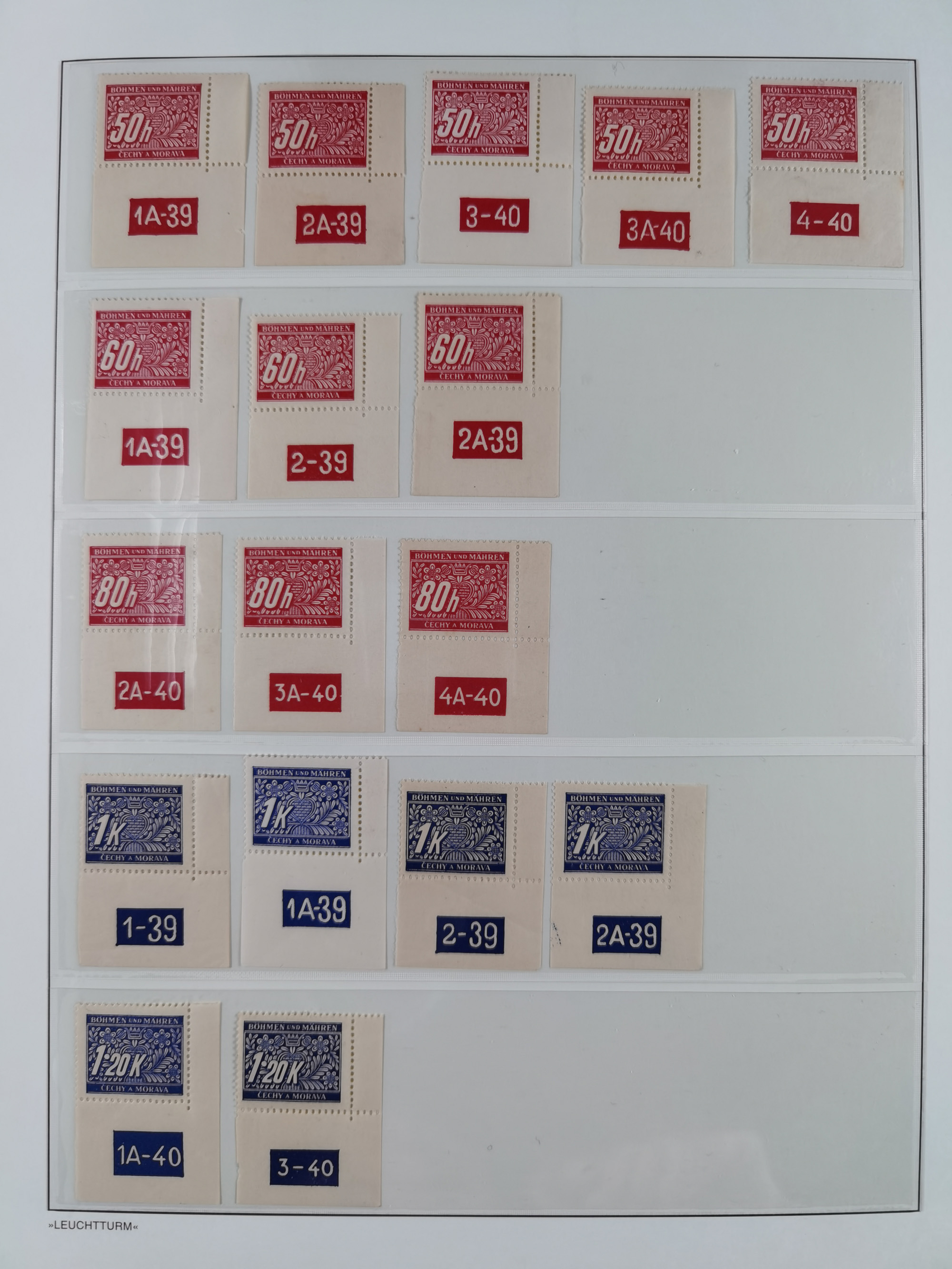 1939/45, interessante Partie, weißer Kärtchen mit Original-Unterschrift des Entwerfers wie Prof. Alois Schaumann, Karel Vik, Bohumil Heinz, Jan Vondrous, Vladimir Silovsky, Prof. Josef Sejpka, Jan Goldschmied und Alfred Erhardt, die Marken meist postfrisch, insgesamt 36 Stück, sehr interessant