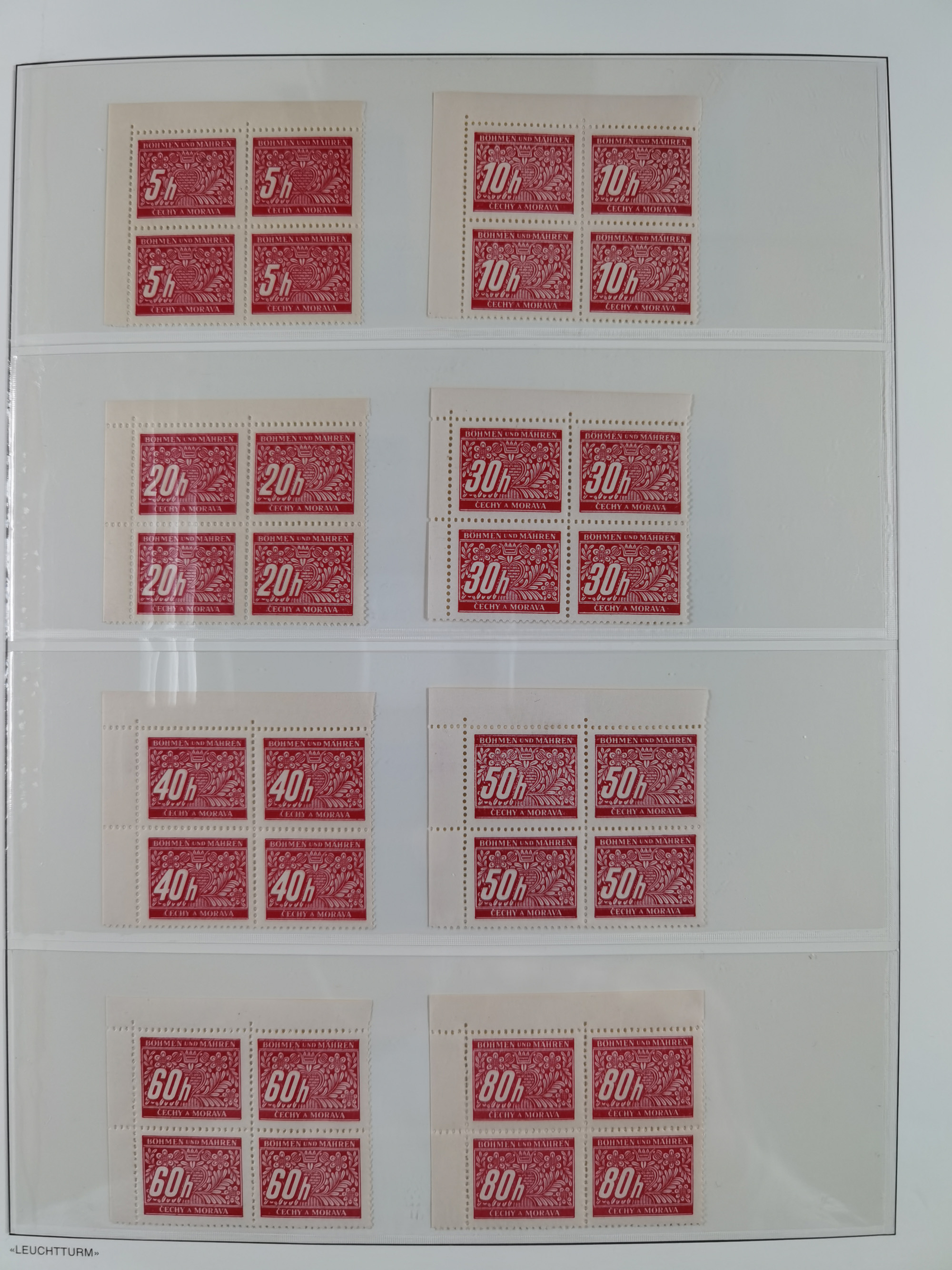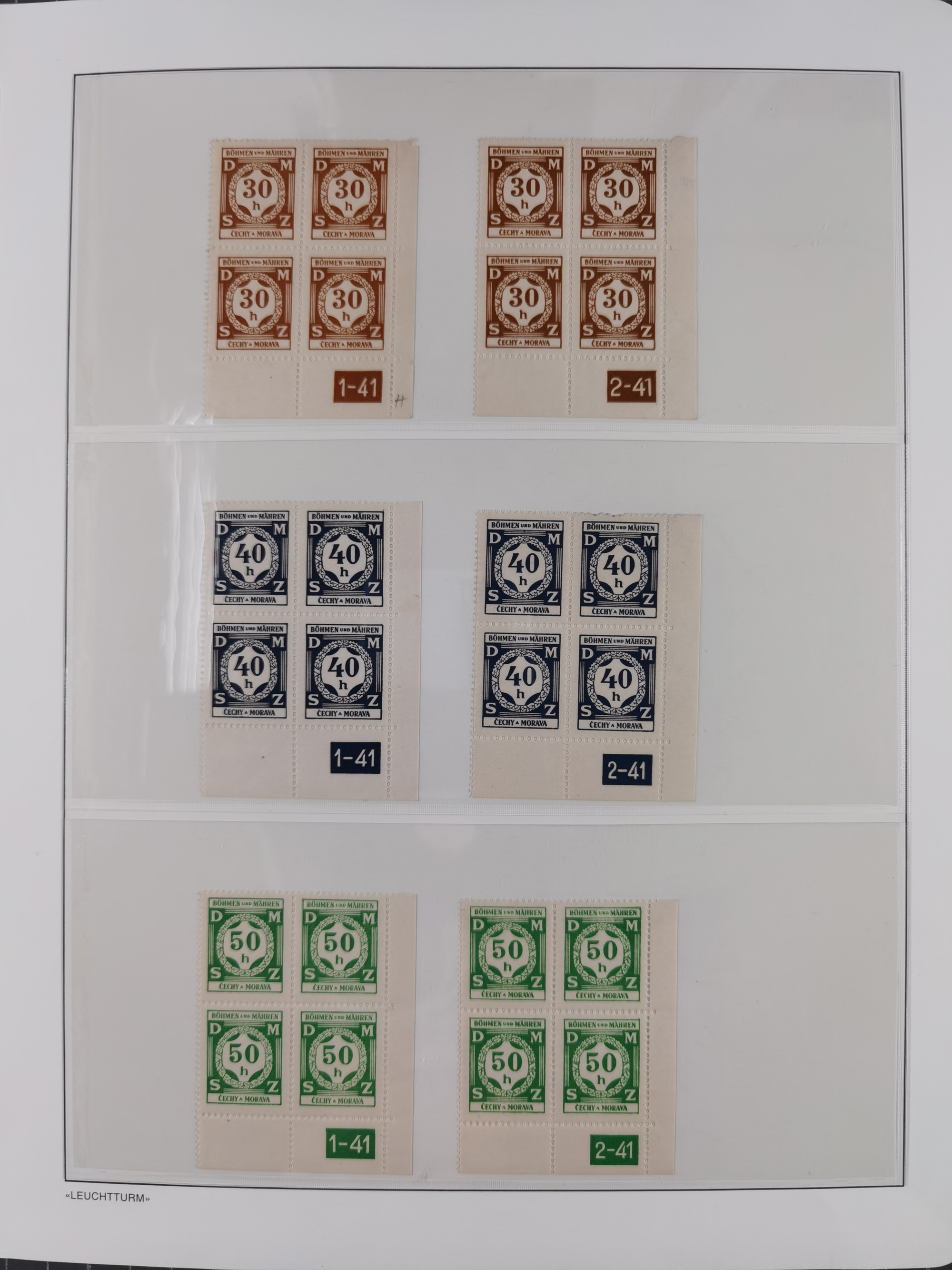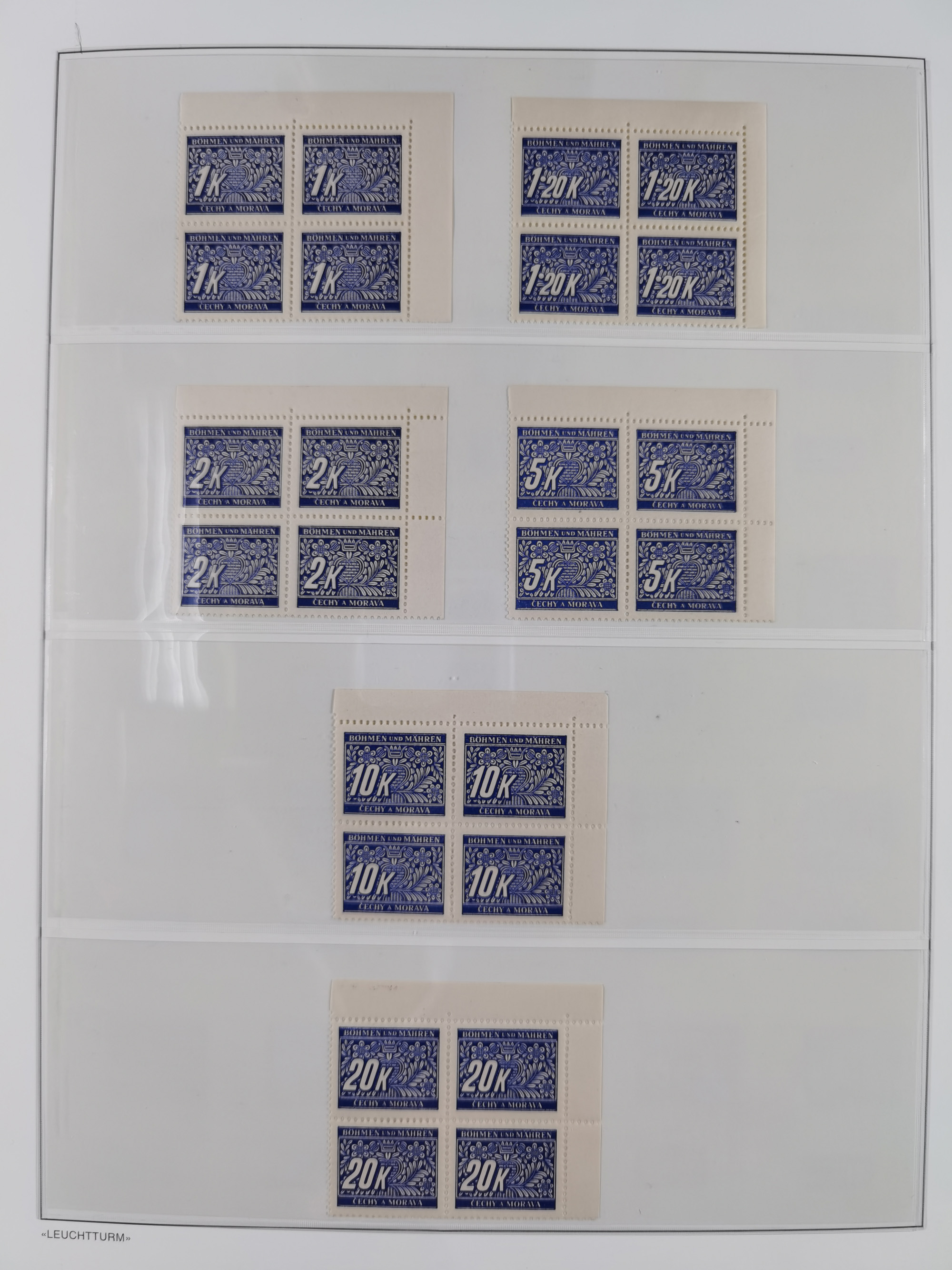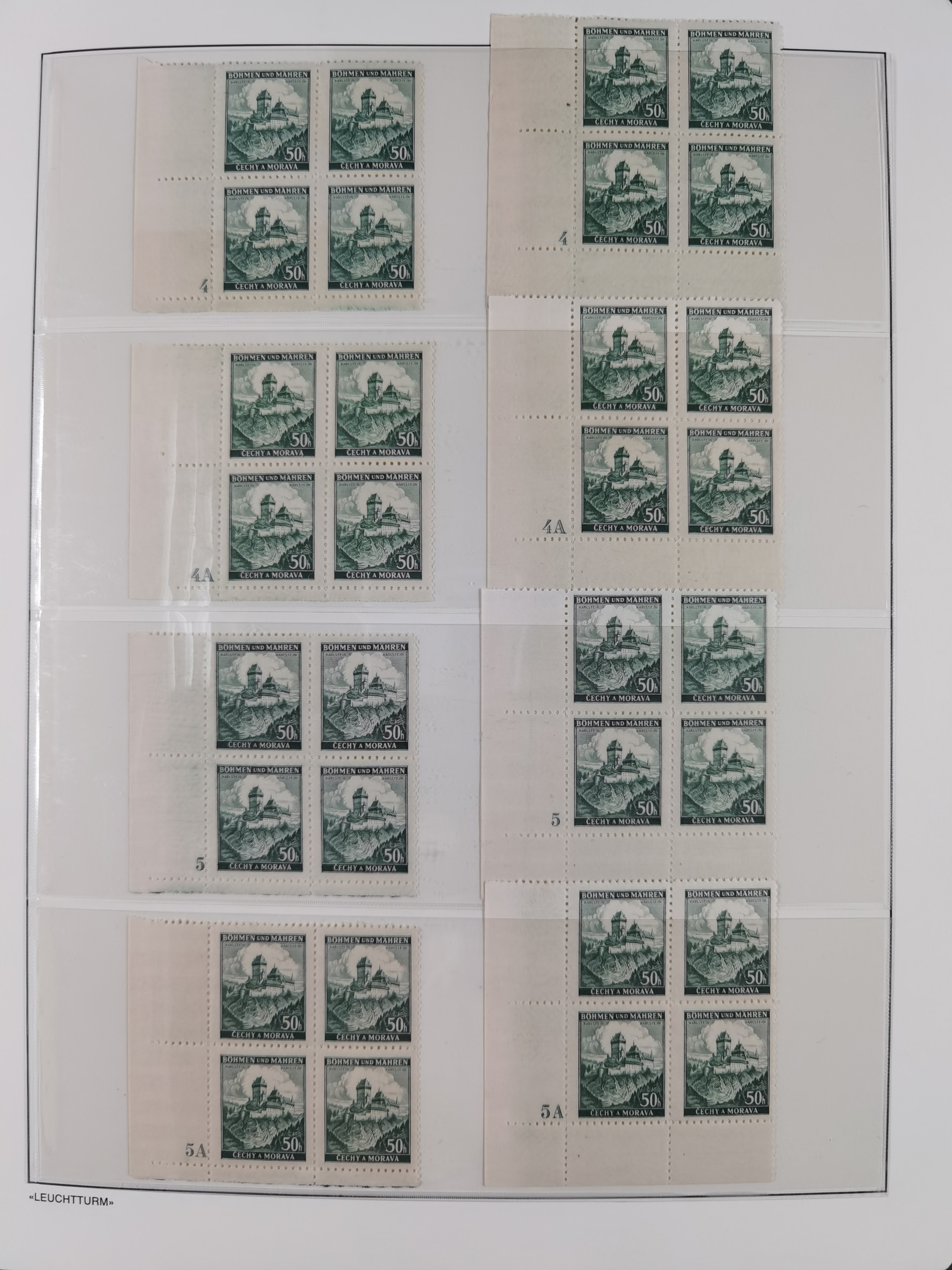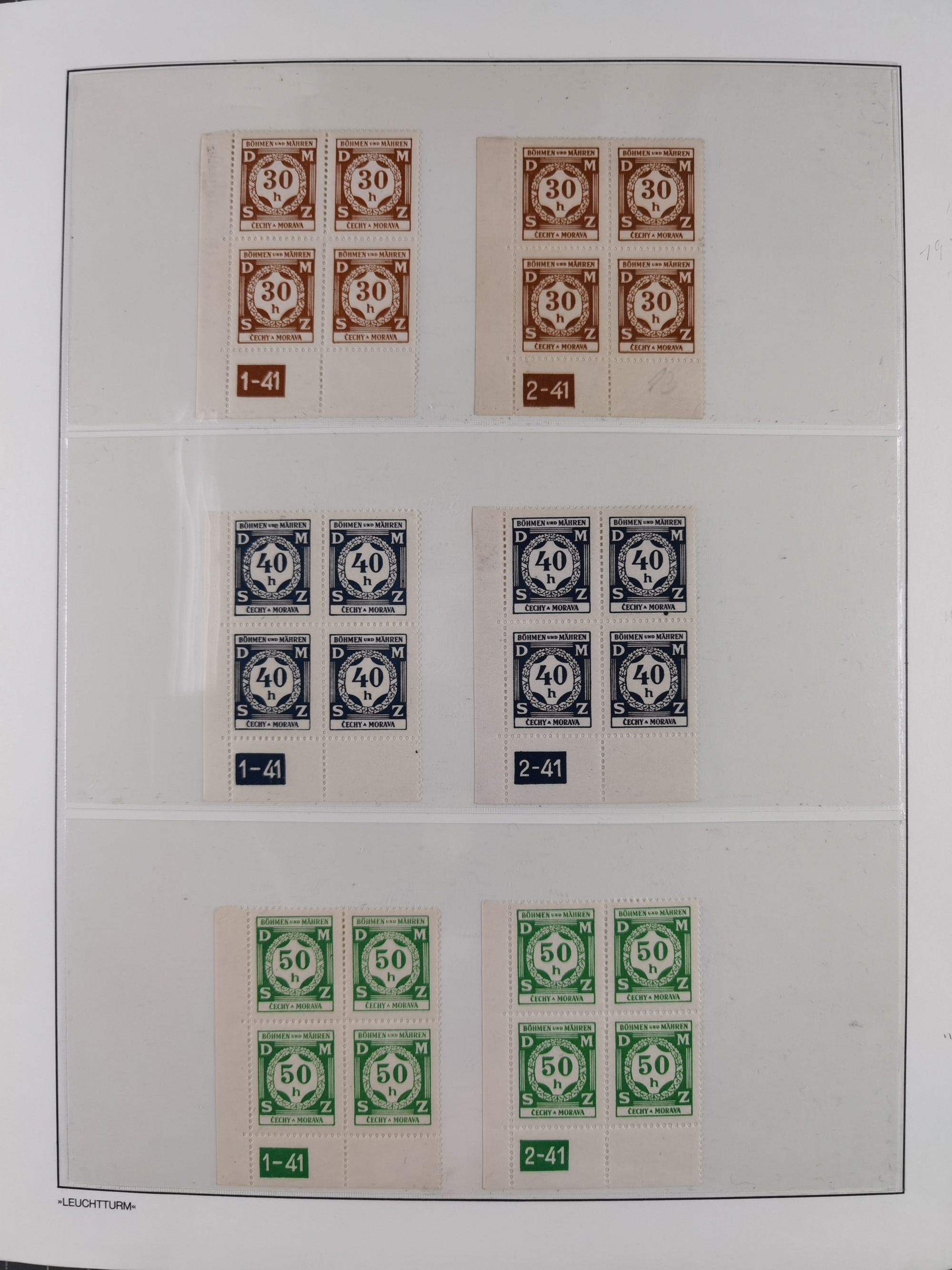 1939/45, sehr reichhaltige, postfrische Sammlung im dicken Leuchtturm-Album mit vielen Besonderheiten, dabei Eckrandstücke mit Plattennummer sowie Marken mit anhängendem Leerfeld, große Stückzahl an Viererblocks mit Plattennummern bei den Zeitungsmarken und Dienstmarken; bei den Portomarken Eckrandstücke mit Plattennummer und waagerechte Zwischenstegpaare mit Plattennummer, viel ex Mi.-Nr. 1-19, zu guter Letzt Zulassungsmarke Theresienstadt mit Fotoattest Brunel, alles in sehr schöner Erhaltung