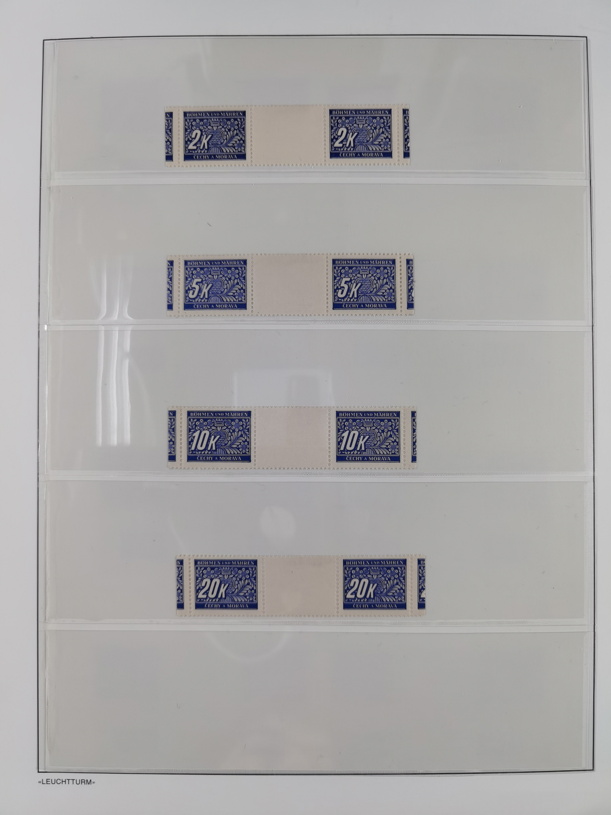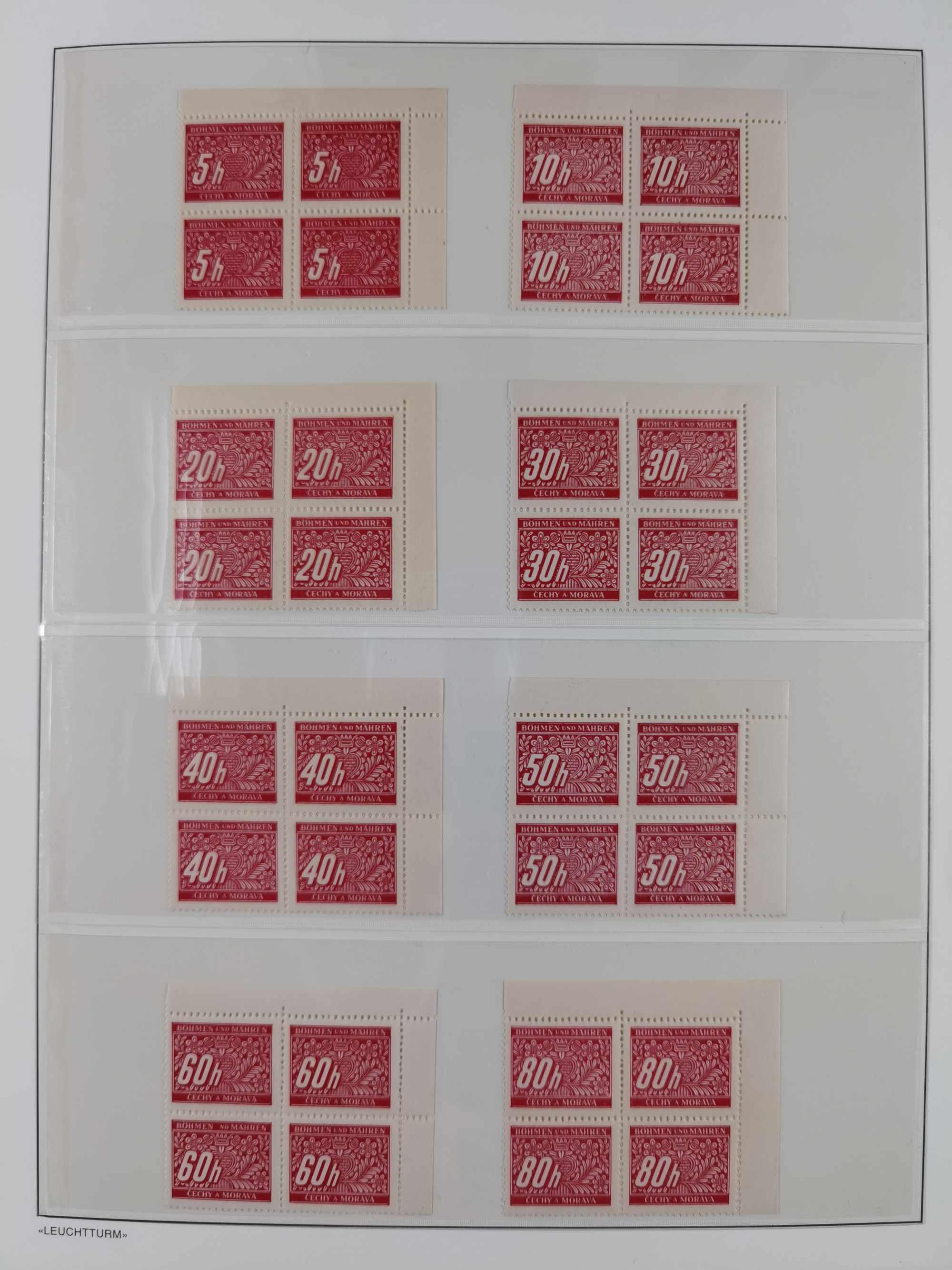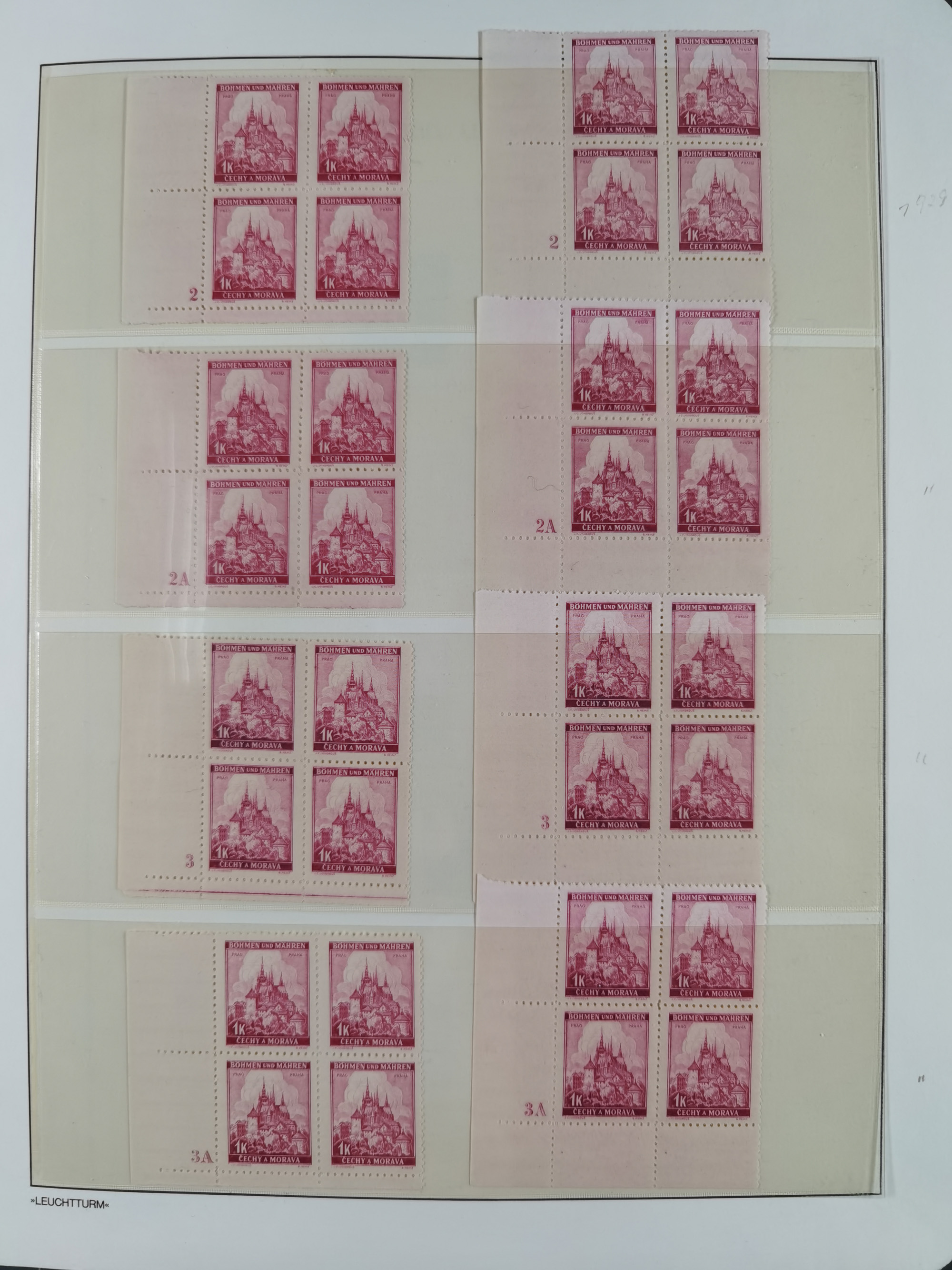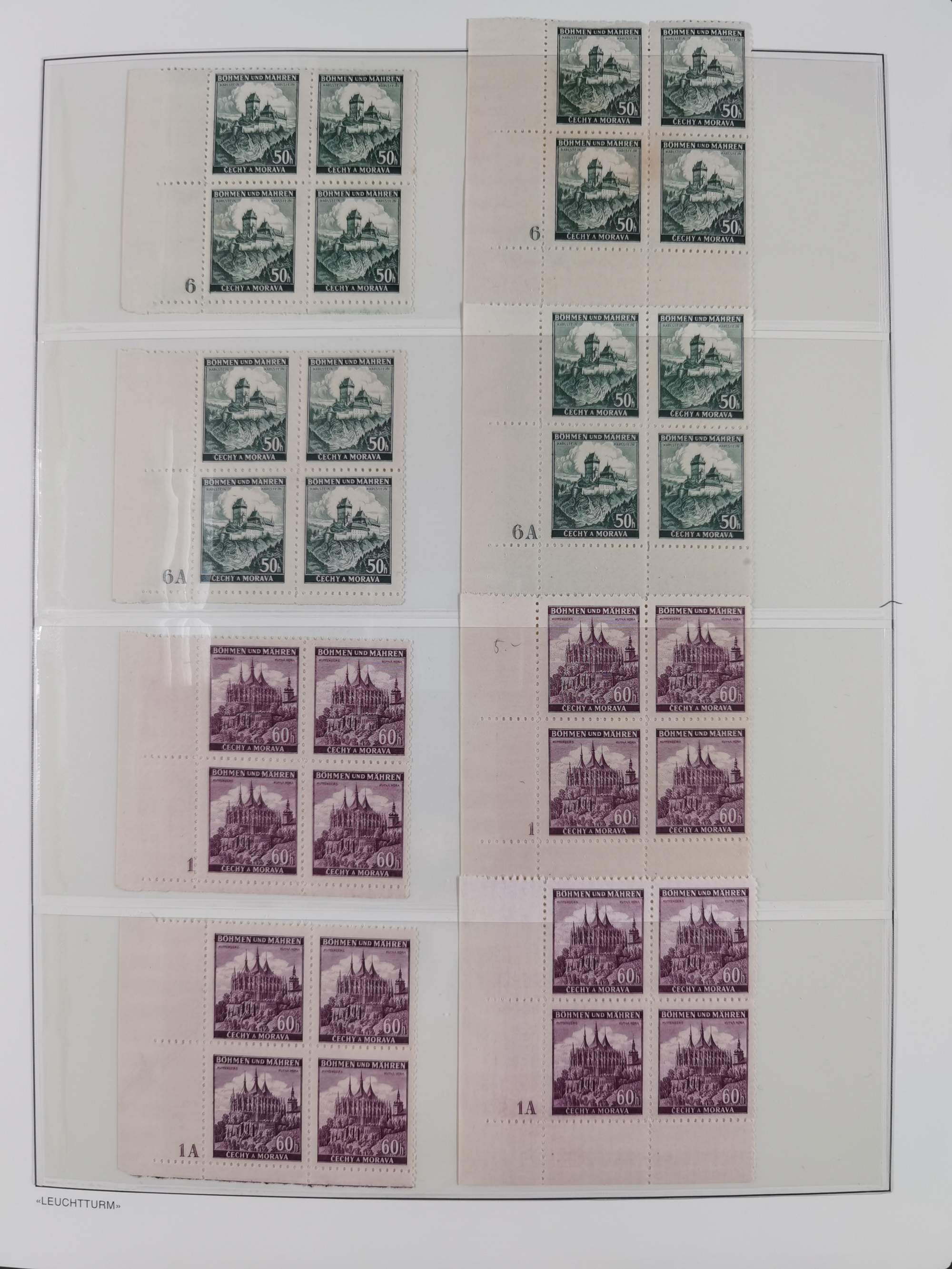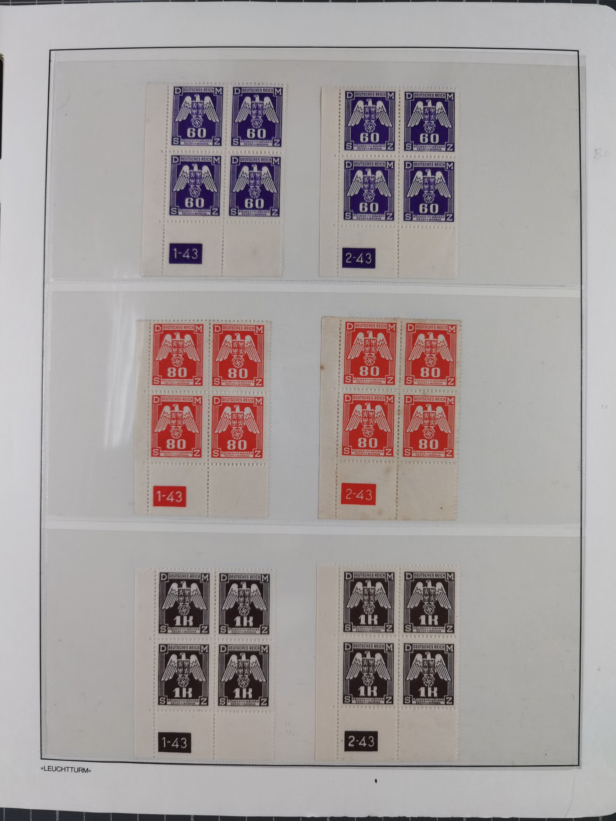 1939/45, sehr reichhaltige, postfrische Sammlung im dicken Leuchtturm-Album mit vielen Besonderheiten, dabei Eckrandstücke mit Plattennummer sowie Marken mit anhängendem Leerfeld, große Stückzahl an Viererblocks mit Plattennummern bei den Zeitungsmarken und Dienstmarken; bei den Portomarken Eckrandstücke mit Plattennummer und waagerechte Zwischenstegpaare mit Plattennummer, viel ex Mi.-Nr. 1-19, zu guter Letzt Zulassungsmarke Theresienstadt mit Fotoattest Brunel, alles in sehr schöner Erhaltung