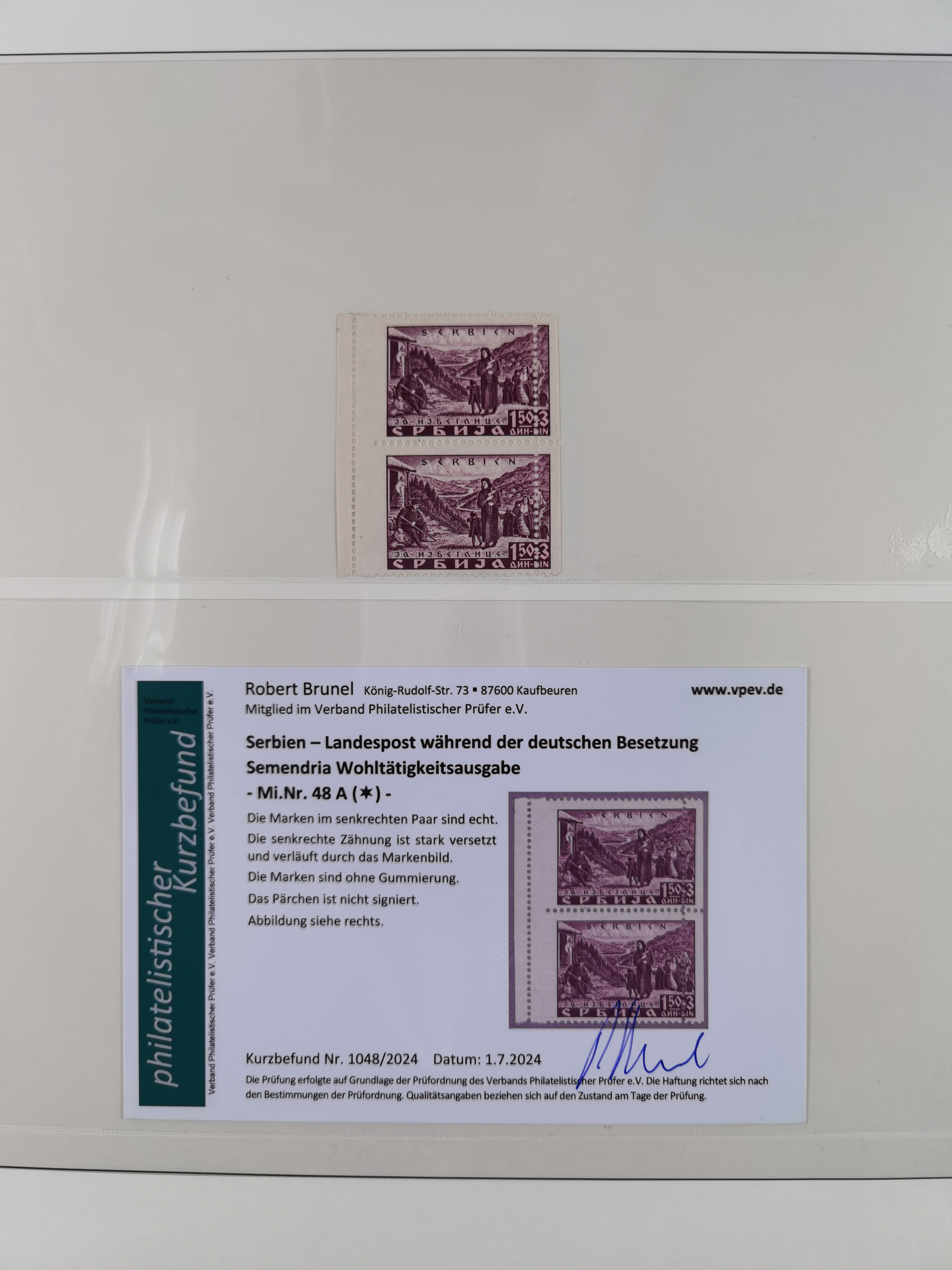 1941, kleines Lot mit Besonderheiten wie stark verzähnt, Doppelzähnung, durch Markenbild verlaufen zwei senkrechte Zähnungen u.ä., alle Stücke ohne Gummierung, Befunde bzw. Fotoattest Brunel (ex Mi.-Nr. 46-49)