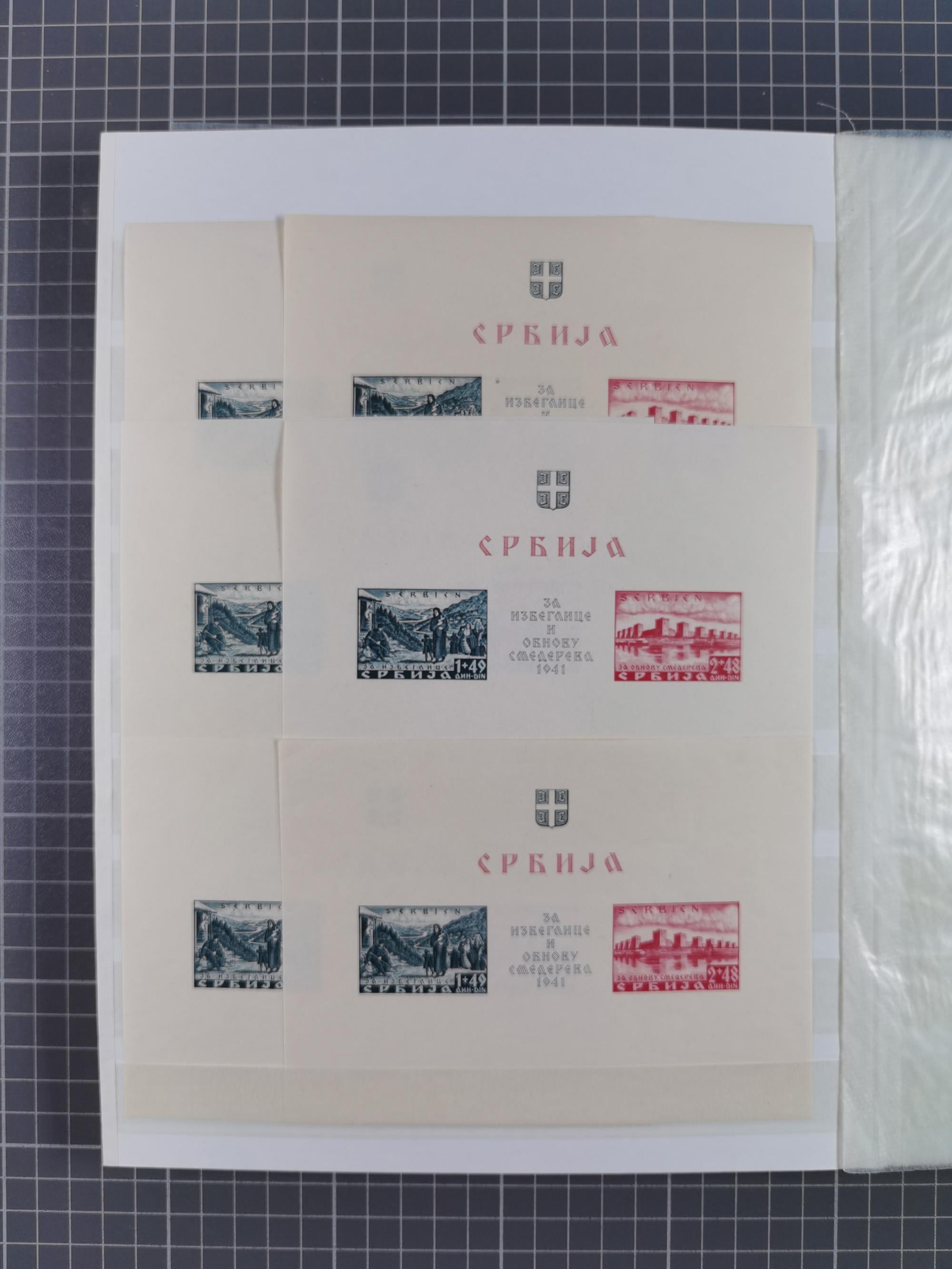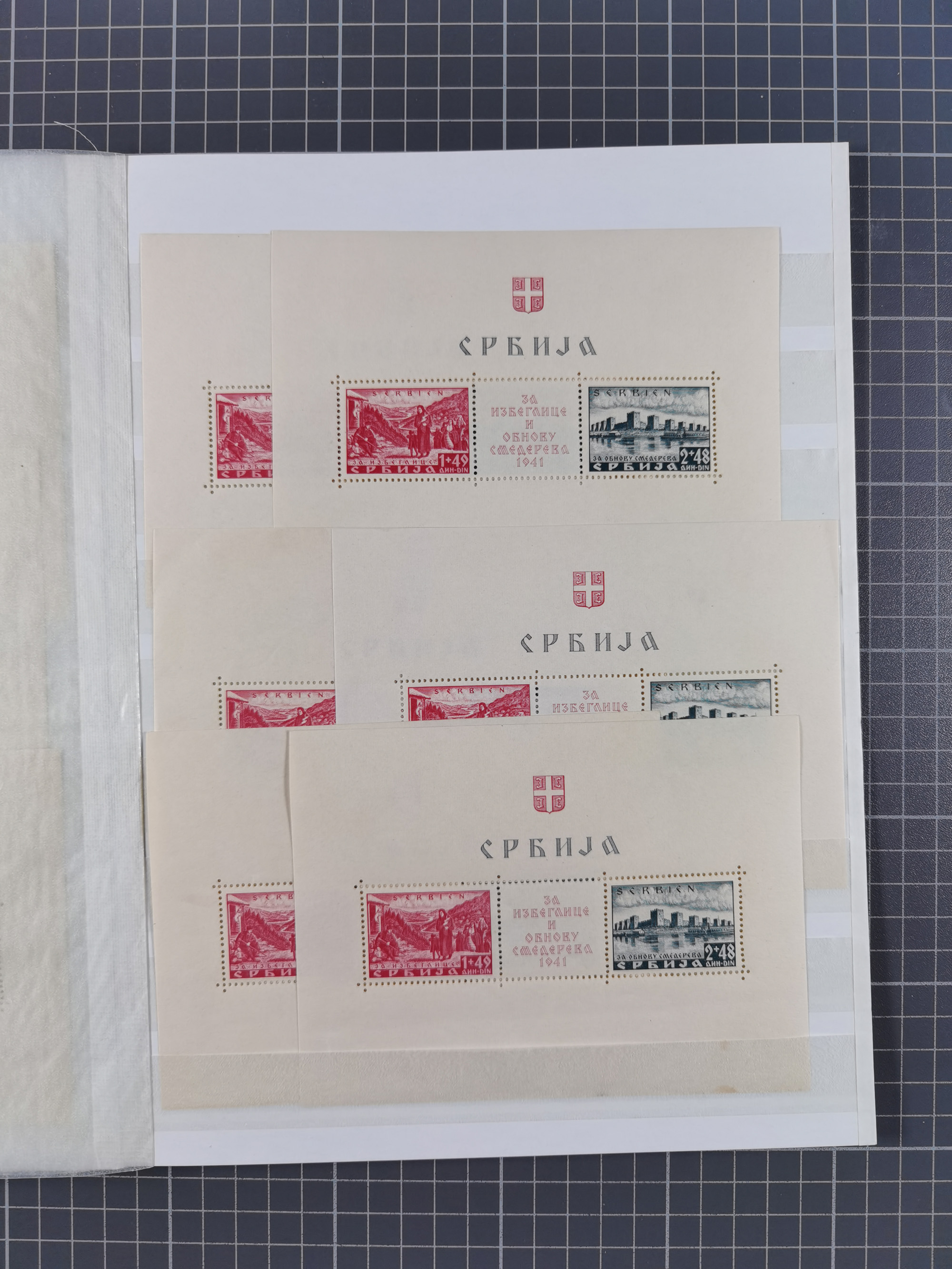 1941/44, Burg und Stadt Krakau 10 Zl., Mi.-Nr. 65 ein Kleinbogen mit Formnummer 3, Mi.-Nr. 125 zwei Kleinbogen mit Formnummern 3 bzw. 4 sowie Mi.-Nr. 125U im Kleinbogen mit Formnummer 4, postfrisch, gute Erhaltung (Mi. ca. 1220,-)