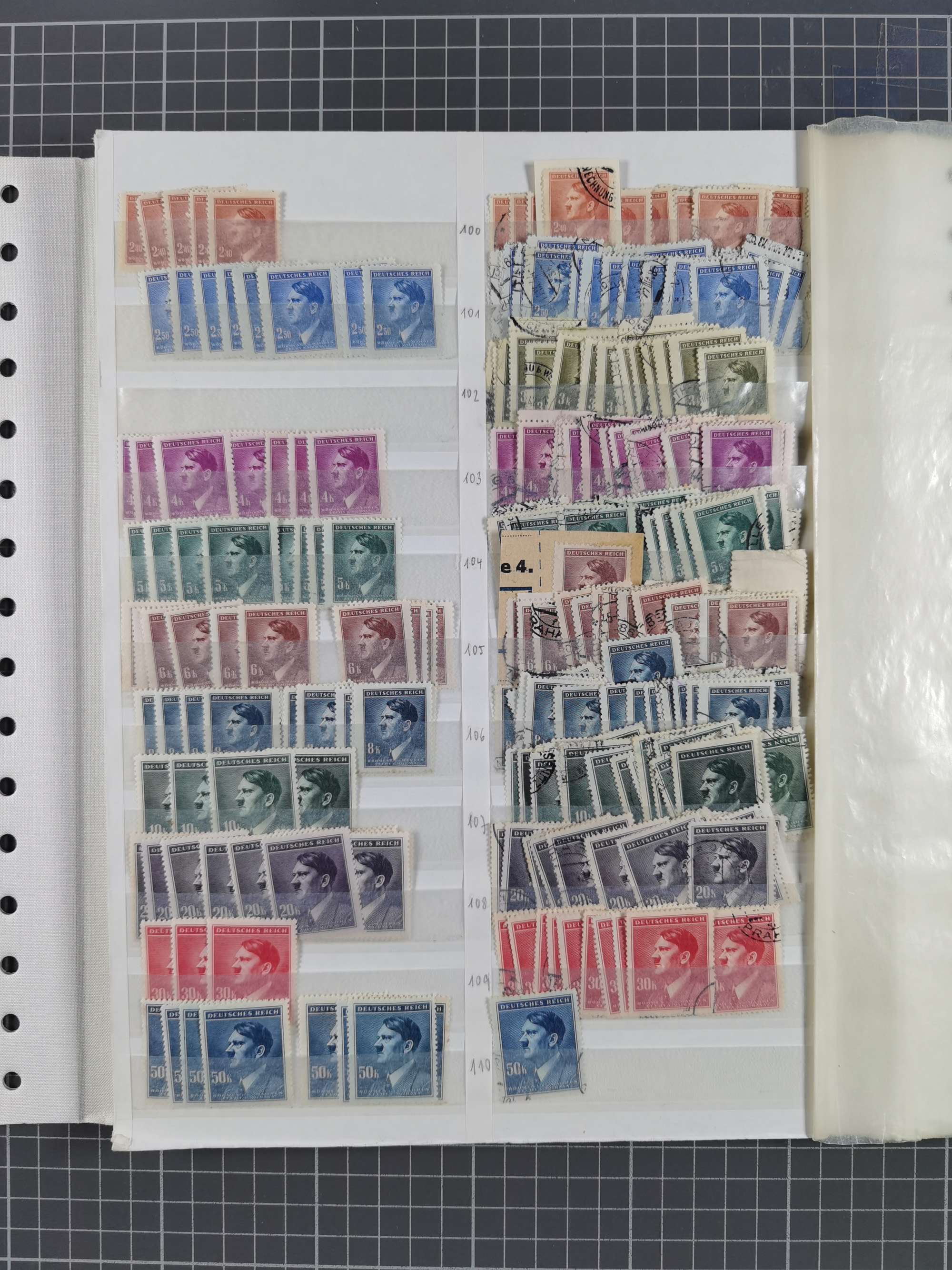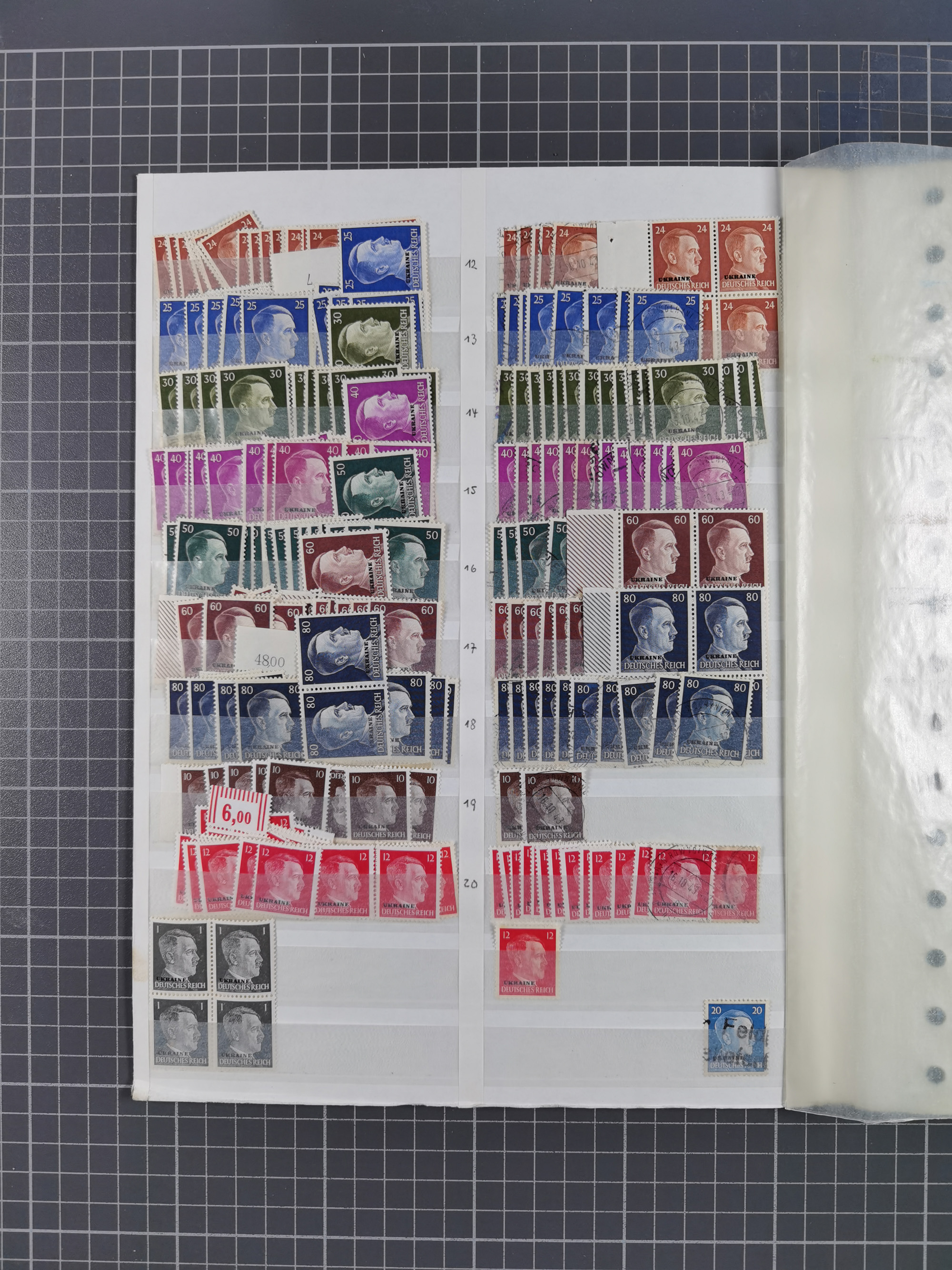1941, Hitler 2-48 Gr., postfrischer Bogensatz, überkomplett, dabei verschiedene Formnummern und Oberrand durchgezähnt bzw. nicht durchgezähnt, insgesamt 17 Bogen (Mi.-Nr. 71-82)