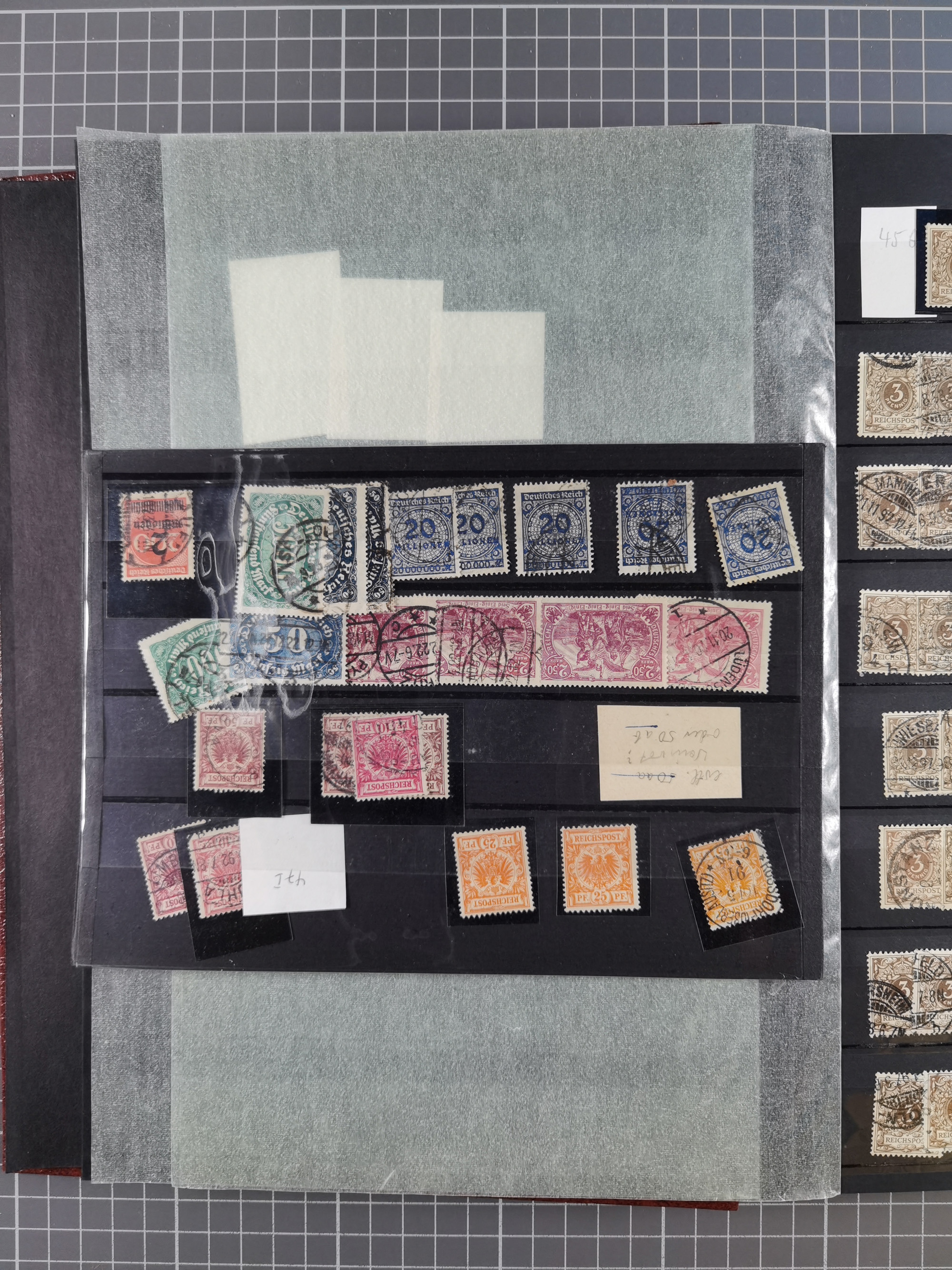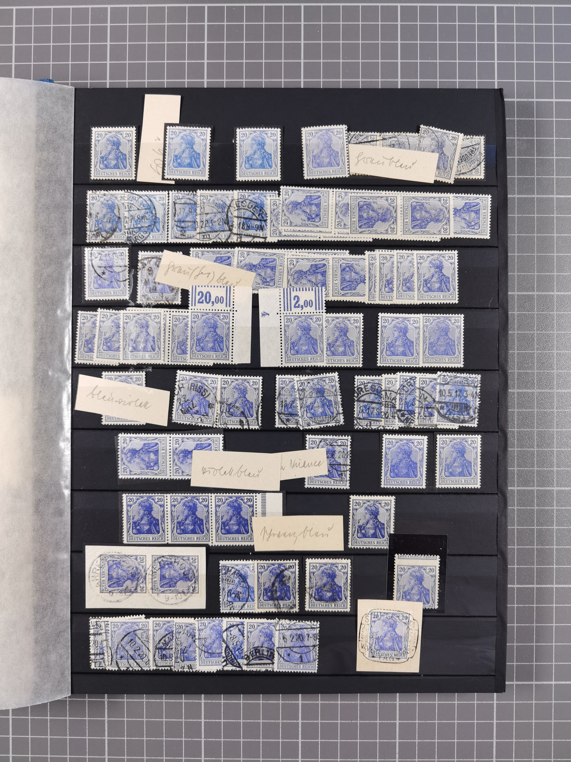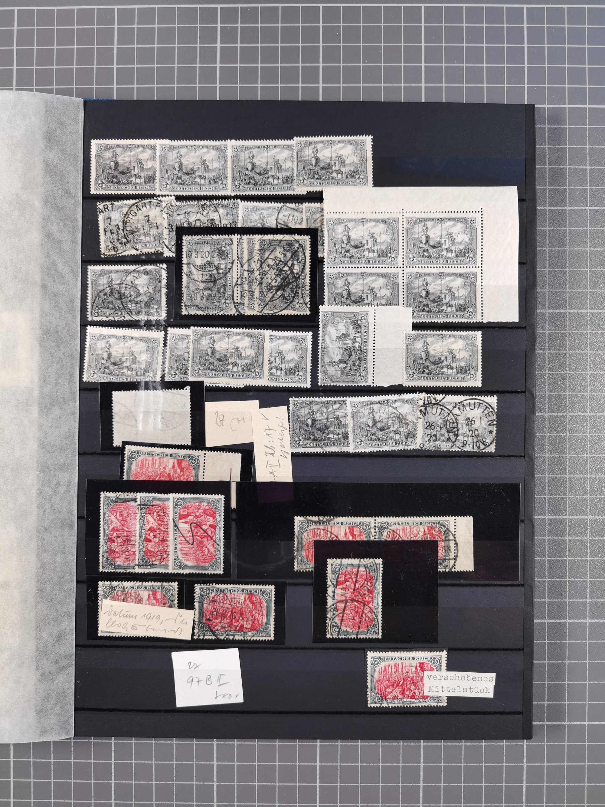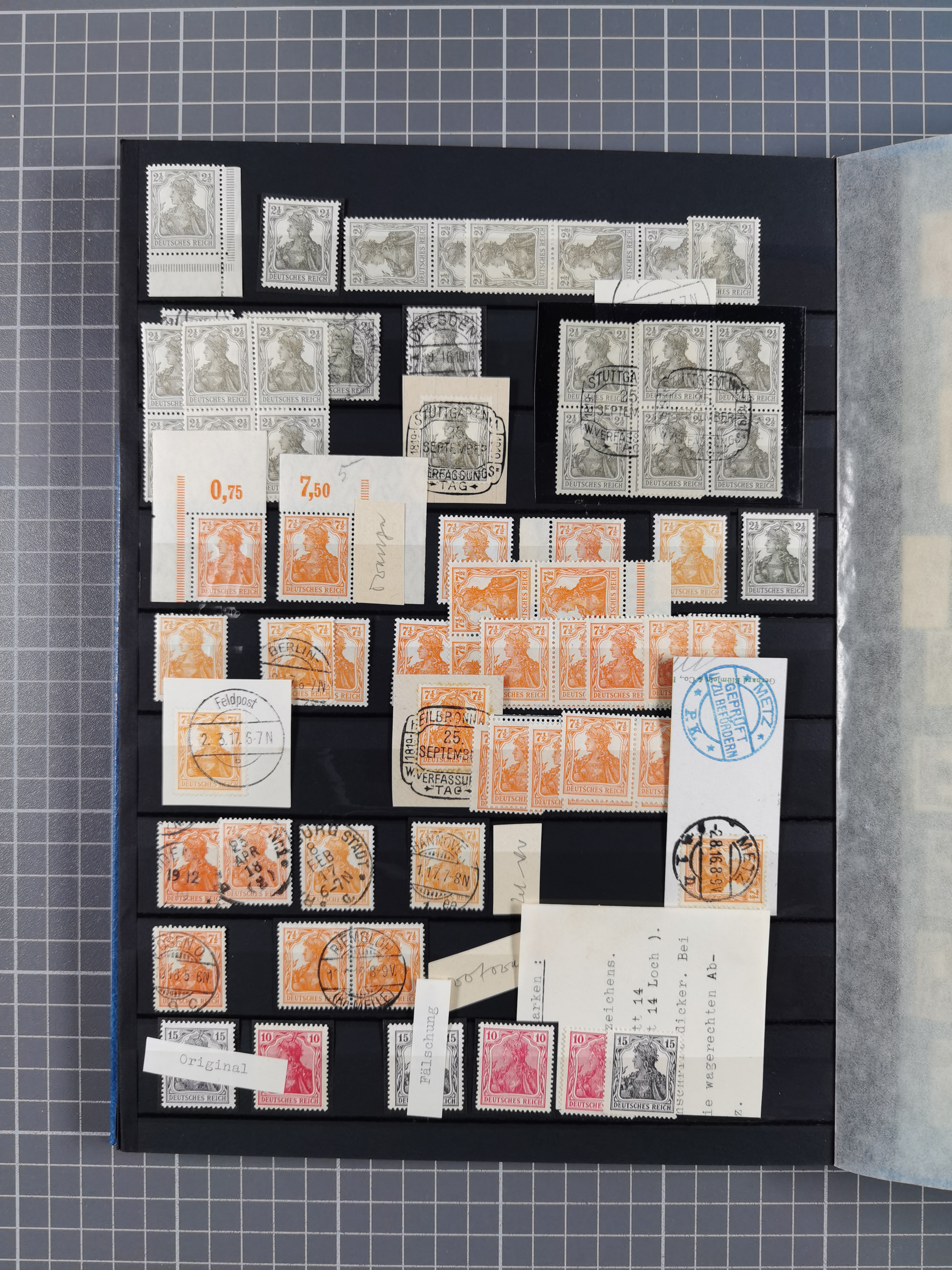 1900/22, Germania, interessante Partie von Sammlungen und Dubletten, dabei kleine Aussstellungssammlung mit besseren Zusammendrucken, außerdem einige Bogen, viele Briefe u.a. Reklamebrief, Germania 20 und 40 Pfg. rückseitig mit Maschinenstempel "10042 HERBESTHAL (ZOLL) auf Zollkarte, bessere Ganzsachen mit besseren Stempeln, interessante Verwendungen und Destinationen, dabei auch Nebengebiete und Kolonien, etwas unterschiedliche, meist aber gute Erhaltung