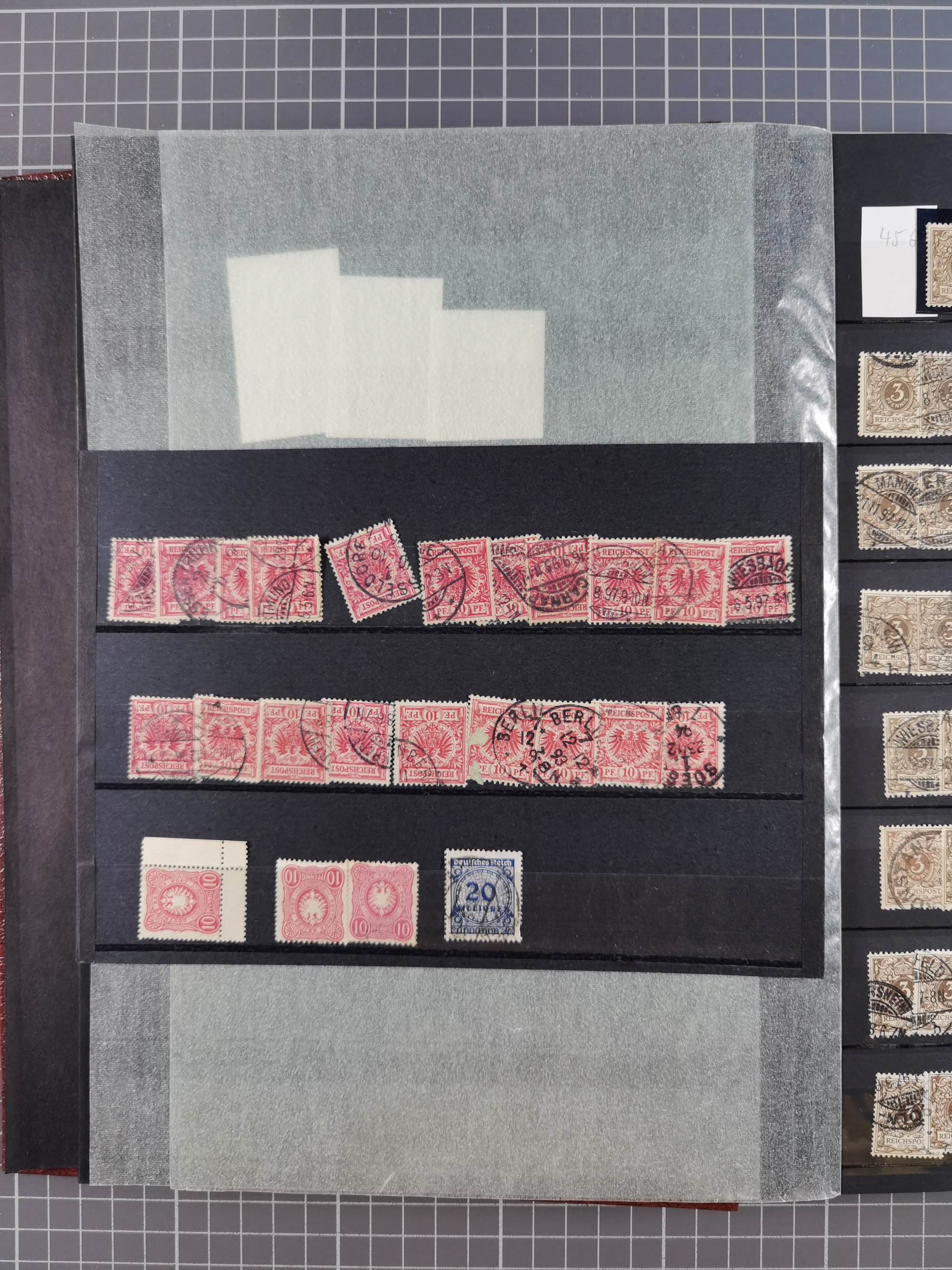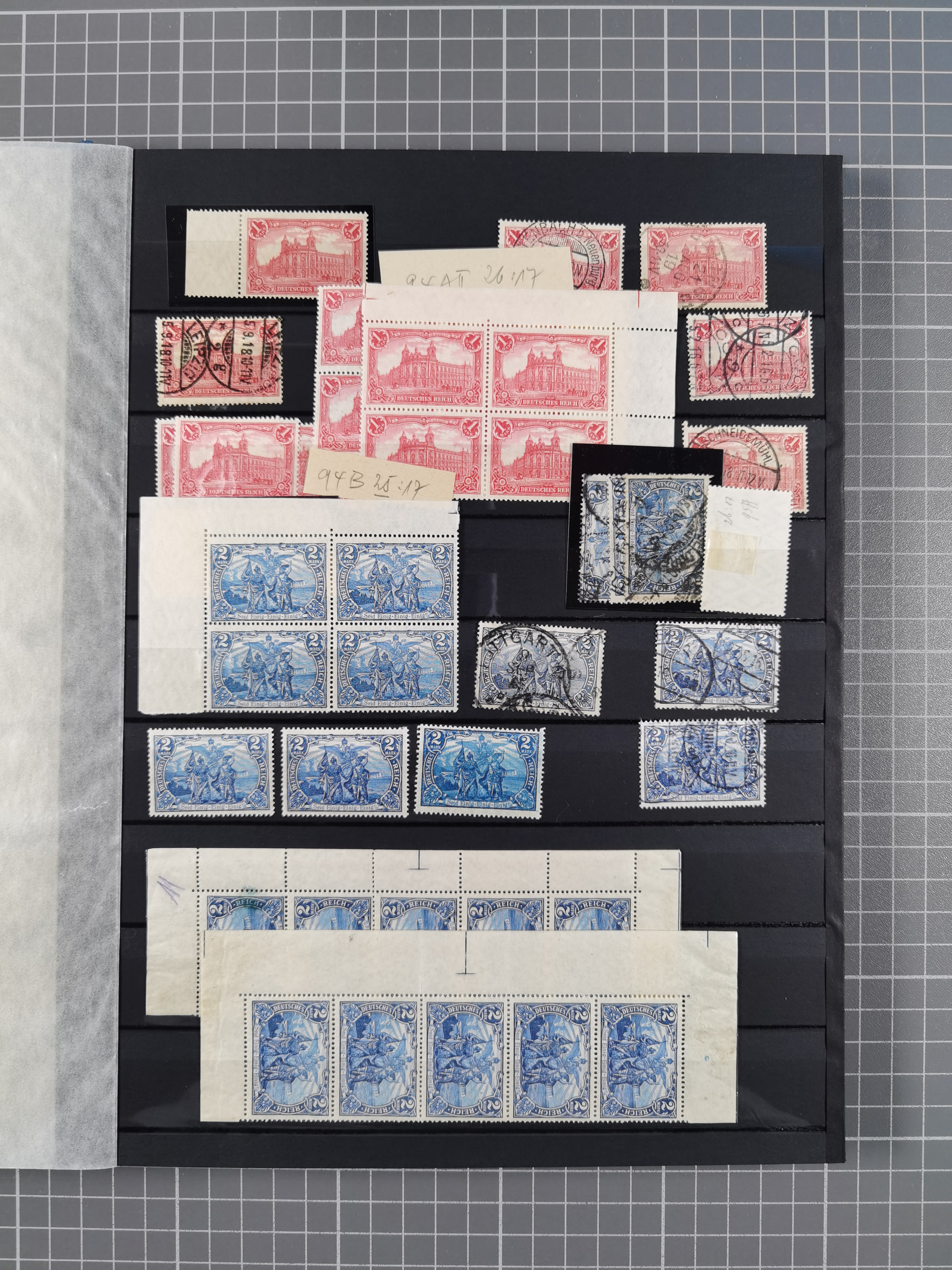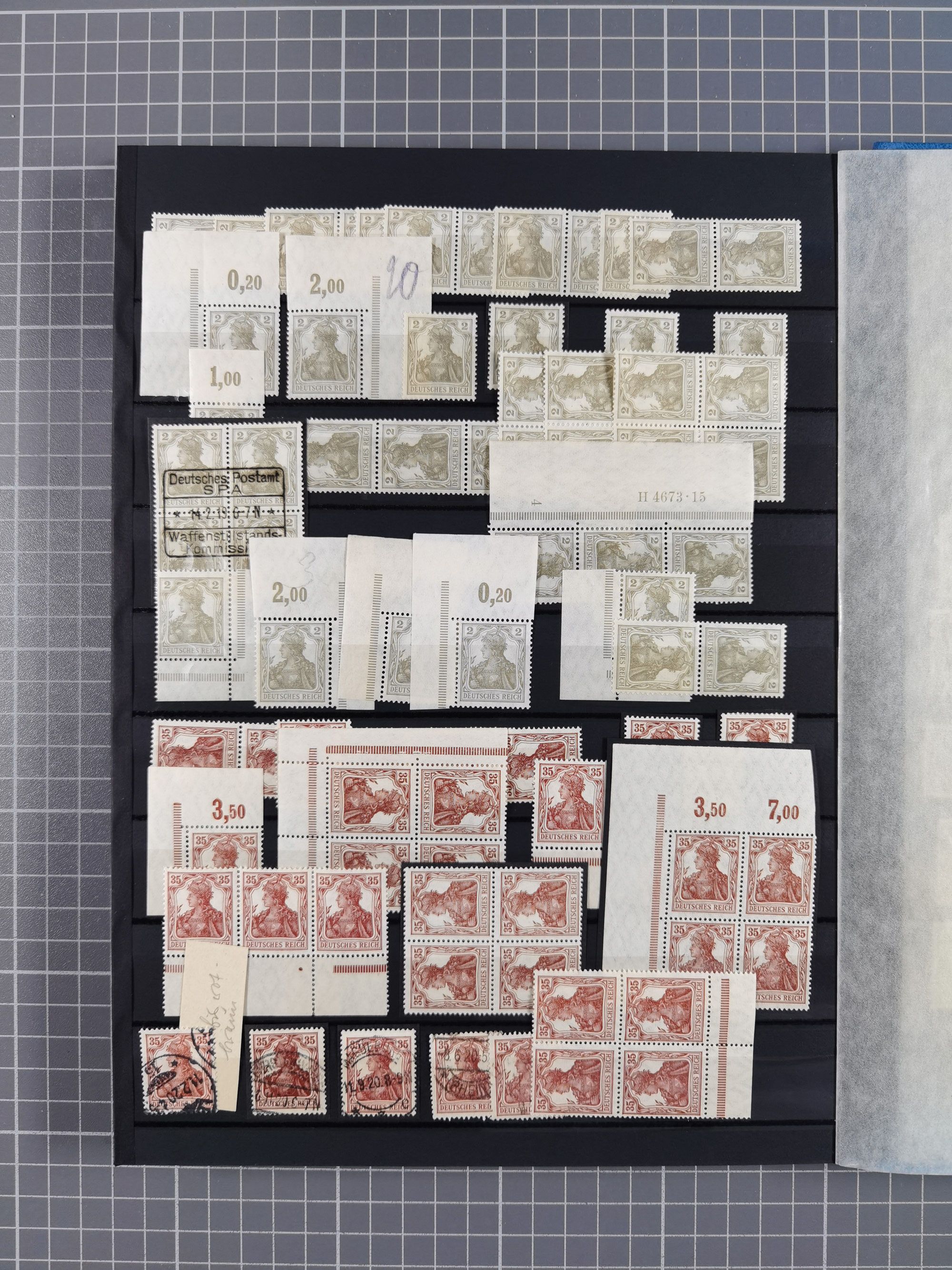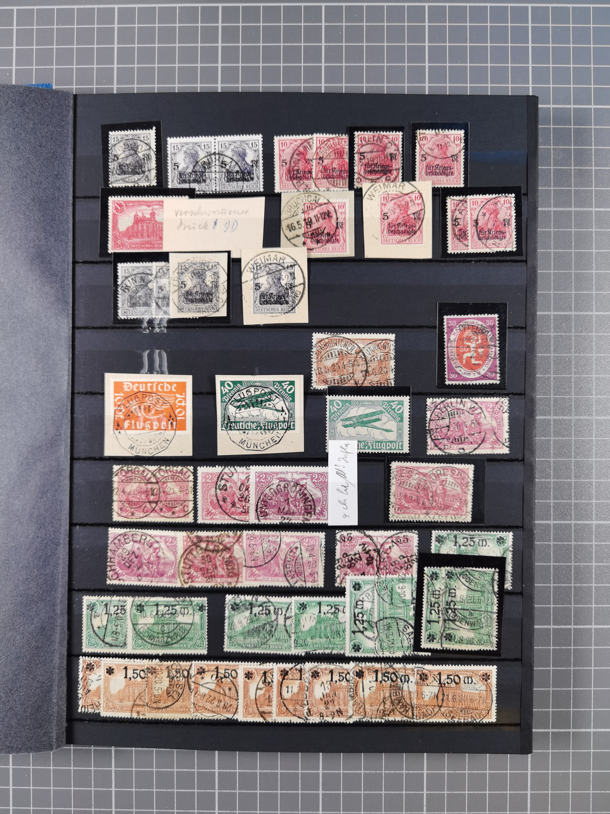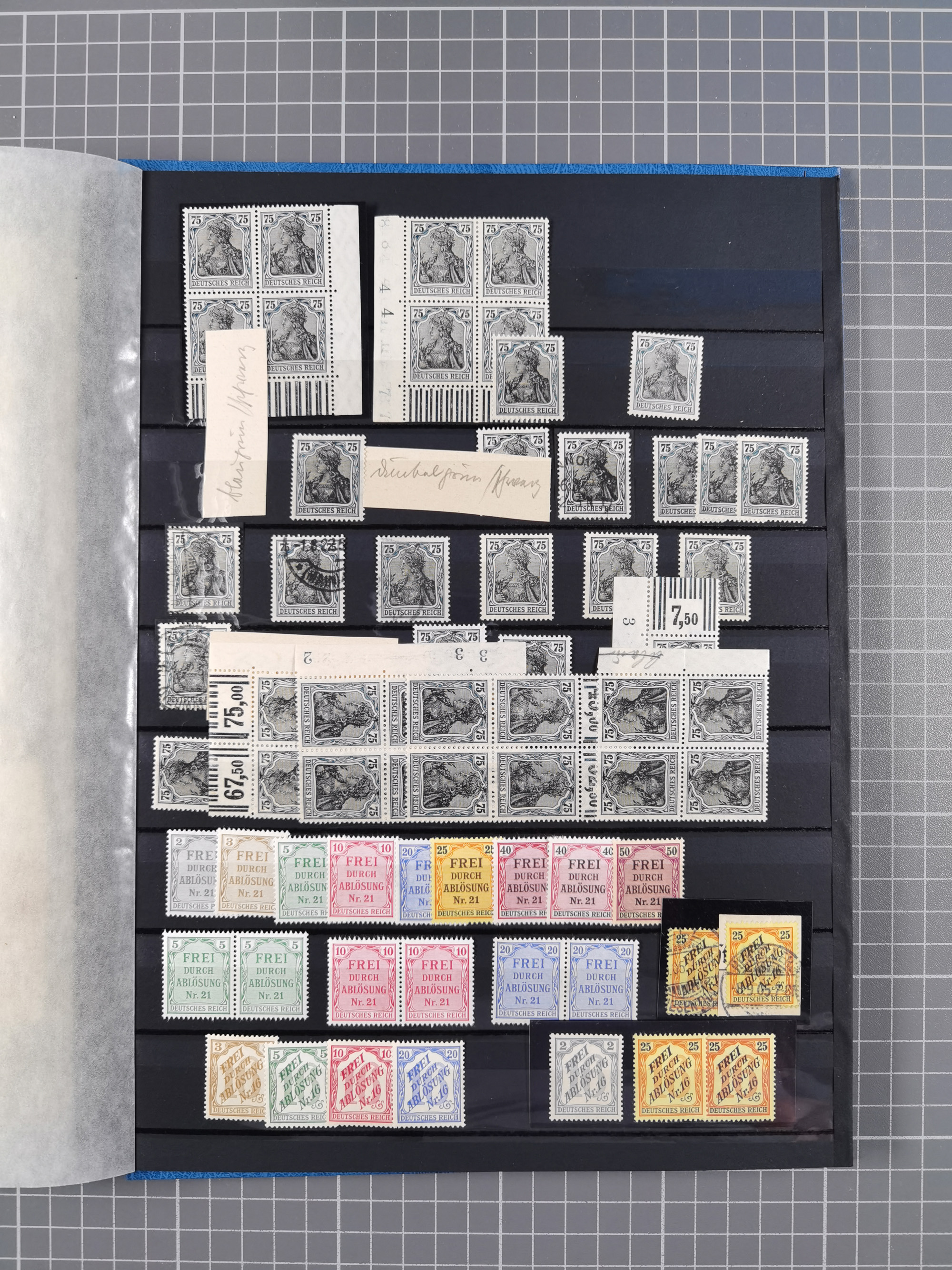 1900/22, Germania, interessante Partie von Sammlungen und Dubletten, dabei kleine Aussstellungssammlung mit besseren Zusammendrucken, außerdem einige Bogen, viele Briefe u.a. Reklamebrief, Germania 20 und 40 Pfg. rückseitig mit Maschinenstempel "10042 HERBESTHAL (ZOLL) auf Zollkarte, bessere Ganzsachen mit besseren Stempeln, interessante Verwendungen und Destinationen, dabei auch Nebengebiete und Kolonien, etwas unterschiedliche, meist aber gute Erhaltung