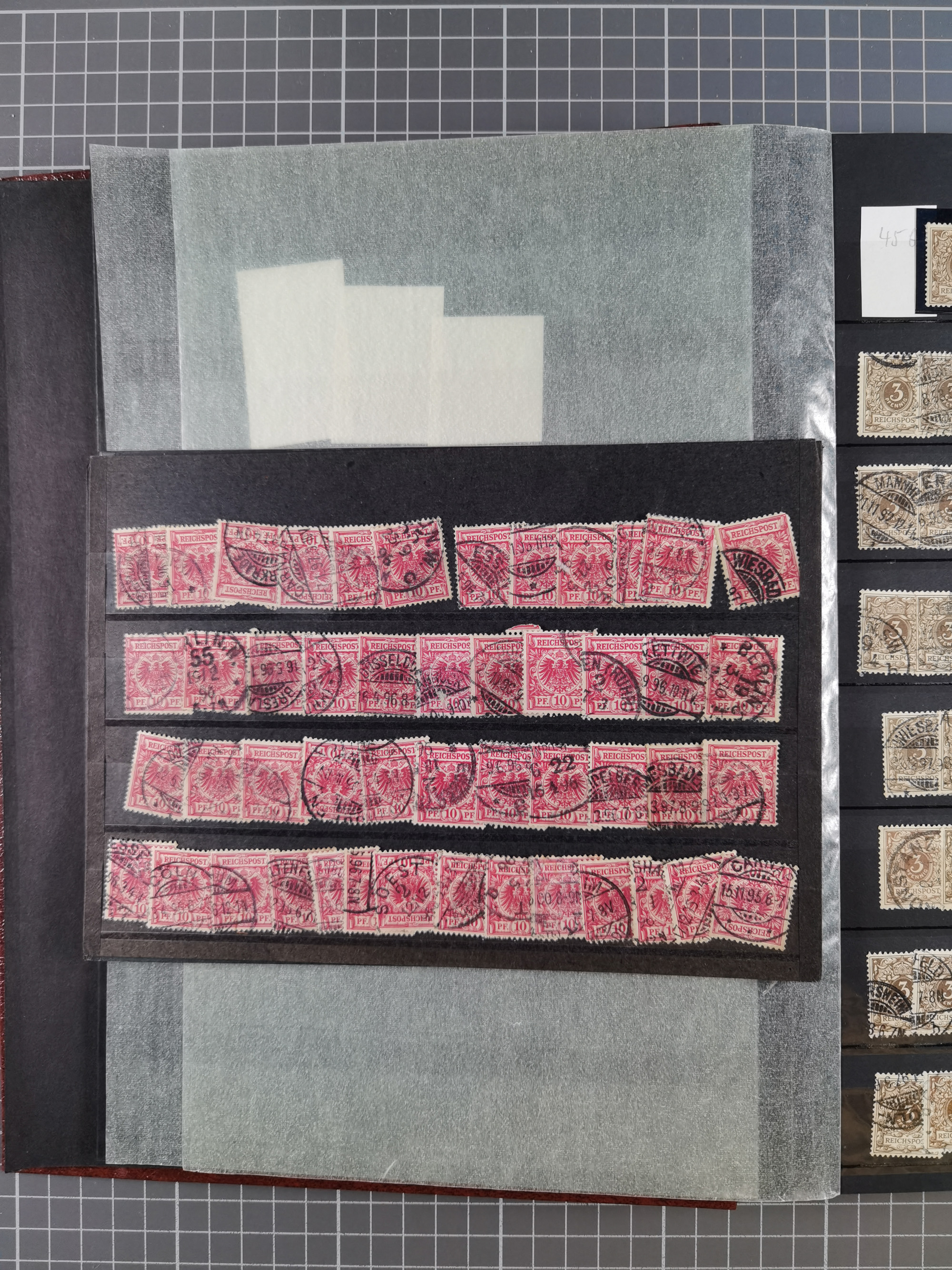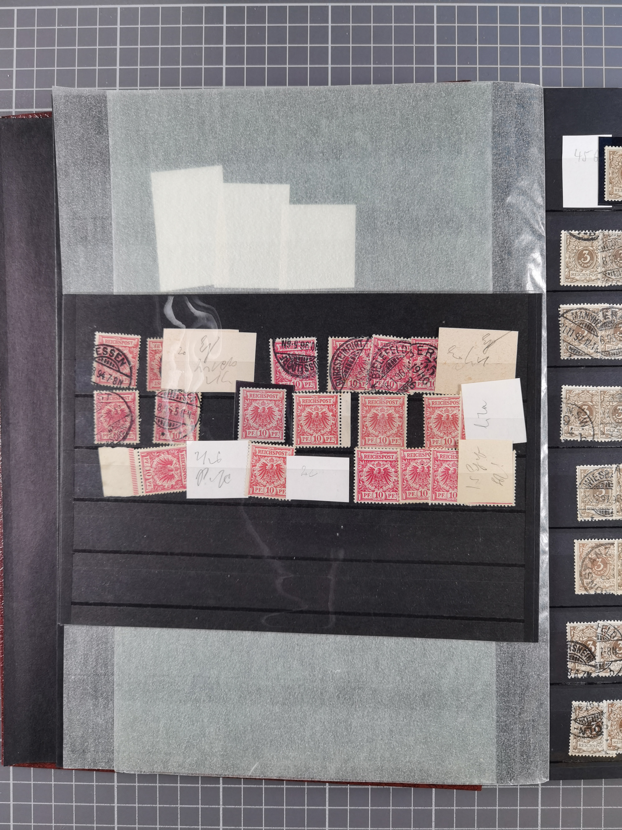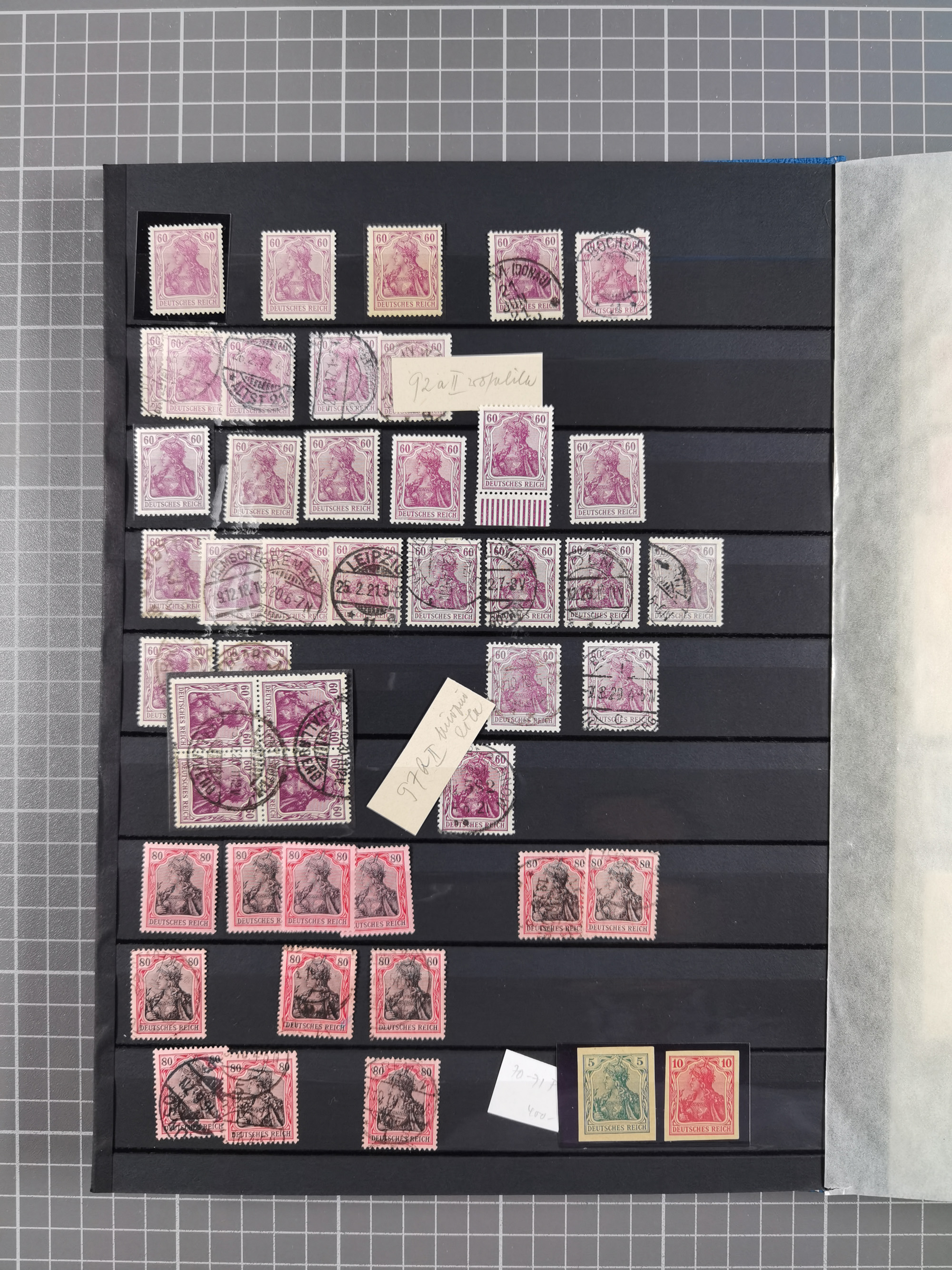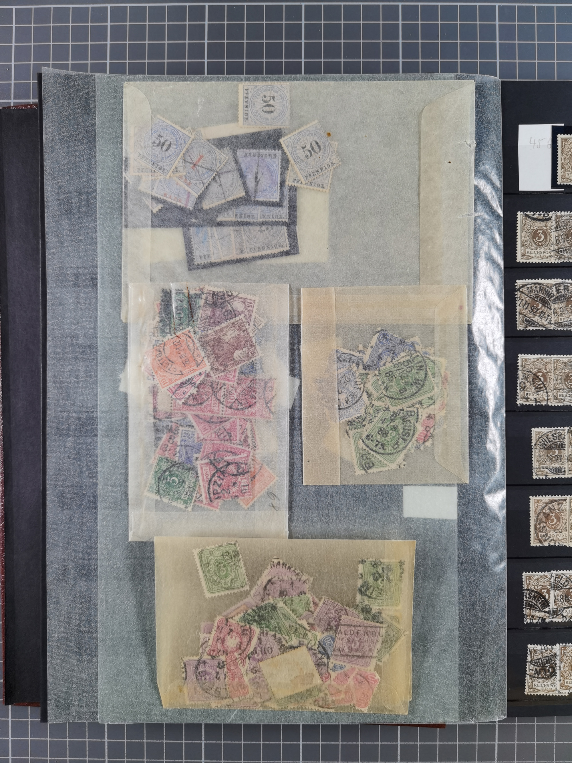1900/22, Germania, interessante Partie von Sammlungen und Dubletten, dabei kleine Aussstellungssammlung mit besseren Zusammendrucken, außerdem einige Bogen, viele Briefe u.a. Reklamebrief, Germania 20 und 40 Pfg. rückseitig mit Maschinenstempel "10042 HERBESTHAL (ZOLL) auf Zollkarte, bessere Ganzsachen mit besseren Stempeln, interessante Verwendungen und Destinationen, dabei auch Nebengebiete und Kolonien, etwas unterschiedliche, meist aber gute Erhaltung