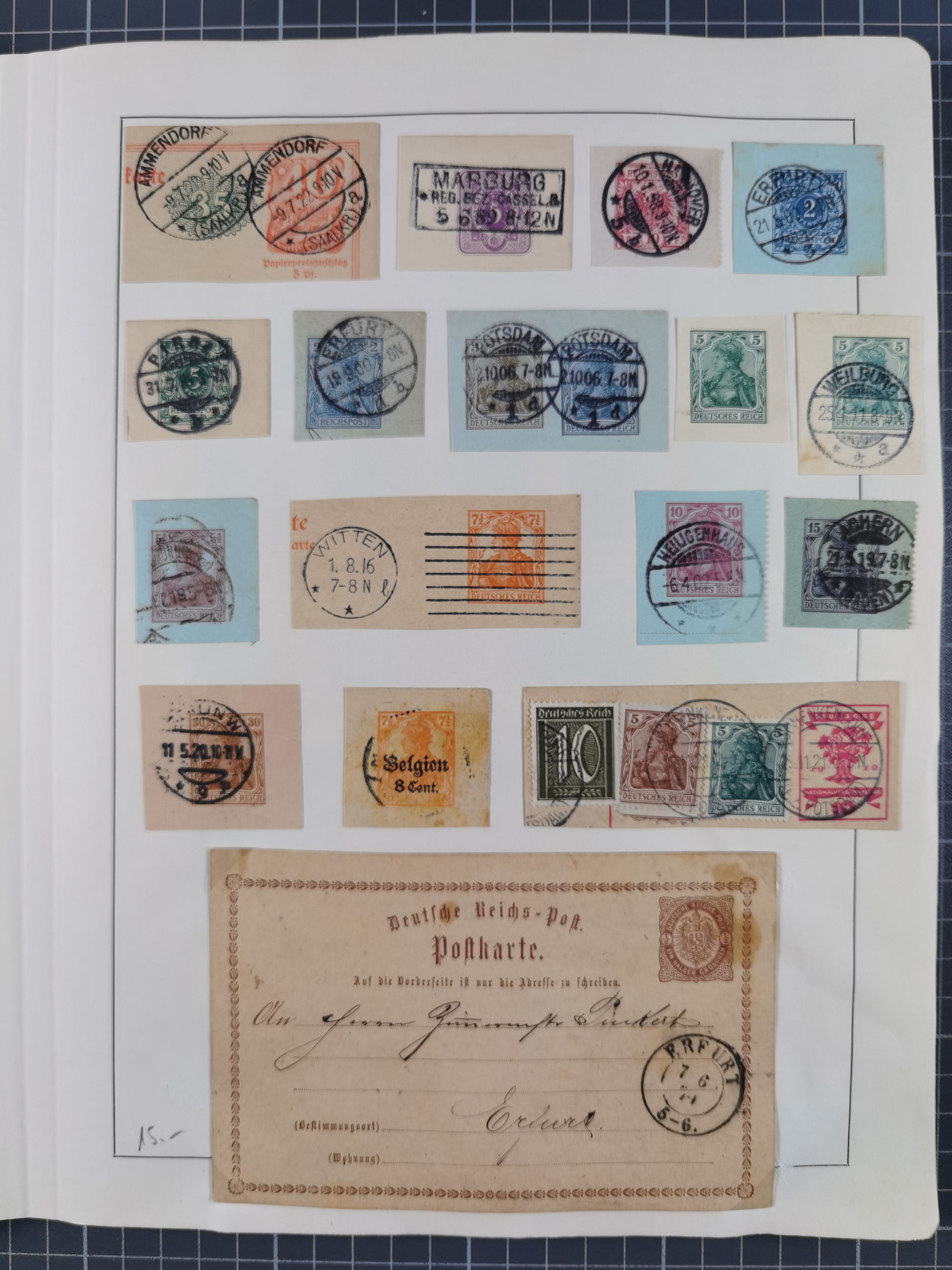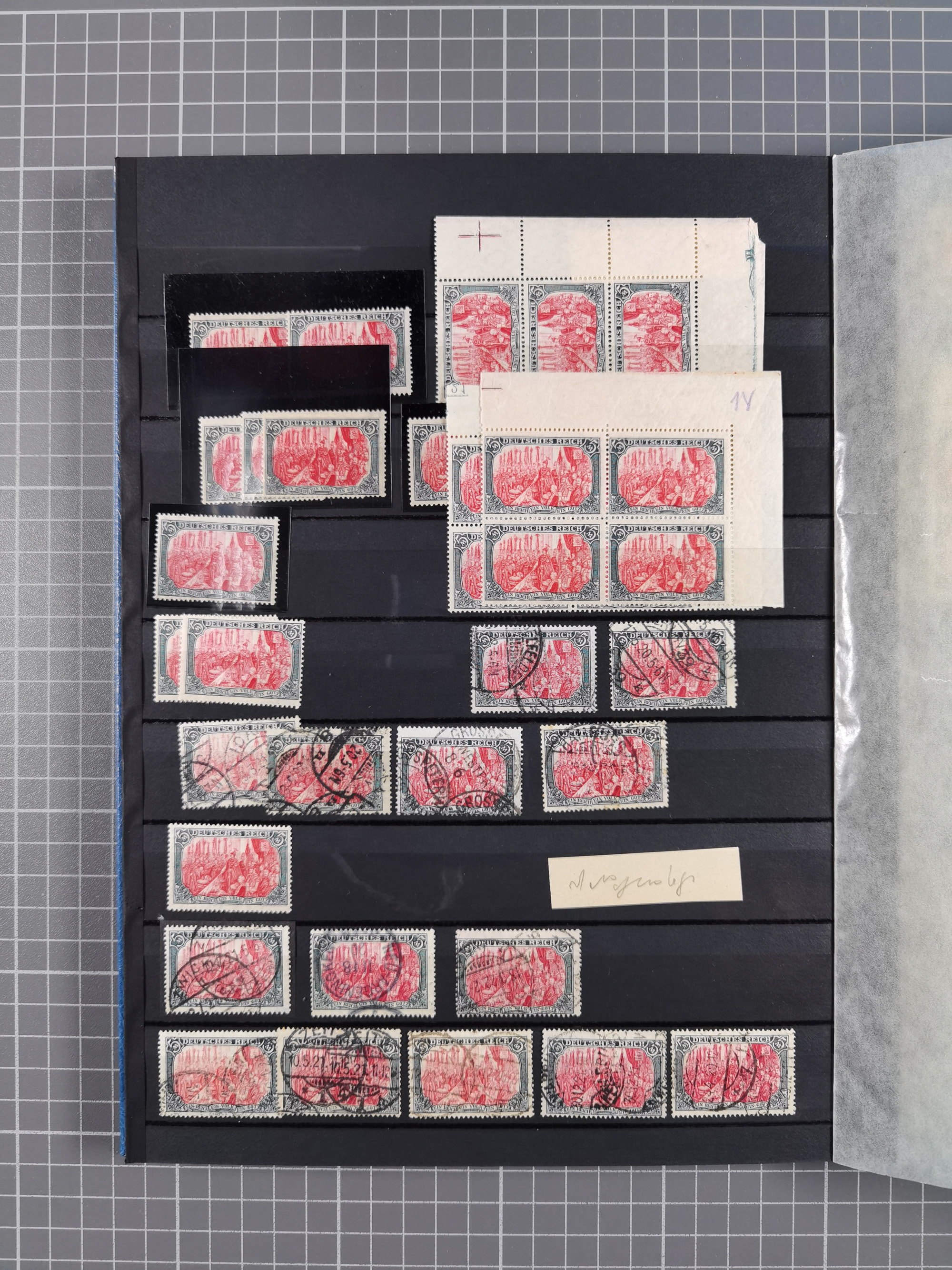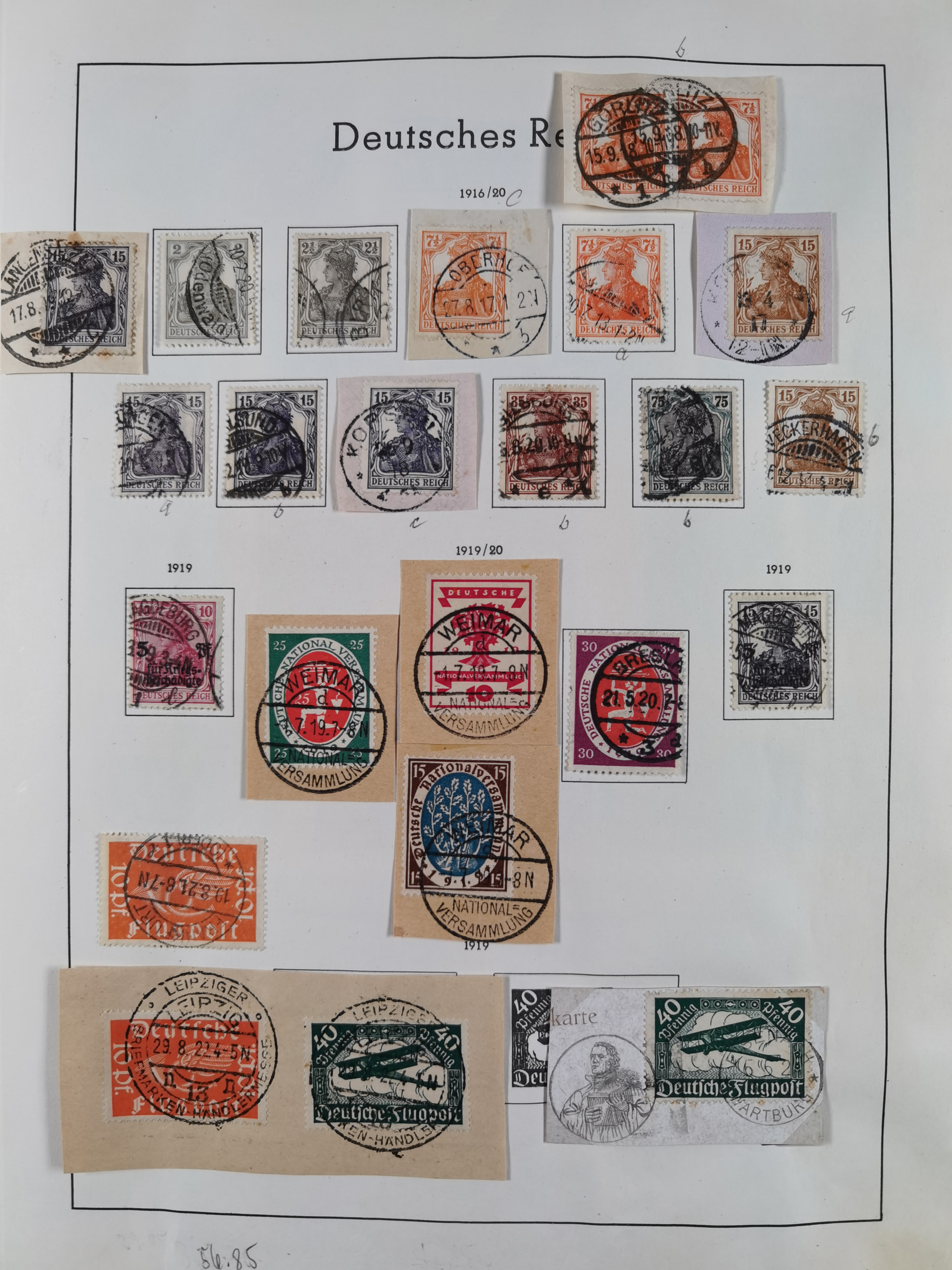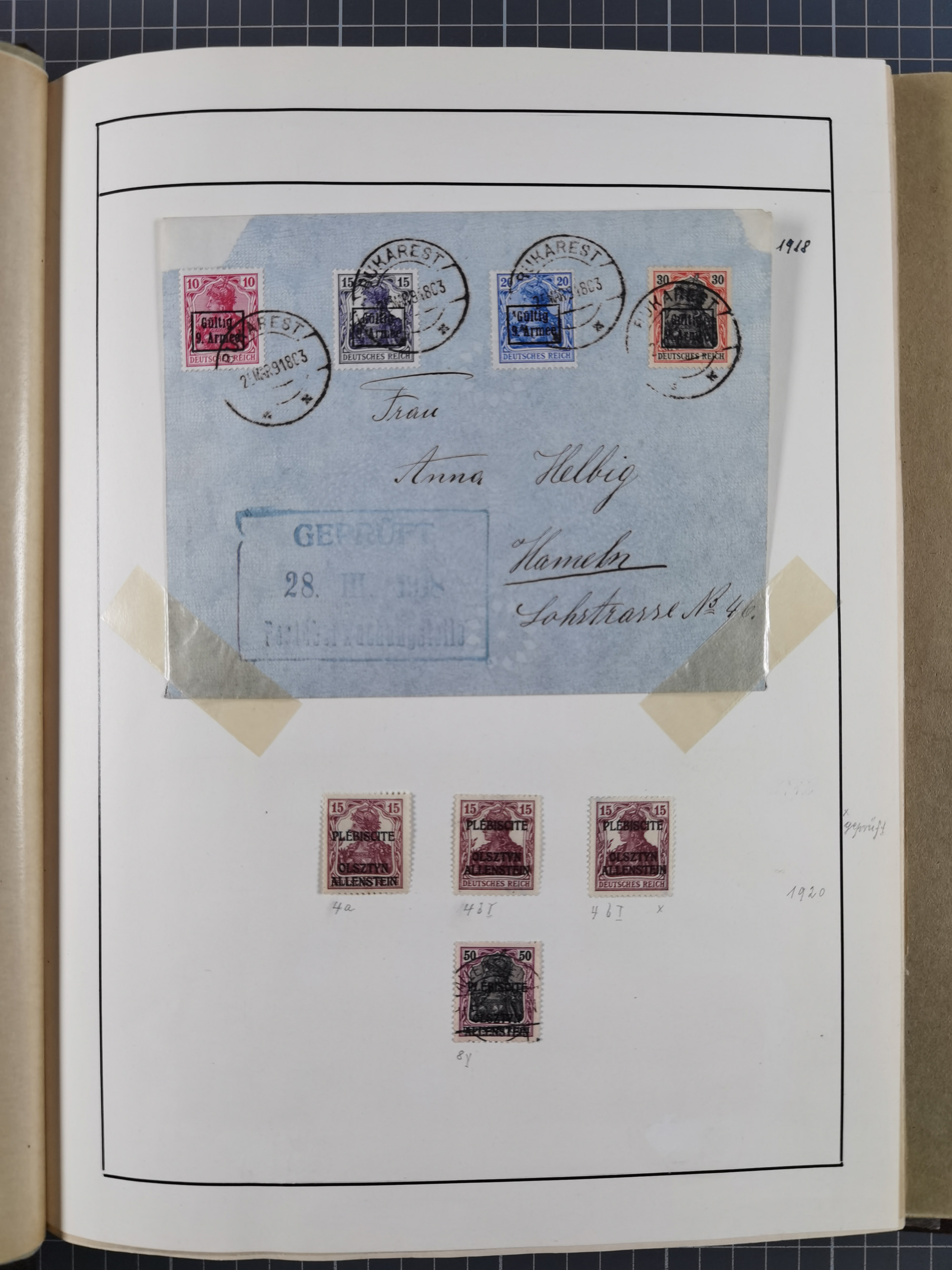 1890/1920, meist ungebrauchte und gestempelte Sammlung “Germania” mit über 40 Briefen, Karten und GSK inkl. Abstimmungsgebiete und etwas anderes Material, dabei Firmenlochungen, Päckchenstempel auf losen Marken bzw. Briefstücken, R-Briefe, bessere Frankaturen usw.