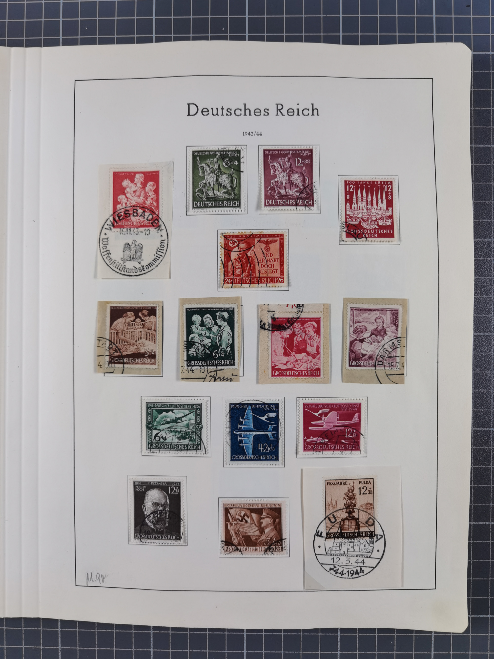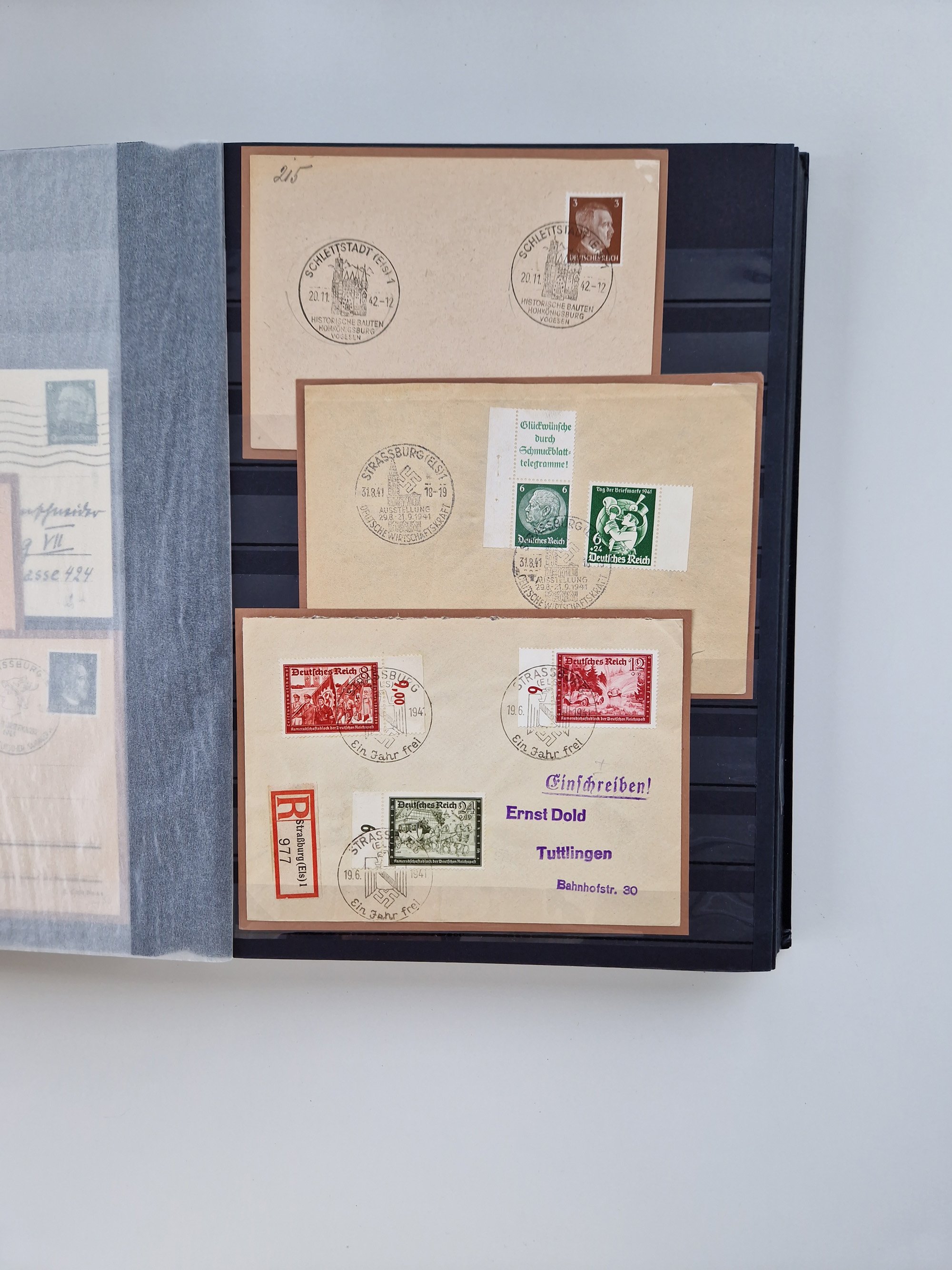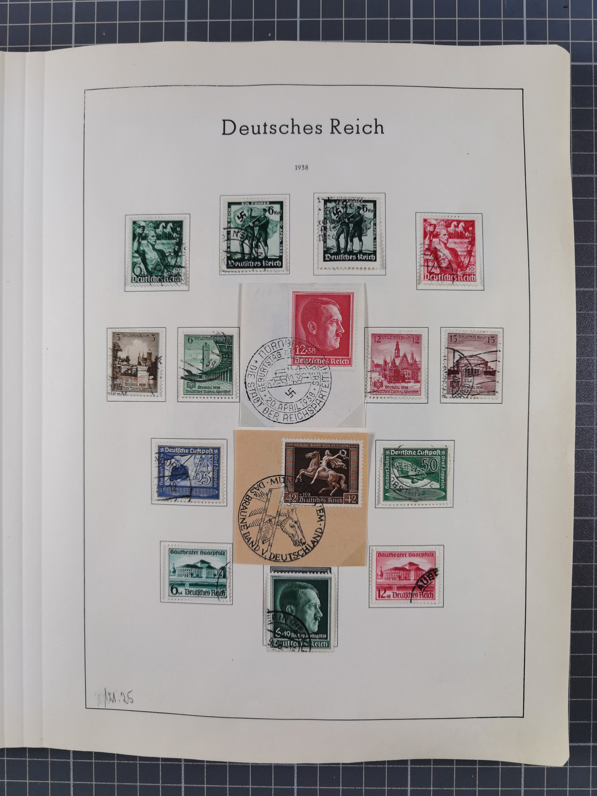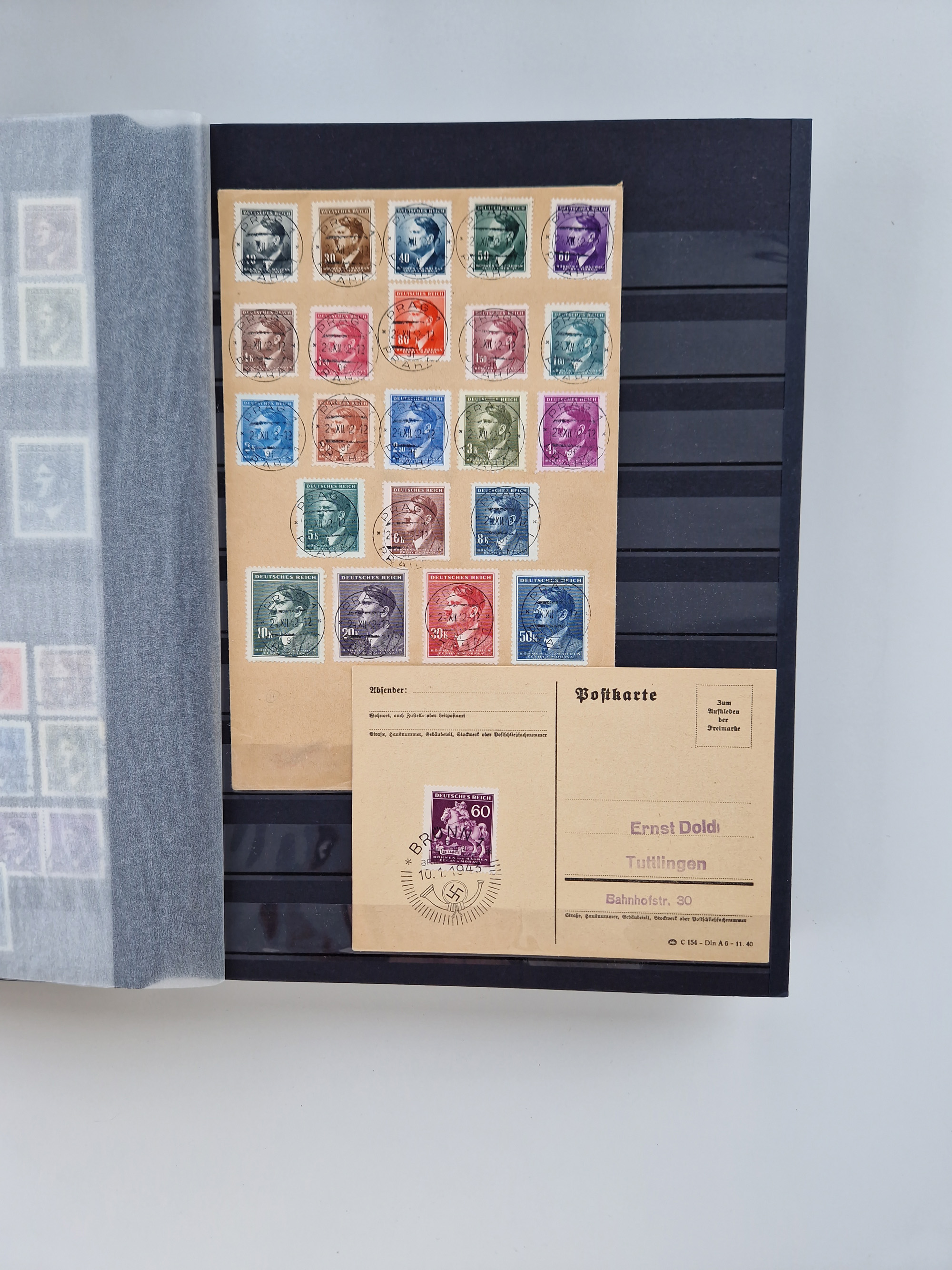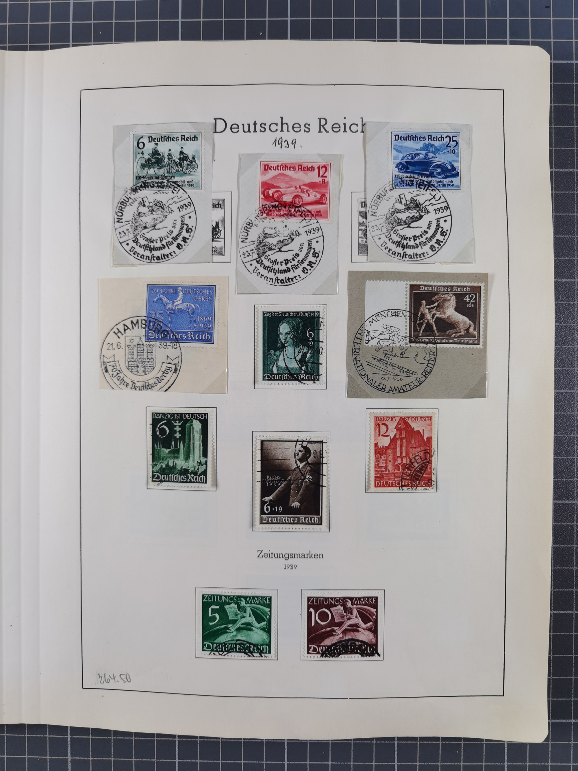 1932/44, meist gestempelte, in den Hauptnummern fast komplette Sammlung Deutsches Reich und Besetzungsausgaben, dabei bessere Werte, Randstücke und Zusammendrucke, aufgelockert durch etliche R-Briefe und Blankoumschläge mit Sonderstempeln, dabei u.a. Mi.-Nr. 628-31 auf Zeppelinbrief mit Fahrt zur Leipziger Messe, Blocks 4-11, Bl. 11 mit SSt. “MARSCHSTAFFEL ZUM RPT DER NSDAP GAU SACHSEN”, ferner Dienst- und Feldpostmarken mit u.a. Mi.-Nr. 2 auf Feldpostadresse, Böhmen und Mähren mit Zusammendrucken, Mi.-Nr. 29 auf NSDAP-Brief mit rotem V-Werbestempel “OLMÜTZ -8.VIII.41”, rotem L2 und blauem L1 “Victoria siegt…” und rückseitiger Vignette, etc., meist gute Erhaltung, im KaBe-Album