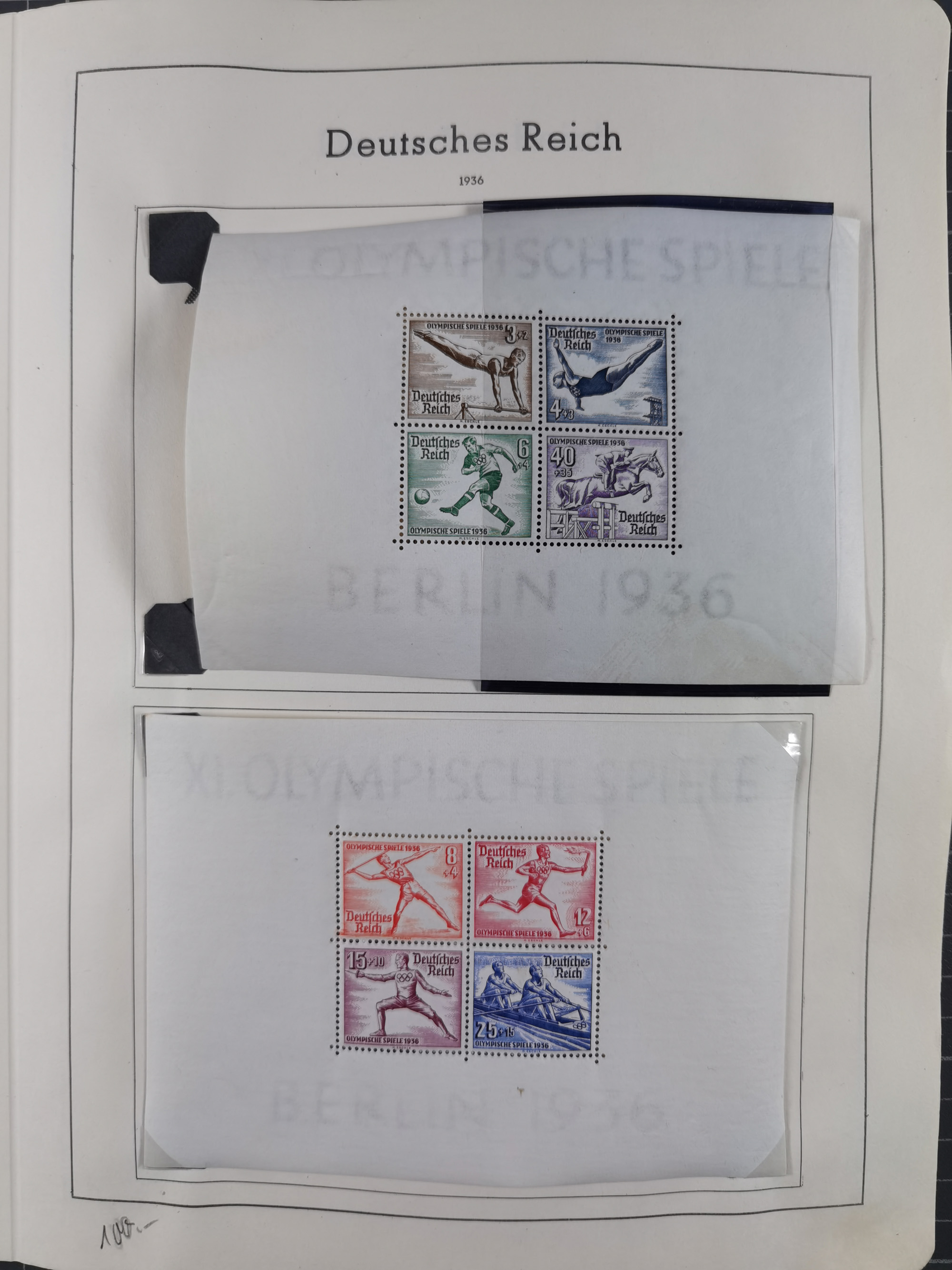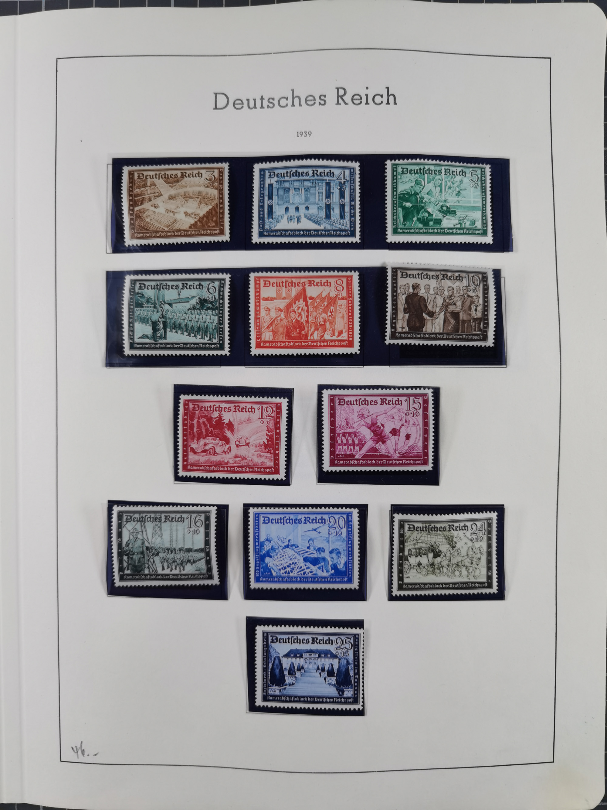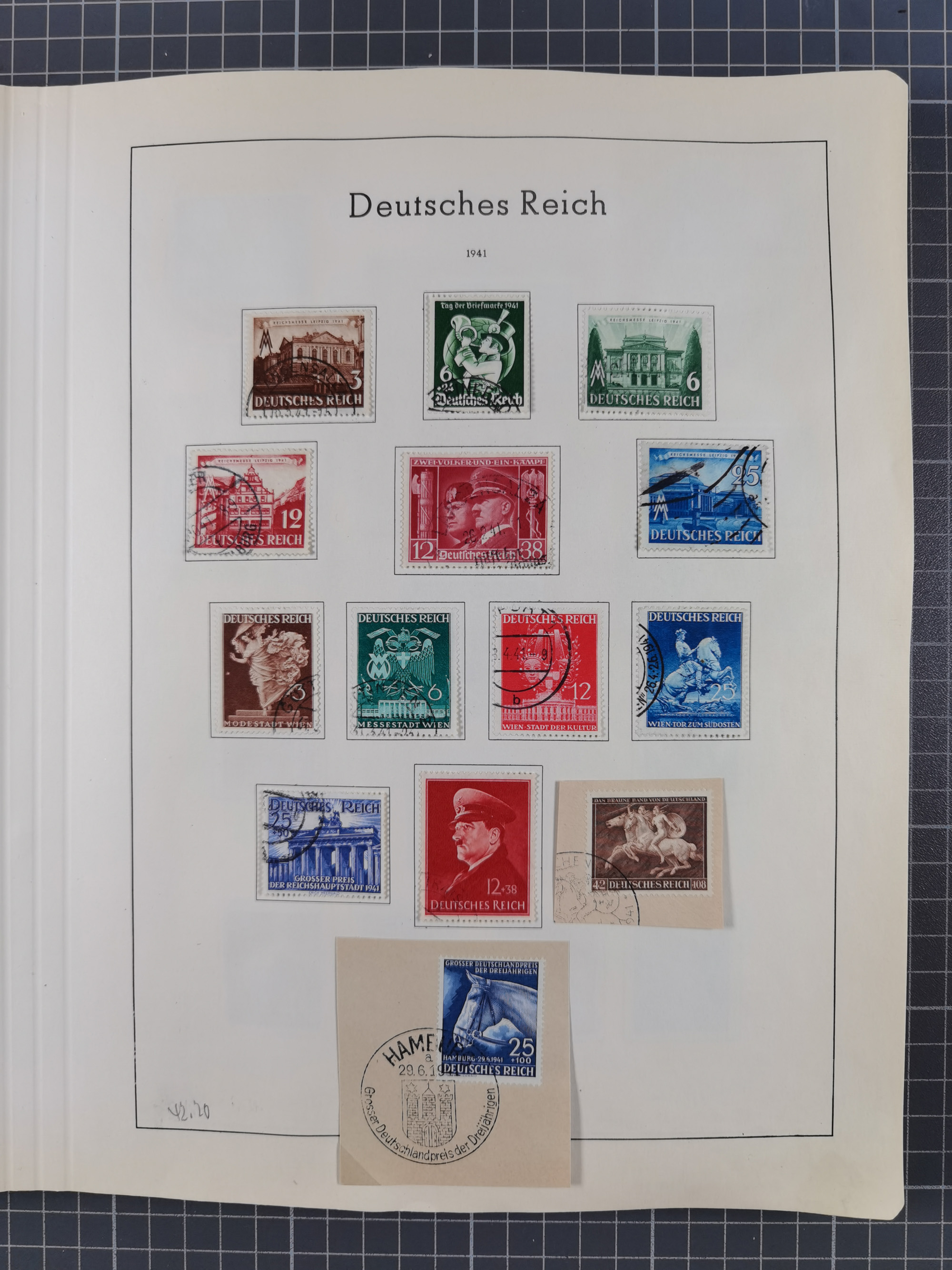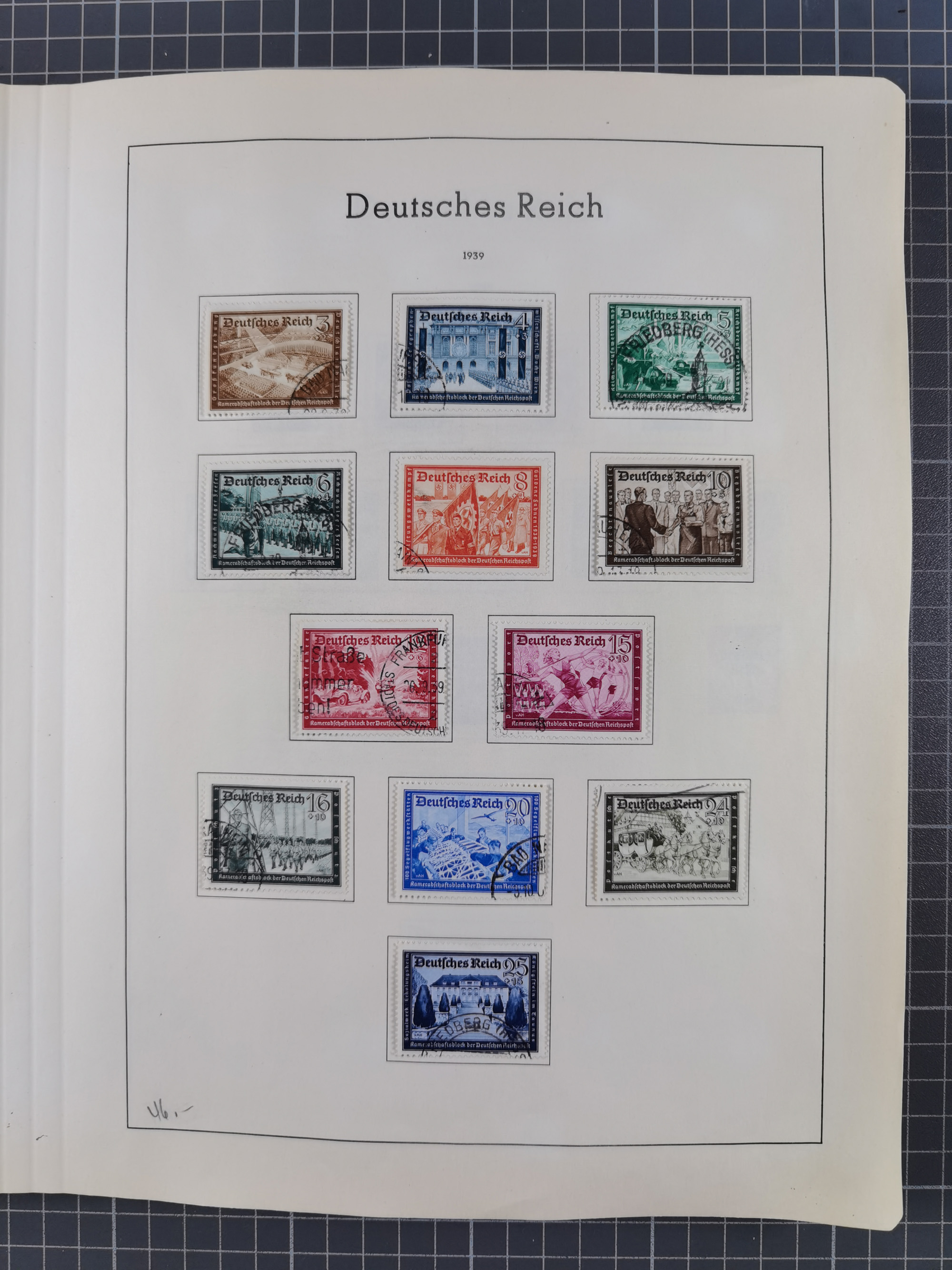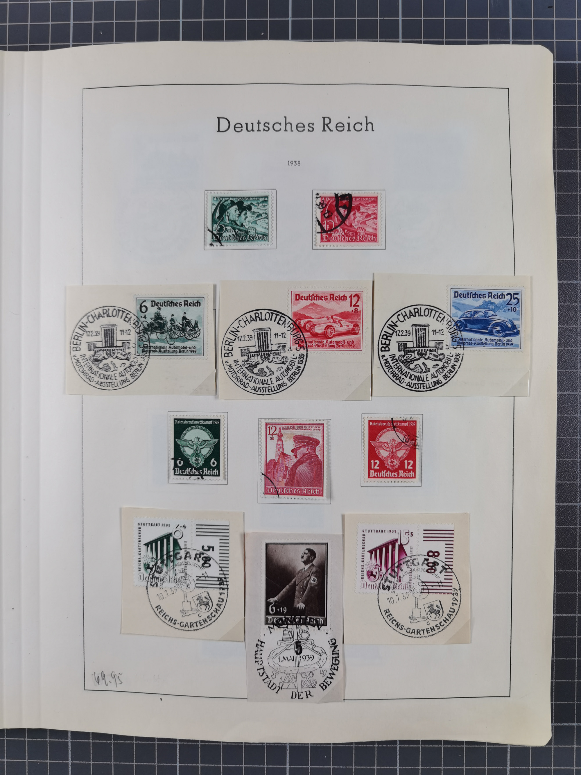 1932/44, meist gestempelte, in den Hauptnummern fast komplette Sammlung Deutsches Reich und Besetzungsausgaben, dabei bessere Werte, Randstücke und Zusammendrucke, aufgelockert durch etliche R-Briefe und Blankoumschläge mit Sonderstempeln, dabei u.a. Mi.-Nr. 628-31 auf Zeppelinbrief mit Fahrt zur Leipziger Messe, Blocks 4-11, Bl. 11 mit SSt. “MARSCHSTAFFEL ZUM RPT DER NSDAP GAU SACHSEN”, ferner Dienst- und Feldpostmarken mit u.a. Mi.-Nr. 2 auf Feldpostadresse, Böhmen und Mähren mit Zusammendrucken, Mi.-Nr. 29 auf NSDAP-Brief mit rotem V-Werbestempel “OLMÜTZ -8.VIII.41”, rotem L2 und blauem L1 “Victoria siegt…” und rückseitiger Vignette, etc., meist gute Erhaltung, im KaBe-Album
