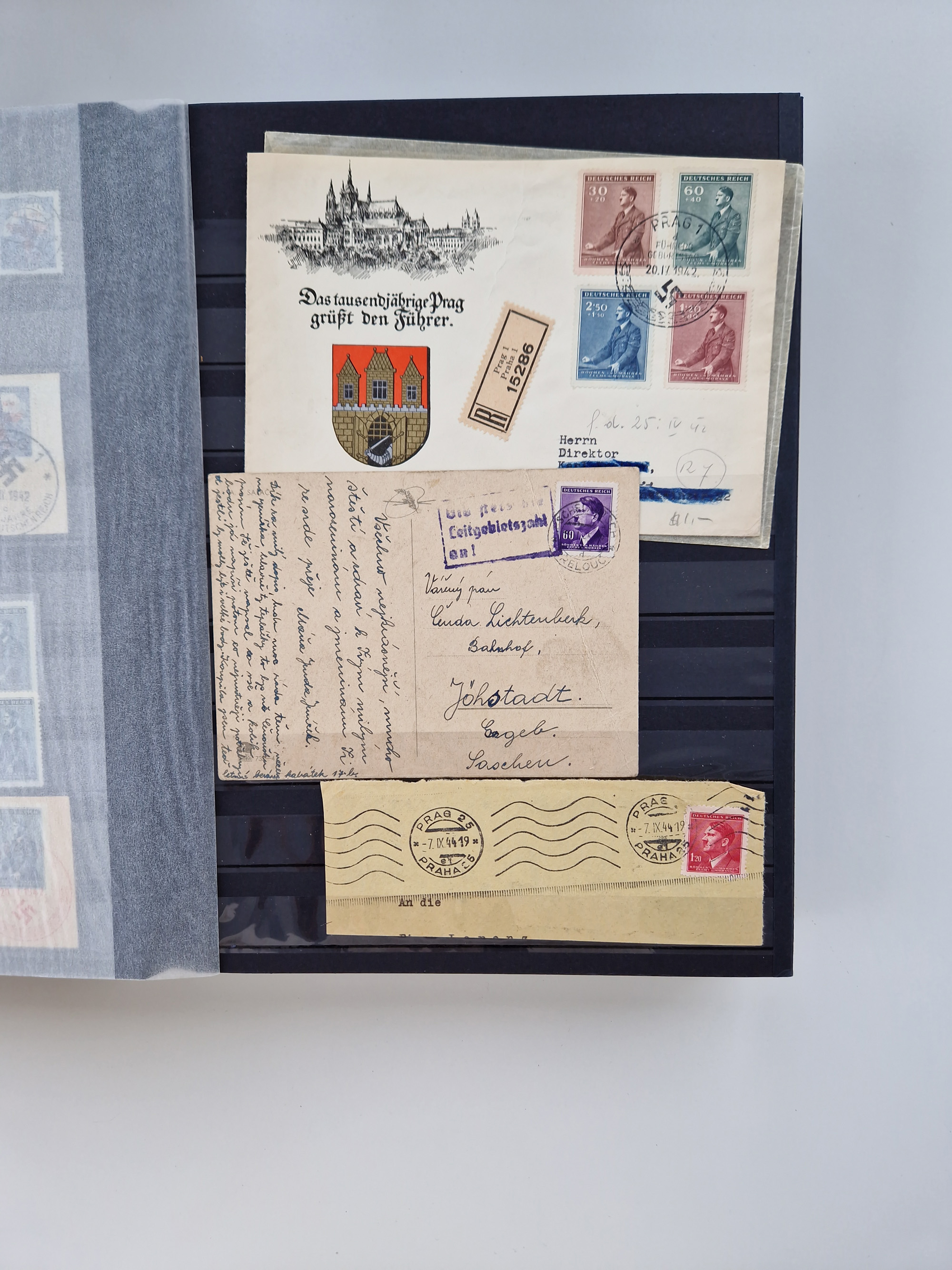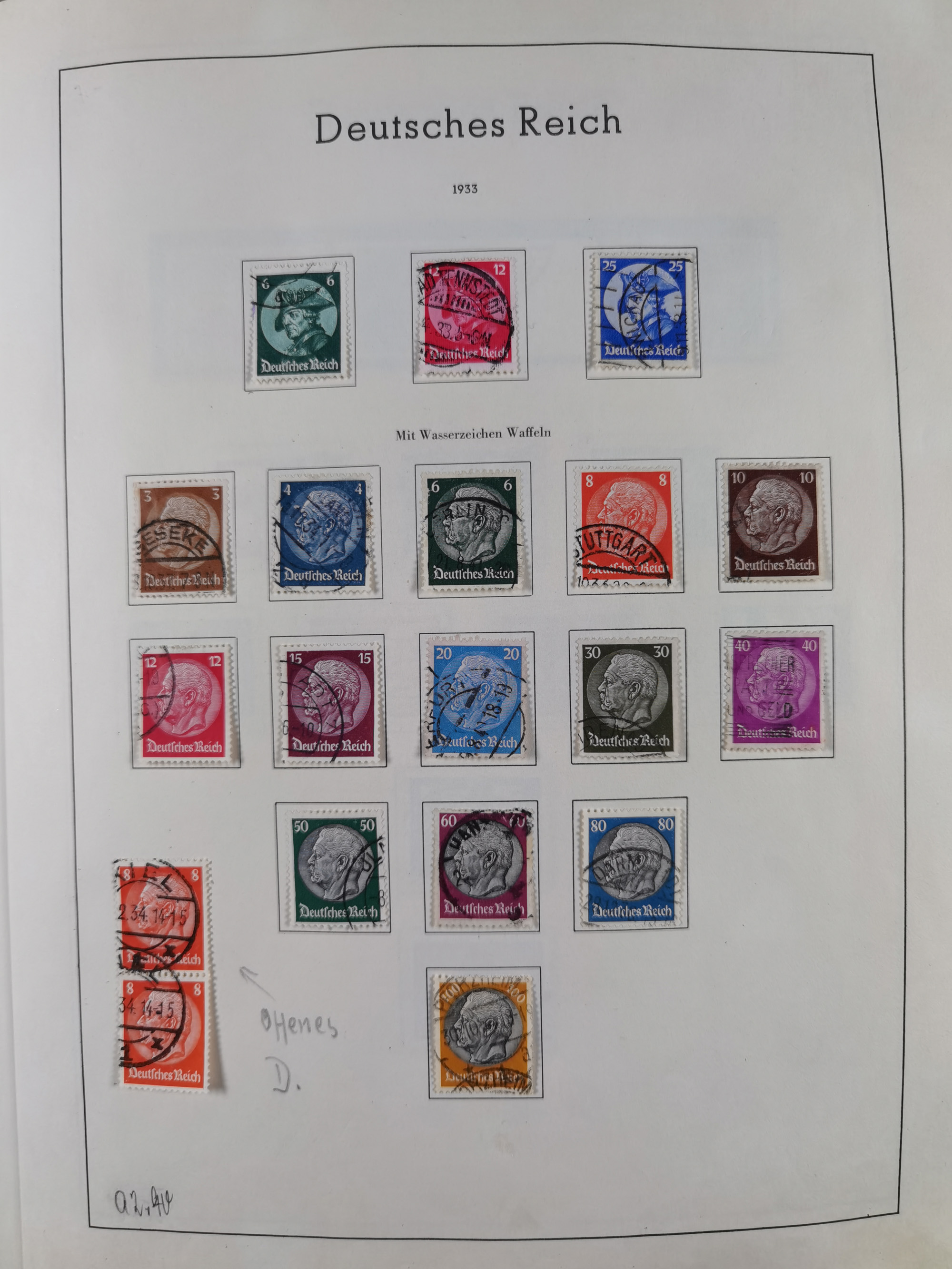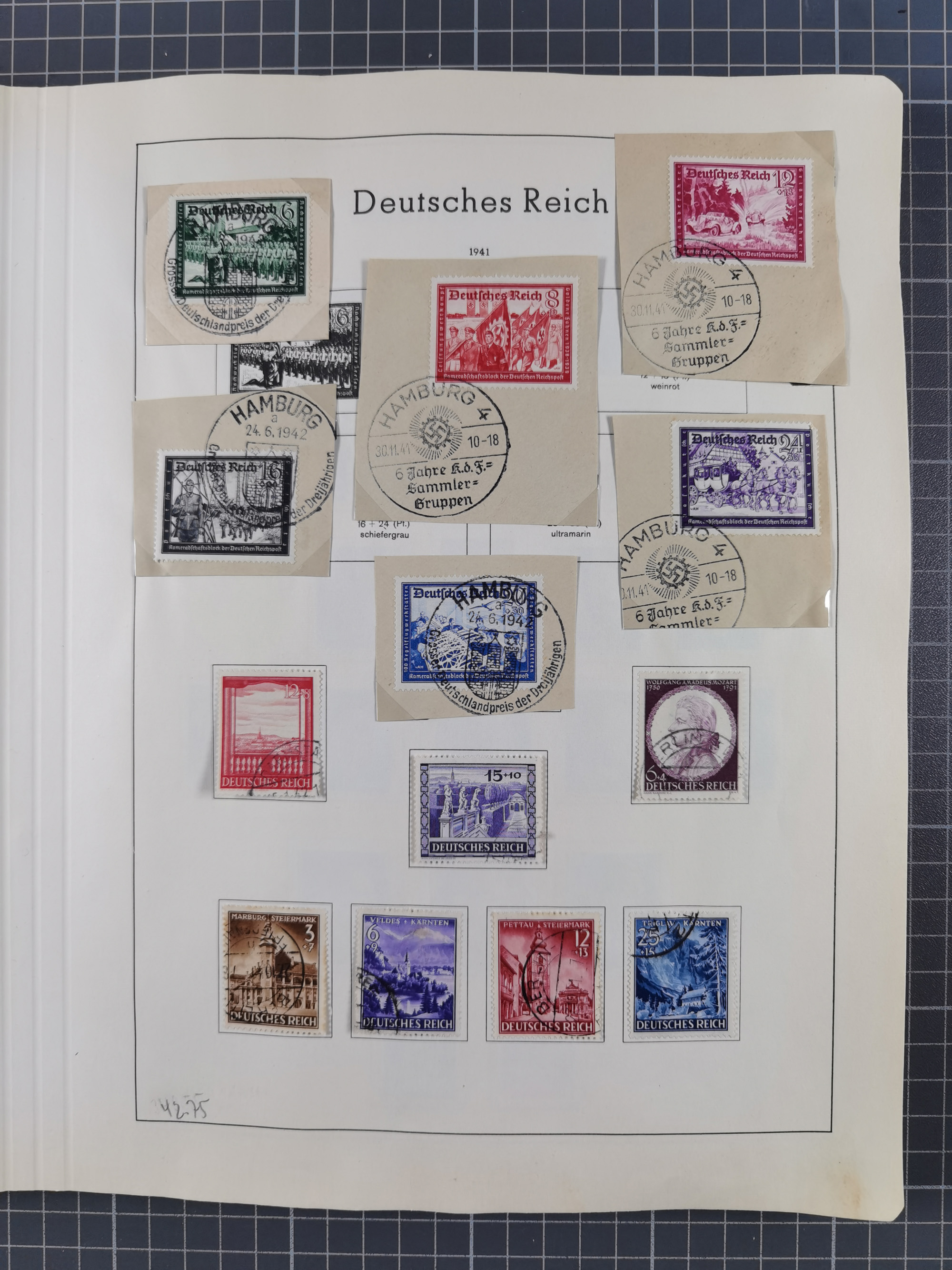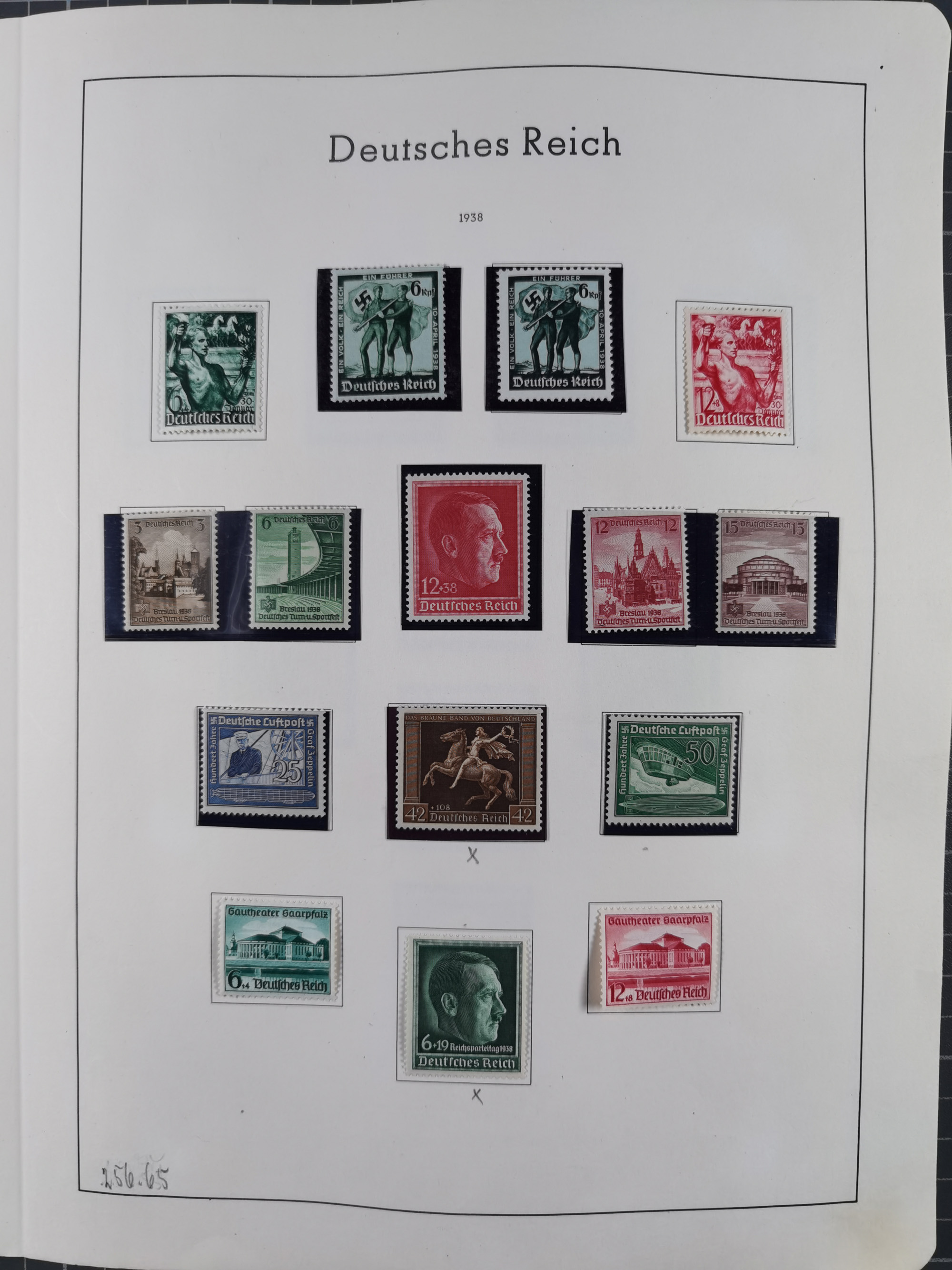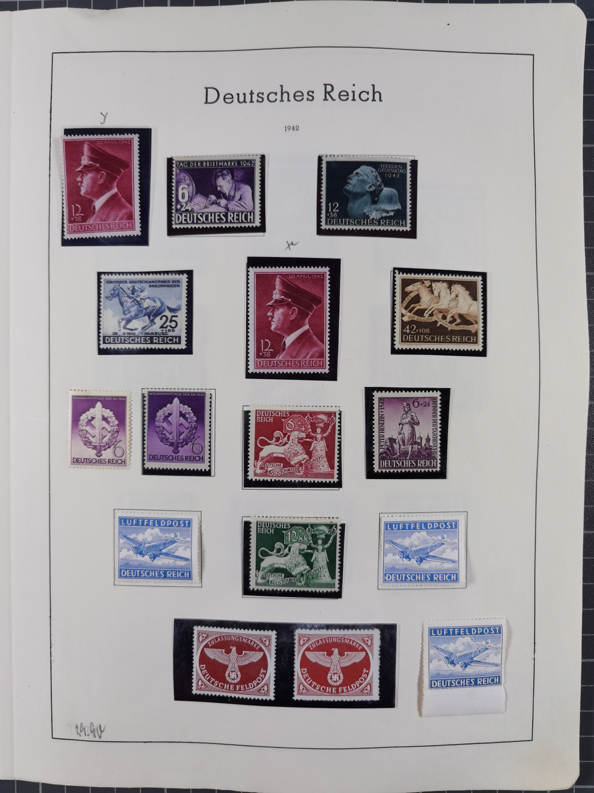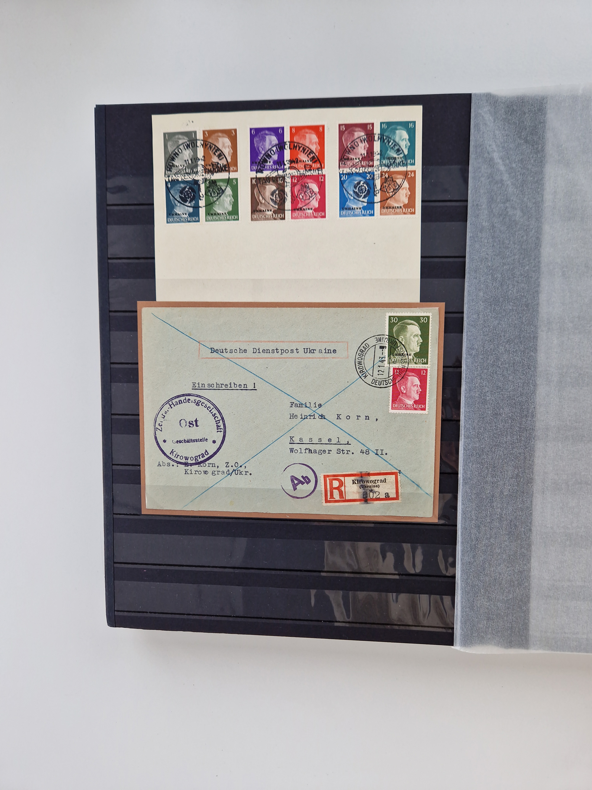 1932/44, meist gestempelte, in den Hauptnummern fast komplette Sammlung Deutsches Reich und Besetzungsausgaben, dabei bessere Werte, Randstücke und Zusammendrucke, aufgelockert durch etliche R-Briefe und Blankoumschläge mit Sonderstempeln, dabei u.a. Mi.-Nr. 628-31 auf Zeppelinbrief mit Fahrt zur Leipziger Messe, Blocks 4-11, Bl. 11 mit SSt. “MARSCHSTAFFEL ZUM RPT DER NSDAP GAU SACHSEN”, ferner Dienst- und Feldpostmarken mit u.a. Mi.-Nr. 2 auf Feldpostadresse, Böhmen und Mähren mit Zusammendrucken, Mi.-Nr. 29 auf NSDAP-Brief mit rotem V-Werbestempel “OLMÜTZ -8.VIII.41”, rotem L2 und blauem L1 “Victoria siegt…” und rückseitiger Vignette, etc., meist gute Erhaltung, im KaBe-Album