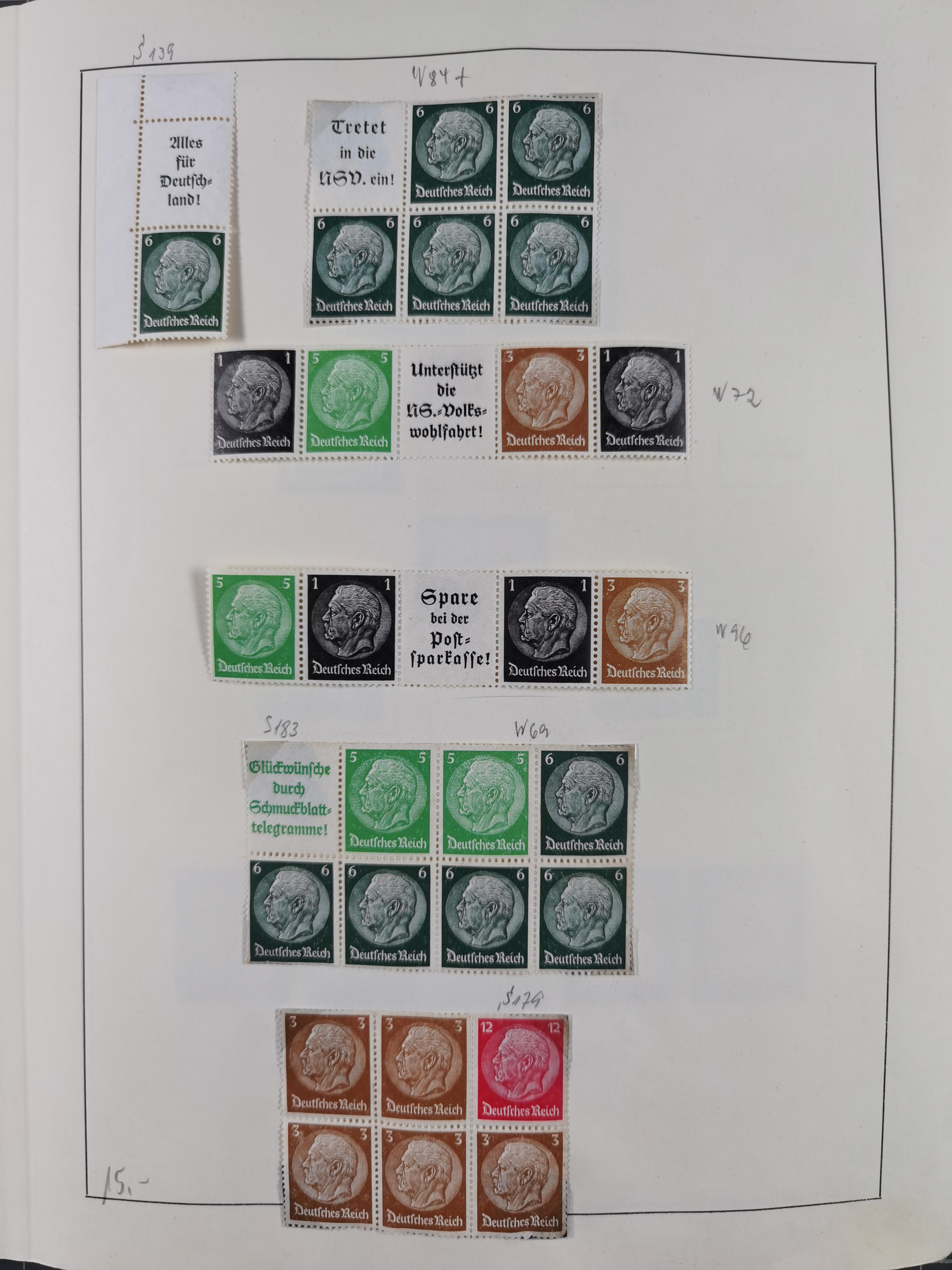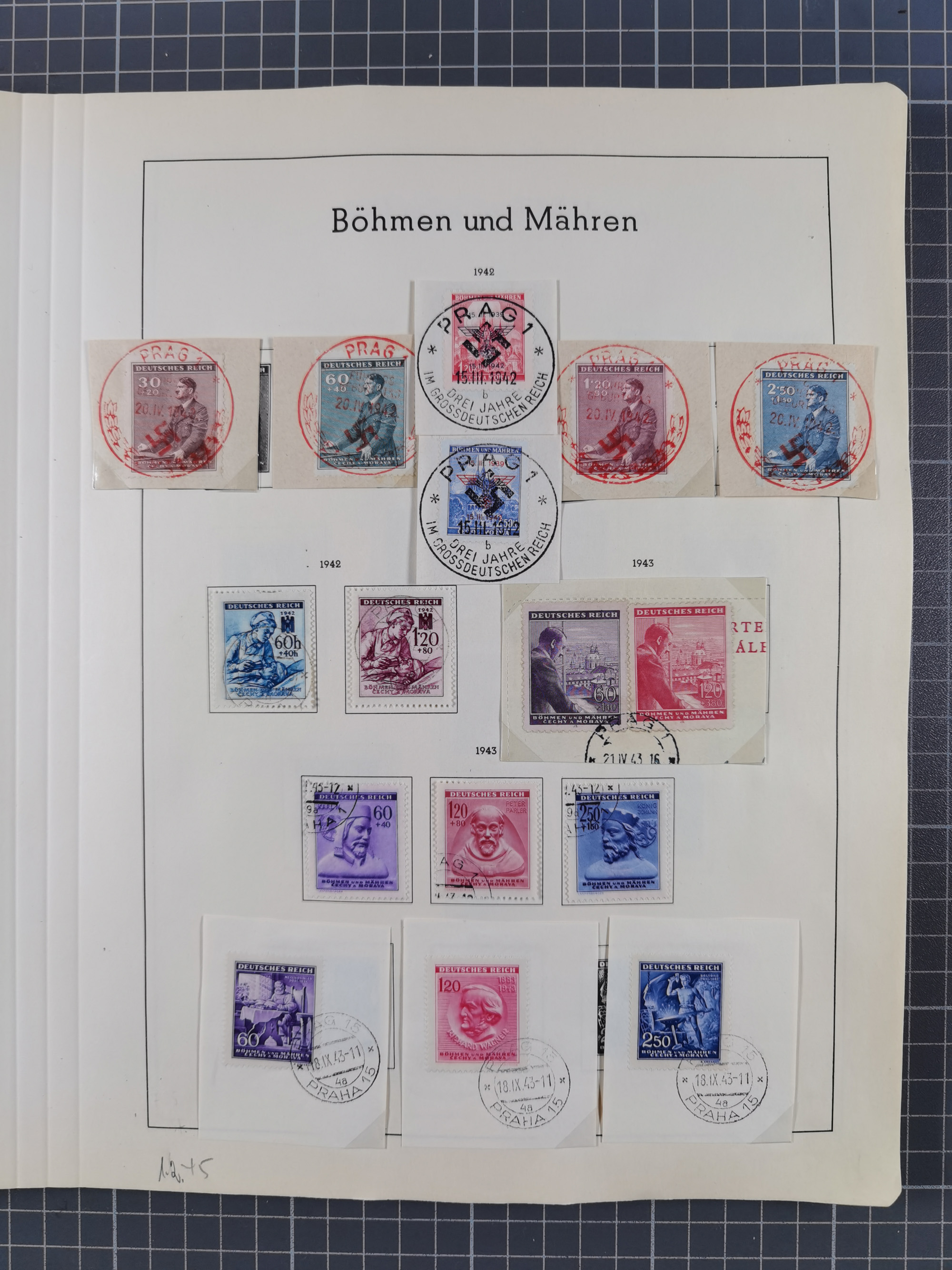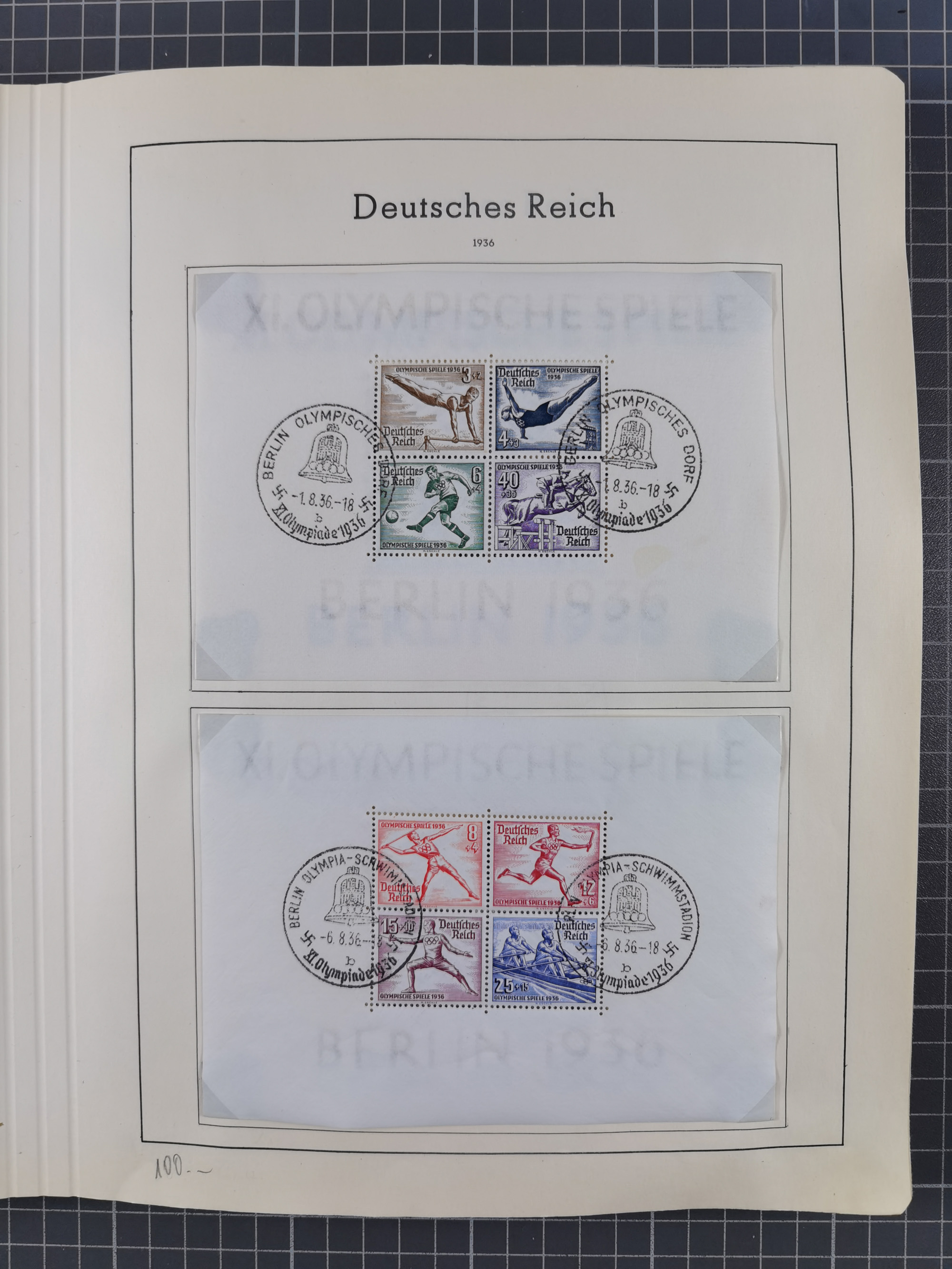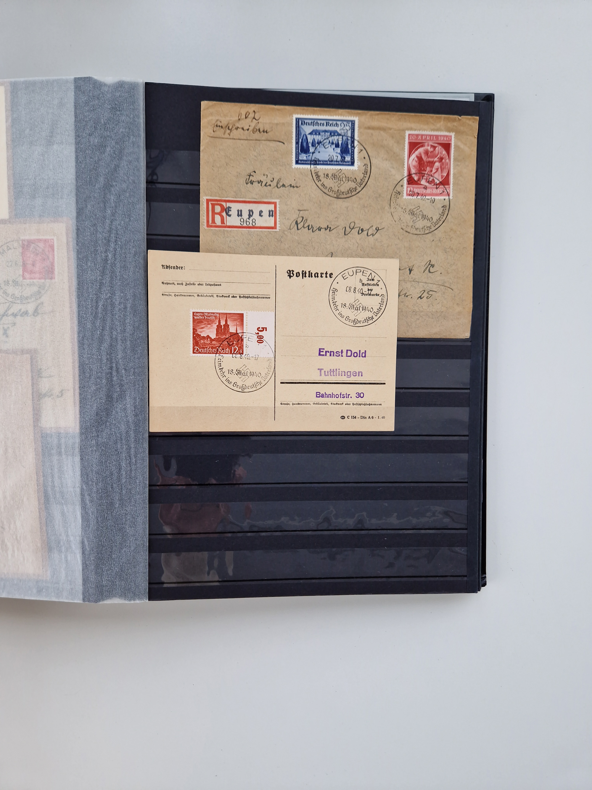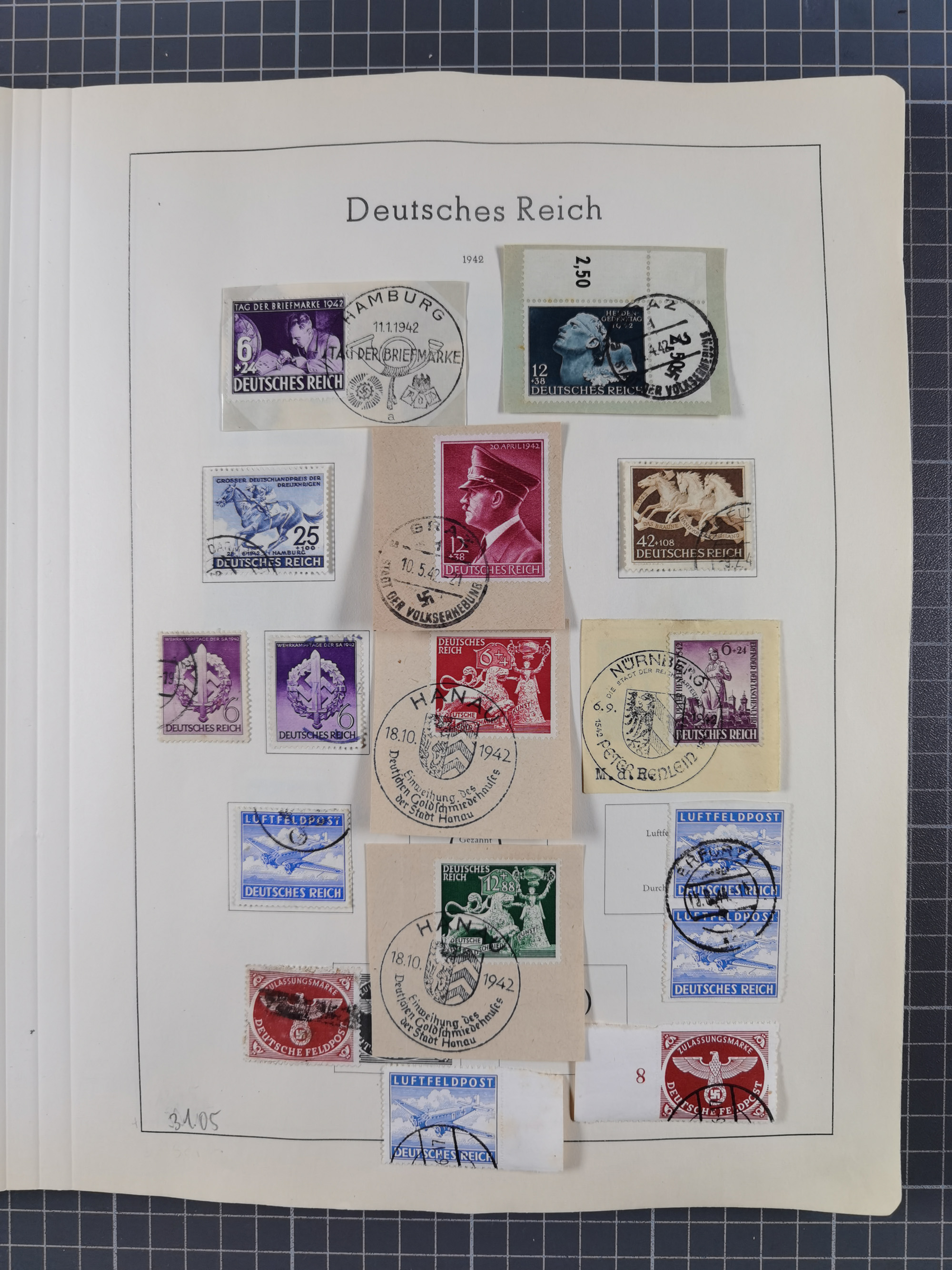 1932/44, meist gestempelte, in den Hauptnummern fast komplette Sammlung Deutsches Reich und Besetzungsausgaben, dabei bessere Werte, Randstücke und Zusammendrucke, aufgelockert durch etliche R-Briefe und Blankoumschläge mit Sonderstempeln, dabei u.a. Mi.-Nr. 628-31 auf Zeppelinbrief mit Fahrt zur Leipziger Messe, Blocks 4-11, Bl. 11 mit SSt. “MARSCHSTAFFEL ZUM RPT DER NSDAP GAU SACHSEN”, ferner Dienst- und Feldpostmarken mit u.a. Mi.-Nr. 2 auf Feldpostadresse, Böhmen und Mähren mit Zusammendrucken, Mi.-Nr. 29 auf NSDAP-Brief mit rotem V-Werbestempel “OLMÜTZ -8.VIII.41”, rotem L2 und blauem L1 “Victoria siegt…” und rückseitiger Vignette, etc., meist gute Erhaltung, im KaBe-Album
