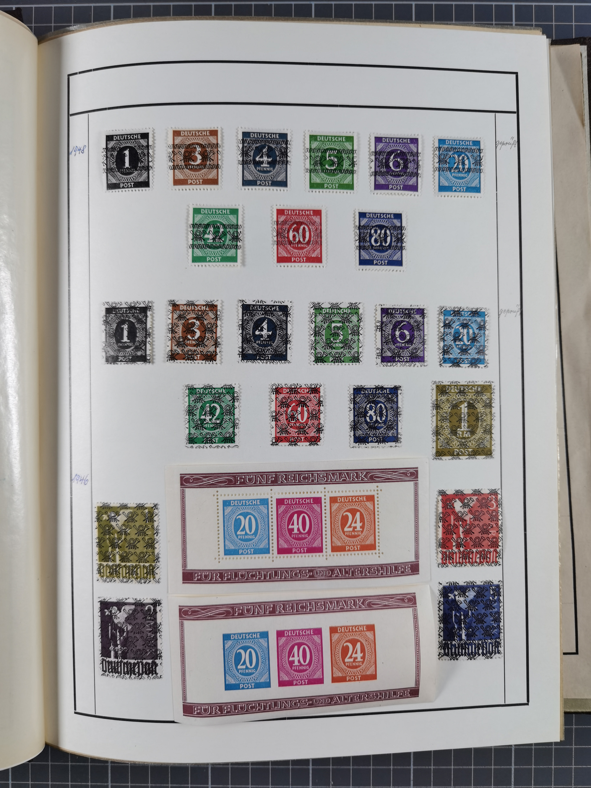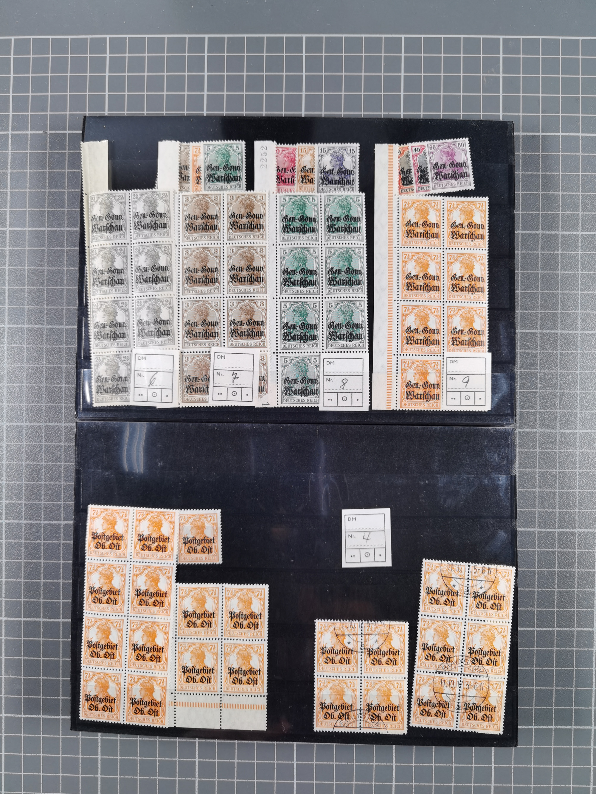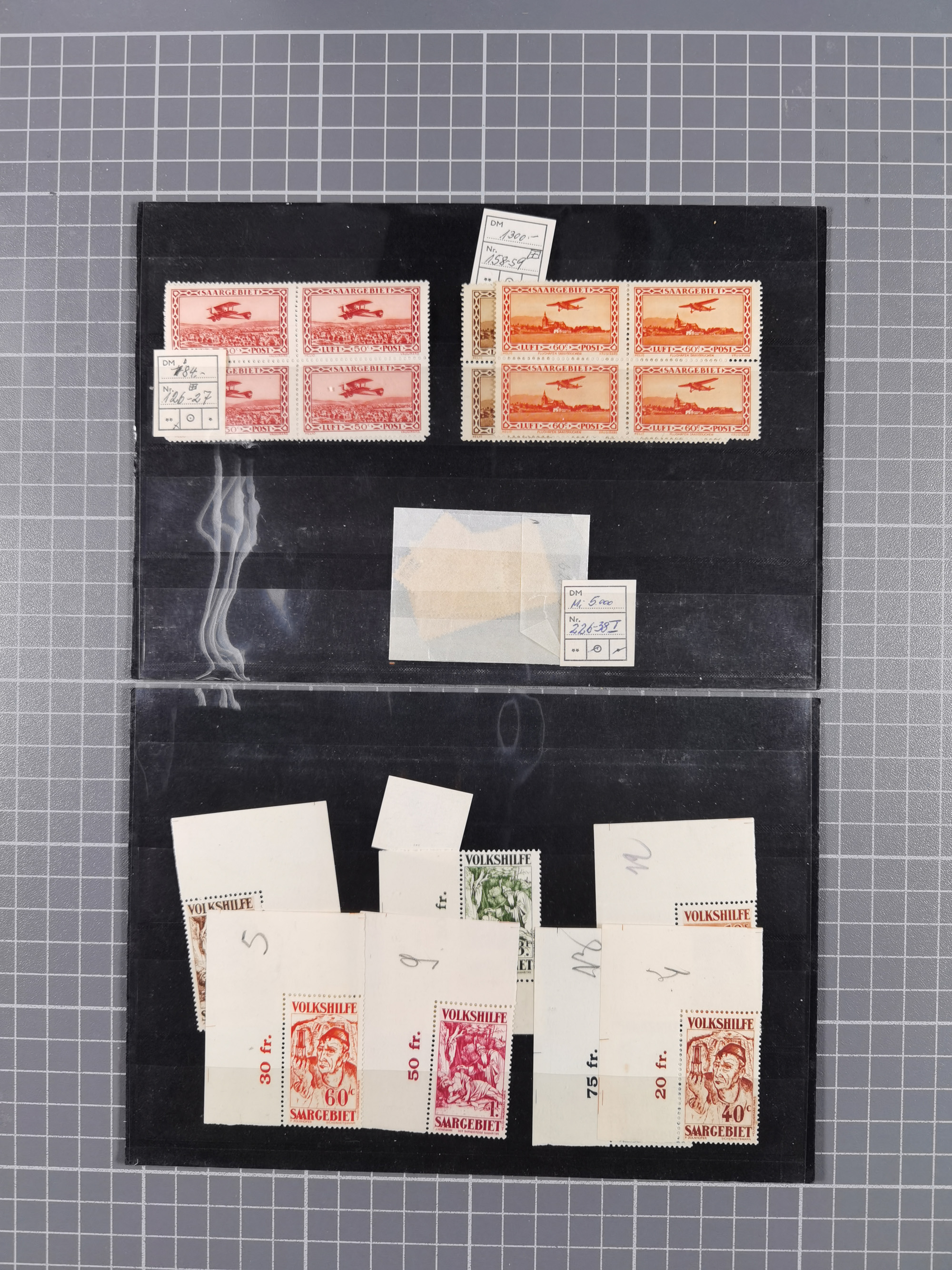 1923/60, umfangreicher ungebraucht/postfrischer und gestempelter Händler-Bestand ab Weimar bis Bund/Berlin und DDR mit besseren und kpl. Ausgaben auf Steckkarten auf großen Albenblättern. Dabei liegt der Schwerpunkt bei den Ausgaben nach 1945 mit u.a. Kontrollrat Block 12A/B mehrfach gestempelt, DDR mit u.a. 6x Mi.-Nr. 286-88 postfrisch und Blockausgaben ab Mi.-Nr. 7 meist mehrfach, Franz. Zone mit viel postfrischem Material sowie Berlin und Bund Anfangsausgaben bis ca. 10x pro Sorte. Erhaltung von etwas fehlerhaft bis einwandfrei, bessere zum Teil signiert