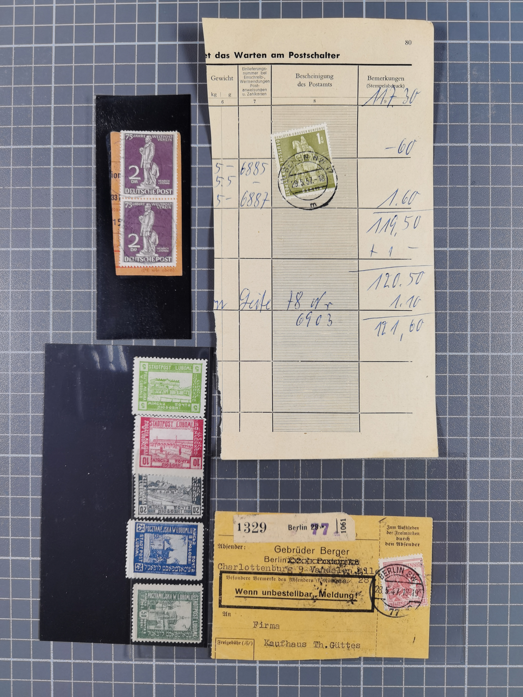 1930/60 (ca.), diverse Briefe und Karten aus bzw. nach Berlin, etwas Ausland, Zensuren usw., meist aus dem Bedarf. Dazu lose Marken und Briefstücke mit frühen Marken aus Berlin, etwas Bund usw.