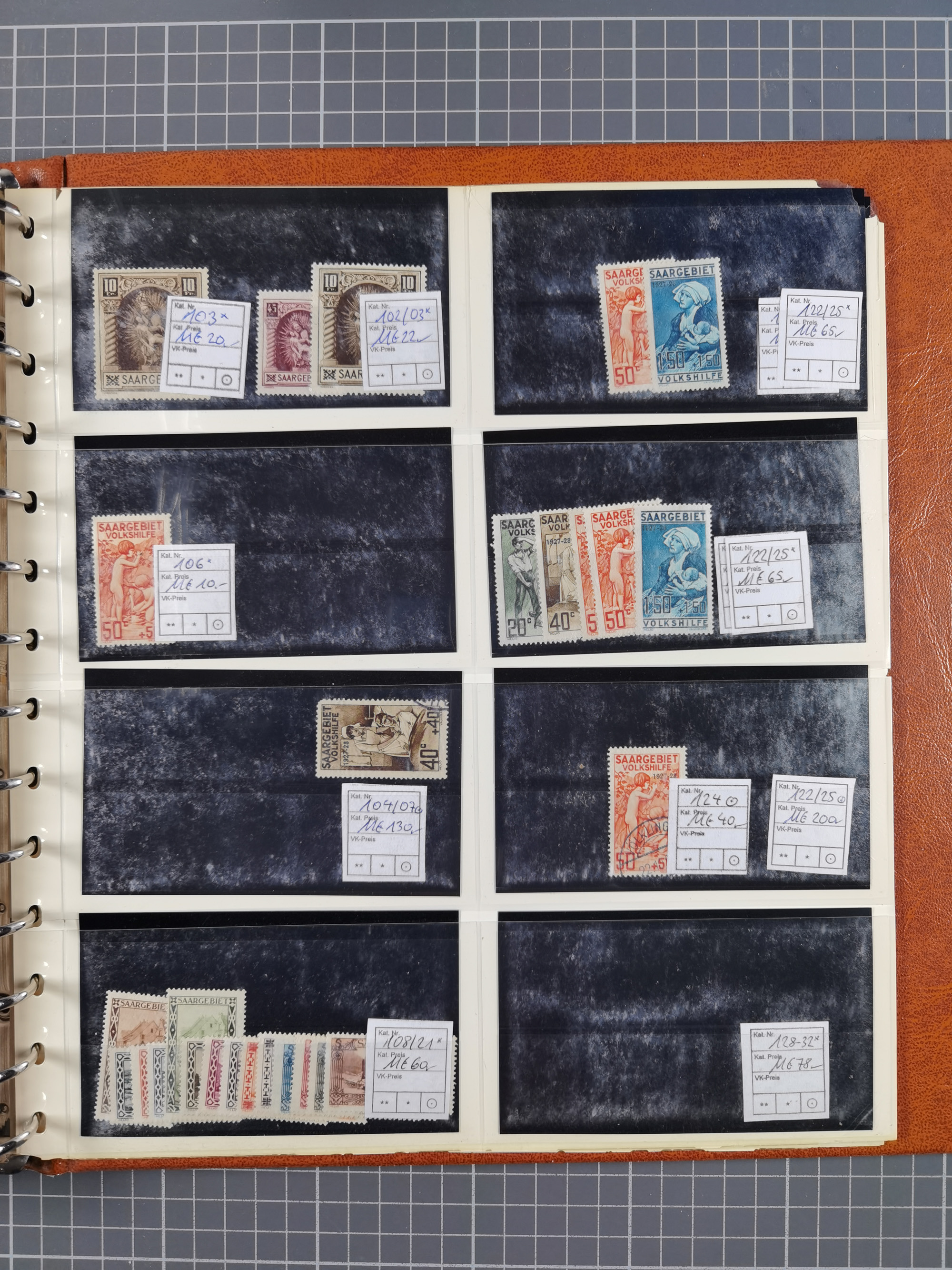 1900/39, Lagerbuch mit meist ungebrauchten/postfrischen Marken auf Steckkarten von D. Kolonien, Besetzung I. WK, Abstimmungsgebiete mit Saar, Danzig und Memel, dabei kpl. Ausgaben, Farben und Besonderheiten
